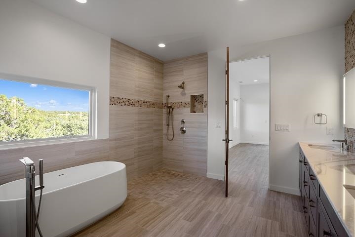 To Be Built on the Sunset Golf Course! Valverde's Sunrise Contemporary floor plan, Elevation A, has 2,802 SF, and is designed for comfort and easy livability. This single-level home has three bedrooms, 3 bathrooms and golf course views. The living space includes a gourmet kitchen with solid wood cabinets, stainless-steel Viking appliances, quartz countertops, a huge pantry, and opens to the dining and great room with 12-foot ceilings, and a low-profile gas fireplace with stone surround. A courtyard connects to the kitchen and great room for perfect outdoor dining. A third portal captures the views. The large master suite has a portal, master bathroom with curbless, walk-in shower, soaking tub, dual sinks, and walk-in closet. The guest bedrooms are on the opposite side of the home, each with their own bathroom. The large two-car garage has plenty of storage. Choose your interior finishes, color choices and other options. A low-maintenance landscape package is included and can be expanded with water features, fire pit, outdoor kitchen/BBQ. HOA fees include road and common area maintenance, 24-hour roaming security, and 24-hour EMTs on site. Membership to The Club at Las Campanas is optional. Amenities include indoor and outdoor swimming, tennis, fitness facility, equestrian, fine dining, and two Jack Nicklaus Signature Golf Courses. (Photos are representational only.)