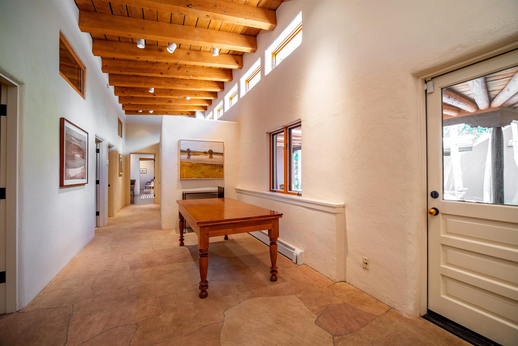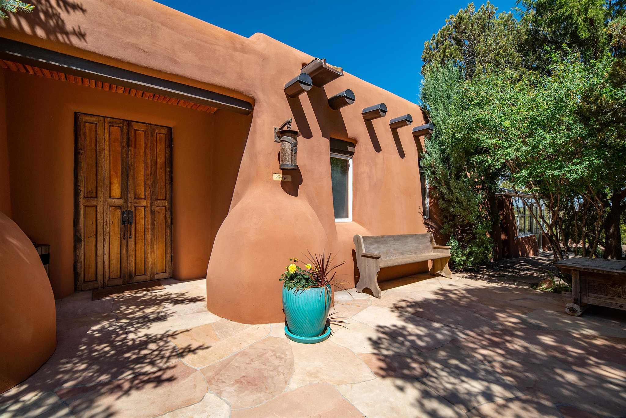 Home to iconic artist Georgia O'Keeffe and later, philanthropist Paul G. Allen, co-founder of Microsoft, Sol Y Sombra is the essence of Southwestern graciousness. The Main House perfectly represents 1930s Pueblo-style architecture and elegance with 6 bedrooms, inviting gathering spaces, and wide portals opening to lush lawns. The main floor hosts formal living and dining rooms, a library, and game room, along with a chef's kitchen and solarium. Upstairs living areas offer a privacy gate atop the stairs and access via elevator. Adjoined by a covered walkway, the Cinema with kitchen, bedrooms, and patio hosts intimate movie nights. A wisteria covered grill area provides casual entertaining space while the Grand Portal offers a large fireplace and views of the aspen grove and rose garden. Two guest houses and a lodge offer overnight accommodations for guests. The Conference Center provides private space for business and the Event Center with catering kitchen and panoramic rooftop views sets the stage for unforgettable events. The Greenhouse showcases a Bodhi tree grown from a seed of the tree the Buddha sat beneath to attain enlightenment, a gift from the Dalai Lama after visiting the property, as well as Allen's impressive botanical collection. This rare and storied estate offers the comfort, elegance and ease of a truly unique home in an inspirational setting. This extensive residence includes a business license for conference and learning center with overnight accommodations.
