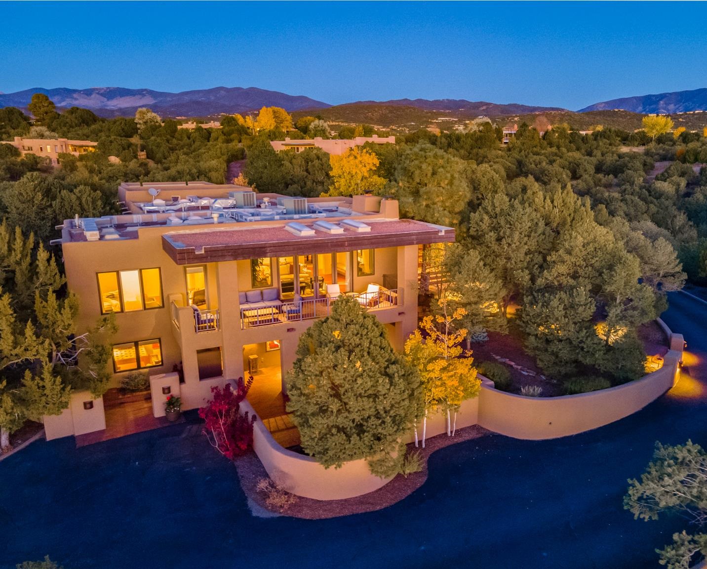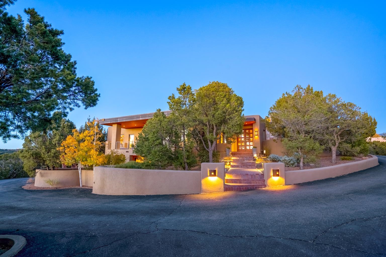 This sophisticated design home boasts 4 bedrooms 4 baths with some of the most unique views & is located in the prestigious Vista Encantada subdivision. This spectacular hideaway minutes from the Historic Plaza offers a open floor plan & features custom design, crafted beautiful wood beams, diamond plaster finish, granite countertops, Sub-Zero Refrigerator, SS appliances, double oven, wine cooler, fireplaces, new landscaped irrigation system, new lights-timer on walkway, Fall 2020 new septic system & new stucco, 85% new windows (Marvin). Master suite is magnificently refined with onyx countertops, dual sinks large walk-in shower, jetted tub, walk-in closet, & crafted onyx on the face of the fireplace. Second en suite is magnificently refined with lavish bath quarters & plenty of privacy. The lower level offers a perfect floor plan for hosting guests. Home has a 3 car heated garage & plenty of room for chic outdoor living. Home design makes living easy, while exuding lavish luxury & smart details that enhance everyday life.
