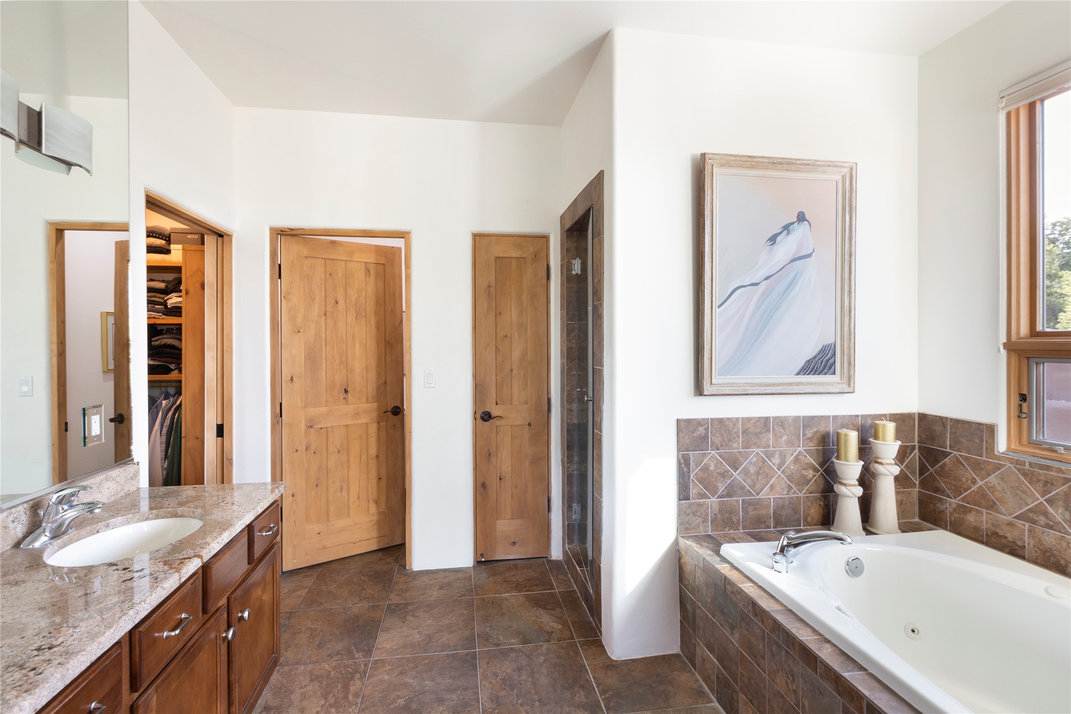 Buyers in this price range deserve a view of our wonderful mountains....but why bother with a house if the view doesn't make your heart stop? In this case, seeing is believing! Of course, it's also all about location: this tucked away subdivision is just 8 minutes to our Plaza and 5 minutes to the Opera: living here offers quiet and serenity plus proximity! When you drive past the gate you'll be wowed by the amazing mountain views, and the location of #59 promises the best of inspiring sunrises, spirit-raising Sangre de Cristo vistas, rosy reflected sunsets and clear moonlit evenings. The house, with 4400 sq ft, offers grand open spaces and private retreats, all single level with no steps to trip you up. Over 2000 sq ft of portals, which are so grand they are really outdoor living rooms, and with portals this size you can have parties for 2 or 20! The mountain views are always with you, both inside and outside! The cook's kitchen will be the envy of your friends with double ovens, subzero refrigerator and oversized wolf gas range...plus over 50' of granite counters - and a pantry of course. Beyond the kitchen you'll find the game room & bar, another ideal gathering space complete with pool table and kiva fireplace. Have you always wanted a wine room? this one will impress any oenophile. Your friends & family will love their generous guest rooms, completely en-suite with walk-in closets, plus private access to the portal. And then - main bedroom - you'll walk in and say "I could live in just this room"! This is a wonderful, spacious, private retreat, complete with its' own portal plus hot tub! Details abound with custom work such as over-sized vigas to support the large span of high ceilings and hand-crafted fireplaces so special they will make you smile. Viewing this house is a special introduction to a lovely home and spectacular - breath taking views! To own this house will make your life a daily pleasure! Why not experience Santa Fe at its' best?