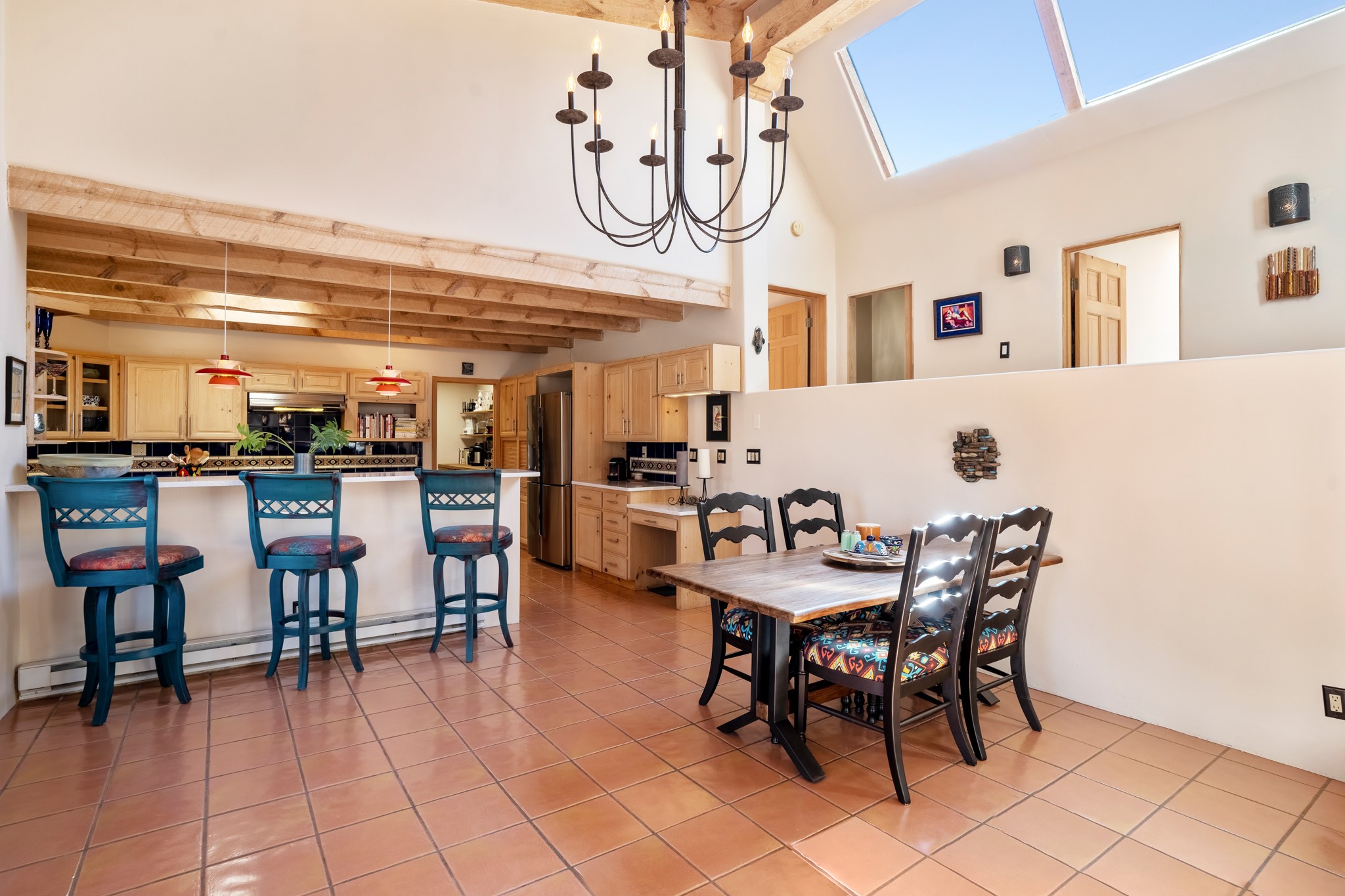 Pending- Please Show!! An exceptional property! Current inspections; radon, water, roof, and septic certification available. Best price per square foot in El Dorado! Large light-filled home has been well maintained, upgraded and shows pride of ownership. The open floor plan is perfect for entertaining, offers stunning sunset views and is steps away from walking and biking trails. The bottom floor features its own entrance, full bath, family room and 2 bedrooms. It can be utilized for guests, office space, children, income rental or studio space. See List of Improvements in Documents. El Dorado is an easy 15 minute commute from Santa Fe. As a sought after community it offers many amenities including: restaurants, community pool, resident only dog park, grocery store, farmers market, community center, school, library, fire station, starry night skies, and horse facilities. Schedule your showing today!