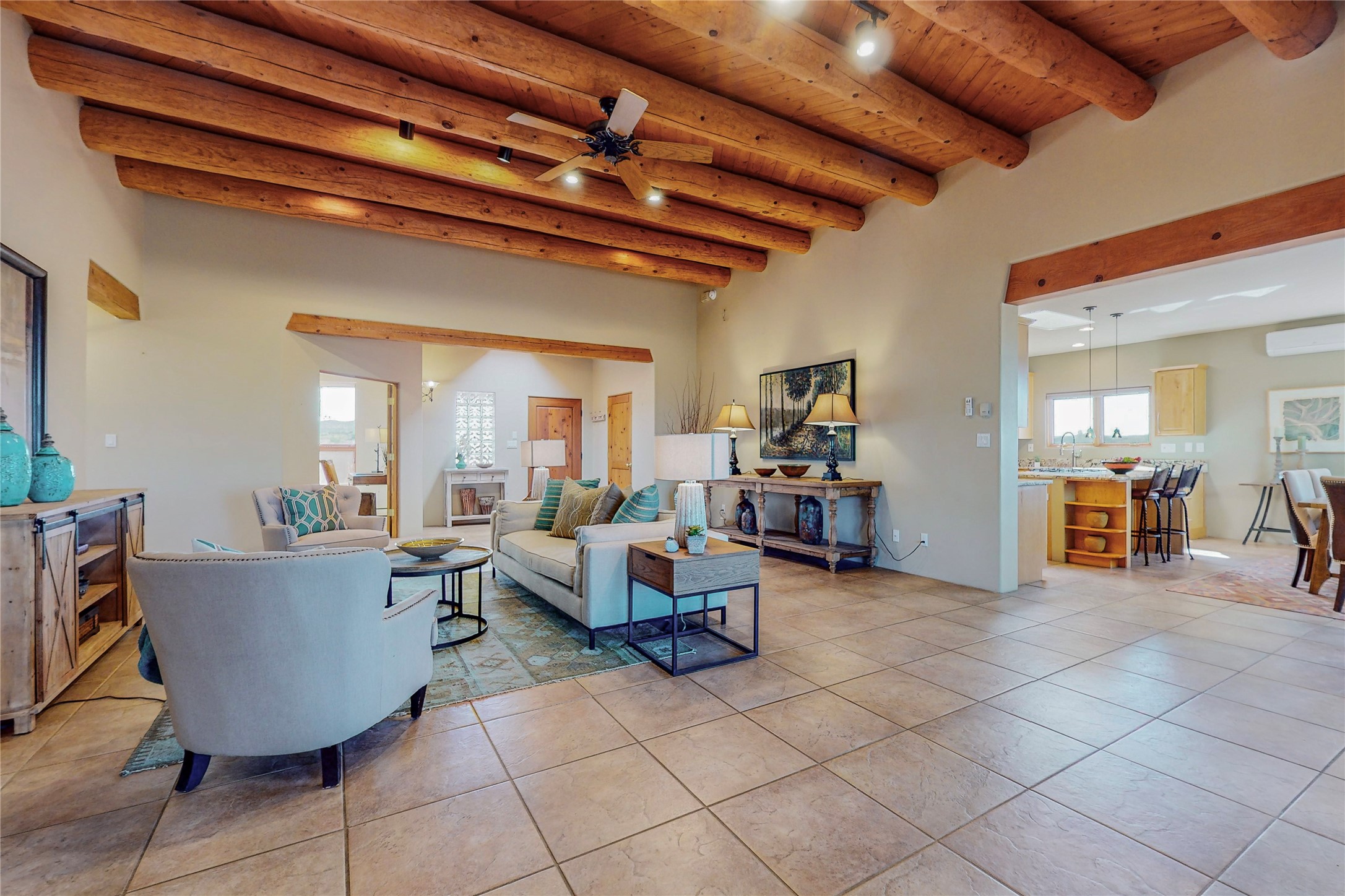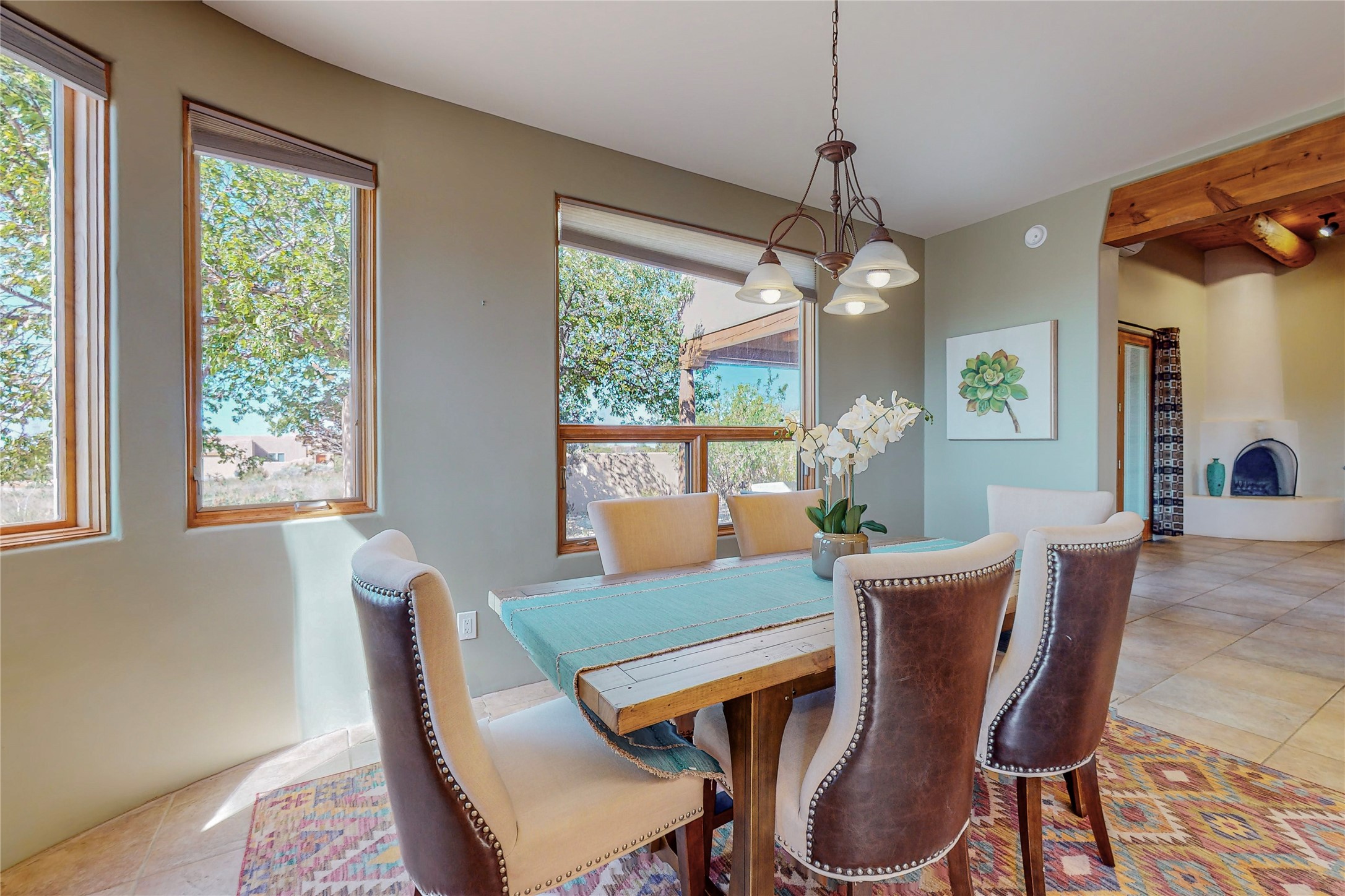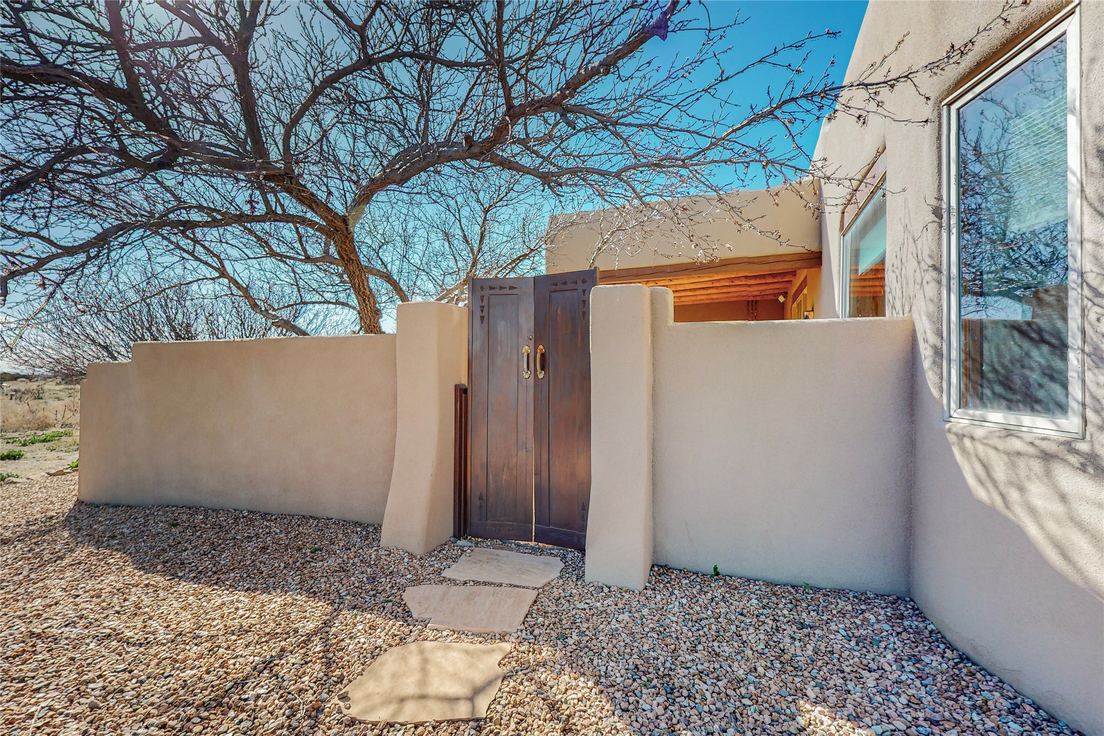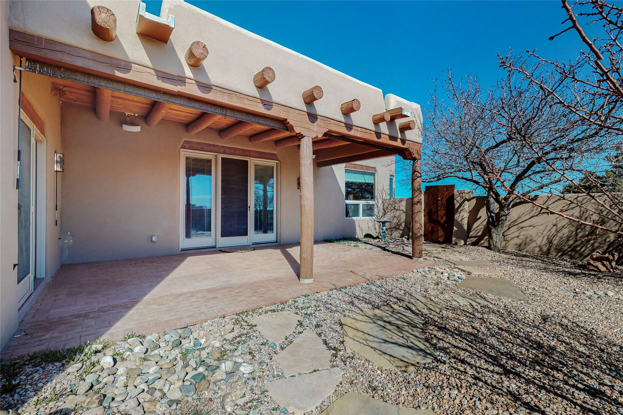 Just what you've been waiting for! Lovely one owner single family home in La Paz at Eldorado. Right across the road from two large greenbelt areas on a 3.27 acre lot. This home has three bedrooms, two baths and a large office/ studio that could be used for a variety of lifestyles. Built by Casita Concepts in 2002. Floors are tile and carpet with plenty of traditional Santa Fe style but not overdone. Radiant heat plus mini splits for refrigerated air conditioning and a backup heat source. New landscaping in the front drive sets this home off from all the rest! Recently renovated kitchen with granite countertops makes cooking and entertaining a delight. Add in front and backyard enclosed patios and the expanded living space for Spring thru Fall is just what the Doctor ordered! Flood Zone was changed by FEMA in 2009 to Zone X. FEMA has not updated their maps since 2008 thus it is still showing on their maps as Zone A. See Documents for verification.