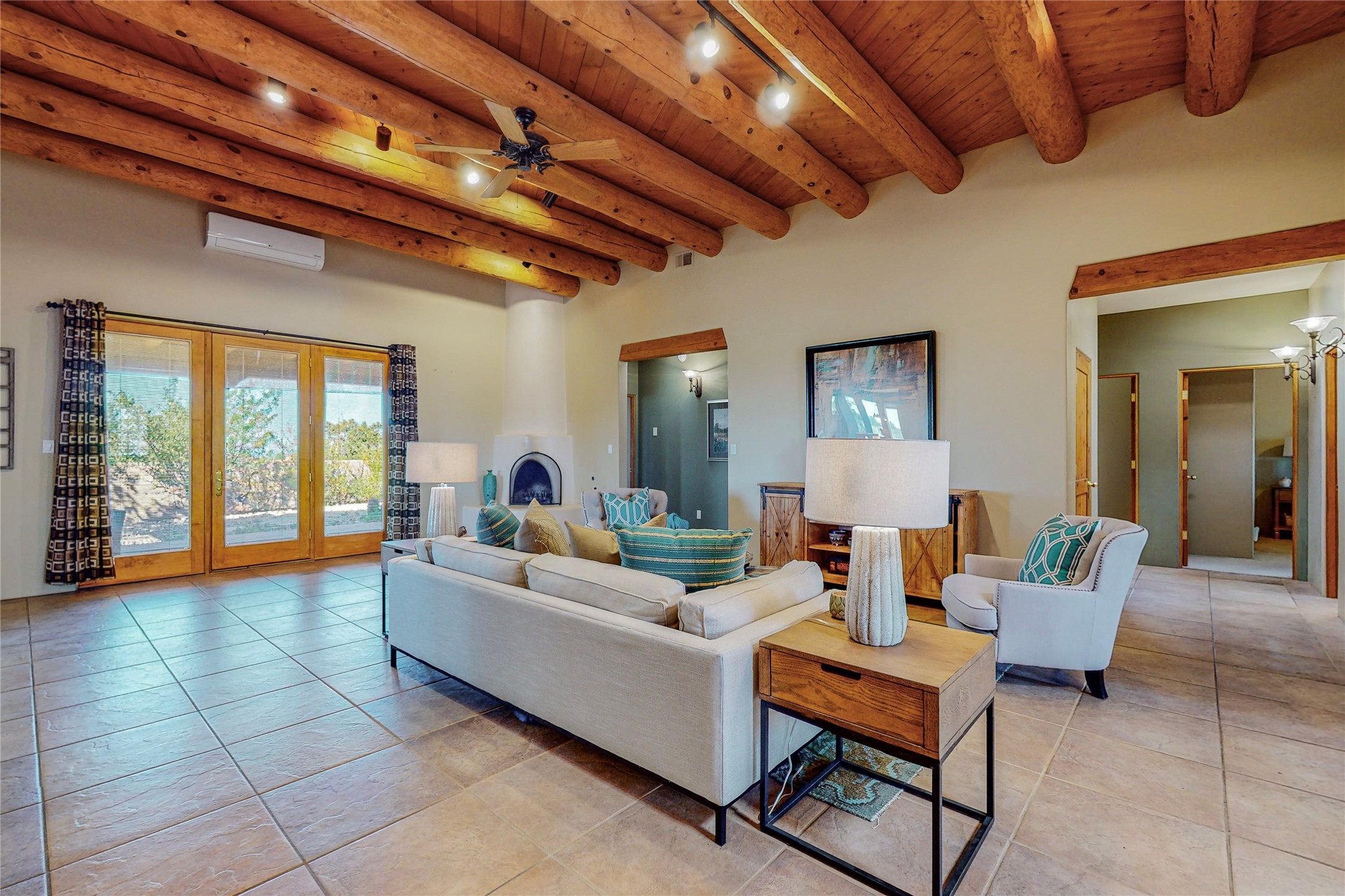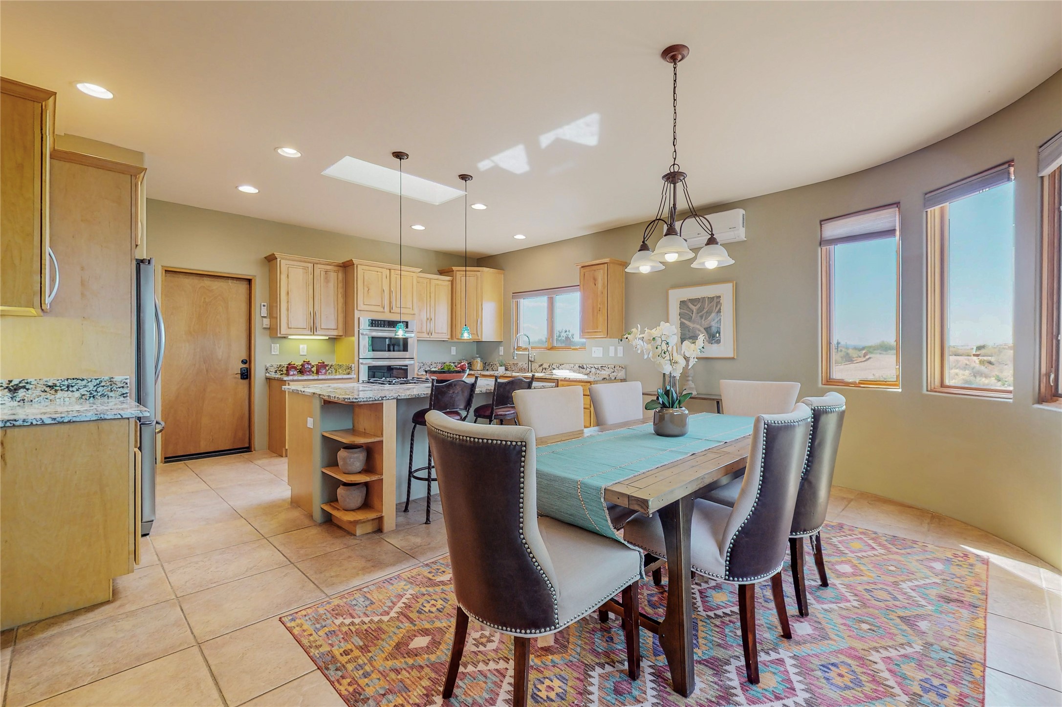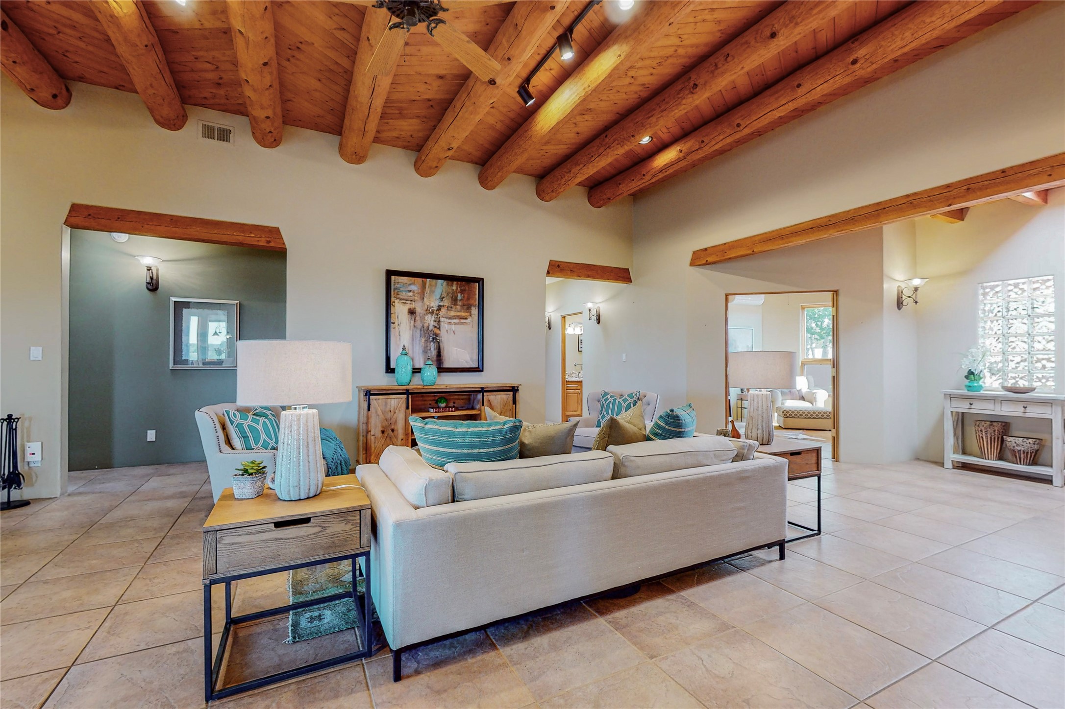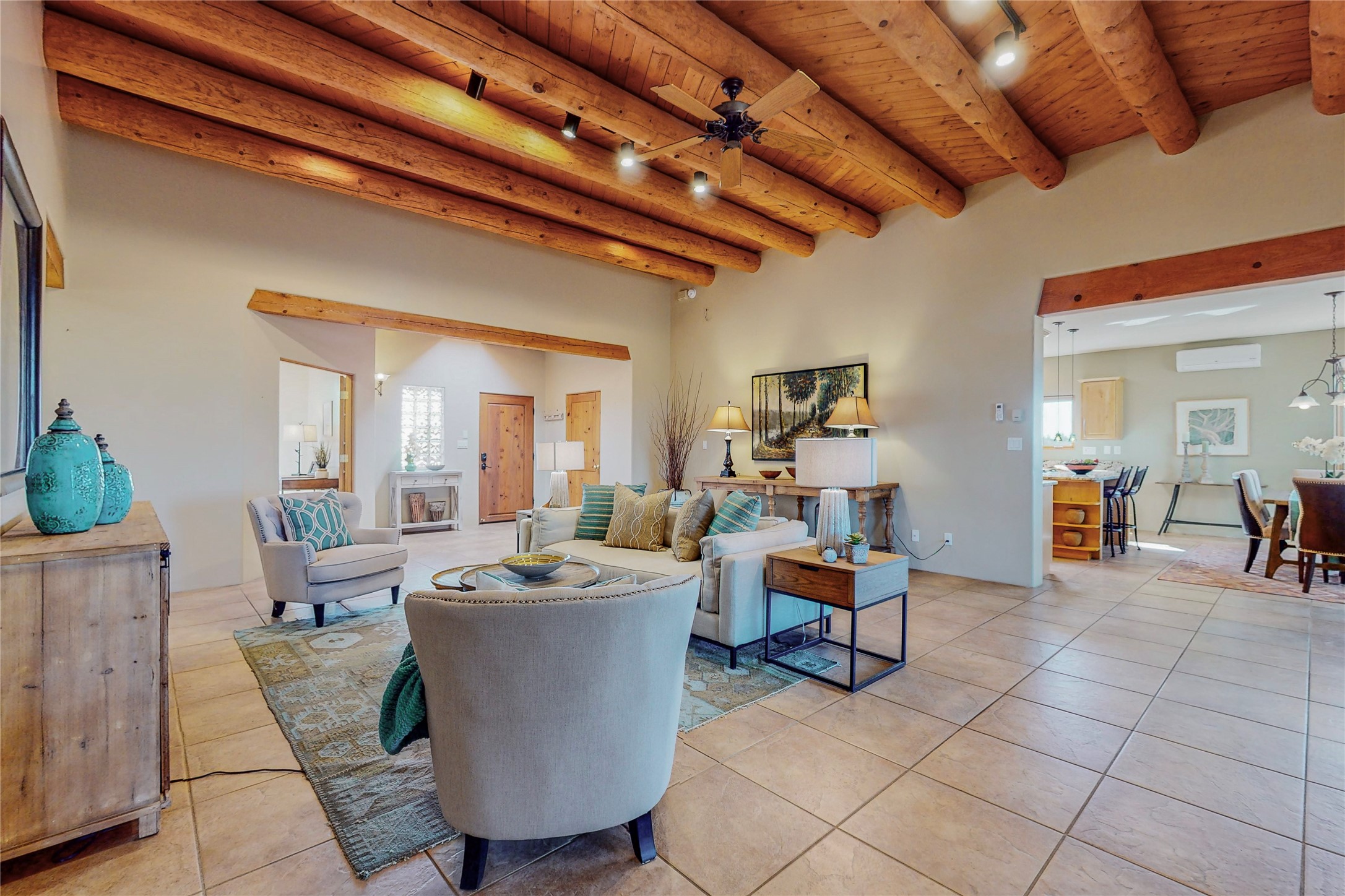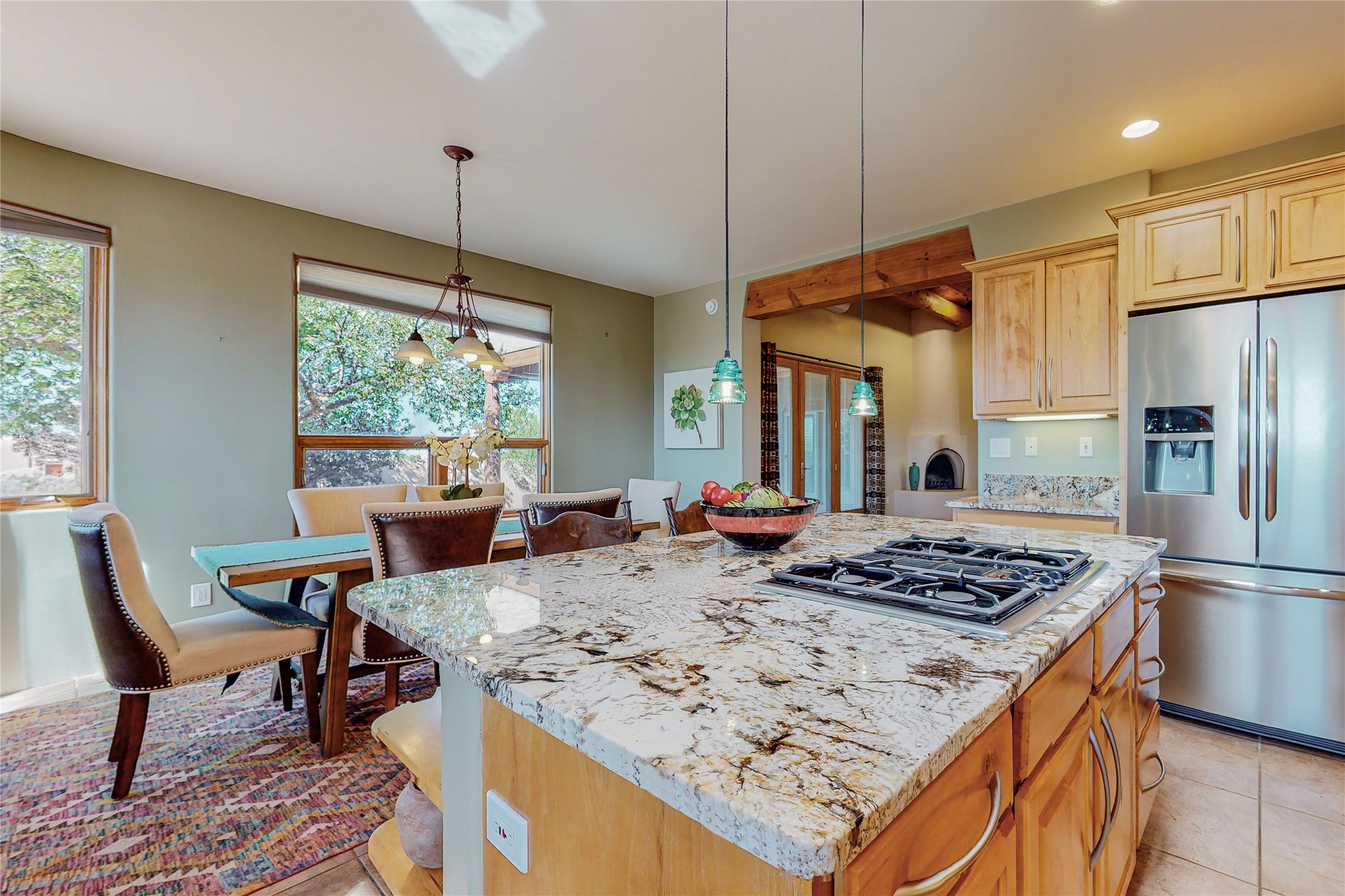 Just what you've been waiting for! Lovely one owner single family home in La Paz at Eldorado. Right across the road from two large greenbelt areas on a 3.27 acre lot. This home has three bedrooms, two baths and a large office/ studio that could be used for a variety of lifestyles. Built by Casita Concepts in 2002. Floors are tile and carpet with plenty of traditional Santa Fe style but not overdone. Radiant heat plus mini splits for refrigerated air conditioning and a backup heat source. New landscaping in the front drive sets this home off from all the rest! Recently renovated kitchen with granite countertops makes cooking and entertaining a delight. Add in front and backyard enclosed patios and the expanded living space for Spring thru Fall is just what the Doctor ordered! Flood Zone was changed by FEMA in 2009 to Zone X. FEMA has not updated their maps since 2008 thus it is still showing on their maps as Zone A. See Documents for verification.