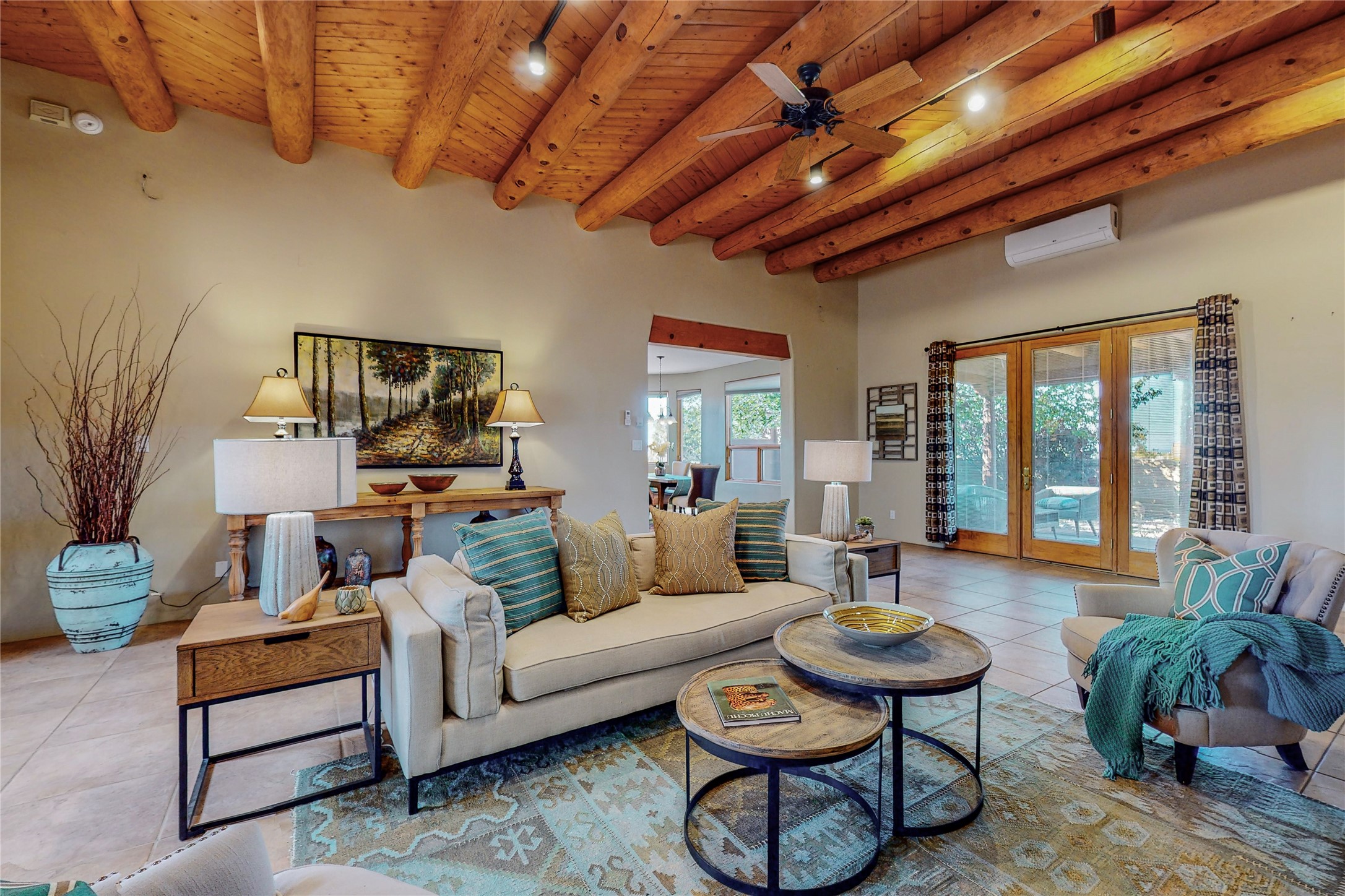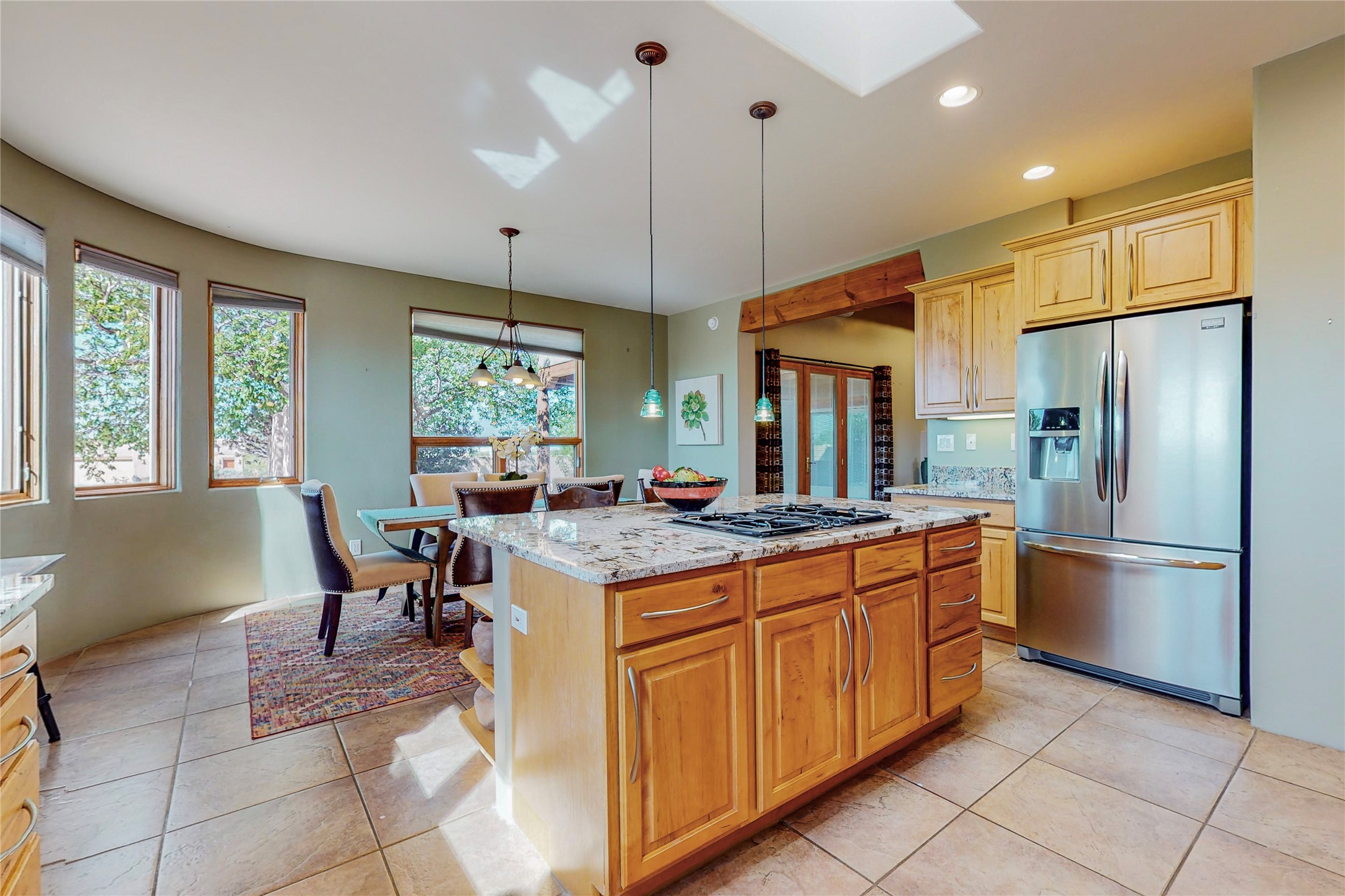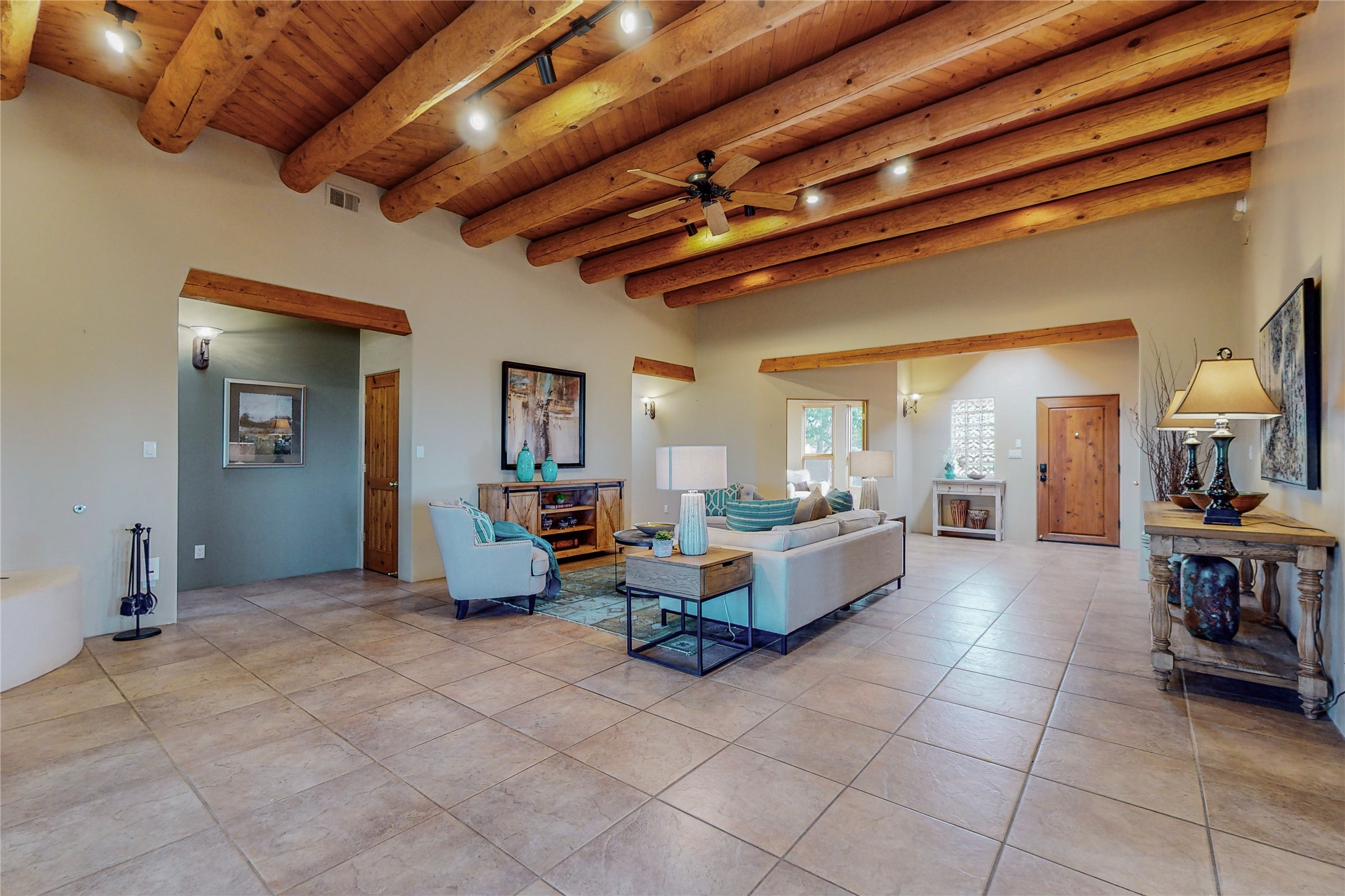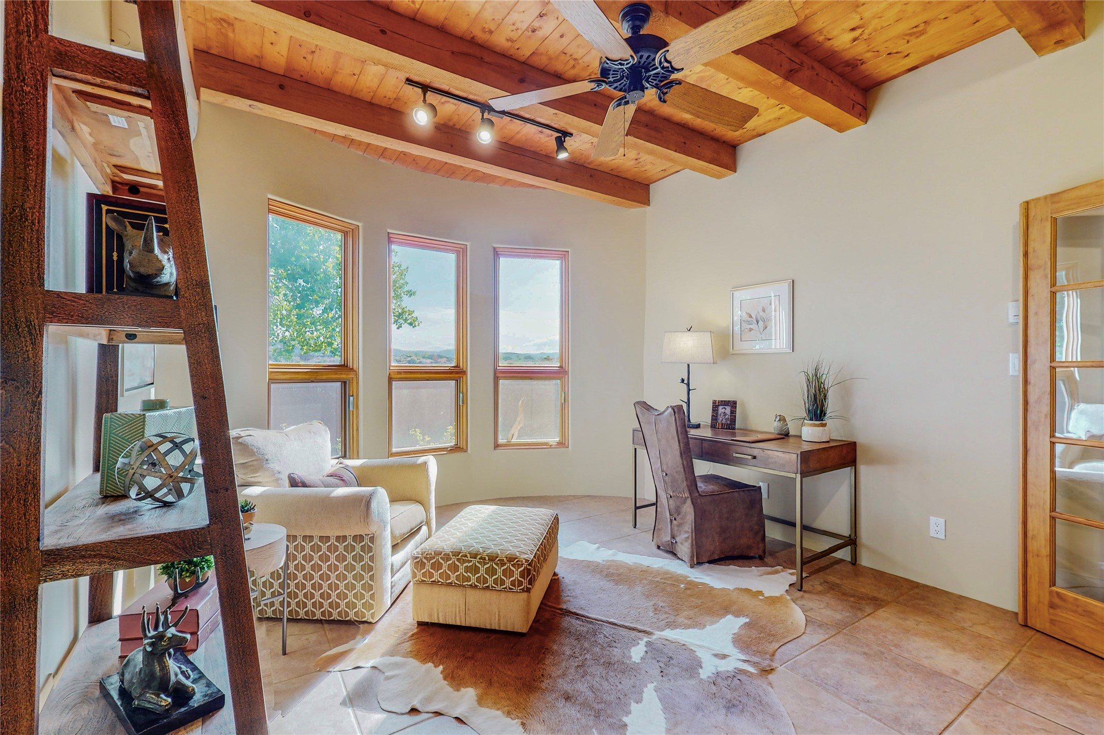 Just what you've been waiting for! Lovely one owner single family home in La Paz at Eldorado. Right across the road from two large greenbelt areas on a 3.27 acre lot. This home has three bedrooms, two baths and a large office/ studio that could be used for a variety of lifestyles. Built by Casita Concepts in 2002. Floors are tile and carpet with plenty of traditional Santa Fe style but not overdone. Radiant heat plus mini splits for refrigerated air conditioning and a backup heat source. New landscaping in the front drive sets this home off from all the rest! Recently renovated kitchen with granite countertops makes cooking and entertaining a delight. Add in front and backyard enclosed patios and the expanded living space for Spring thru Fall is just what the Doctor ordered! Flood Zone was changed by FEMA in 2009 to Zone X. FEMA has not updated their maps since 2008 thus it is still showing on their maps as Zone A. See Documents for verification.