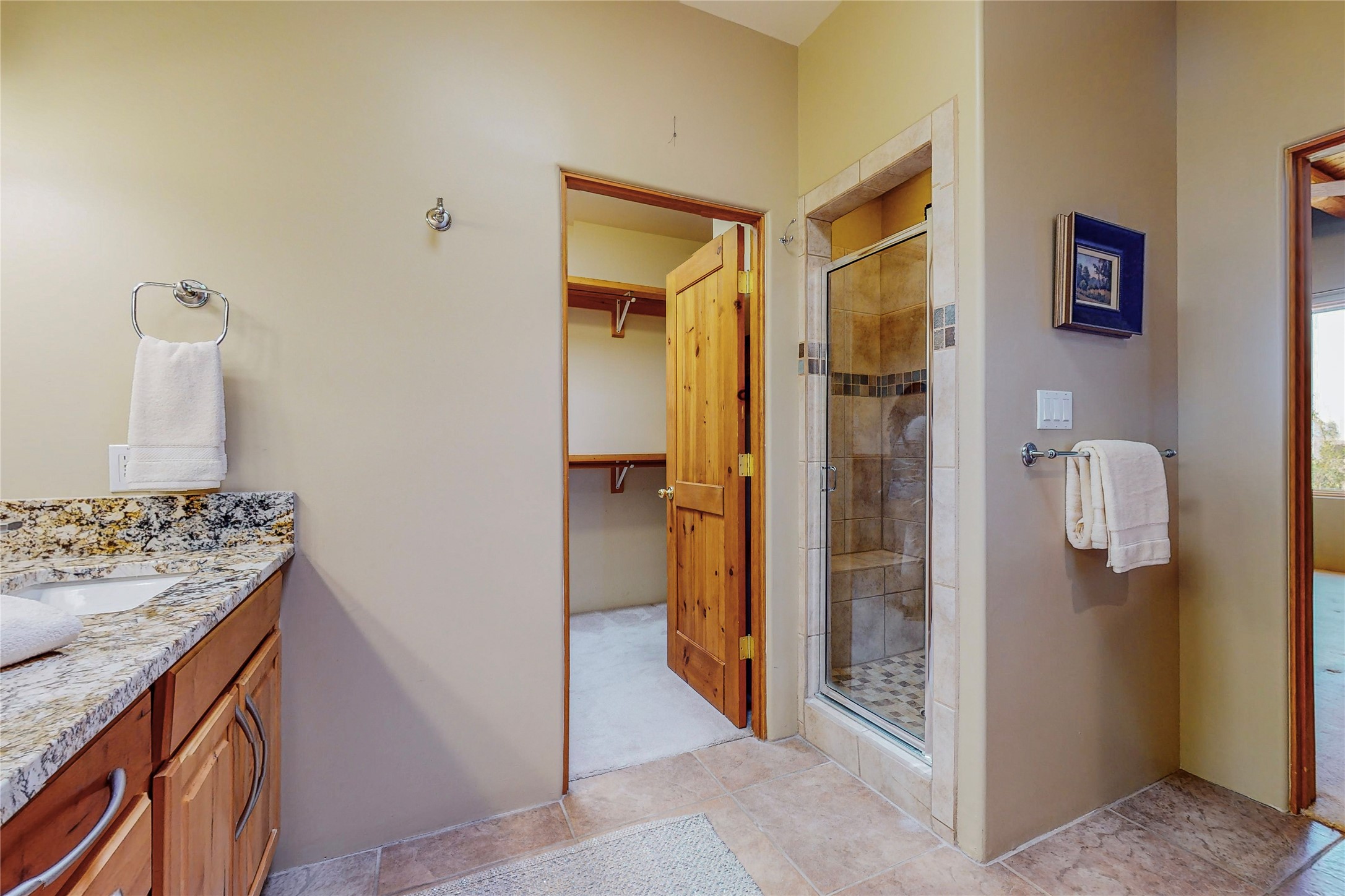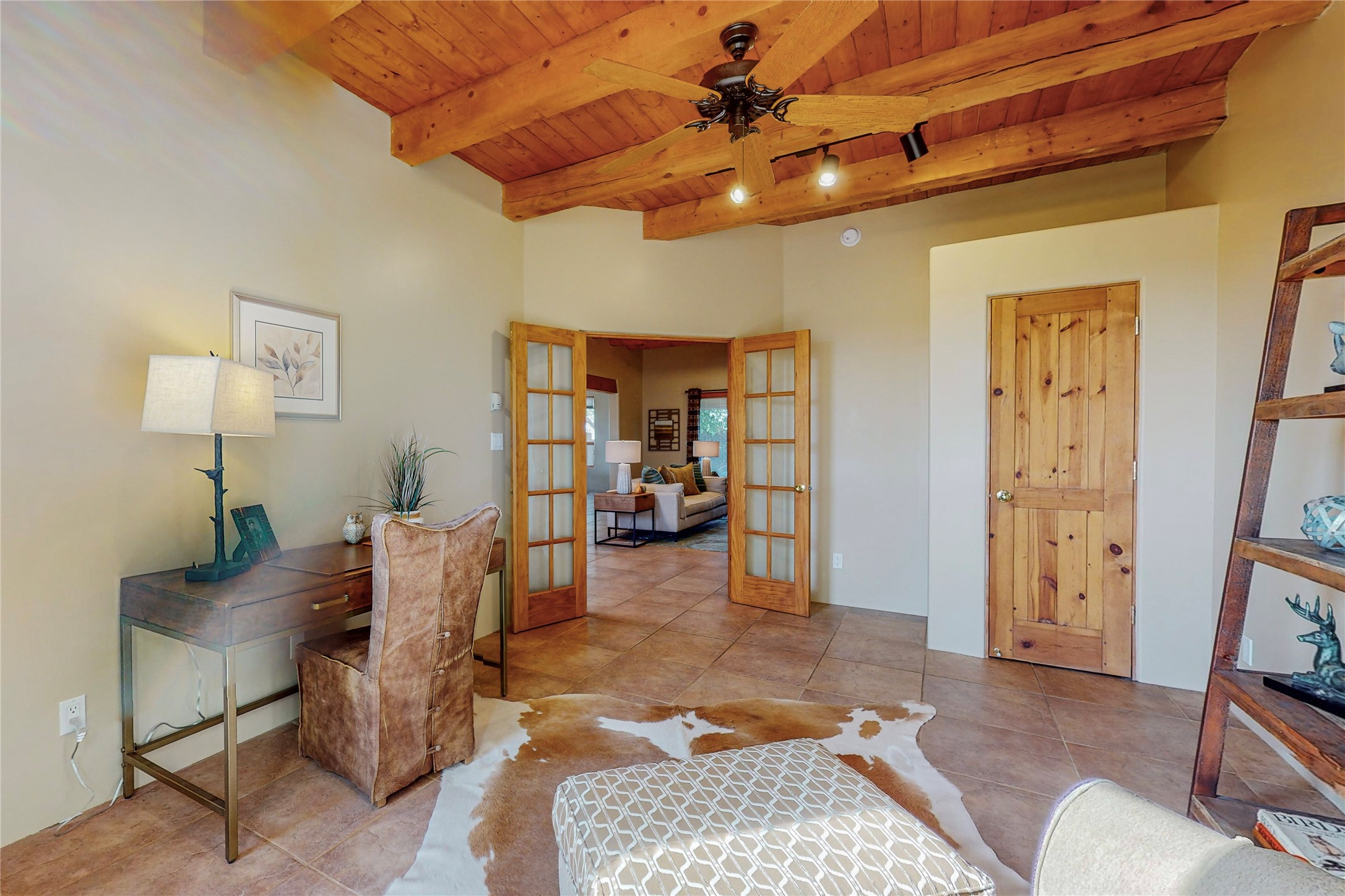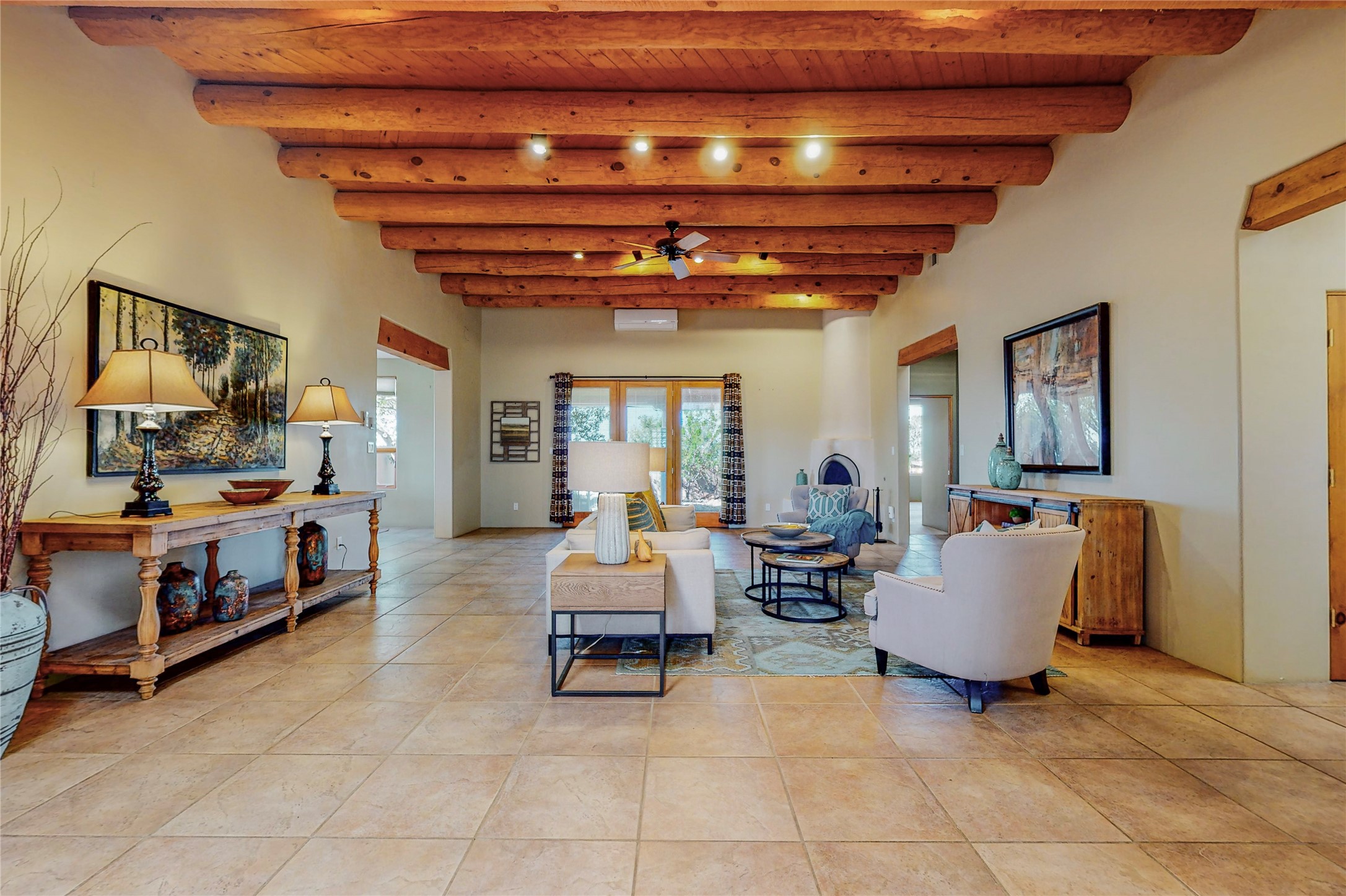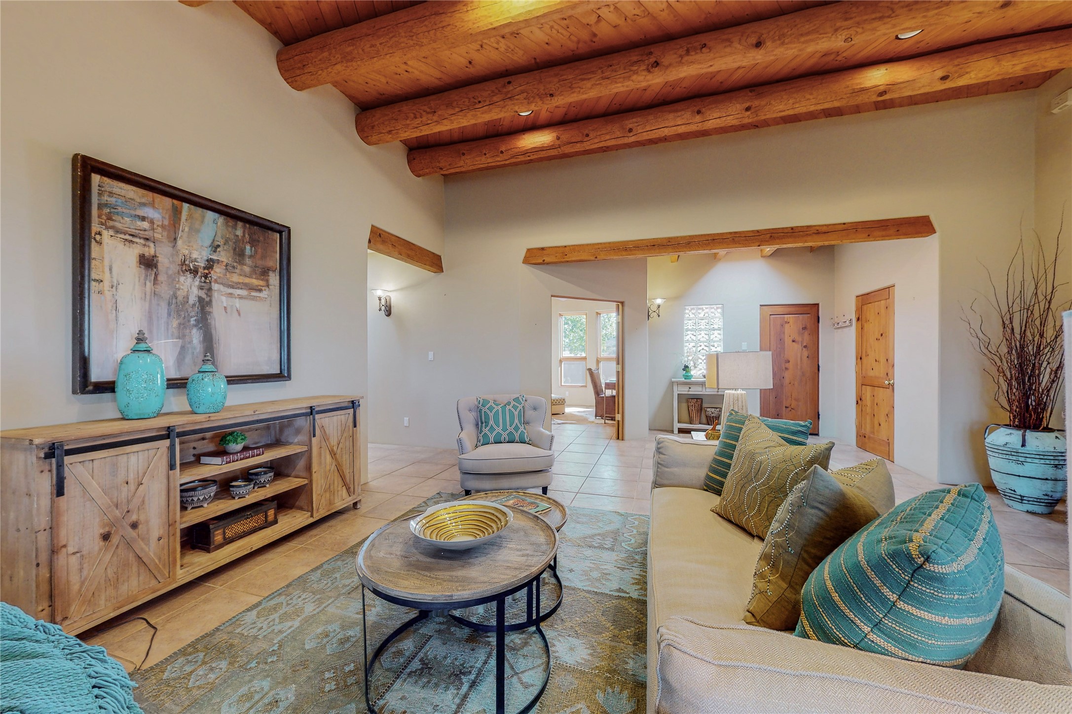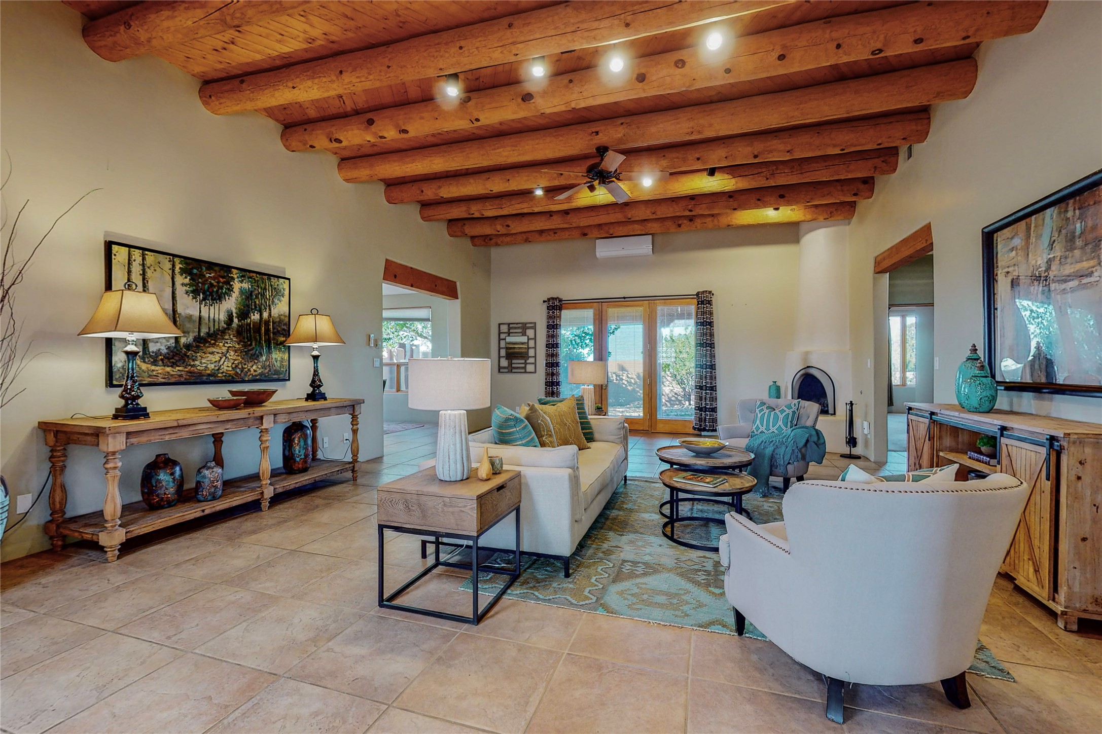 Just what you've been waiting for! Lovely one owner single family home in La Paz at Eldorado. Right across the road from two large greenbelt areas on a 3.27 acre lot. This home has three bedrooms, two baths and a large office/ studio that could be used for a variety of lifestyles. Built by Casita Concepts in 2002. Floors are tile and carpet with plenty of traditional Santa Fe style but not overdone. Radiant heat plus mini splits for refrigerated air conditioning and a backup heat source. New landscaping in the front drive sets this home off from all the rest! Recently renovated kitchen with granite countertops makes cooking and entertaining a delight. Add in front and backyard enclosed patios and the expanded living space for Spring thru Fall is just what the Doctor ordered! Flood Zone was changed by FEMA in 2009 to Zone X. FEMA has not updated their maps since 2008 thus it is still showing on their maps as Zone A. See Documents for verification.