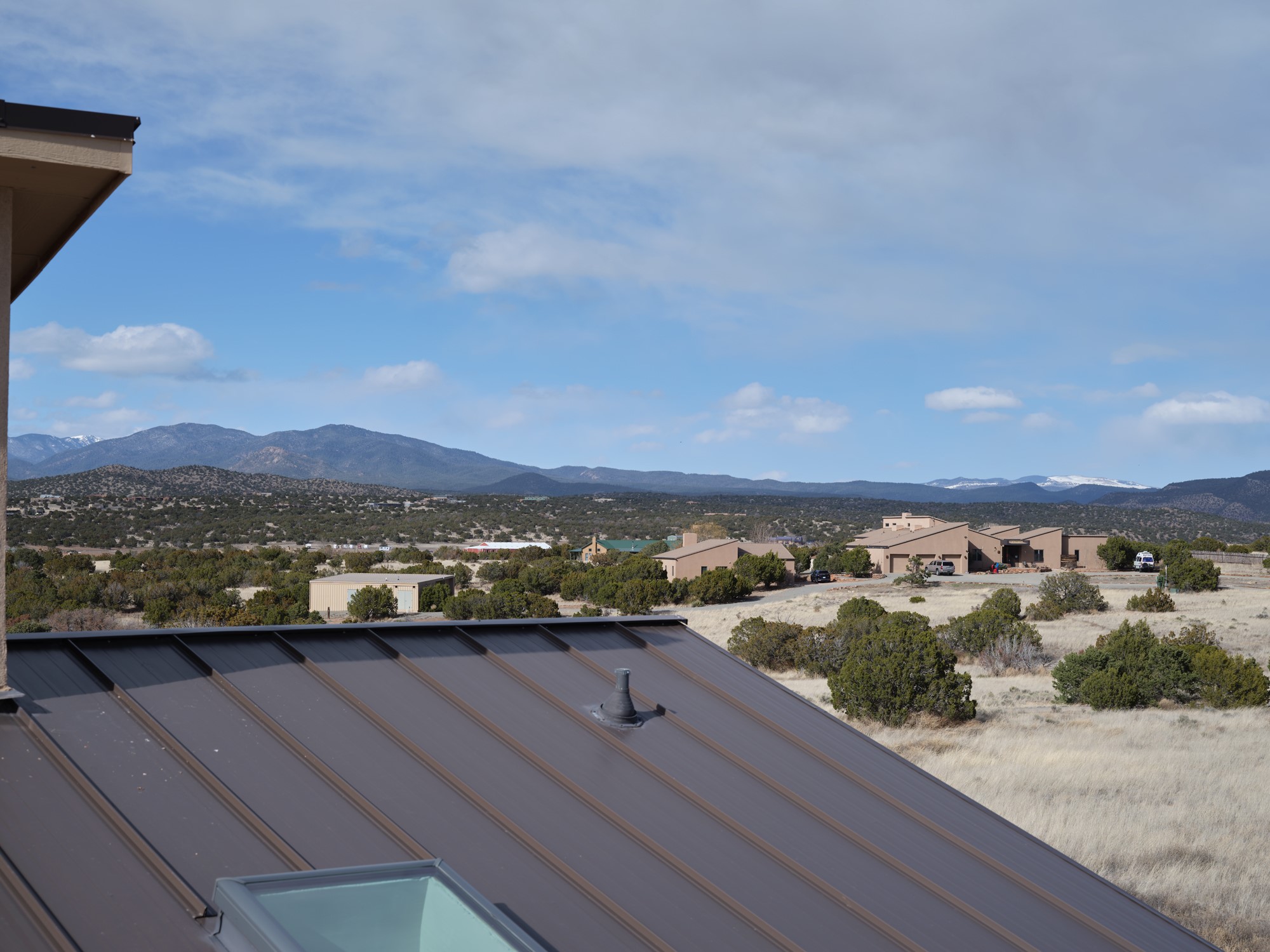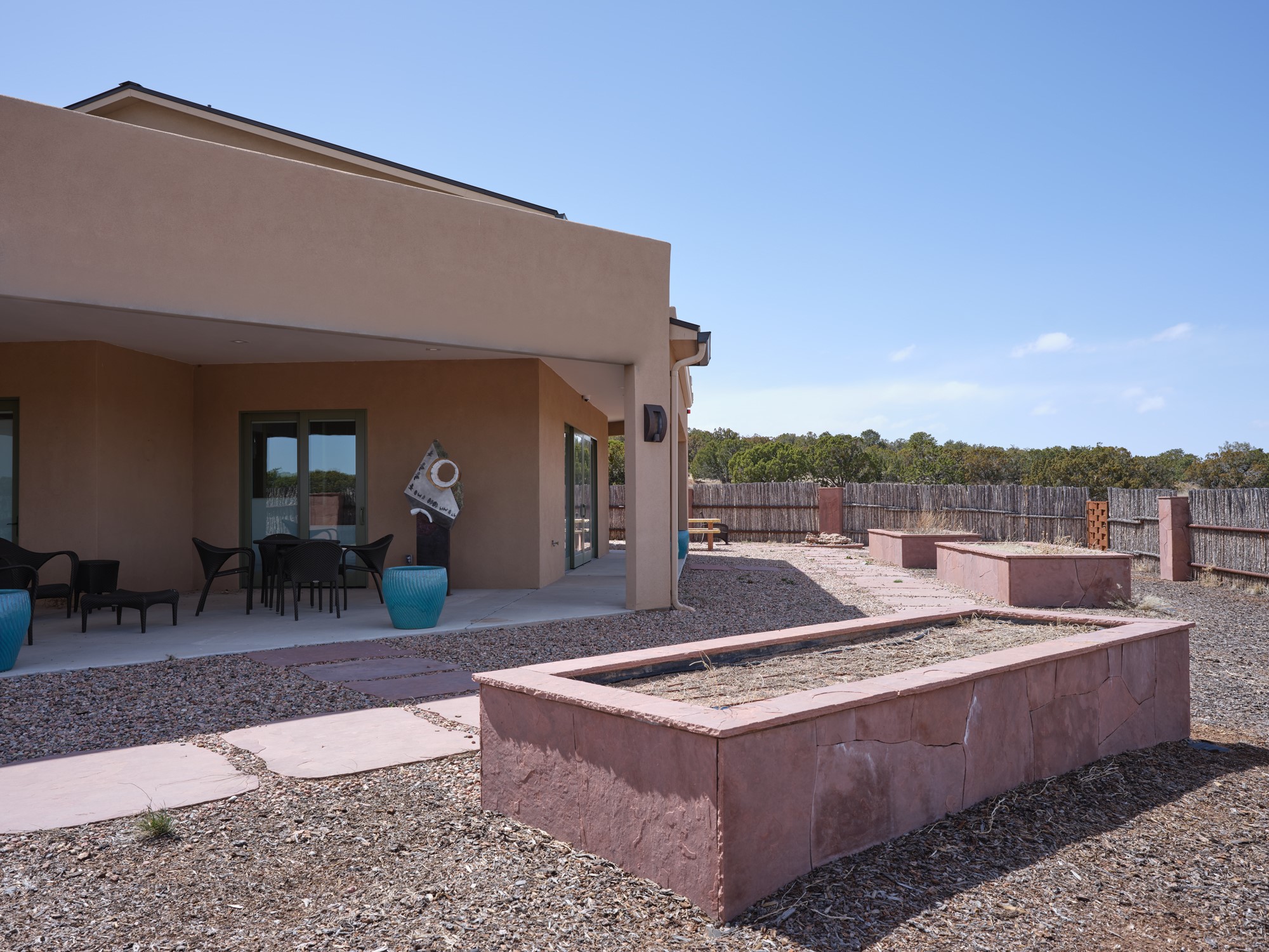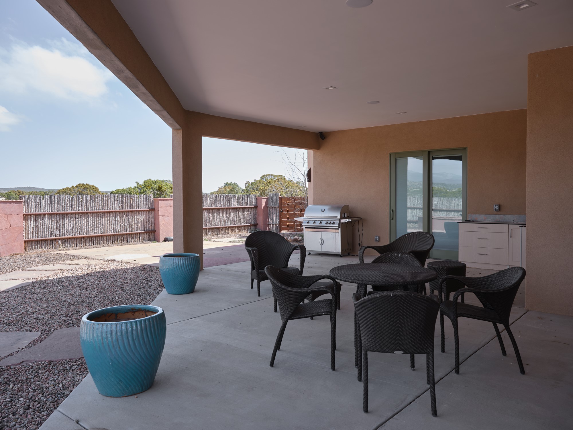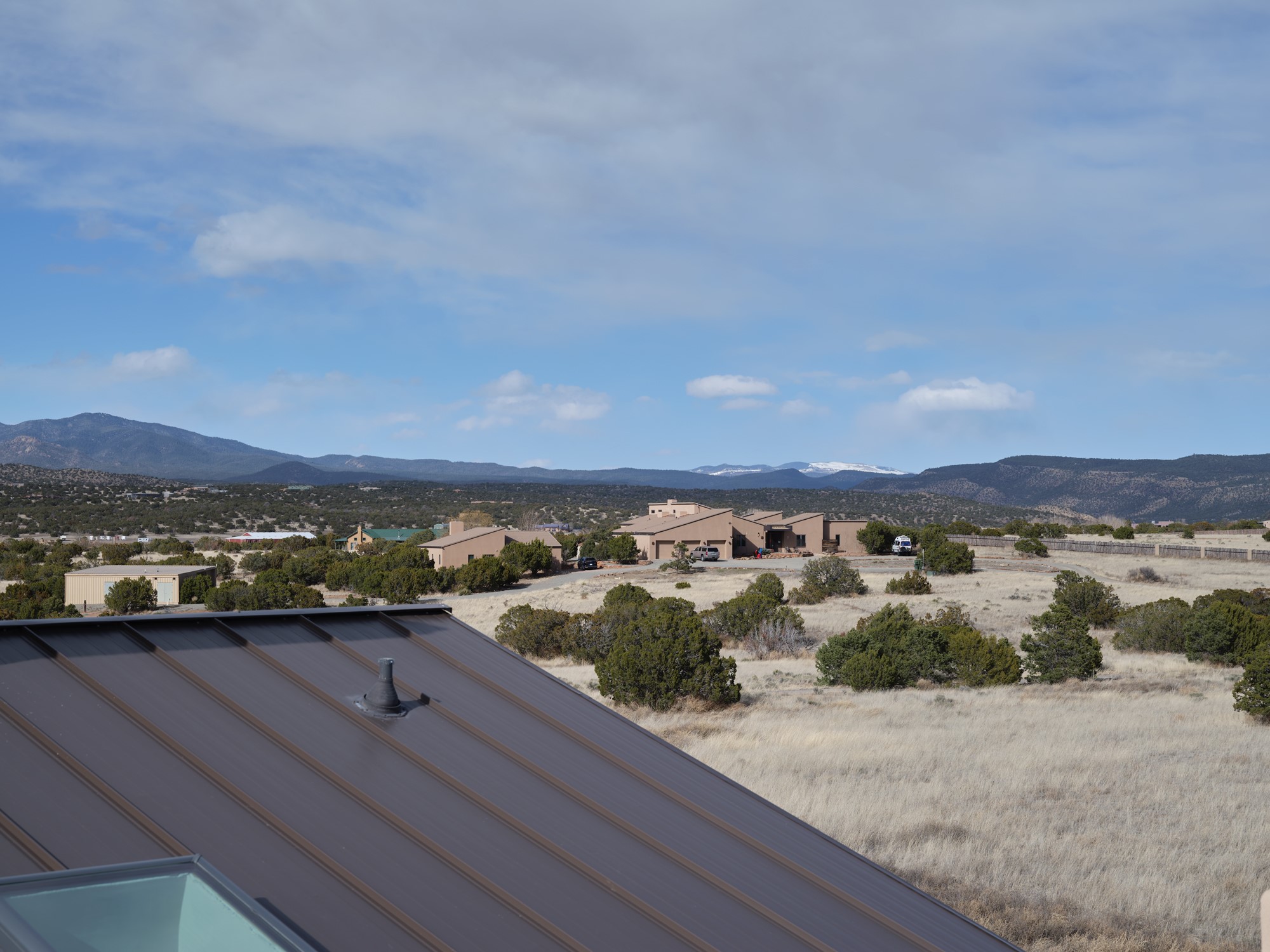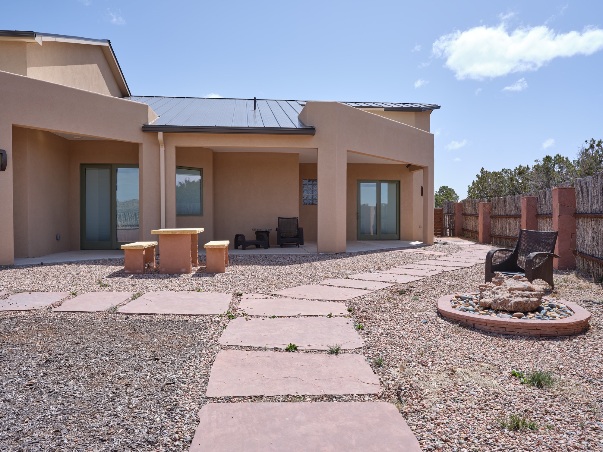 Price reduced substantially! 26 Cattle Drive is a contemporary, 4-bed/4-bath home situated on 12.5 acres on a high ridge overlooking Lamy and the Galisteo basin with expansive, unobstructed views of the Sangre de Cristo, Jemez, and Ortiz mountains. In a pastoral setting adjoining a 100-acre private easement and the 4,000 acre Eldorado Wilderness, 26 Cattle Dr. is just 20 minutes from the Plaza and 5 minutes to the Eldorado Super Market, shopping, and nearby restaurants. Living room, master bedroom and three of the four bedrooms have direct access to the enclosed north-side patio. All bedrooms are ensuite (three full and one 3/4). A fully outfitted chef's kitchen including warming drawer beneath stove top and dramatic, lofty ceilings in the living/dining/kitchen and master bedroom grace the home. Counter-tops throughout are matching granite. Utilities include natural gas, a shared well and septic. Security, lighting, and entertainment systems are master-controlled. The 2-car attached garage includes a large separate, locked large storage area. The roof-mounted solar panels provide almost 100% of the electrical requirements. Rainwater is captured by a cistern for outdoor watering. An "art-wall" and entryway display case accommodate artwork. The expansive outdoor deck, accessible through an inside stairway provides yet another way to enjoy the spectacular views. Completed in 2018, 26 Cattle Drive is an eminently livable, one-of-a-kind property.
