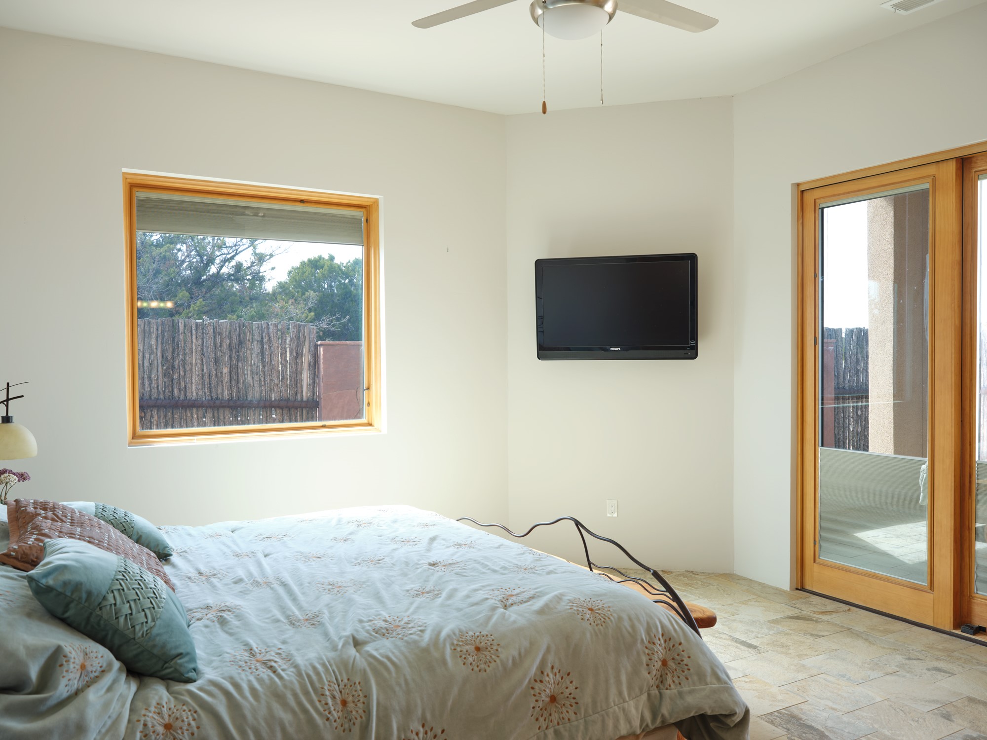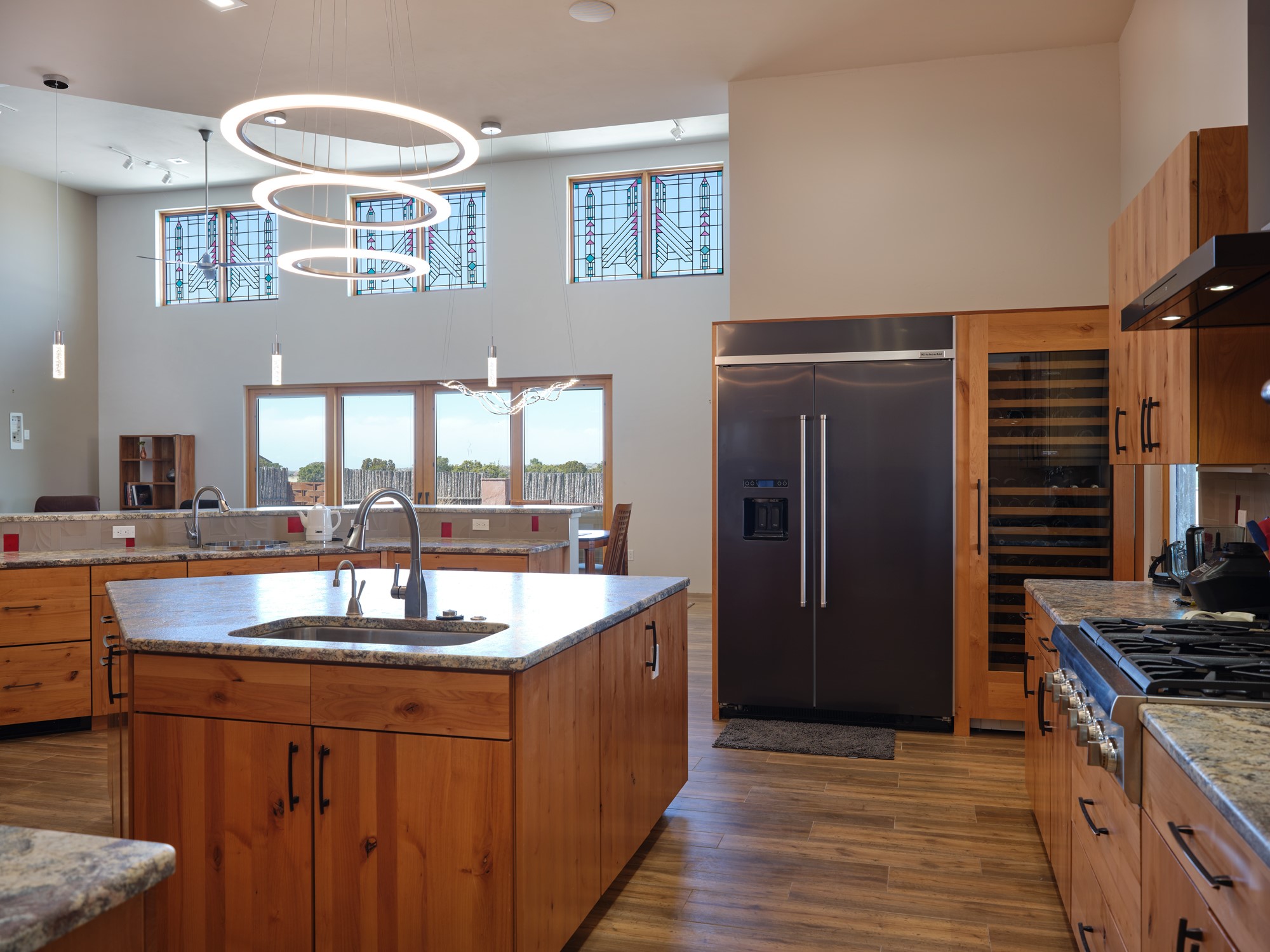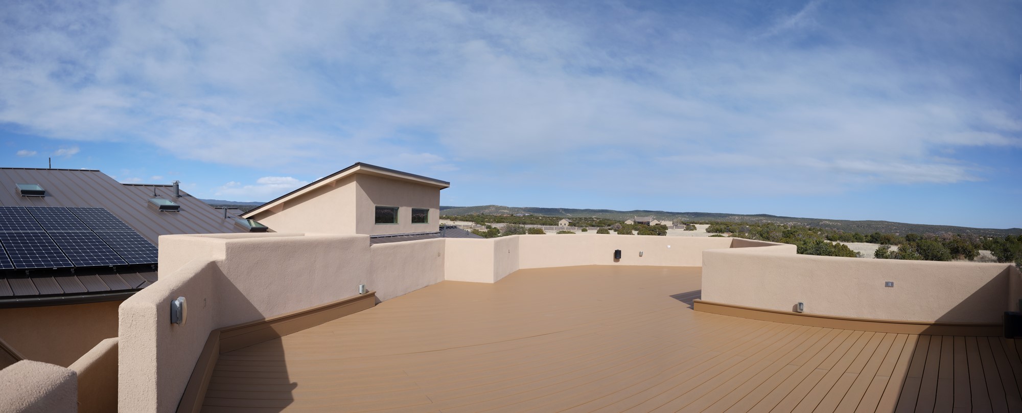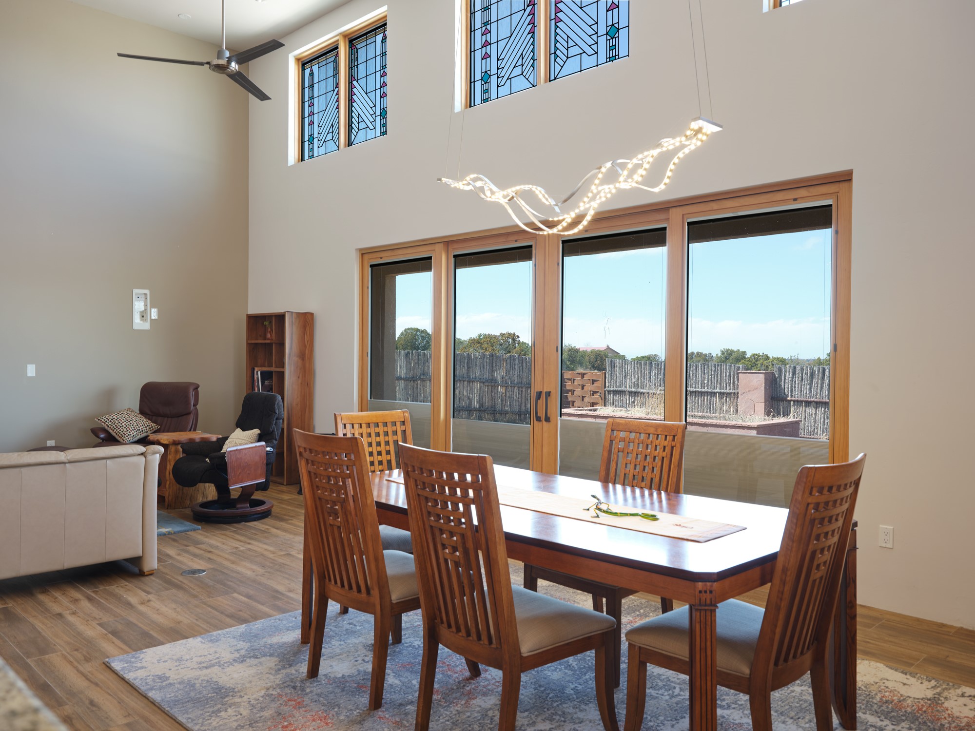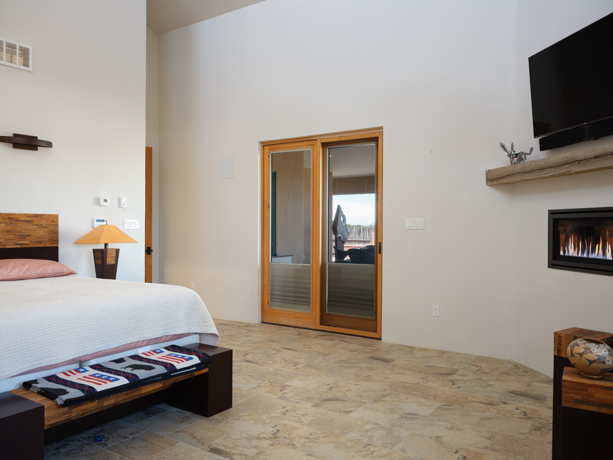 Price reduced substantially! 26 Cattle Drive is a contemporary, 4-bed/4-bath home situated on 12.5 acres on a high ridge overlooking Lamy and the Galisteo basin with expansive, unobstructed views of the Sangre de Cristo, Jemez, and Ortiz mountains. In a pastoral setting adjoining a 100-acre private easement and the 4,000 acre Eldorado Wilderness, 26 Cattle Dr. is just 20 minutes from the Plaza and 5 minutes to the Eldorado Super Market, shopping, and nearby restaurants. Living room, master bedroom and three of the four bedrooms have direct access to the enclosed north-side patio. All bedrooms are ensuite (three full and one 3/4). A fully outfitted chef's kitchen including warming drawer beneath stove top and dramatic, lofty ceilings in the living/dining/kitchen and master bedroom grace the home. Counter-tops throughout are matching granite. Utilities include natural gas, a shared well and septic. Security, lighting, and entertainment systems are master-controlled. The 2-car attached garage includes a large separate, locked large storage area. The roof-mounted solar panels provide almost 100% of the electrical requirements. Rainwater is captured by a cistern for outdoor watering. An "art-wall" and entryway display case accommodate artwork. The expansive outdoor deck, accessible through an inside stairway provides yet another way to enjoy the spectacular views. Completed in 2018, 26 Cattle Drive is an eminently livable, one-of-a-kind property.