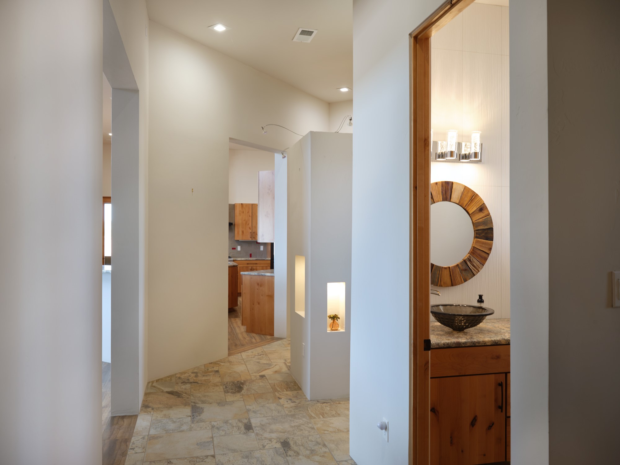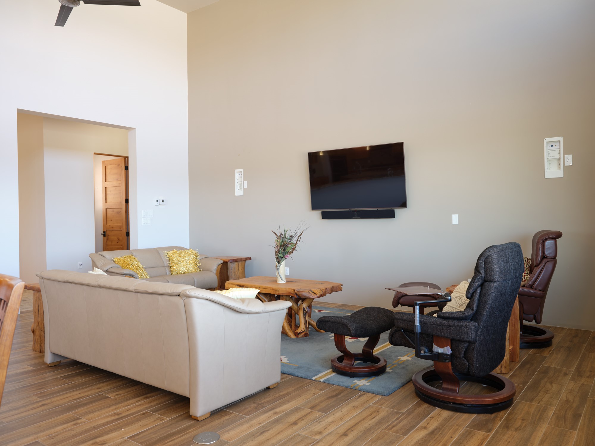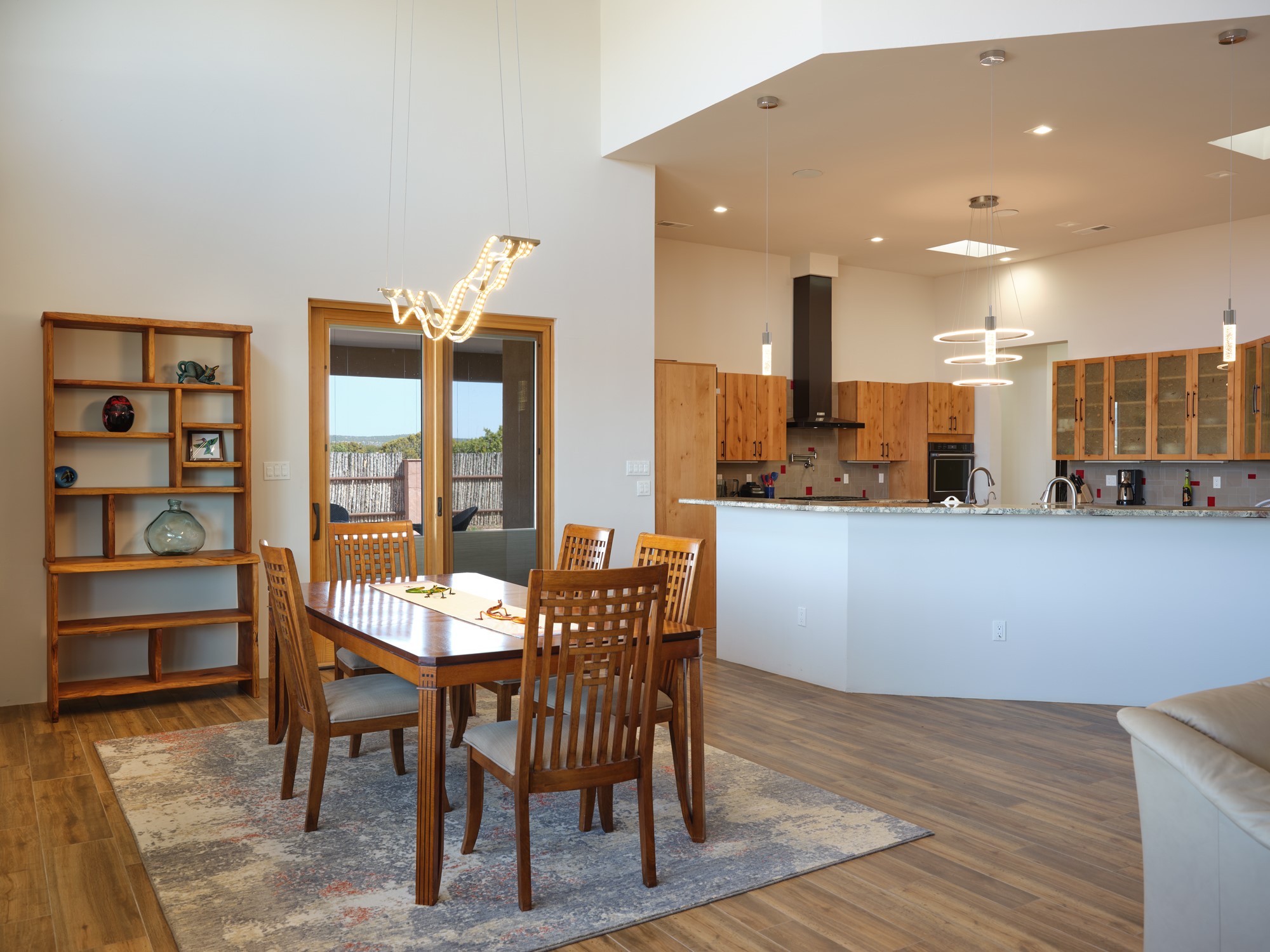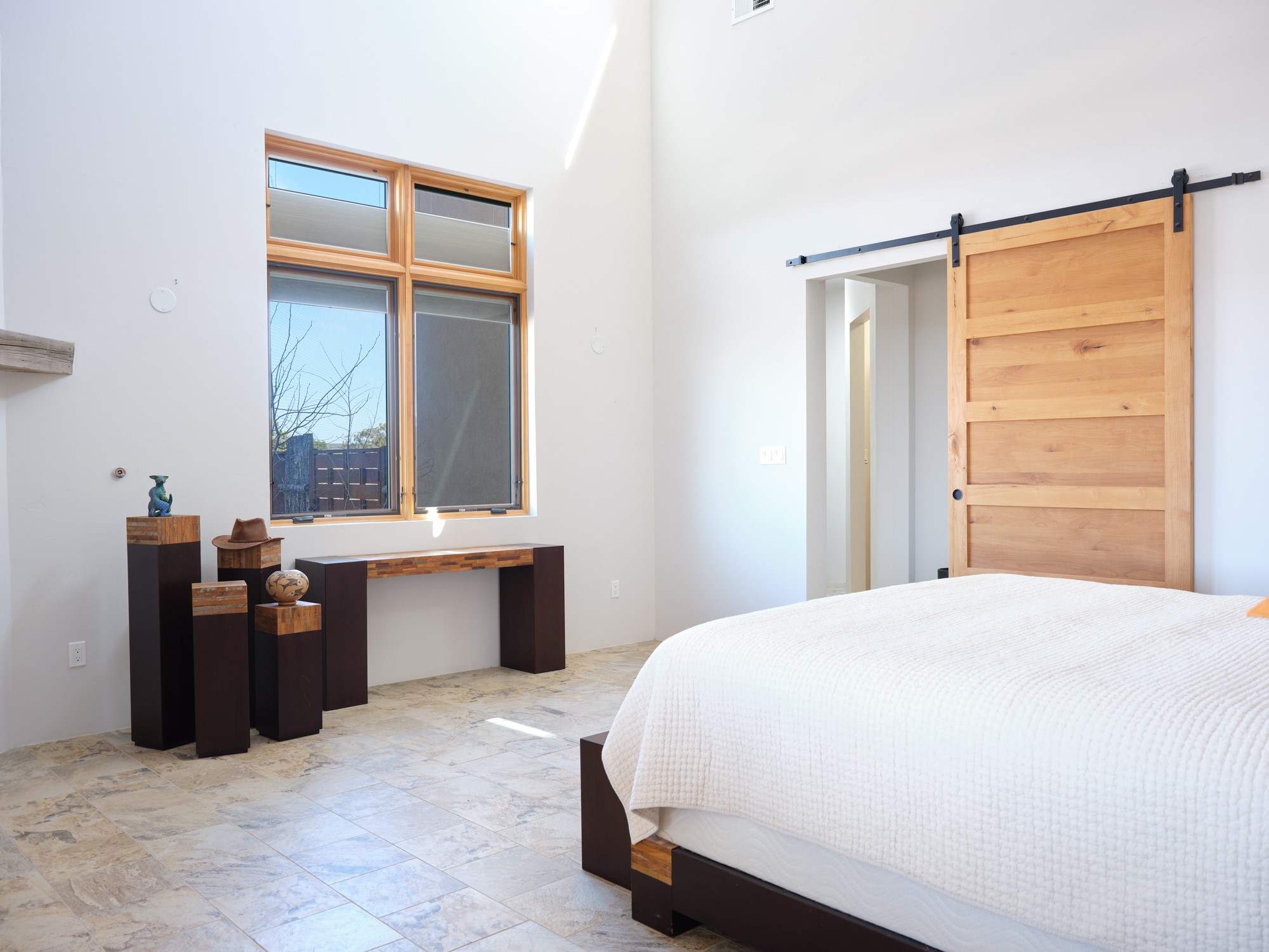 Price reduced substantially! 26 Cattle Drive is a contemporary, 4-bed/4-bath home situated on 12.5 acres on a high ridge overlooking Lamy and the Galisteo basin with expansive, unobstructed views of the Sangre de Cristo, Jemez, and Ortiz mountains. In a pastoral setting adjoining a 100-acre private easement and the 4,000 acre Eldorado Wilderness, 26 Cattle Dr. is just 20 minutes from the Plaza and 5 minutes to the Eldorado Super Market, shopping, and nearby restaurants. Living room, master bedroom and three of the four bedrooms have direct access to the enclosed north-side patio. All bedrooms are ensuite (three full and one 3/4). A fully outfitted chef's kitchen including warming drawer beneath stove top and dramatic, lofty ceilings in the living/dining/kitchen and master bedroom grace the home. Counter-tops throughout are matching granite. Utilities include natural gas, a shared well and septic. Security, lighting, and entertainment systems are master-controlled. The 2-car attached garage includes a large separate, locked large storage area. The roof-mounted solar panels provide almost 100% of the electrical requirements. Rainwater is captured by a cistern for outdoor watering. An "art-wall" and entryway display case accommodate artwork. The expansive outdoor deck, accessible through an inside stairway provides yet another way to enjoy the spectacular views. Completed in 2018, 26 Cattle Drive is an eminently livable, one-of-a-kind property.