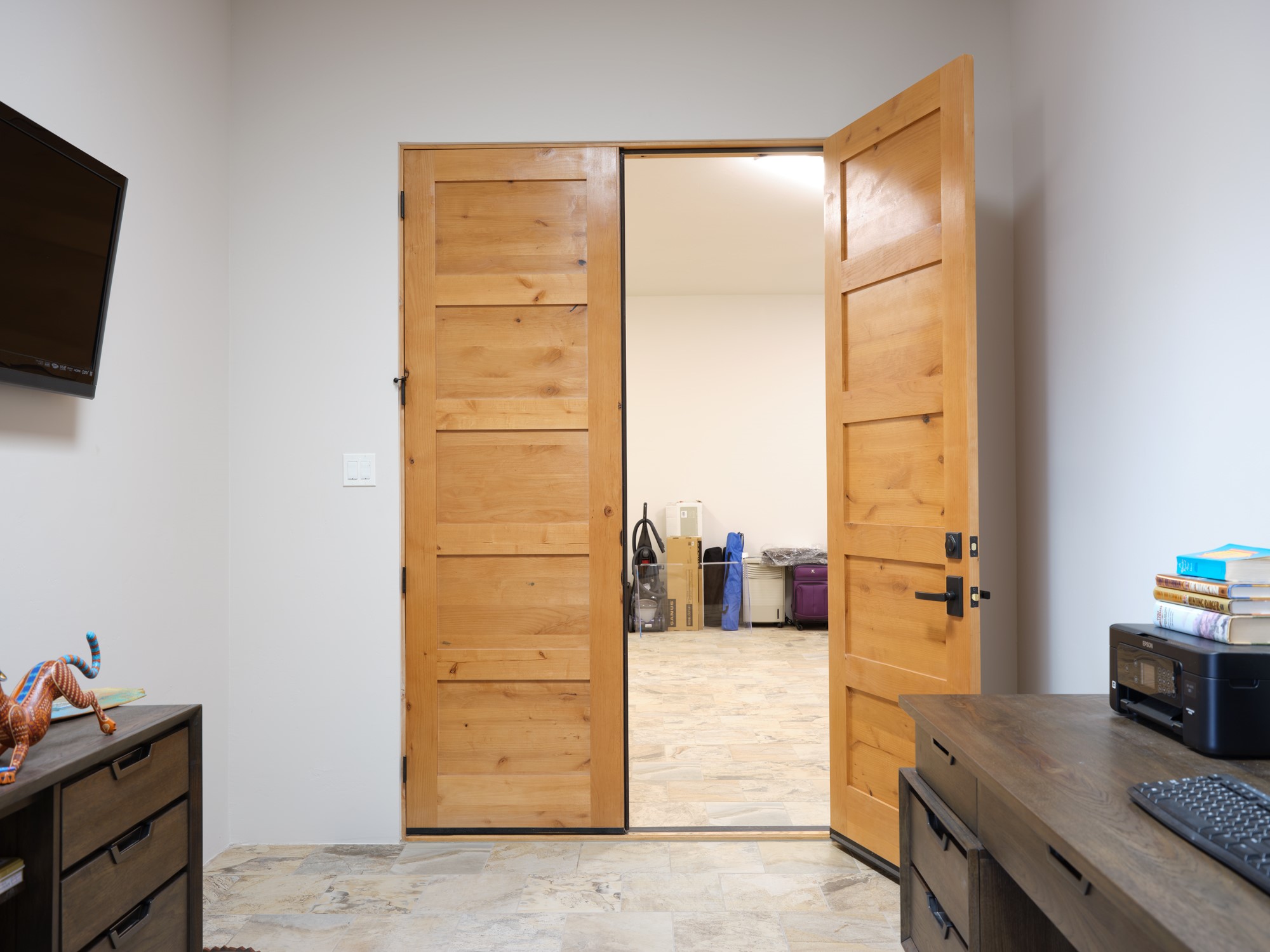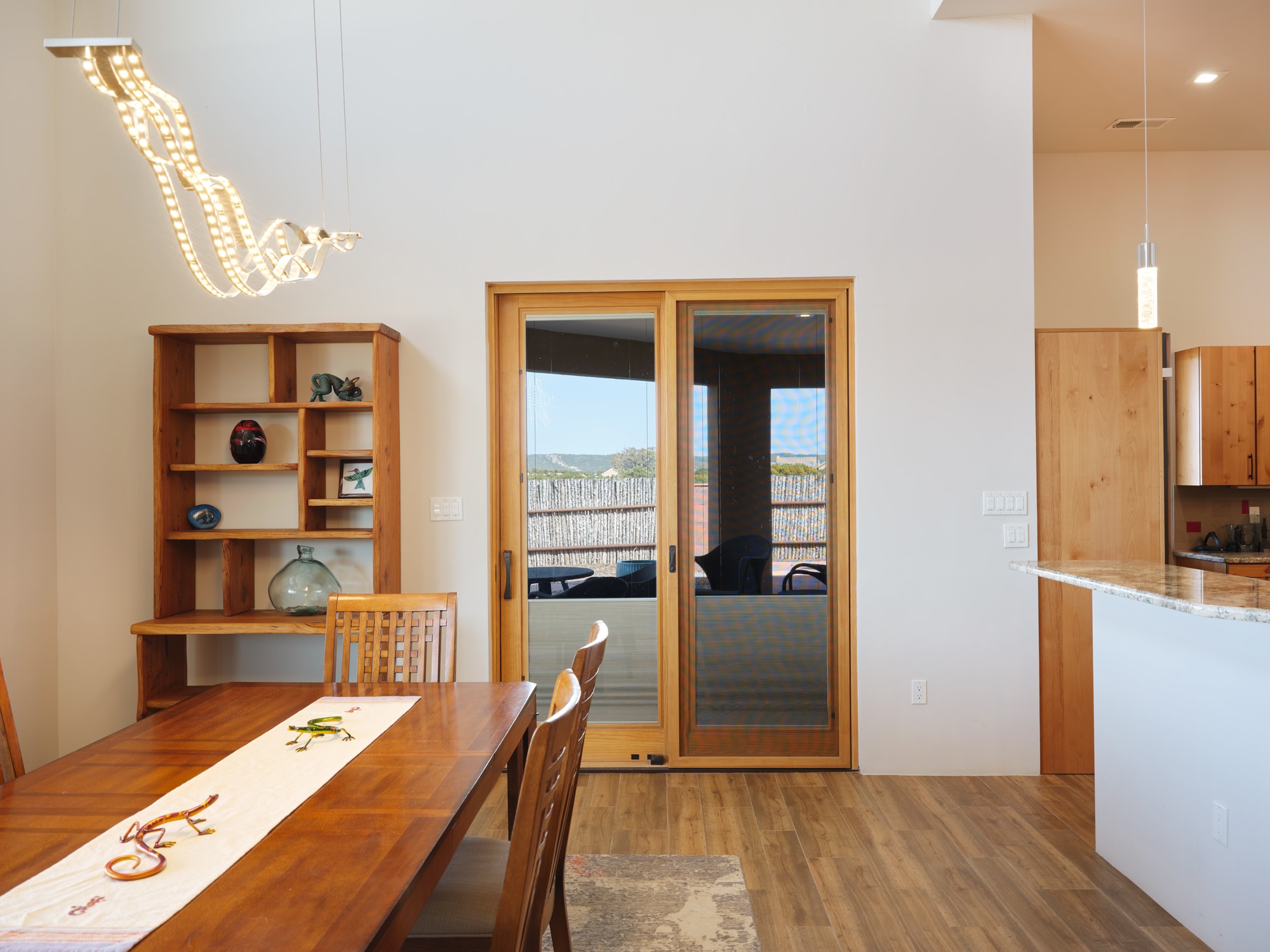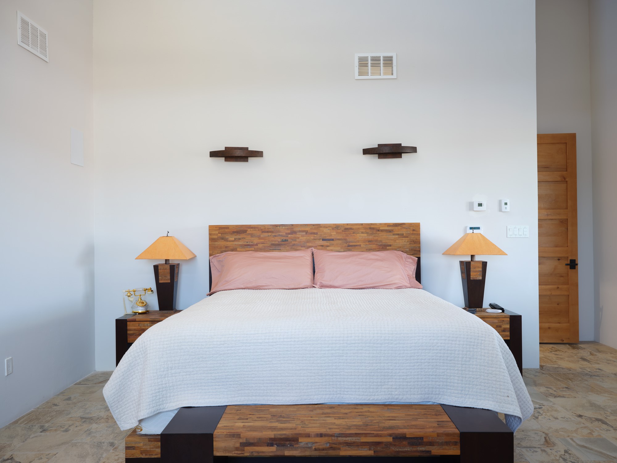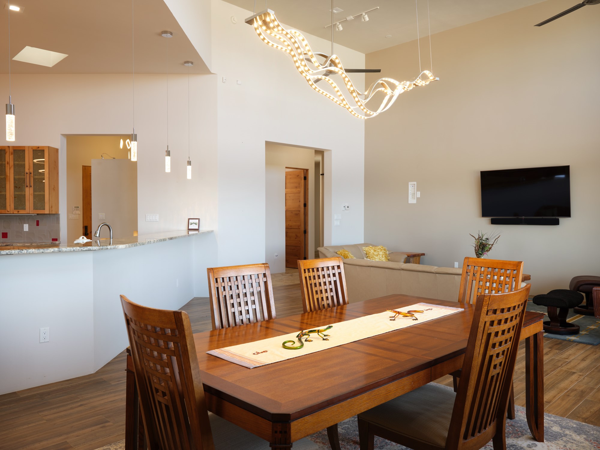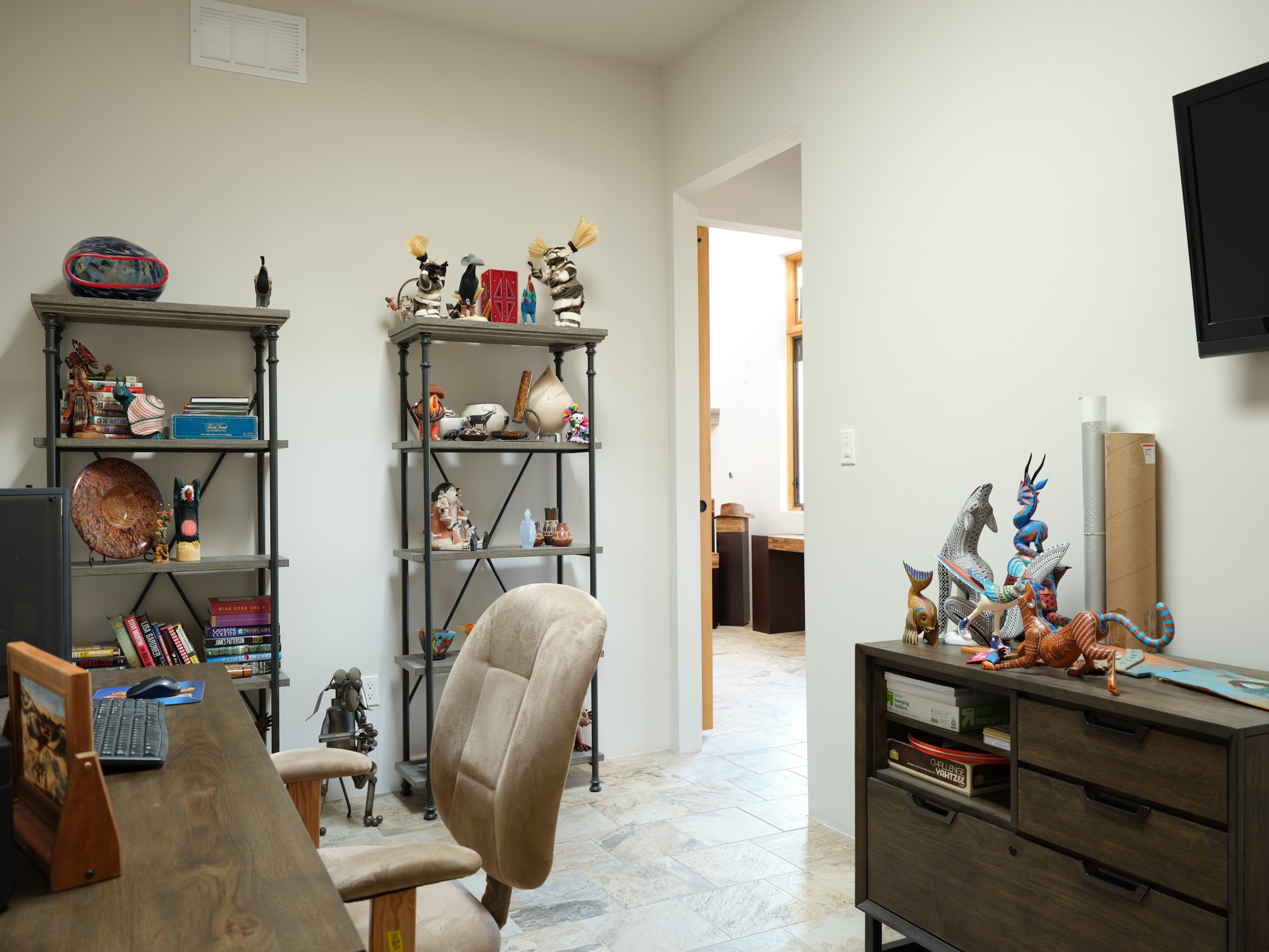 Price reduced substantially! 26 Cattle Drive is a contemporary, 4-bed/4-bath home situated on 12.5 acres on a high ridge overlooking Lamy and the Galisteo basin with expansive, unobstructed views of the Sangre de Cristo, Jemez, and Ortiz mountains. In a pastoral setting adjoining a 100-acre private easement and the 4,000 acre Eldorado Wilderness, 26 Cattle Dr. is just 20 minutes from the Plaza and 5 minutes to the Eldorado Super Market, shopping, and nearby restaurants. Living room, master bedroom and three of the four bedrooms have direct access to the enclosed north-side patio. All bedrooms are ensuite (three full and one 3/4). A fully outfitted chef's kitchen including warming drawer beneath stove top and dramatic, lofty ceilings in the living/dining/kitchen and master bedroom grace the home. Counter-tops throughout are matching granite. Utilities include natural gas, a shared well and septic. Security, lighting, and entertainment systems are master-controlled. The 2-car attached garage includes a large separate, locked large storage area. The roof-mounted solar panels provide almost 100% of the electrical requirements. Rainwater is captured by a cistern for outdoor watering. An "art-wall" and entryway display case accommodate artwork. The expansive outdoor deck, accessible through an inside stairway provides yet another way to enjoy the spectacular views. Completed in 2018, 26 Cattle Drive is an eminently livable, one-of-a-kind property.