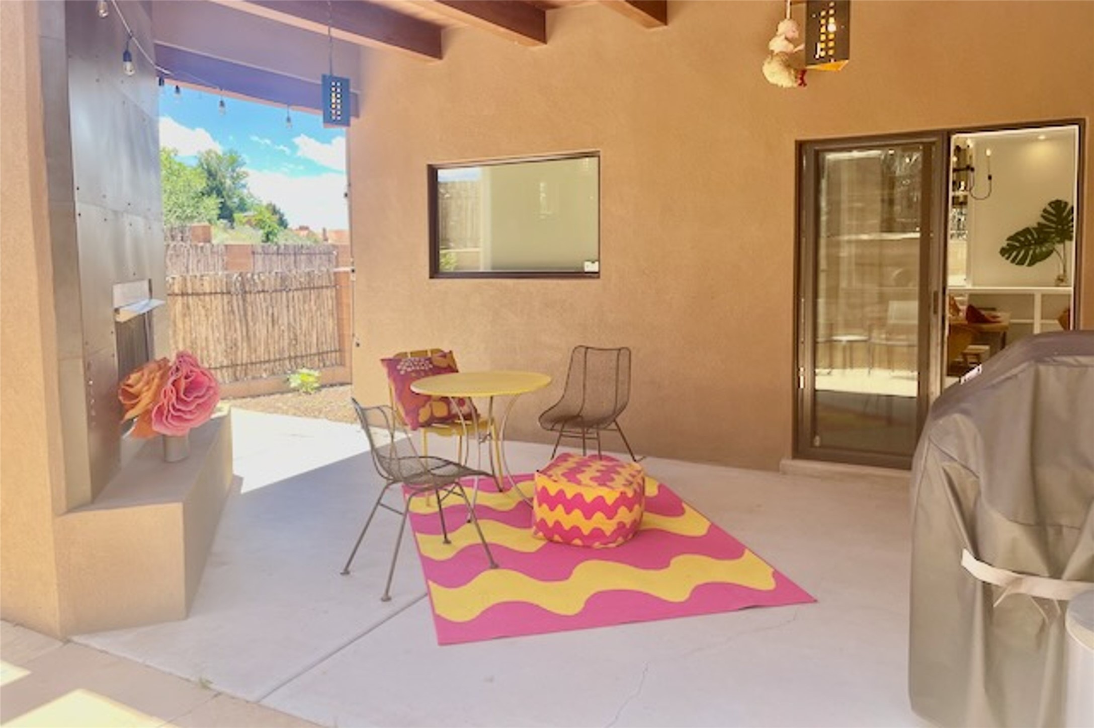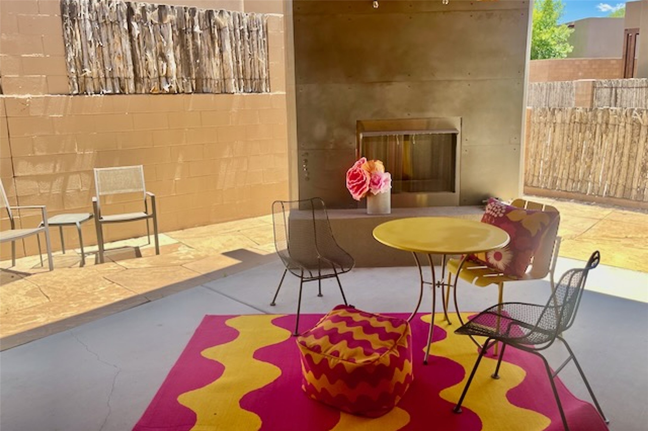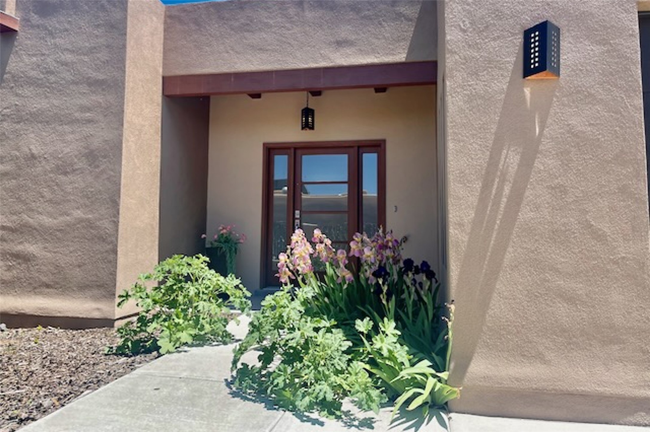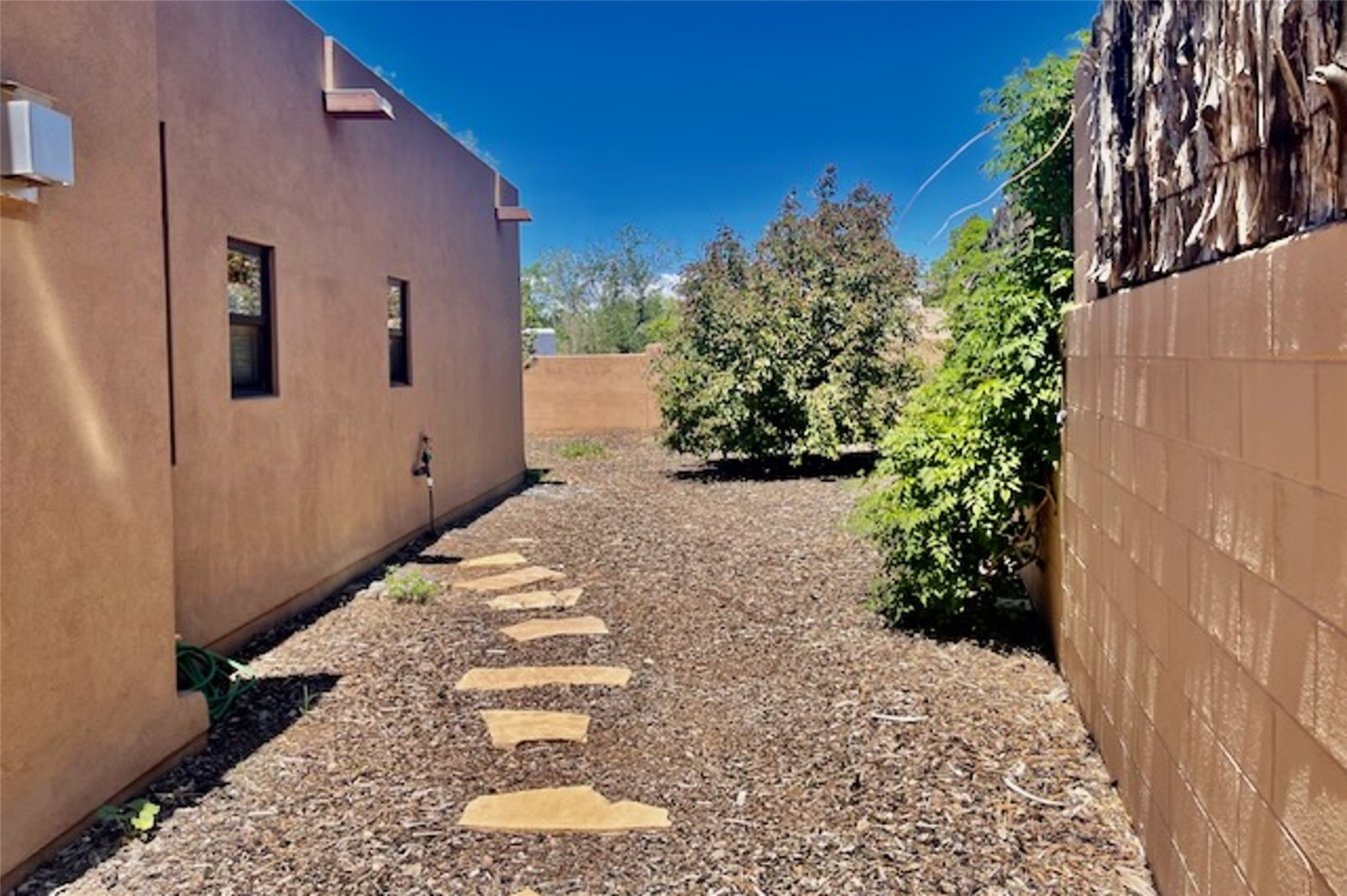Beautiful contemporary home with 3 bedrooms, 2.5 baths and approximately 1836 square feet; set back from the street for privacy. Very clean lines, light, open living room, dining room, kitchen plan. Outdoor fireplace with BBQ area off of the kitchen. nice owner's suite with good separation from the two guest rooms. Spacious backyard, walled and landscaped. Room for gardening or a dog. Priced well and in a very convenient location off of San Mateo and St. Francis. Sensitively staged and easy to show. Schedule through ShowingTime.