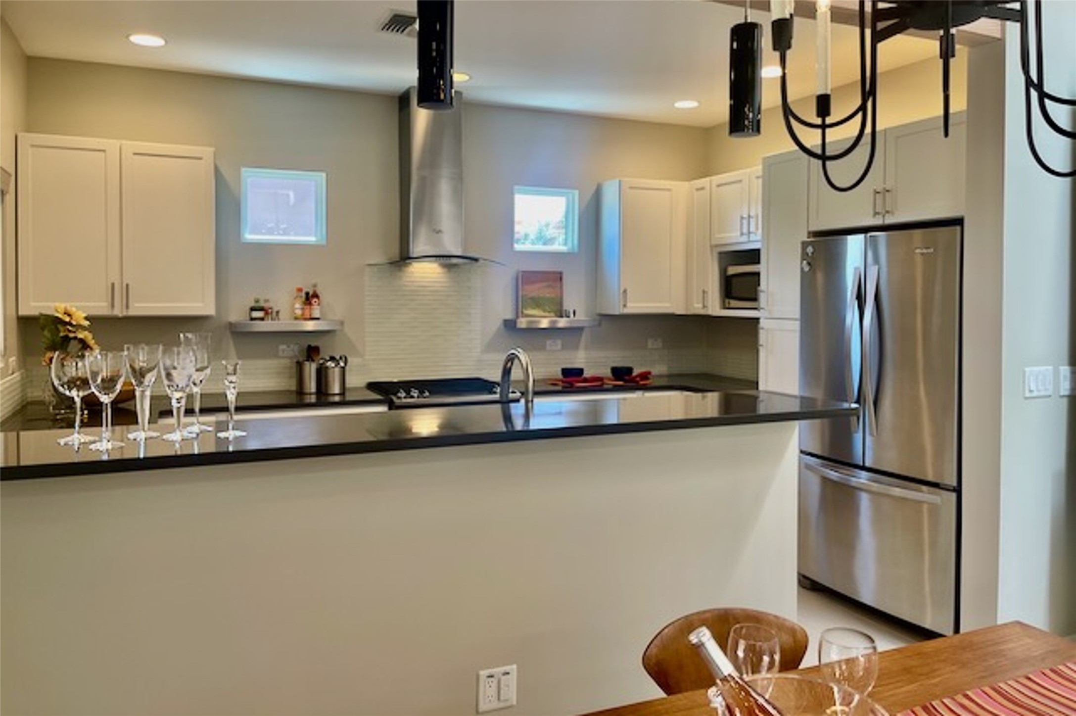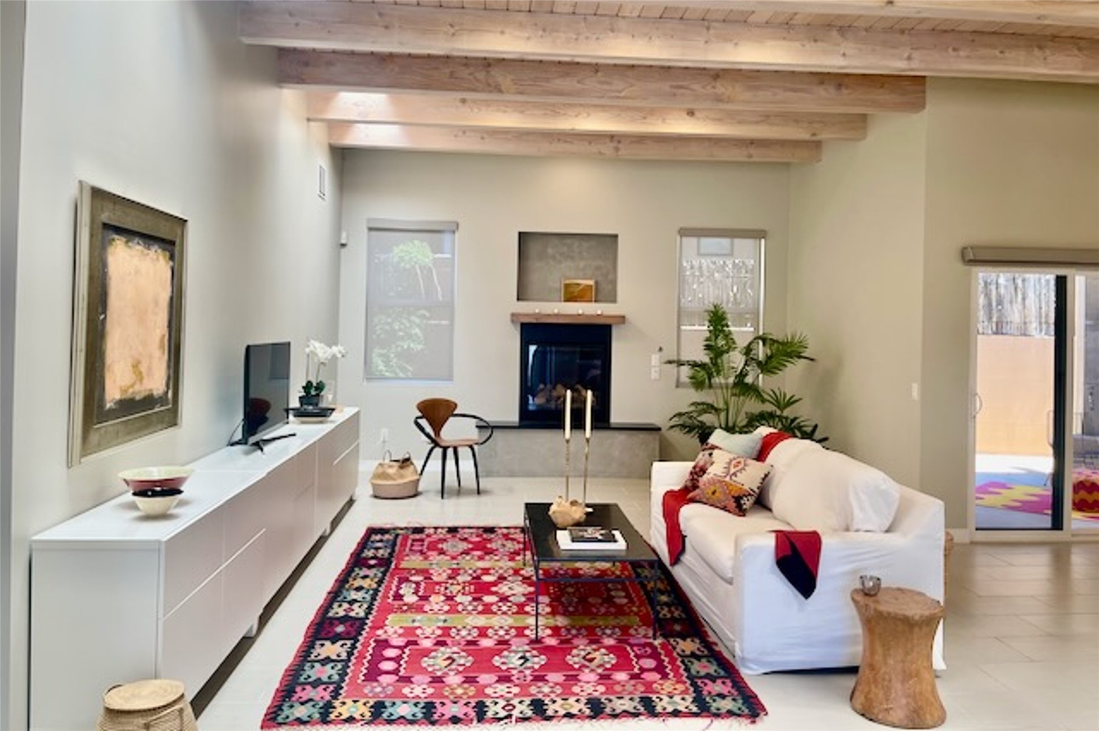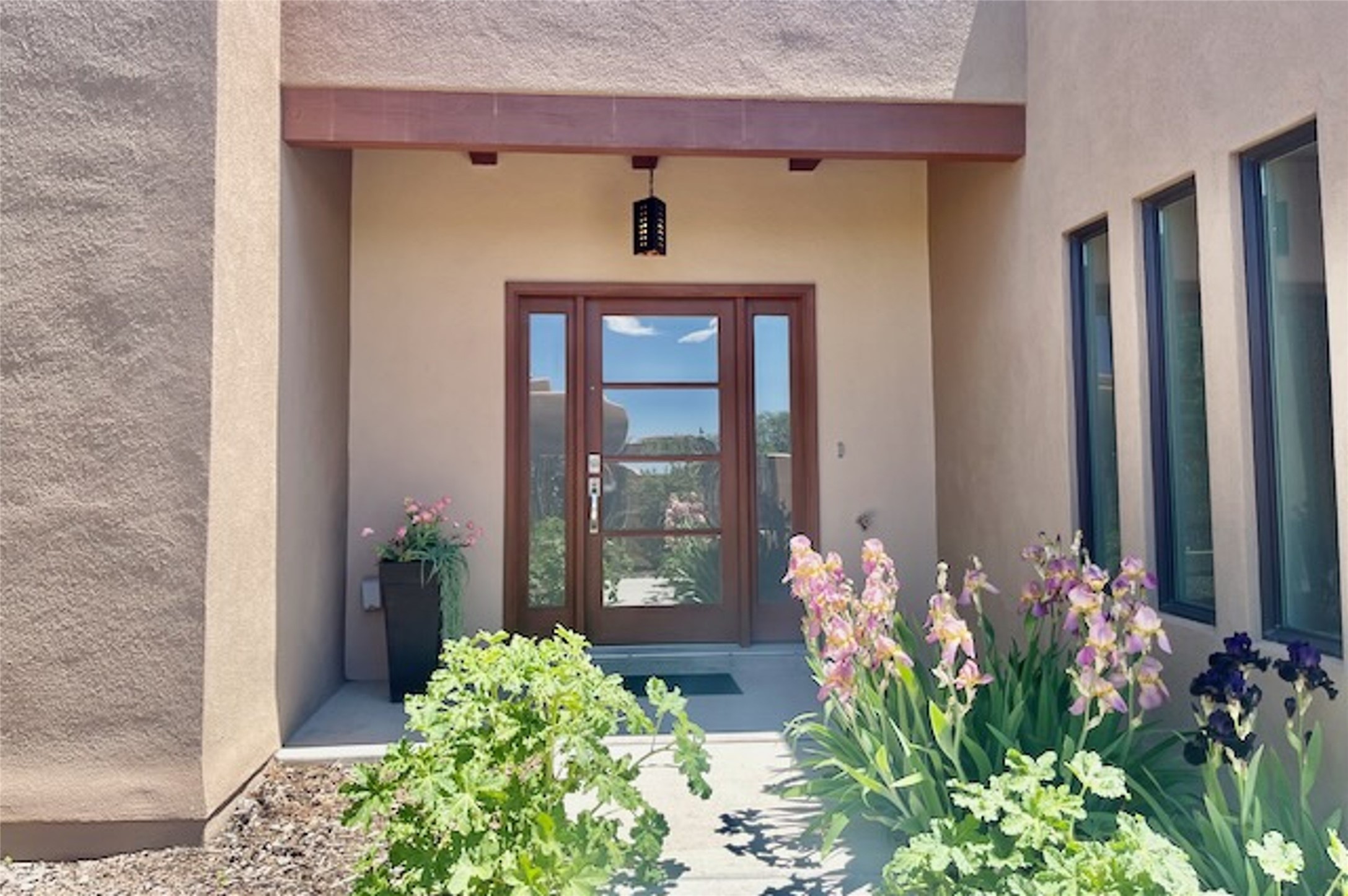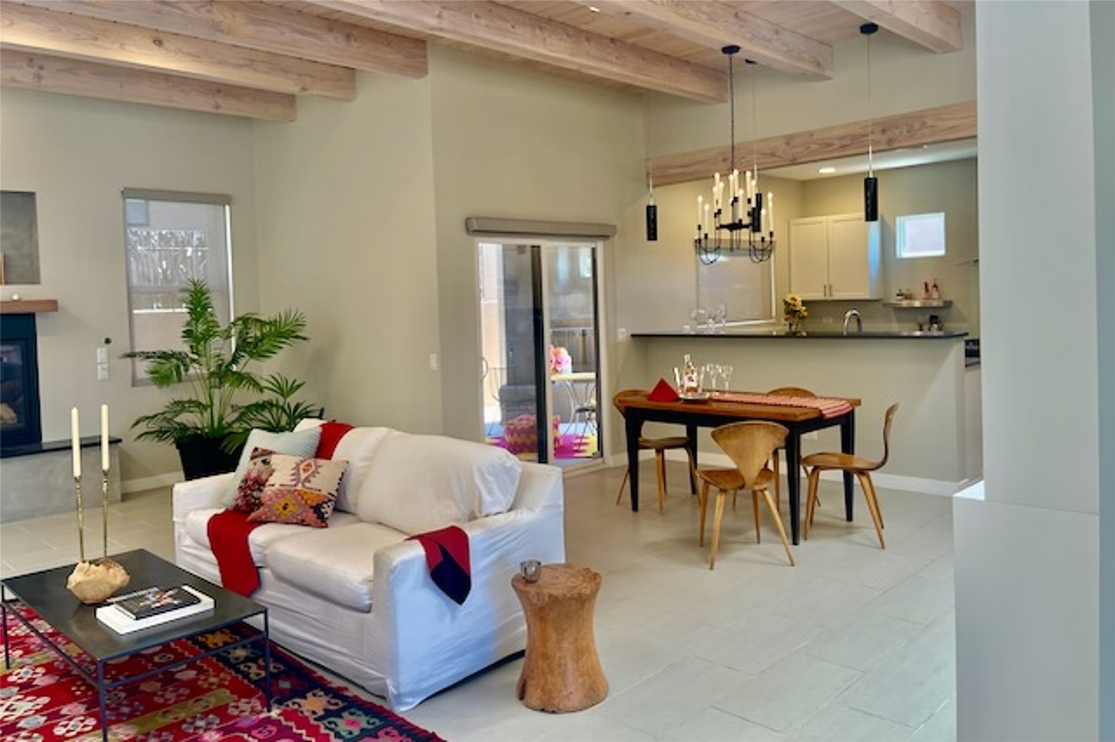 Beautiful contemporary home with 3 bedrooms, 2.5 baths and approximately 1836 square feet; set back from the street for privacy. Very clean lines, light, open living room, dining room, kitchen plan. Outdoor fireplace with BBQ area off of the kitchen. nice owner's suite with good separation from the two guest rooms. Spacious backyard, walled and landscaped. Room for gardening or a dog. Priced well and in a very convenient location off of San Mateo and St. Francis. Sensitively staged and easy to show. Schedule through ShowingTime.