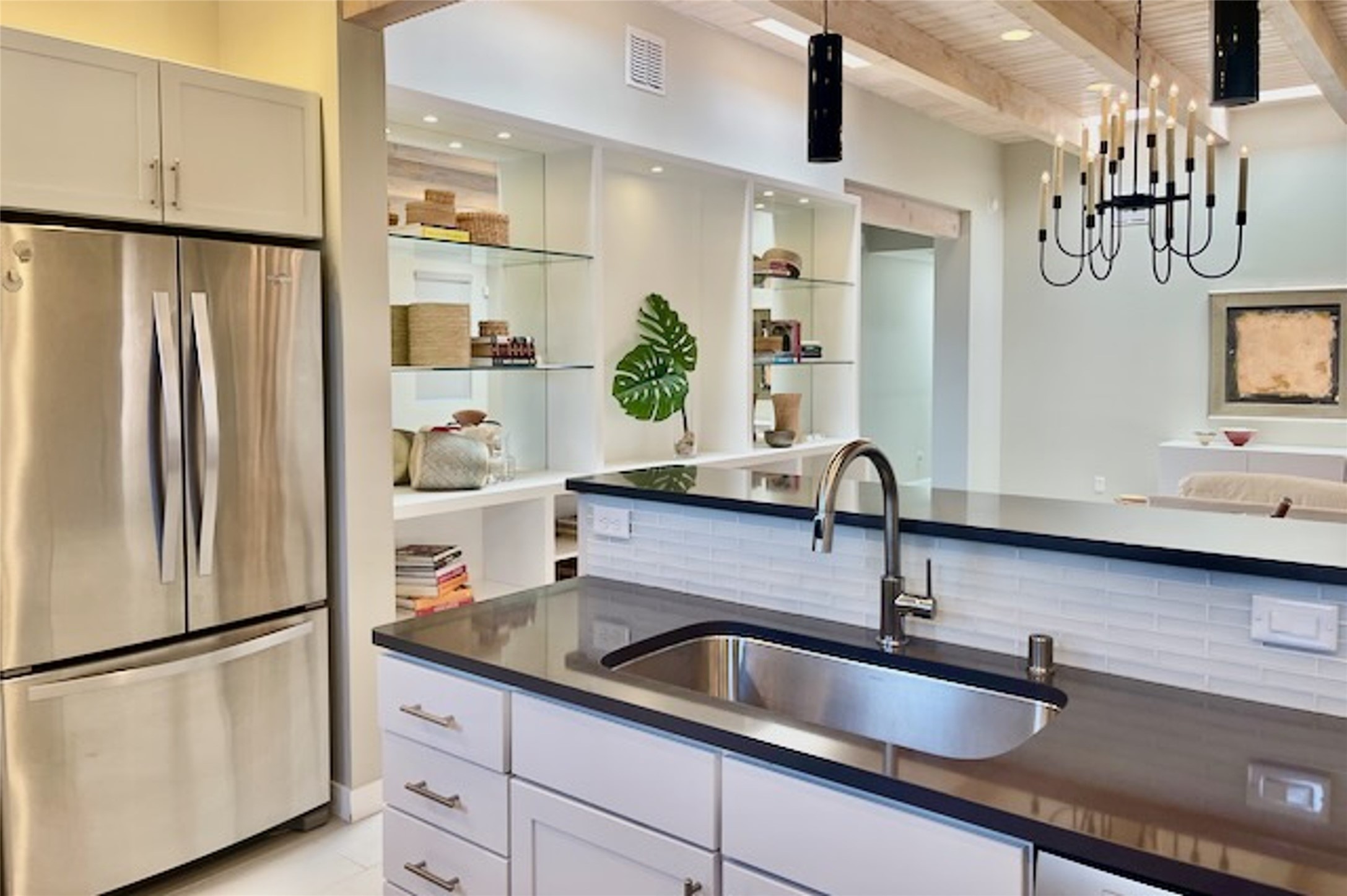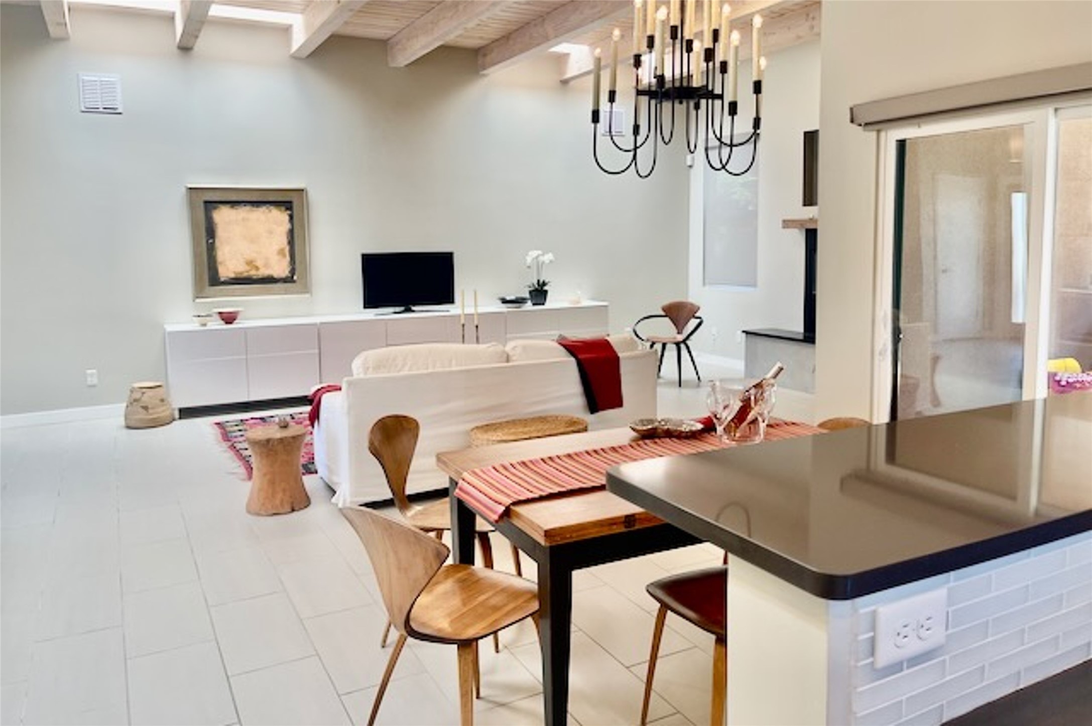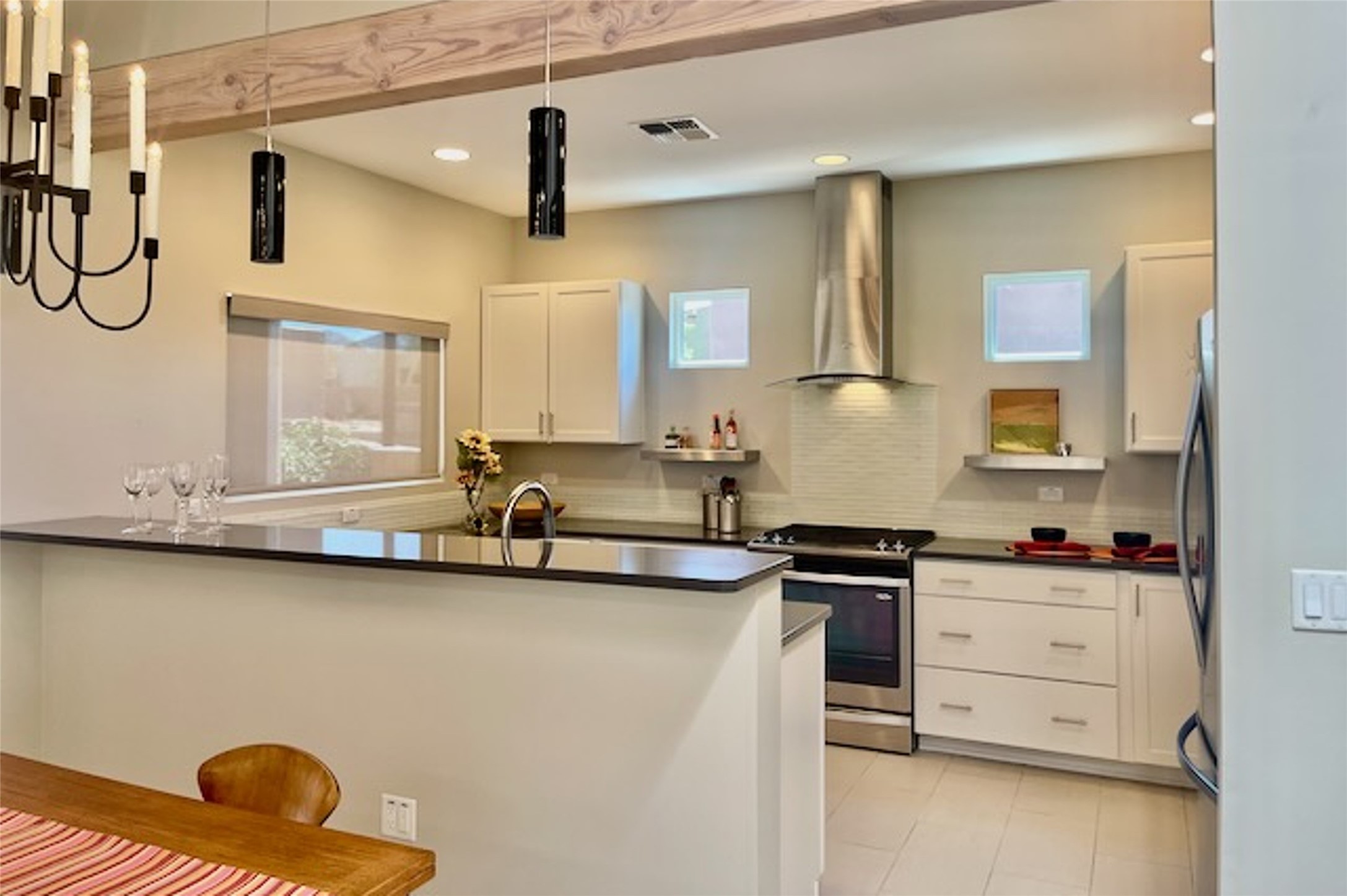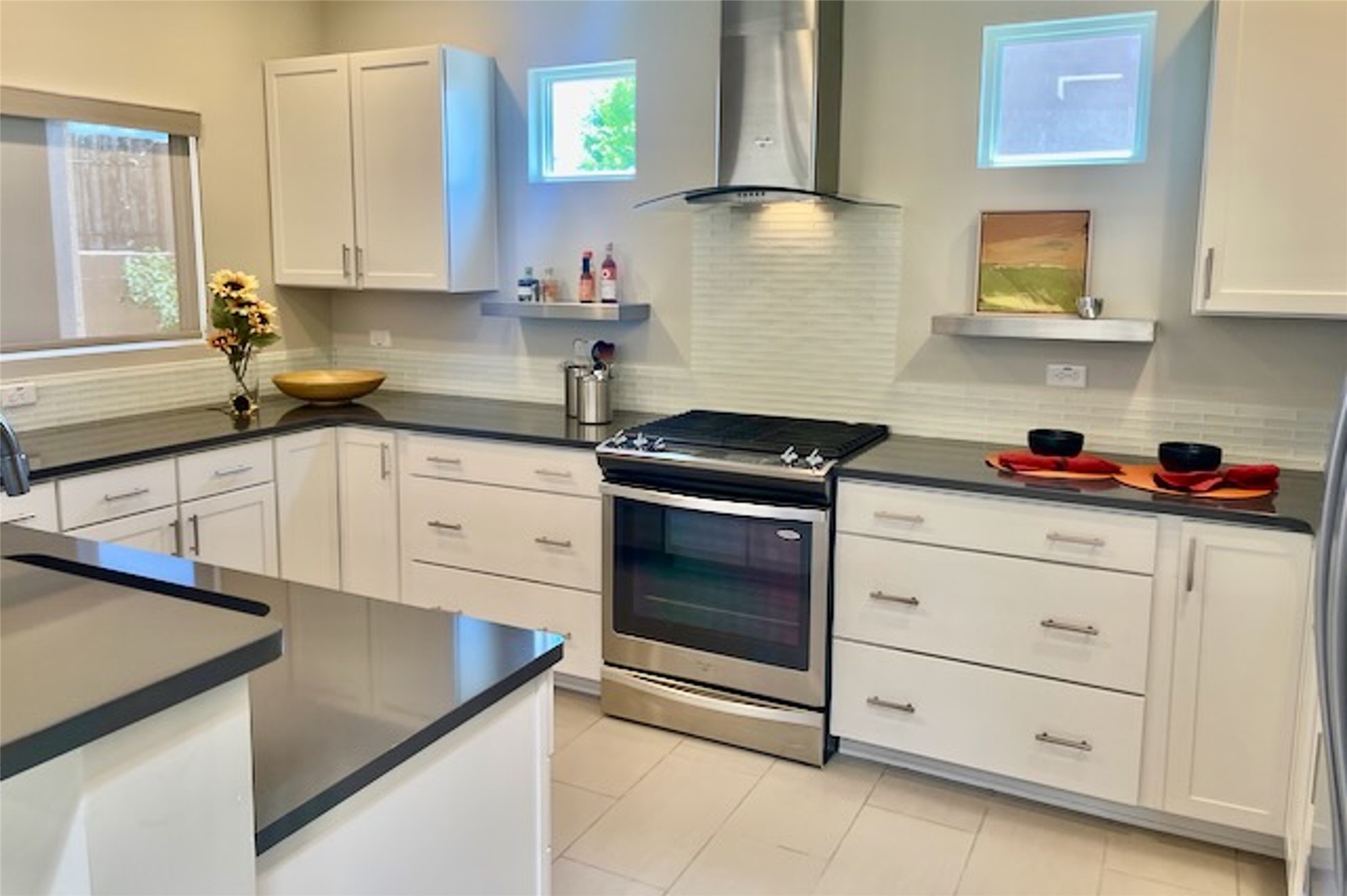 Beautiful contemporary home with 3 bedrooms, 2.5 baths and approximately 1836 square feet; set back from the street for privacy. Very clean lines, light, open living room, dining room, kitchen plan. Outdoor fireplace with BBQ area off of the kitchen. nice owner's suite with good separation from the two guest rooms. Spacious backyard, walled and landscaped. Room for gardening or a dog. Priced well and in a very convenient location off of San Mateo and St. Francis. Sensitively staged and easy to show. Schedule through ShowingTime.