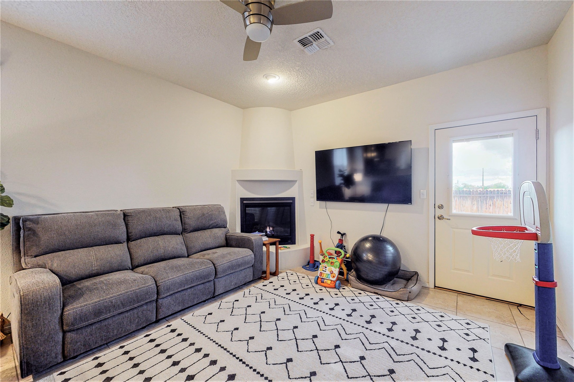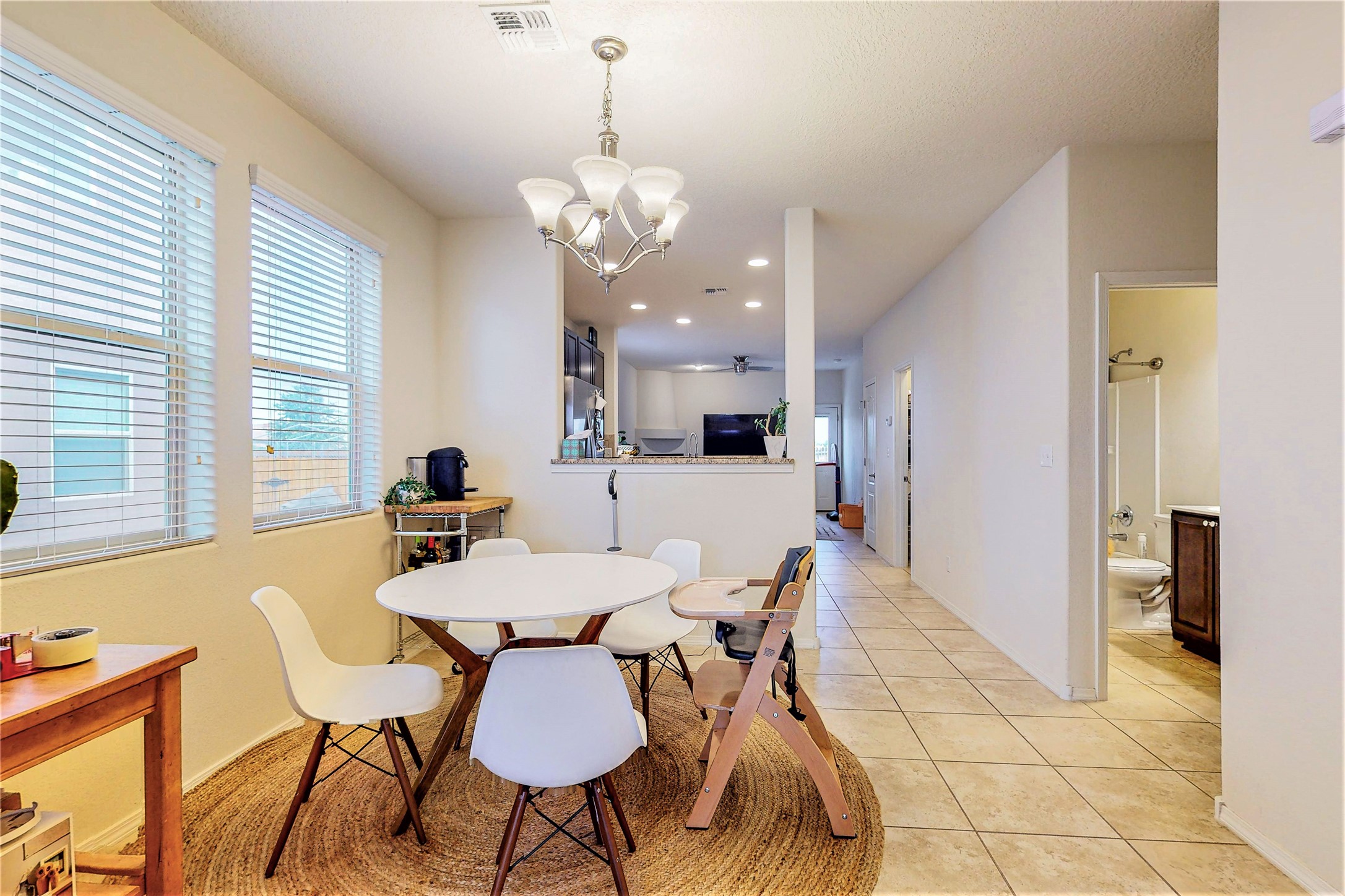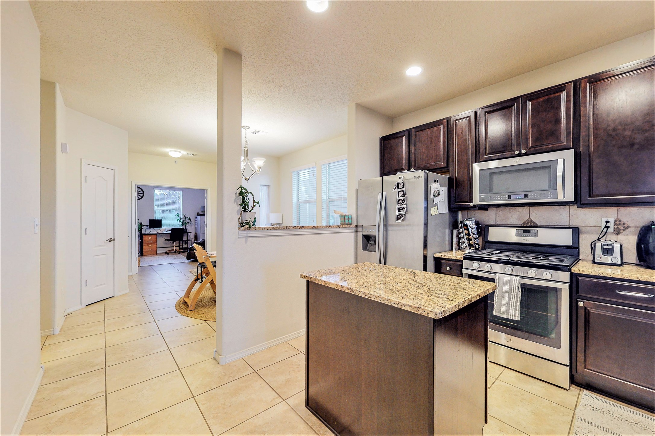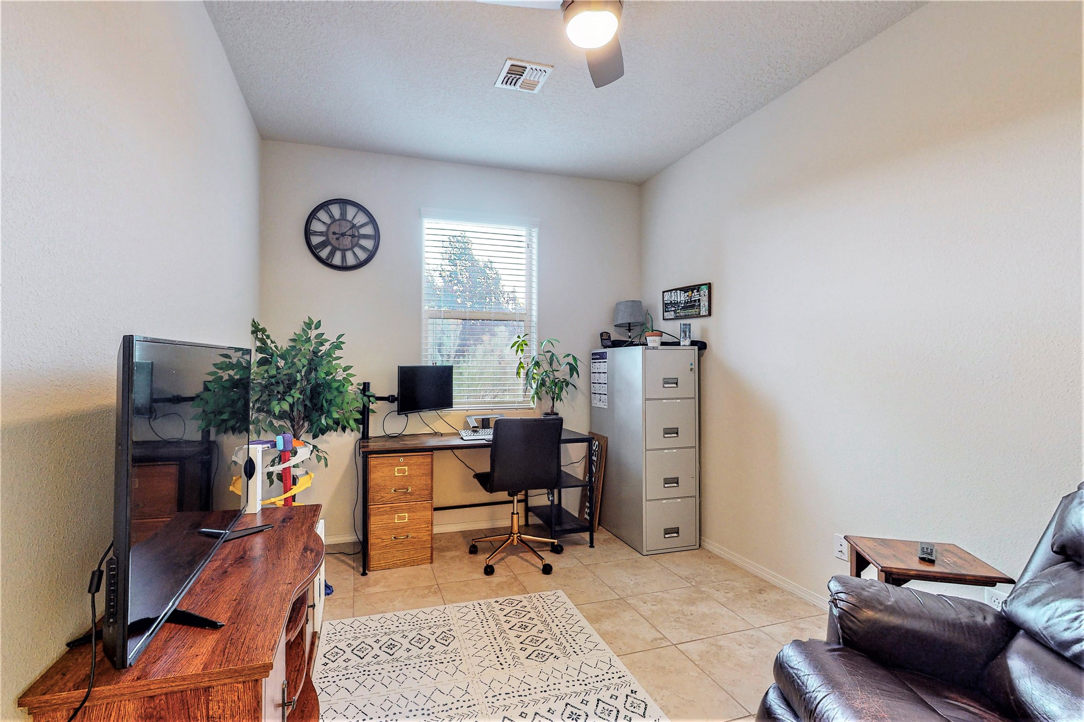 Move-in ready single-level "Cochiti Model" home that backs up to a Beautiful Park, featuring 3 bedrooms, two full baths, a spacious office/family room, living room, dining area, separate laundry room, and a two-car garage. The upgrades include quality cabinetry, large tiles throughout the home (excluding bedrooms), granite countertops in the kitchen, stainless steel appliances, upgraded lighting and Moen faucets, a cozy gas fireplace, a separate tub and shower in the master suite, extended back patio slab and Fenced yard. This Home also has refrigerated A/C system and a tankless hot water heater. This is Located near shopping centers, restaurants, schools, and the 599 Bypass for Los Alamos Commuters as well.