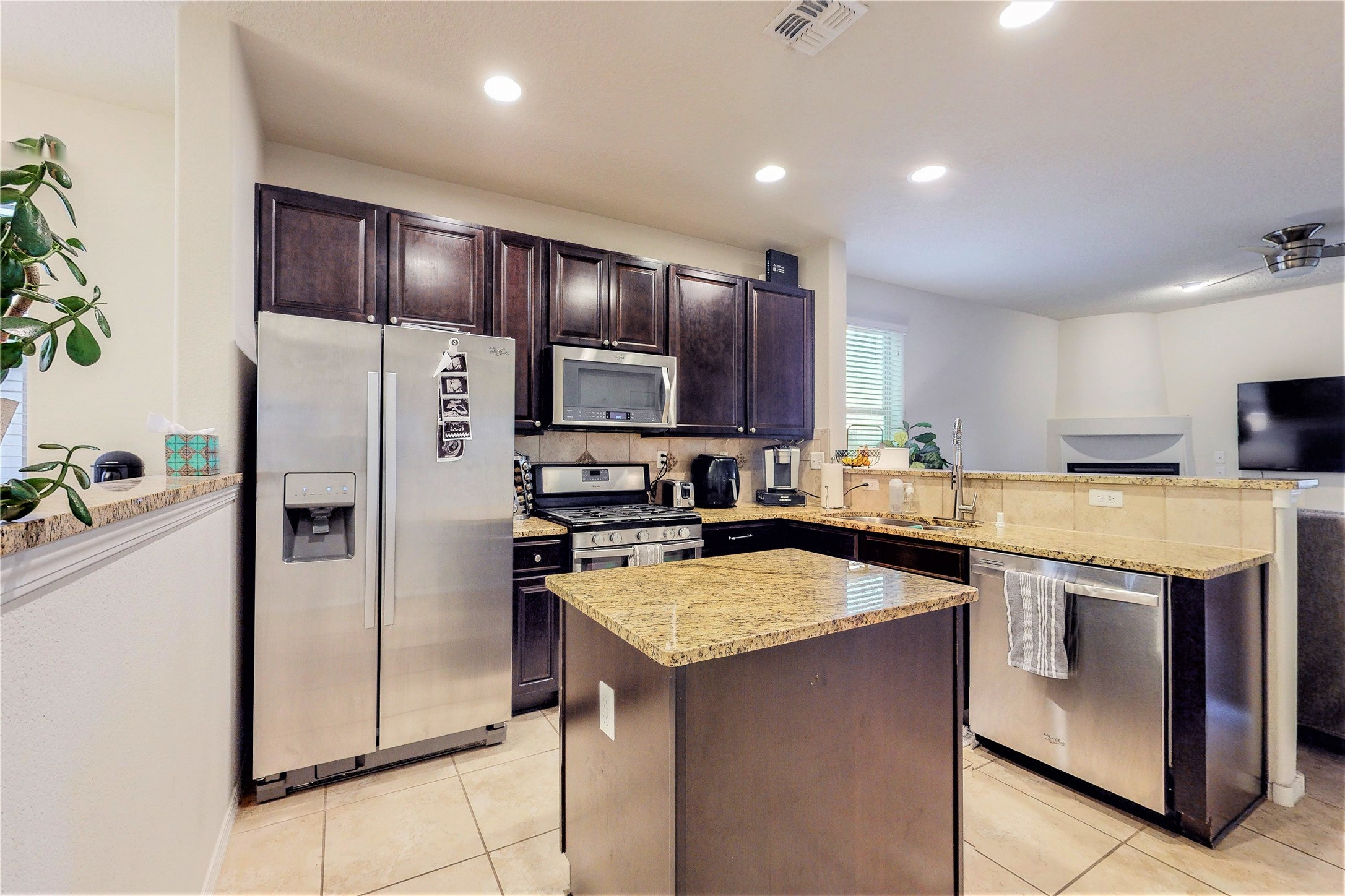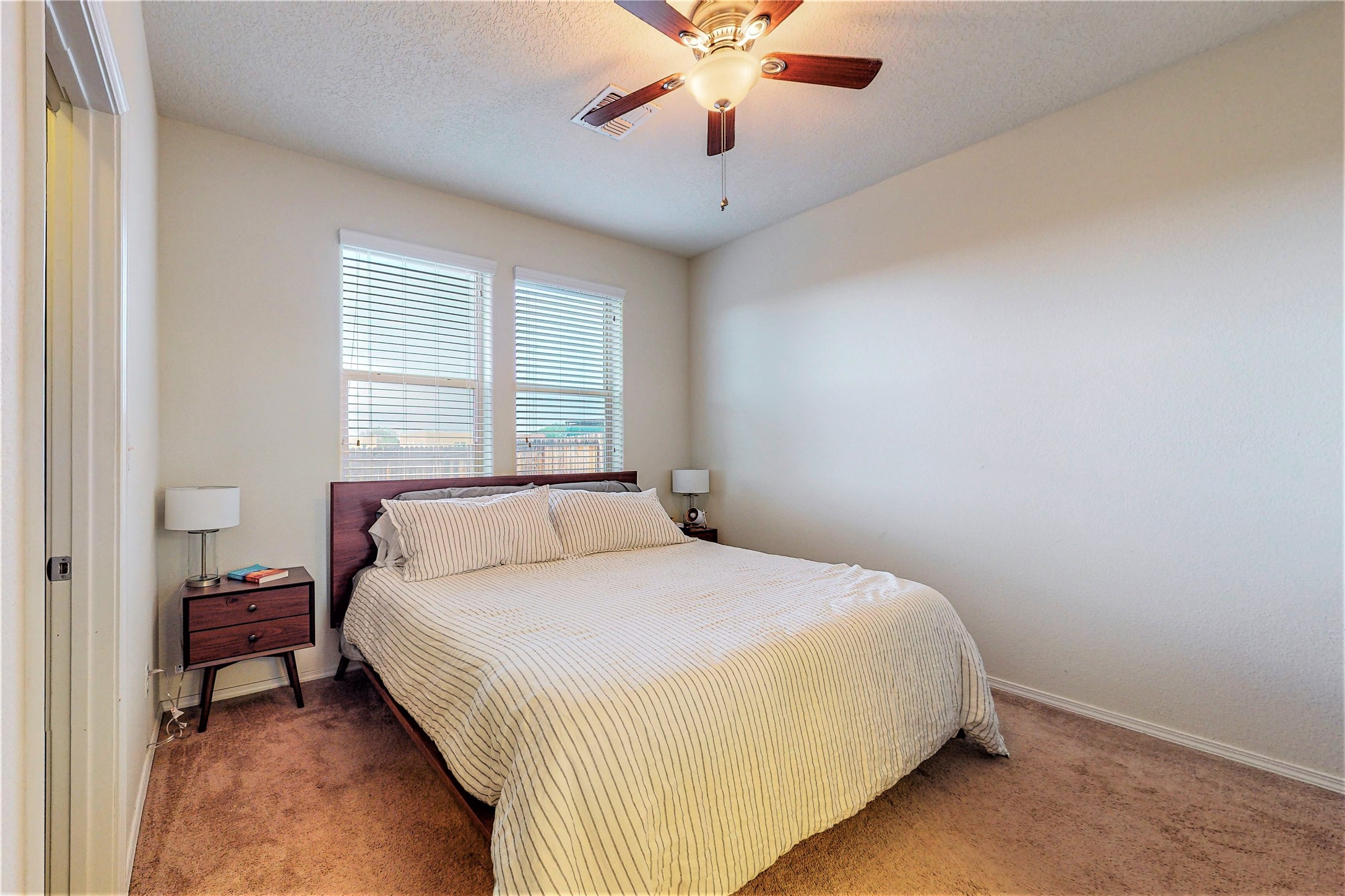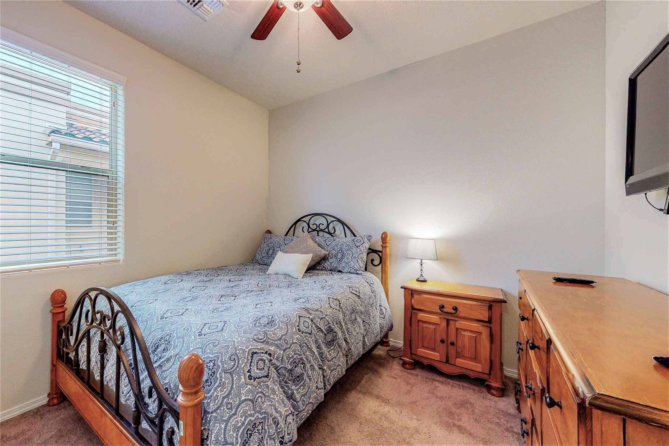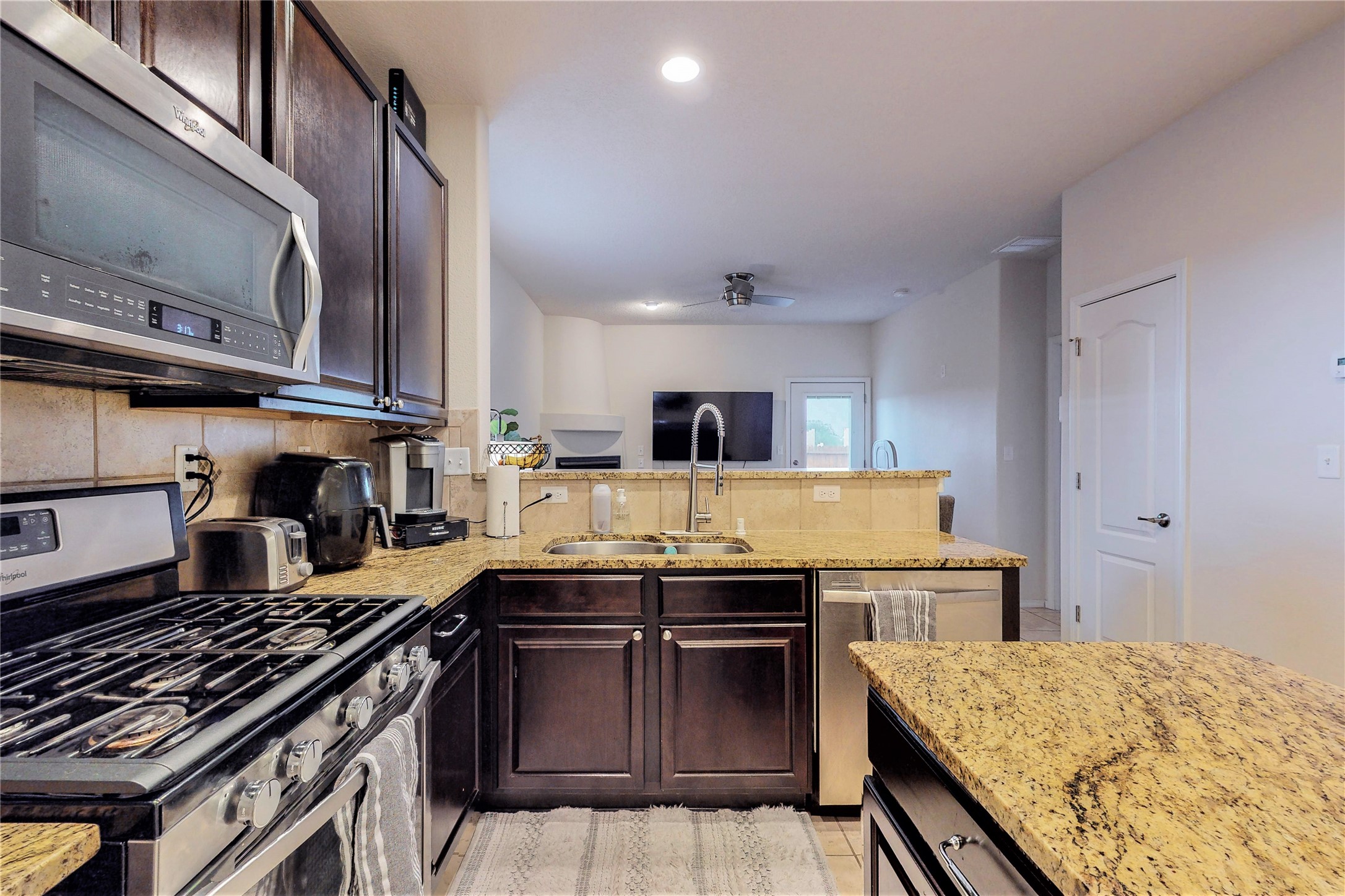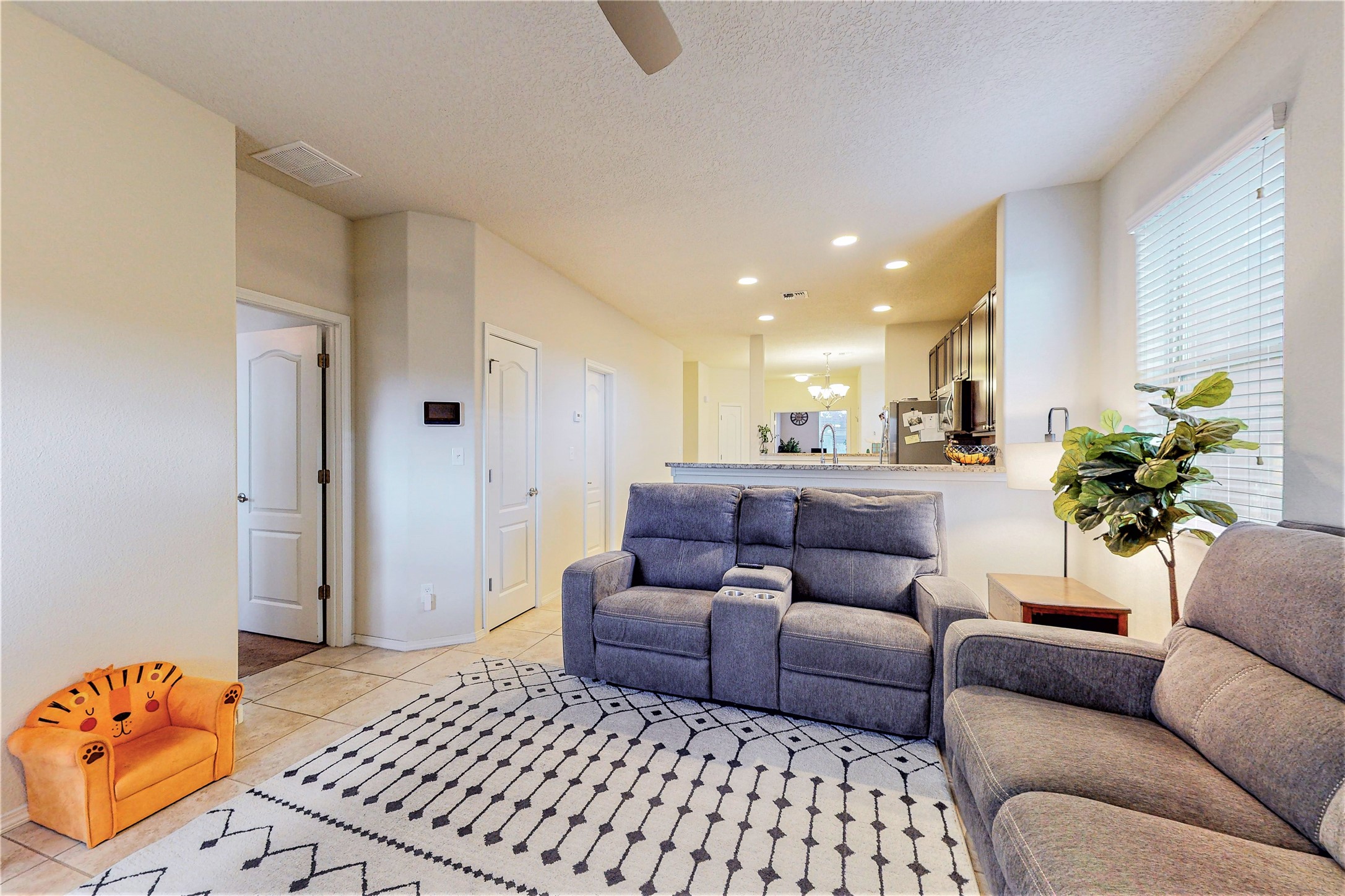 Move-in ready single-level "Cochiti Model" home that backs up to a Beautiful Park, featuring 3 bedrooms, two full baths, a spacious office/family room, living room, dining area, separate laundry room, and a two-car garage. The upgrades include quality cabinetry, large tiles throughout the home (excluding bedrooms), granite countertops in the kitchen, stainless steel appliances, upgraded lighting and Moen faucets, a cozy gas fireplace, a separate tub and shower in the master suite, extended back patio slab and Fenced yard. This Home also has refrigerated A/C system and a tankless hot water heater. This is Located near shopping centers, restaurants, schools, and the 599 Bypass for Los Alamos Commuters as well.