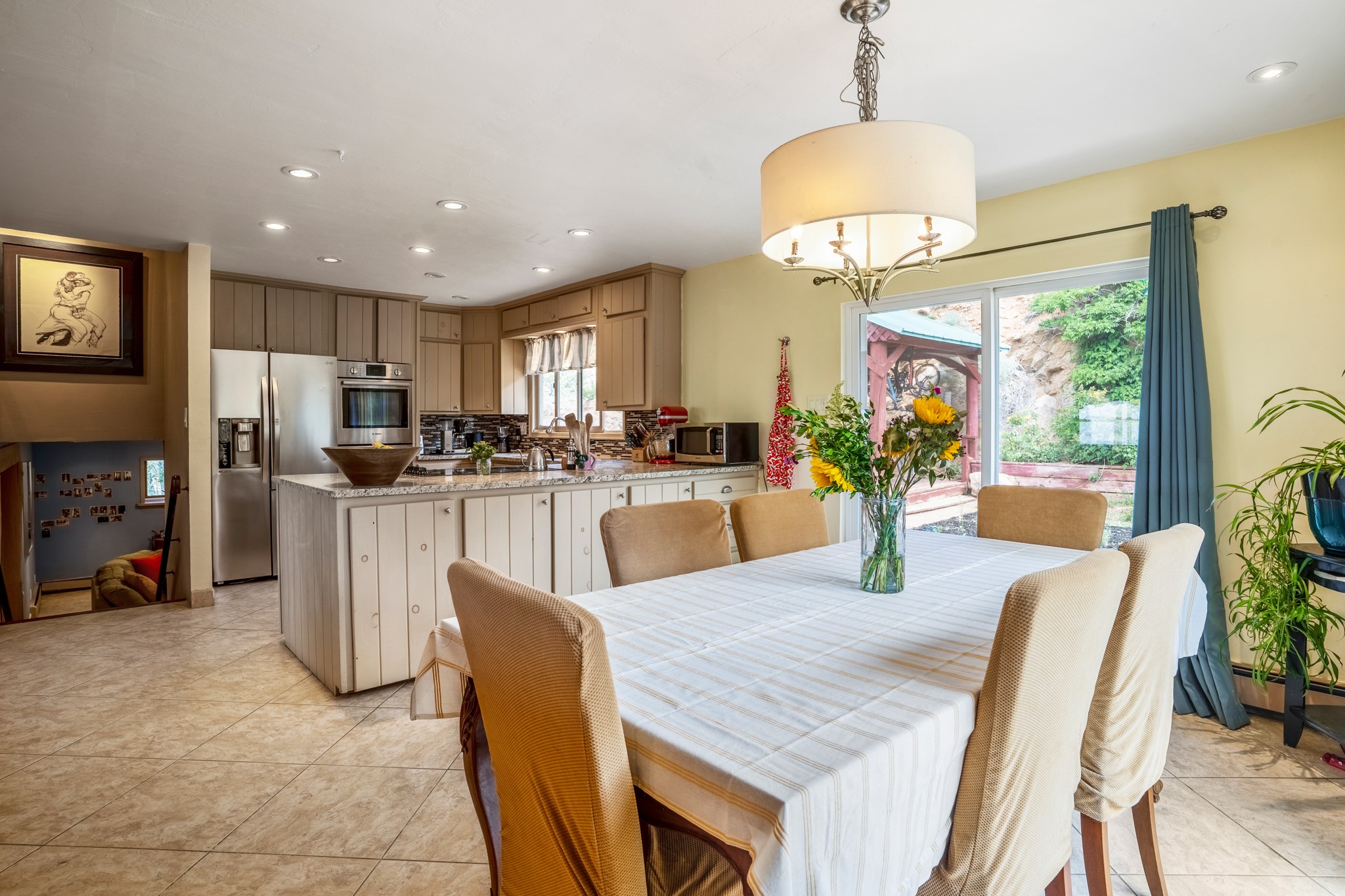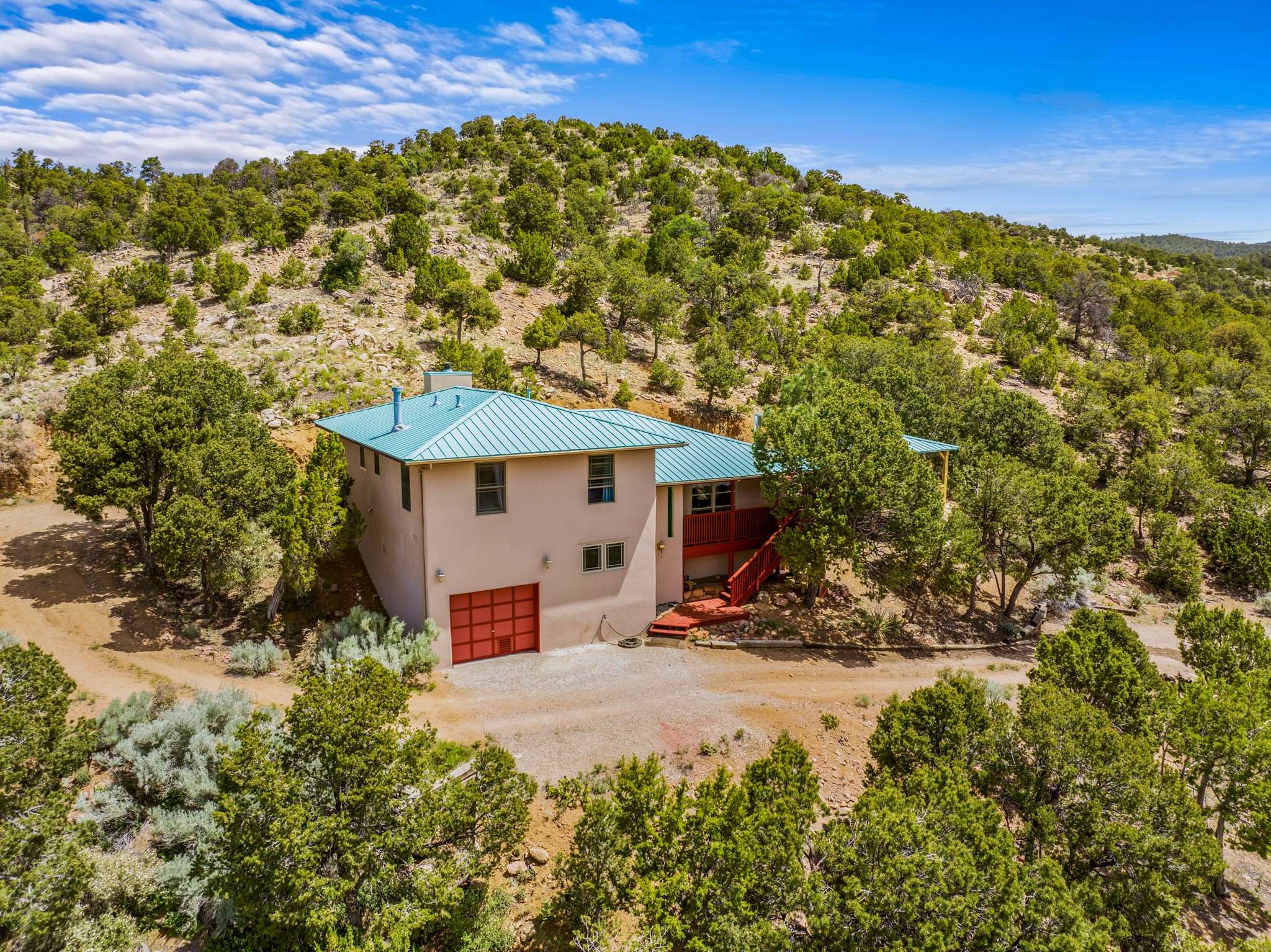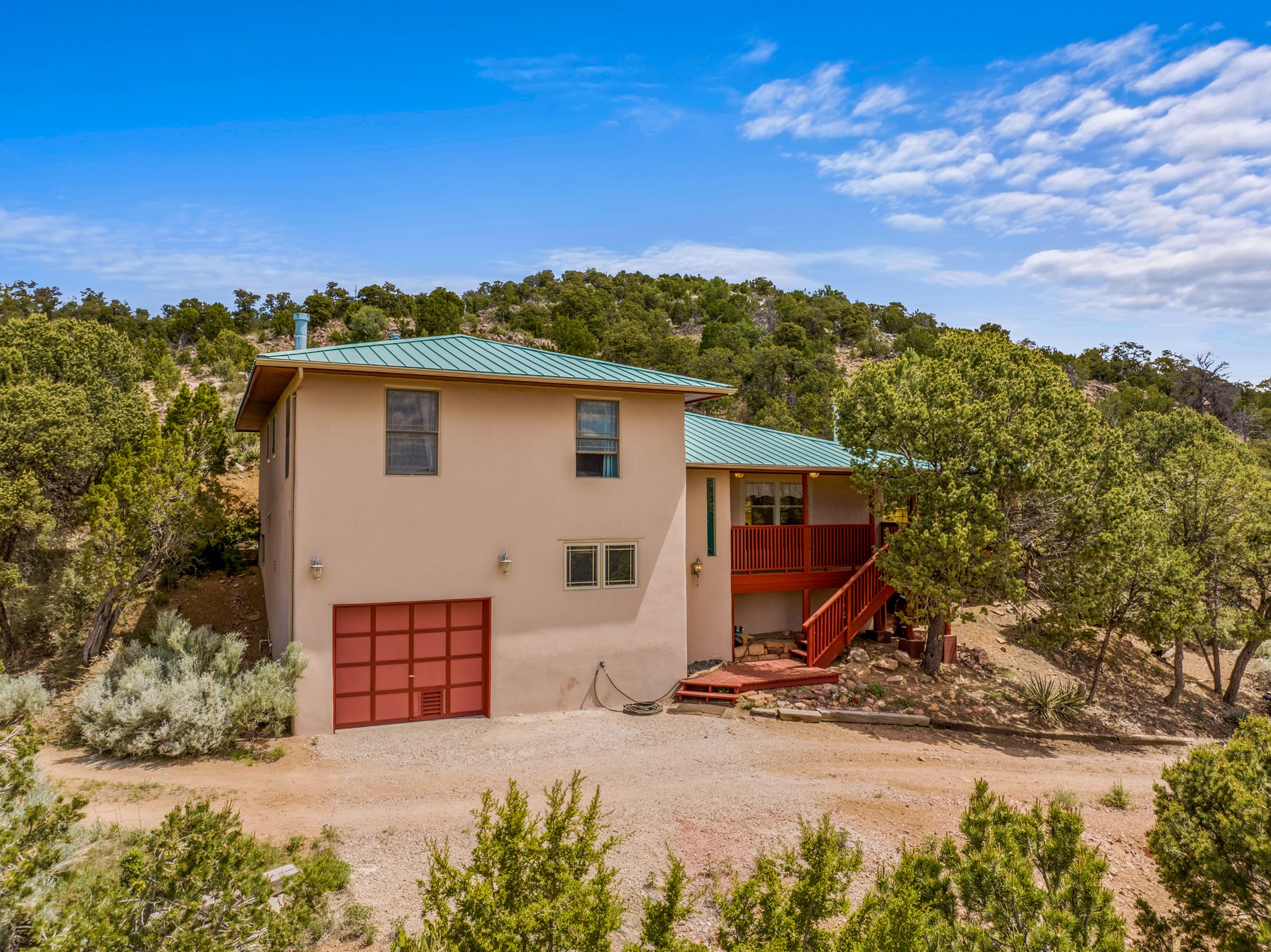 This home offers all the benefits that come along with being nestled among the pinon in the foothills ofSanta Fe. Deer are frequent visitors to the property, and a variety of other wildlife have been seen.Enjoy the view, dazzling night skies, peace and quiet while being only 15 minutes from the heart of SantaFe's plaza. The sleek and contemporary look of the home is complemented by its open floor plan, wherenatural light is plentiful in the living, dining, and kitchen areas.