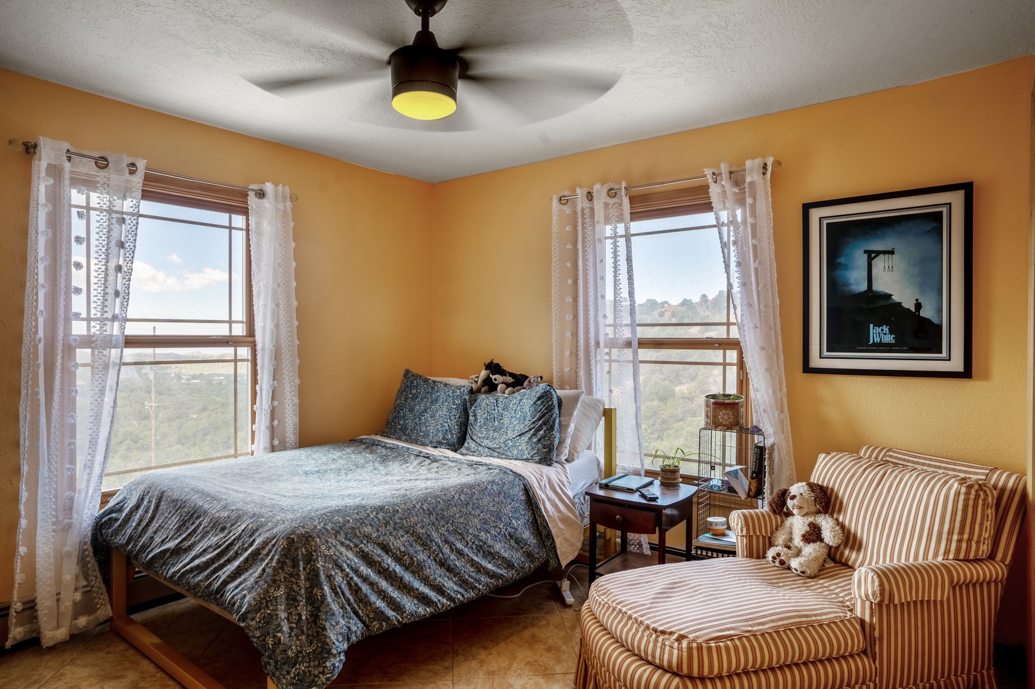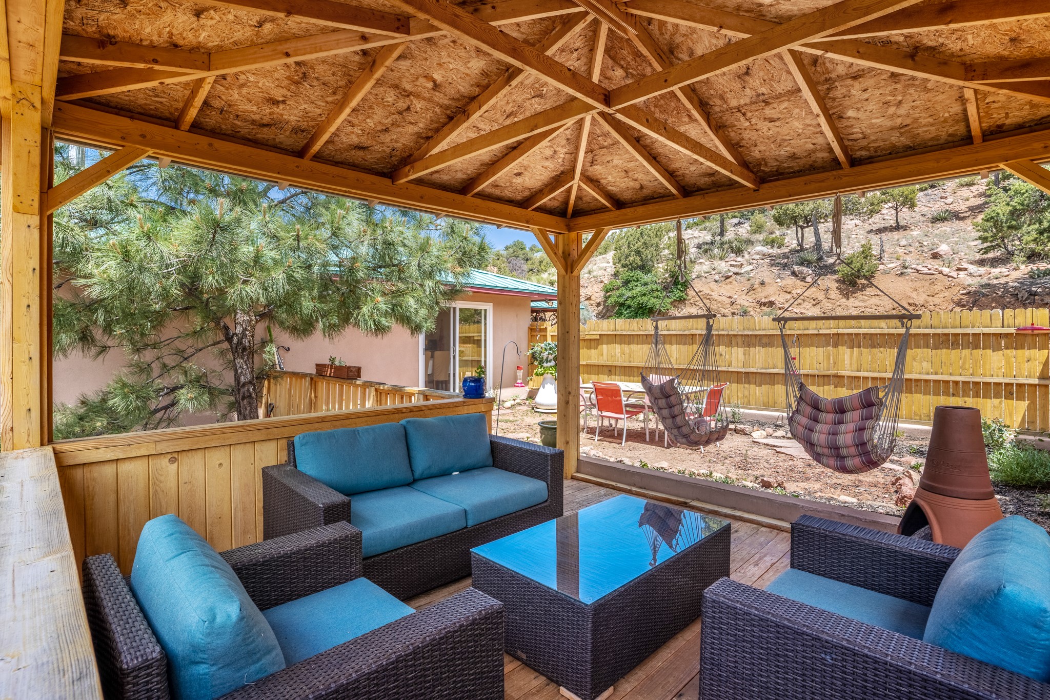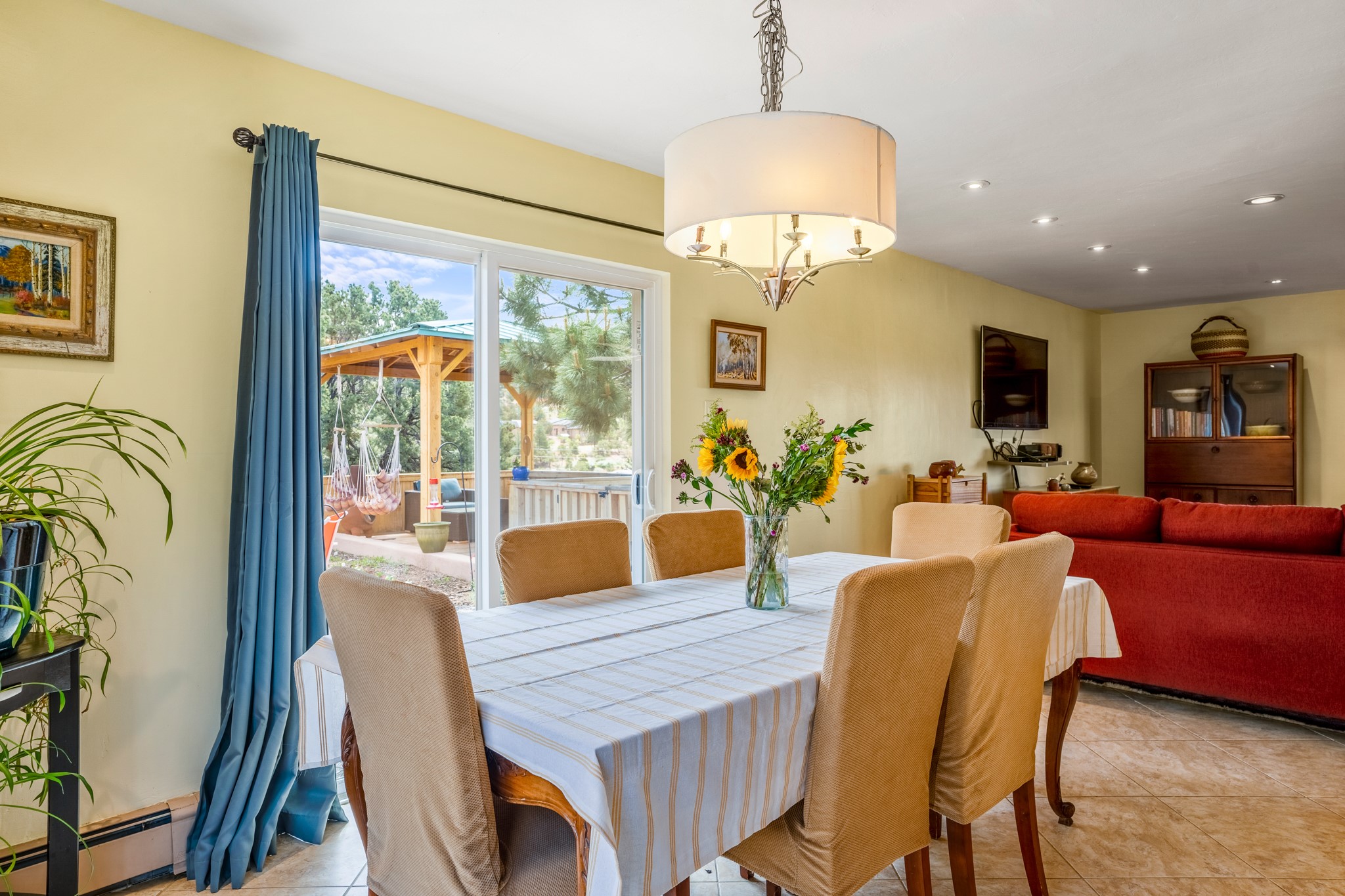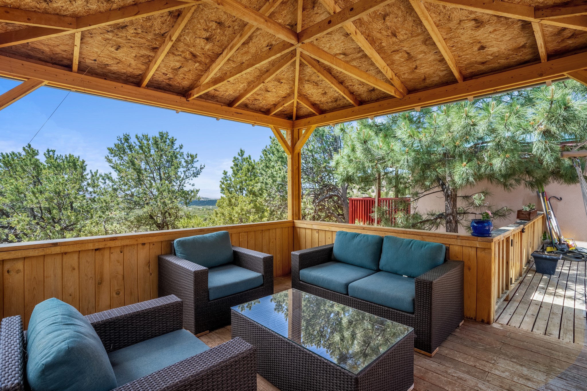 This home offers all the benefits that come along with being nestled among the pinon in the foothills ofSanta Fe. Deer are frequent visitors to the property, and a variety of other wildlife have been seen.Enjoy the view, dazzling night skies, peace and quiet while being only 15 minutes from the heart of SantaFe's plaza. The sleek and contemporary look of the home is complemented by its open floor plan, wherenatural light is plentiful in the living, dining, and kitchen areas.