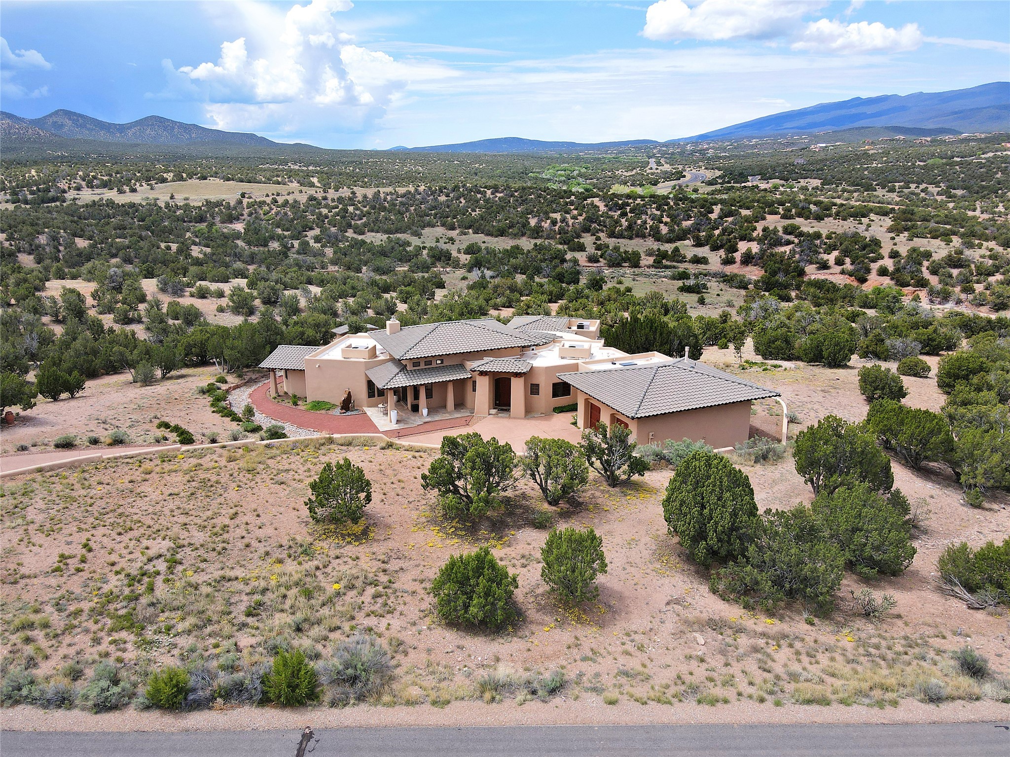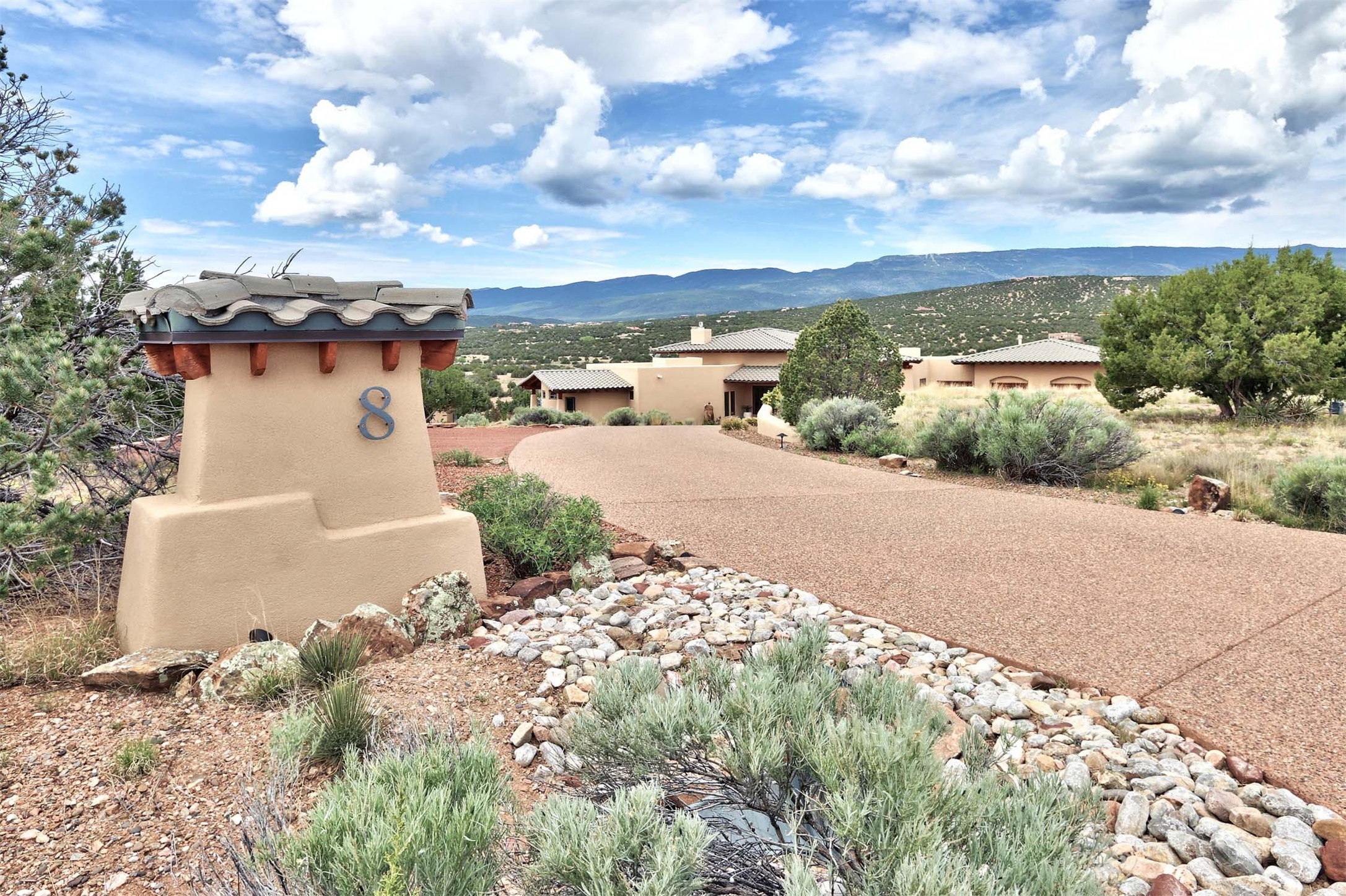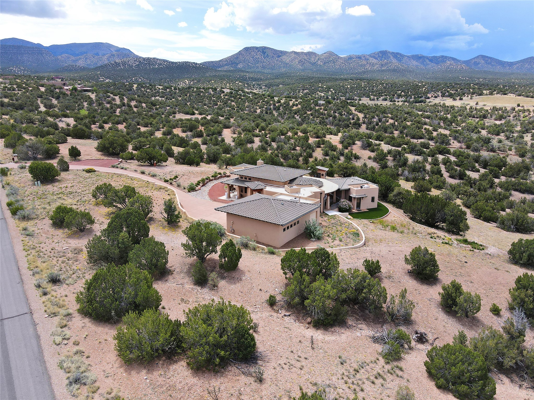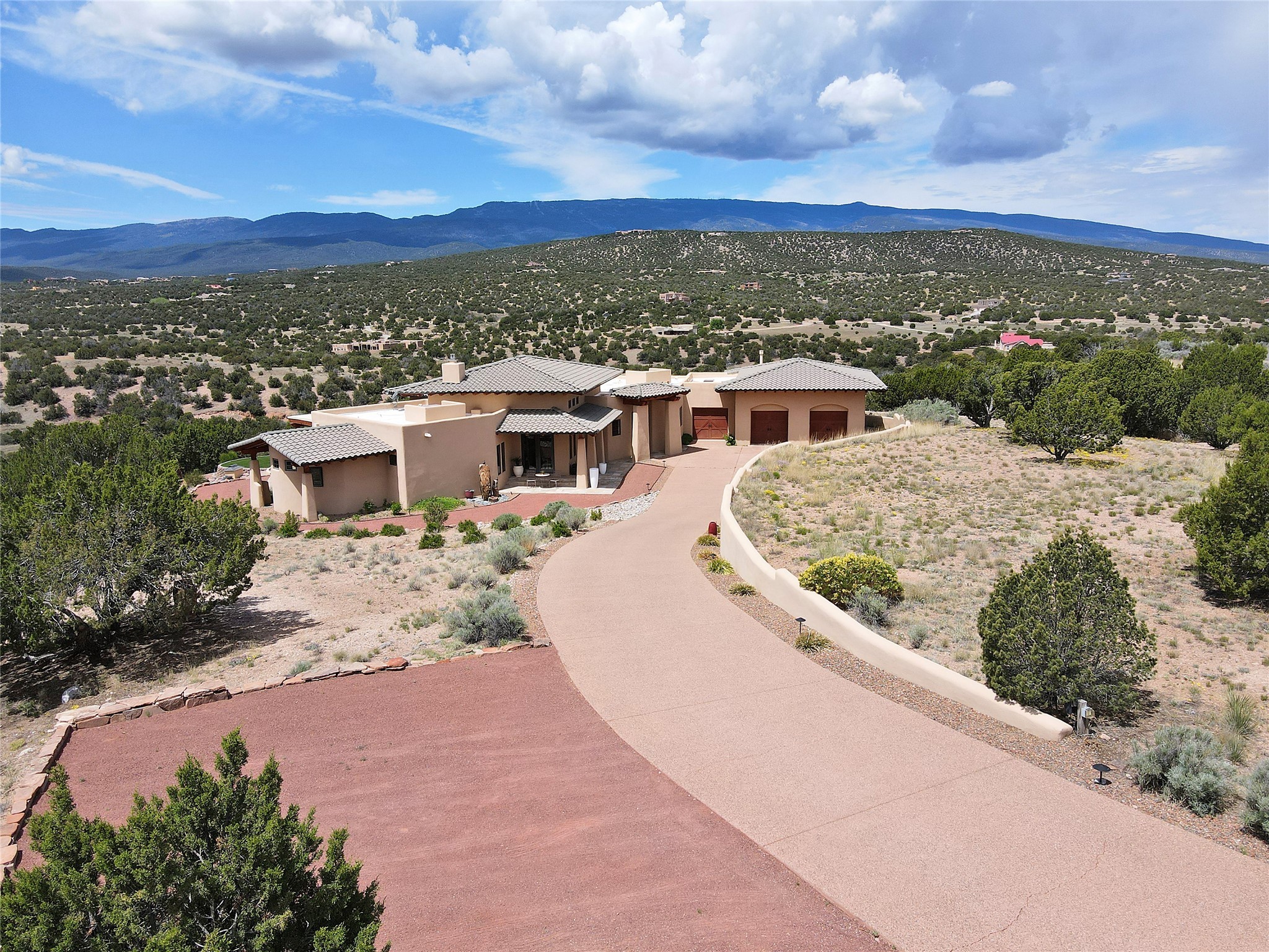 The Overlook is an exclusive, secure community located along the Turquoise Trail National Scenic Byway. An impressive entrance provides a manned gate house and camera system for peace of mind and security. This full custom built San Pedro Creek Overlook home offers spectacular mountain and vista views with quiet enjoyment and privacy. Home features include top grade finishes and fixtures throughout the home with attention to every elegant detail. The entertaining, friendly kitchen is open to living and dining areas. Enjoy the views from your own in-ground spa and deck. The oversized (1050 sf) garage with a drive through bay accommodates the charming 3 room casita. The amenities of this fabulous home are further enhanced by the private club house featuring a large, heated pool, spa, amphitheater, kitchen and dining areas. The abundant wildlife and birds are an additional bonus to complete the setting. The best of both cities are only a short 25 minutes to Albuquerque and 40 minutes to Santa Fe.