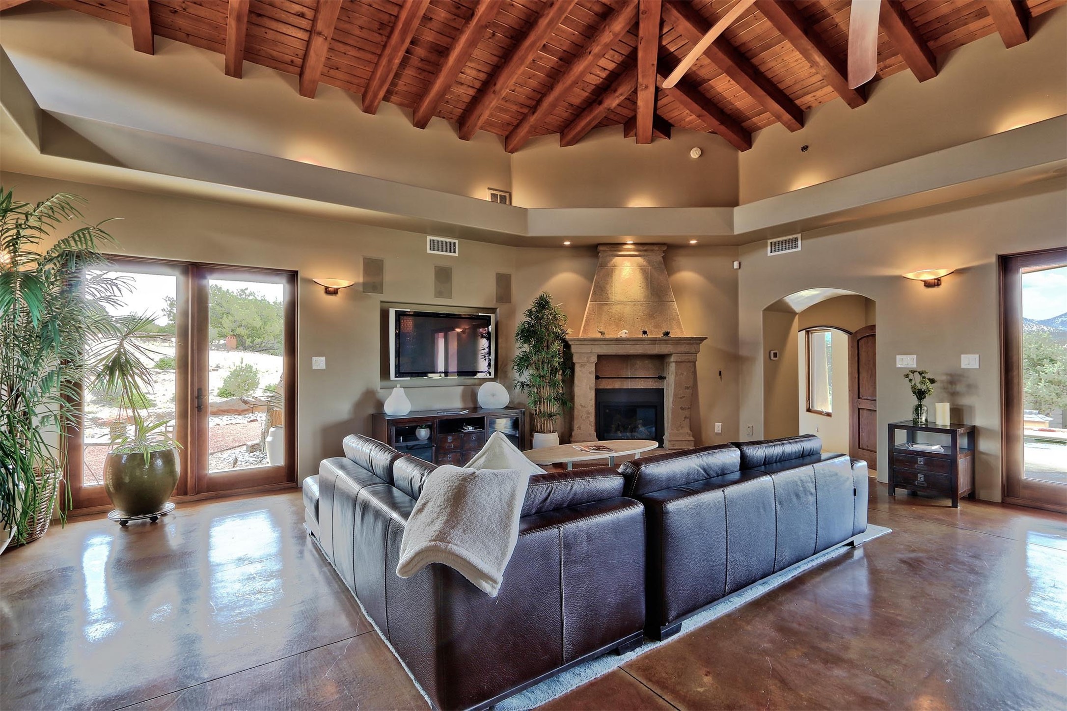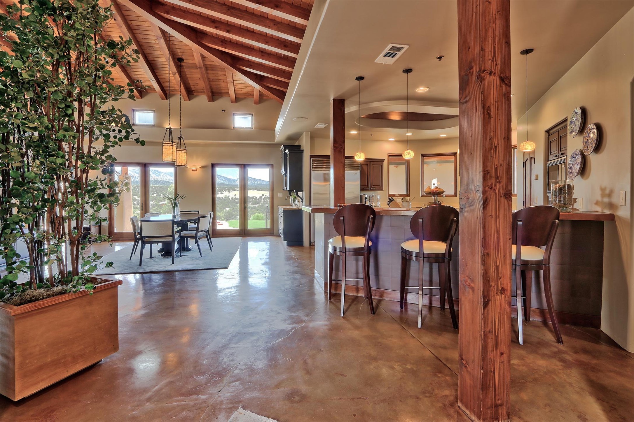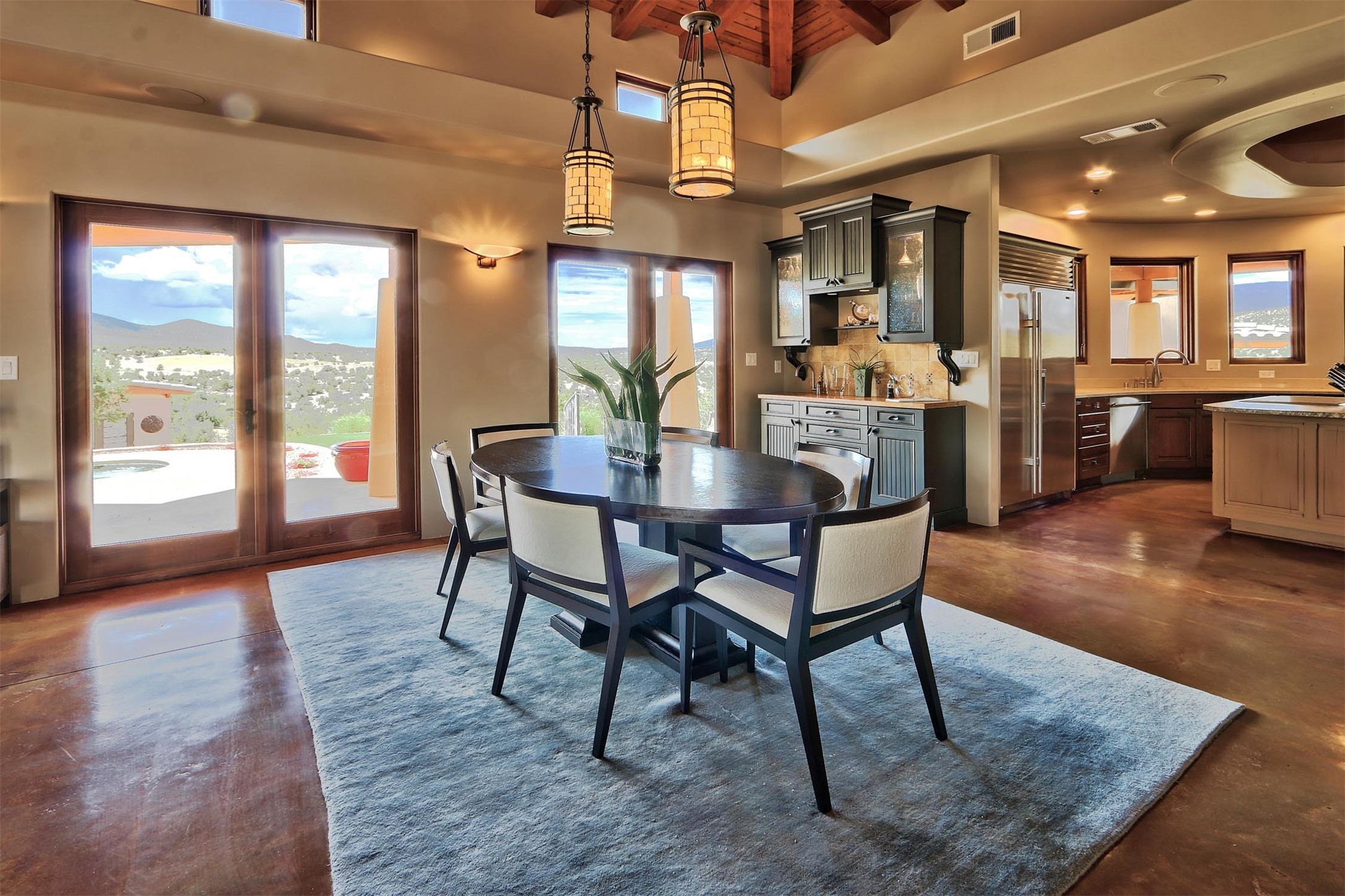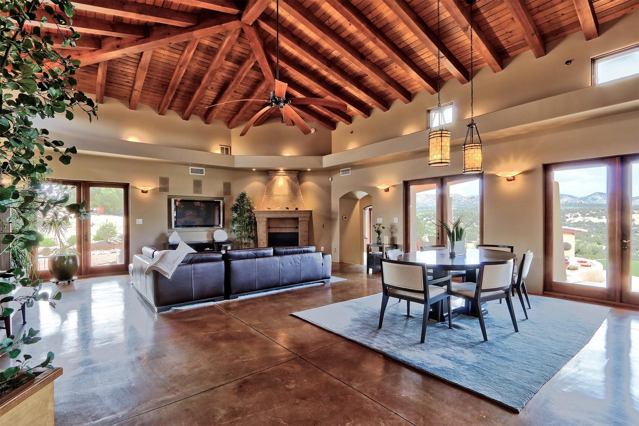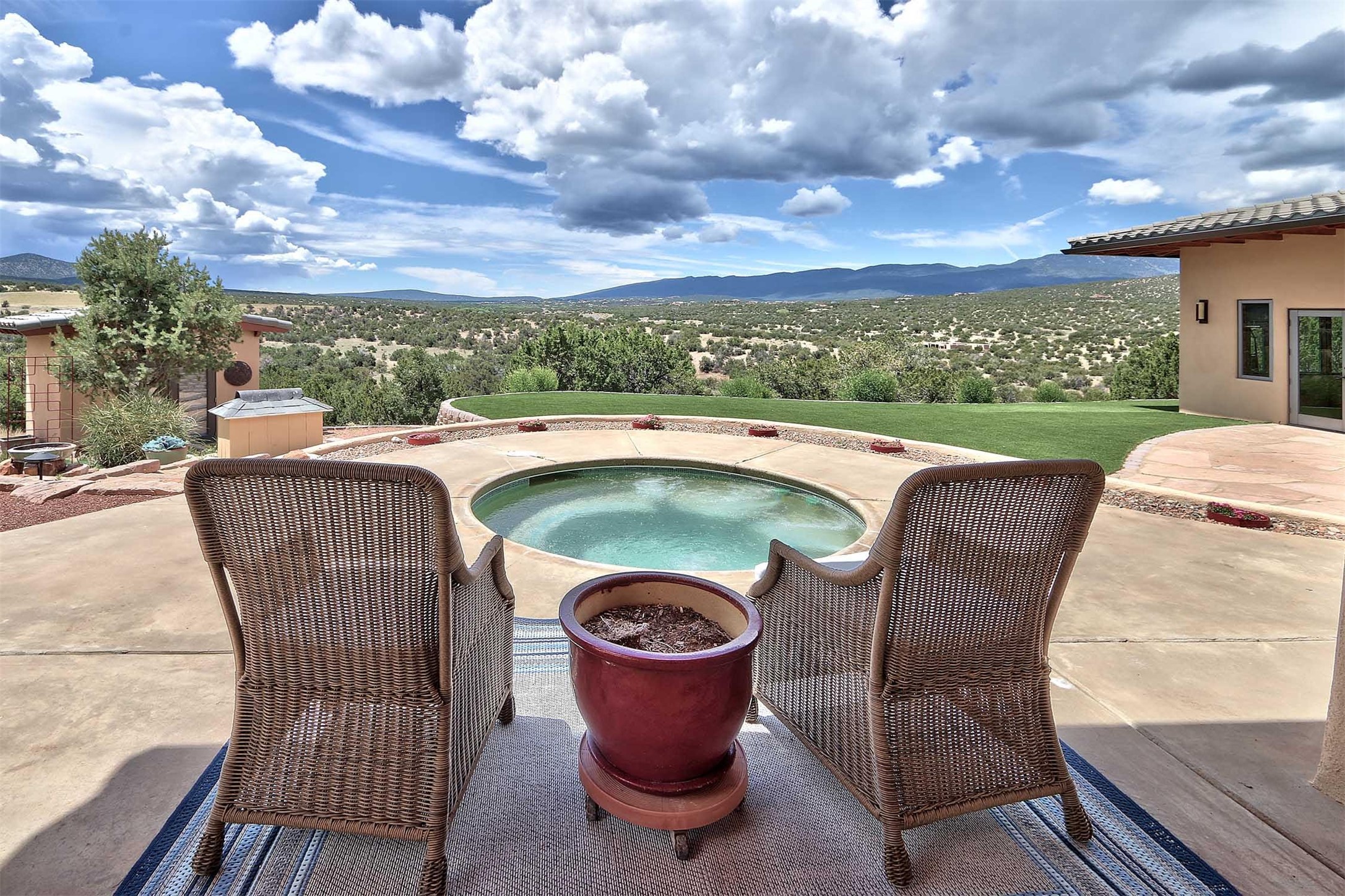 The Overlook is an exclusive, secure community located along the Turquoise Trail National Scenic Byway. An impressive entrance provides a manned gate house and camera system for peace of mind and security. This full custom built San Pedro Creek Overlook home offers spectacular mountain and vista views with quiet enjoyment and privacy. Home features include top grade finishes and fixtures throughout the home with attention to every elegant detail. The entertaining, friendly kitchen is open to living and dining areas. Enjoy the views from your own in-ground spa and deck. The oversized (1050 sf) garage with a drive through bay accommodates the charming 3 room casita. The amenities of this fabulous home are further enhanced by the private club house featuring a large, heated pool, spa, amphitheater, kitchen and dining areas. The abundant wildlife and birds are an additional bonus to complete the setting. The best of both cities are only a short 25 minutes to Albuquerque and 40 minutes to Santa Fe.