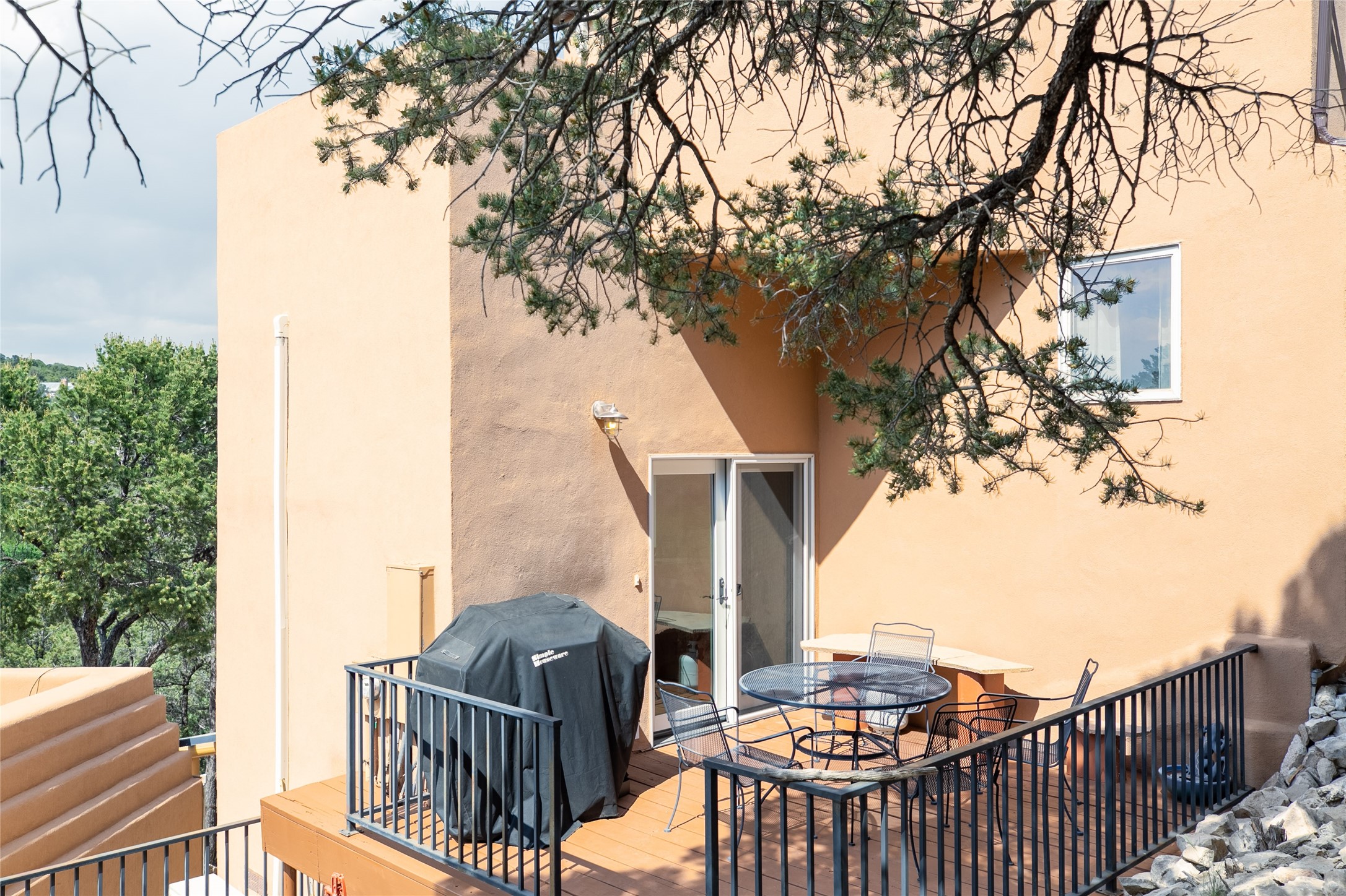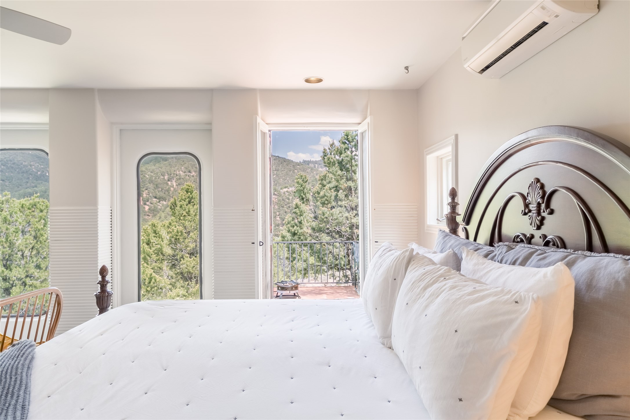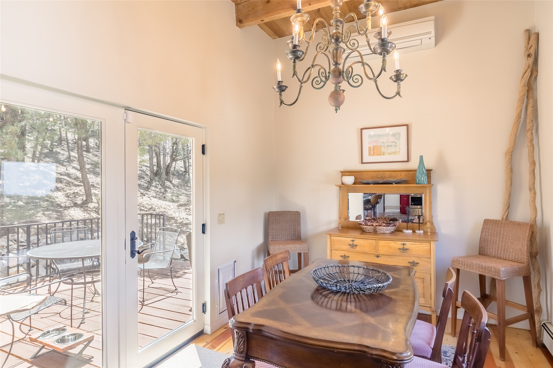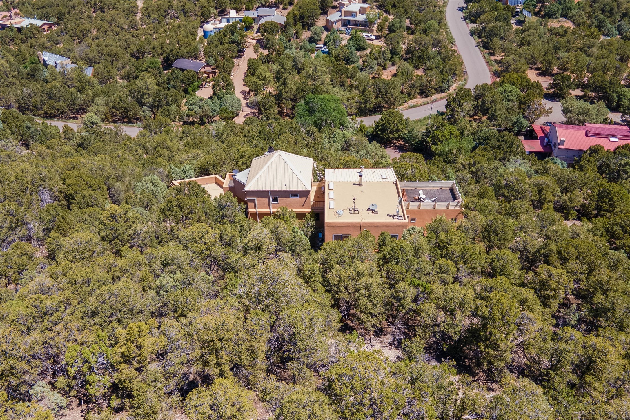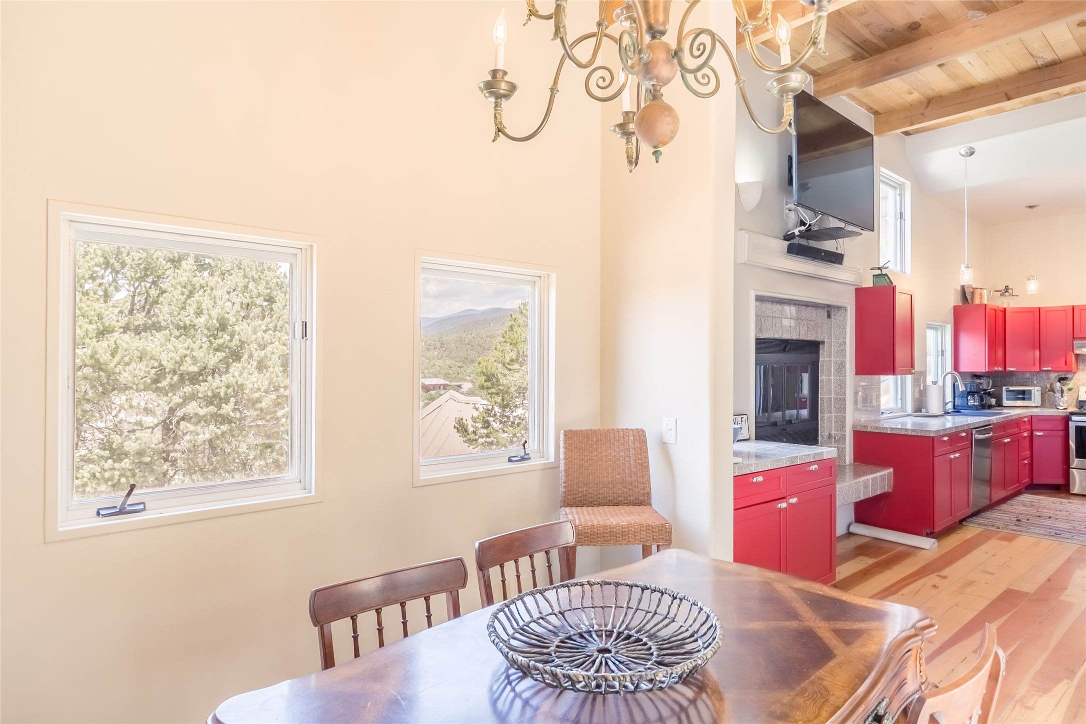 Welcome to 2092 Paseo Primero in the breathtaking Hyde Park area just outside Santa Fe. This luxurious mountain getaway offers a serene retreat while being conveniently located only 3.5 miles from the bustling SF Plaza and within walking distance to the renowned Ten Thousand Waves spa. Step inside the main house and instantly feel the embrace of a high-end mountain retreat. The property exudes an incredible sense of remoteness, allowing you to escape from the hustle and bustle of city life while indulging in a touch of luxury. Prepare to be captivated by the awe-inspiring views of the Jemez and Los Alamos mountains, as well as the majestic Ski Santa Fe, from not one, but four expansive decks. Whether you're sipping a glass of wine, admiring the sunrise, or stargazing under a blanket of stars, these decks offer a perfect setting to elevate your mountain getaway experience. Inside, this property showcases multiple living areas, providing ample space for relaxation, entertainment, and privacy. The main house can be divided into two separate units, offering the flexibility to accommodate extended family, guests, or even generate rental income. Each unit features its own distinct character and style, creating an inviting and versatile living arrangement. You'll appreciate the wood beam ceilings that add a touch of rustic elegance to the space. Cozy up by the fireplace, as the flames dance and create a warm ambiance that perfectly complements the natural beauty surrounding the property. For those seeking outdoor adventure, the hiking trails accessible right from the side and back yard beckon you to explore the picturesque landscape. As you pass through the electric front gate and meander down the driveway, you'll feel a sense of exclusivity and tranquility that only a private mountain retreat can provide.