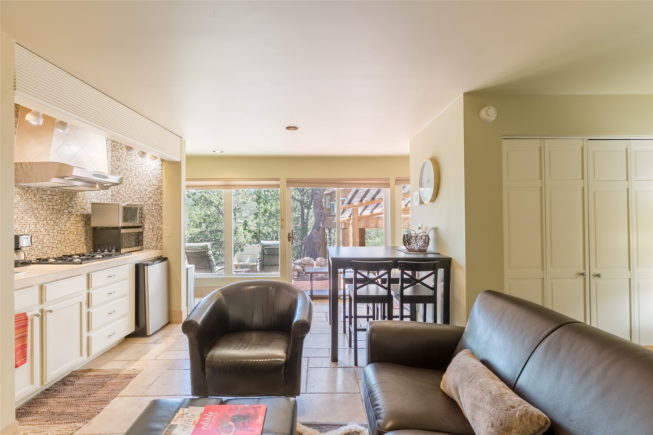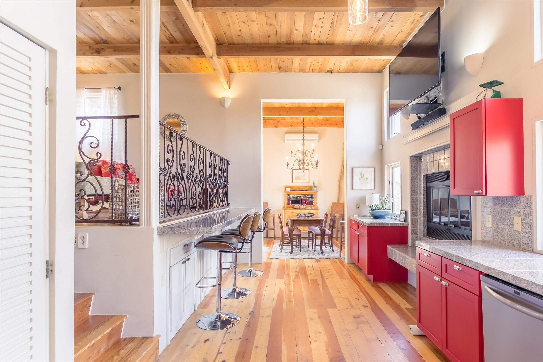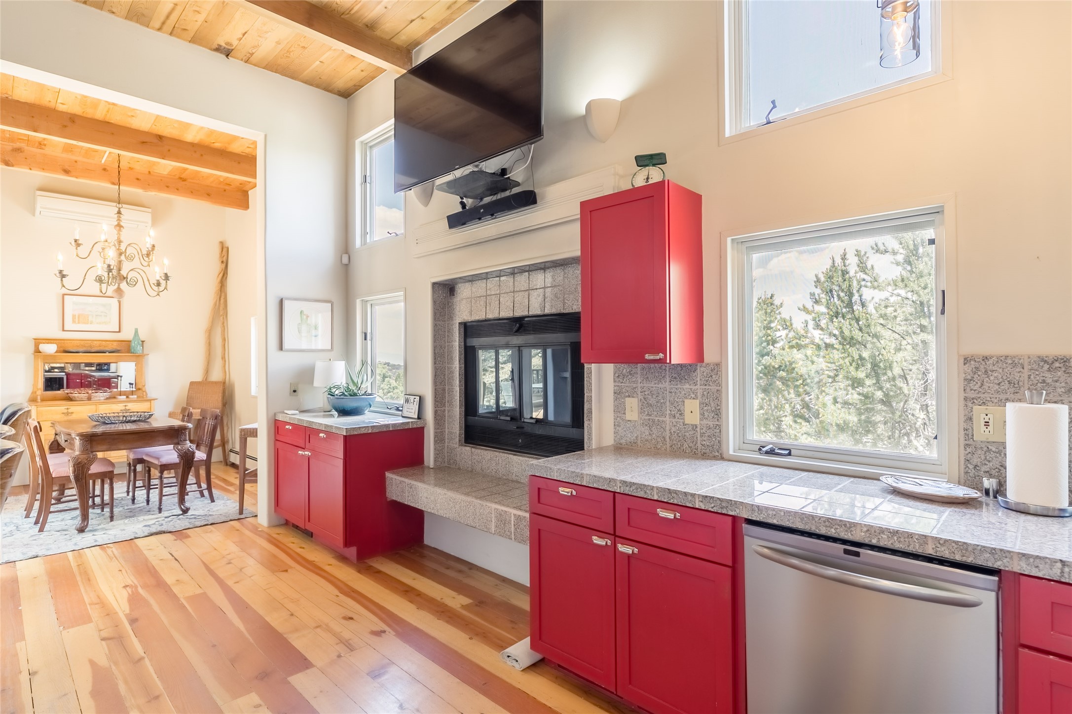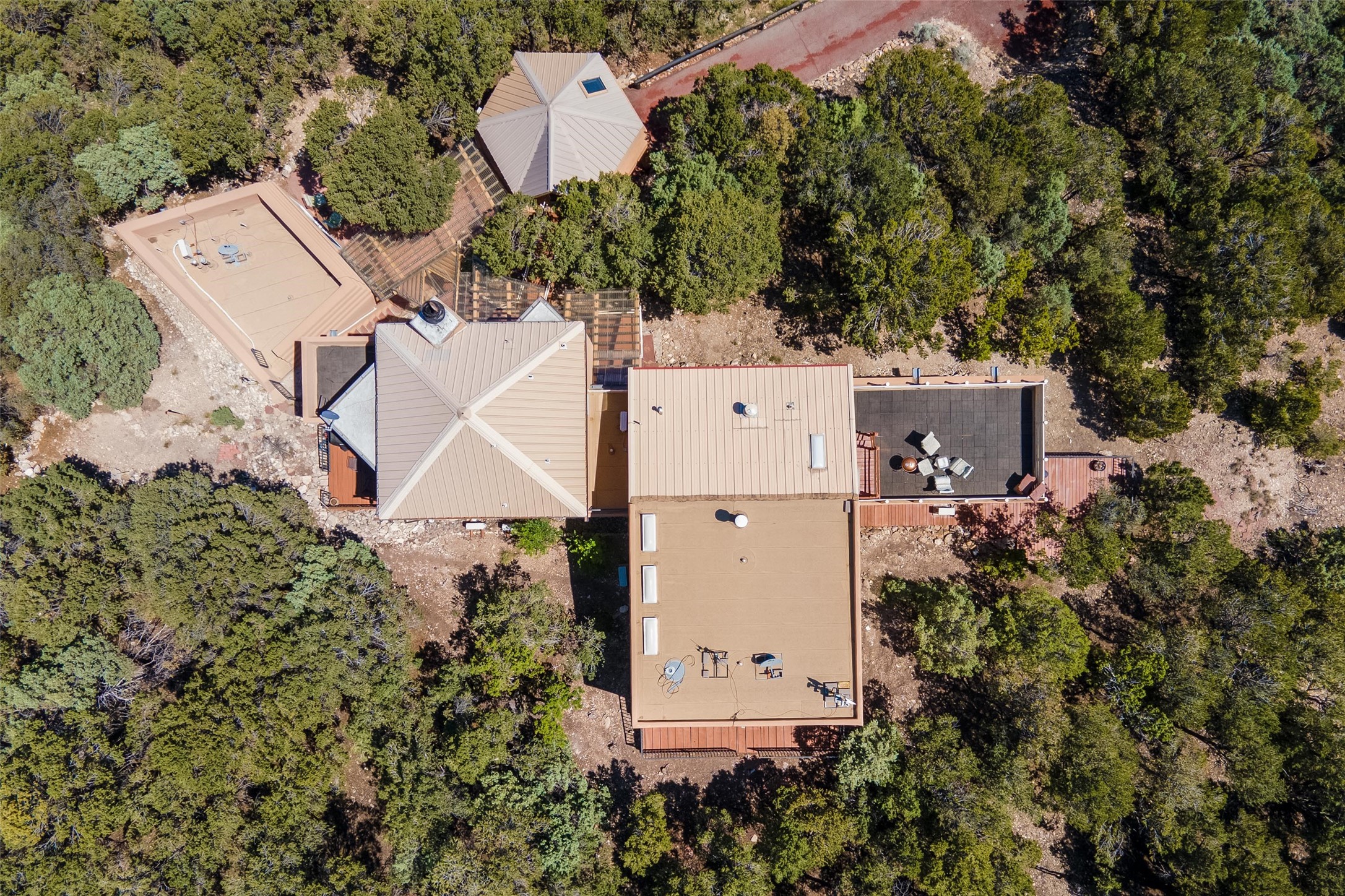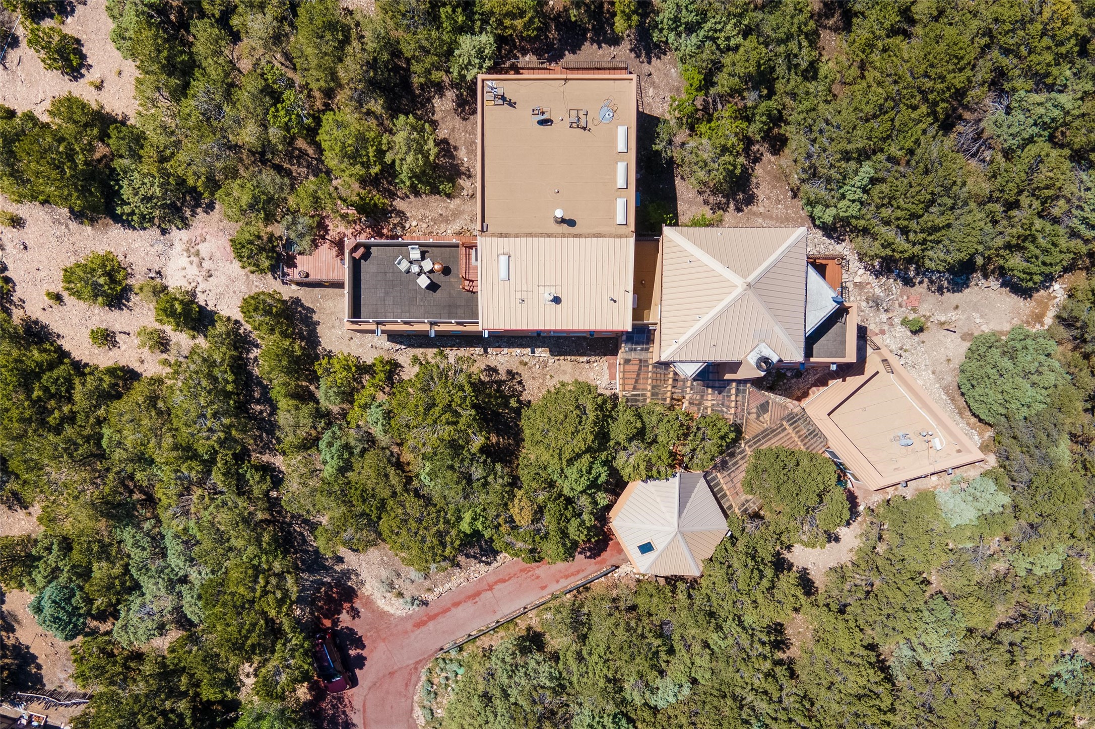 Welcome to 2092 Paseo Primero in the breathtaking Hyde Park area just outside Santa Fe. This luxurious mountain getaway offers a serene retreat while being conveniently located only 3.5 miles from the bustling SF Plaza and within walking distance to the renowned Ten Thousand Waves spa. Step inside the main house and instantly feel the embrace of a high-end mountain retreat. The property exudes an incredible sense of remoteness, allowing you to escape from the hustle and bustle of city life while indulging in a touch of luxury. Prepare to be captivated by the awe-inspiring views of the Jemez and Los Alamos mountains, as well as the majestic Ski Santa Fe, from not one, but four expansive decks. Whether you're sipping a glass of wine, admiring the sunrise, or stargazing under a blanket of stars, these decks offer a perfect setting to elevate your mountain getaway experience. Inside, this property showcases multiple living areas, providing ample space for relaxation, entertainment, and privacy. The main house can be divided into two separate units, offering the flexibility to accommodate extended family, guests, or even generate rental income. Each unit features its own distinct character and style, creating an inviting and versatile living arrangement. You'll appreciate the wood beam ceilings that add a touch of rustic elegance to the space. Cozy up by the fireplace, as the flames dance and create a warm ambiance that perfectly complements the natural beauty surrounding the property. For those seeking outdoor adventure, the hiking trails accessible right from the side and back yard beckon you to explore the picturesque landscape. As you pass through the electric front gate and meander down the driveway, you'll feel a sense of exclusivity and tranquility that only a private mountain retreat can provide.