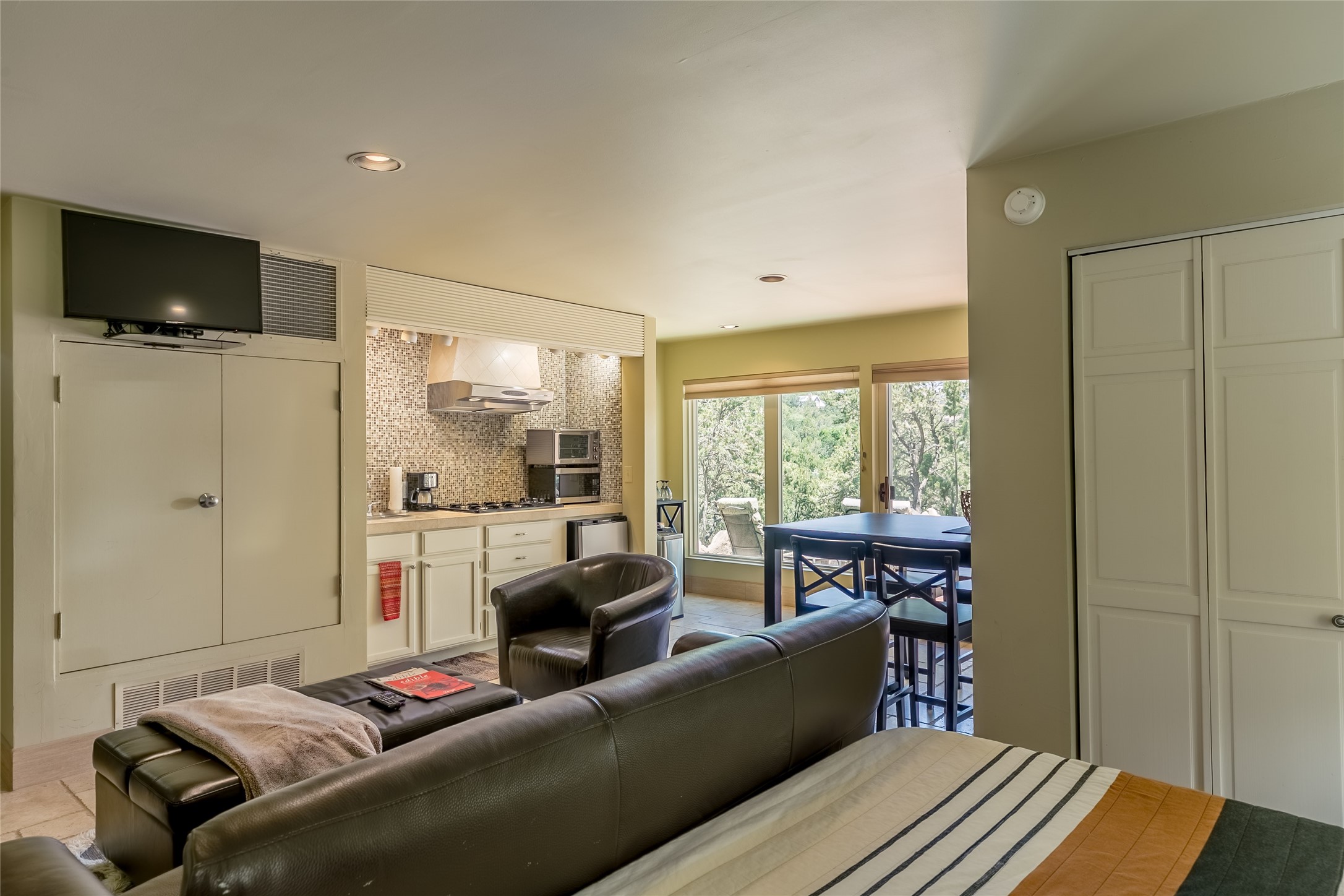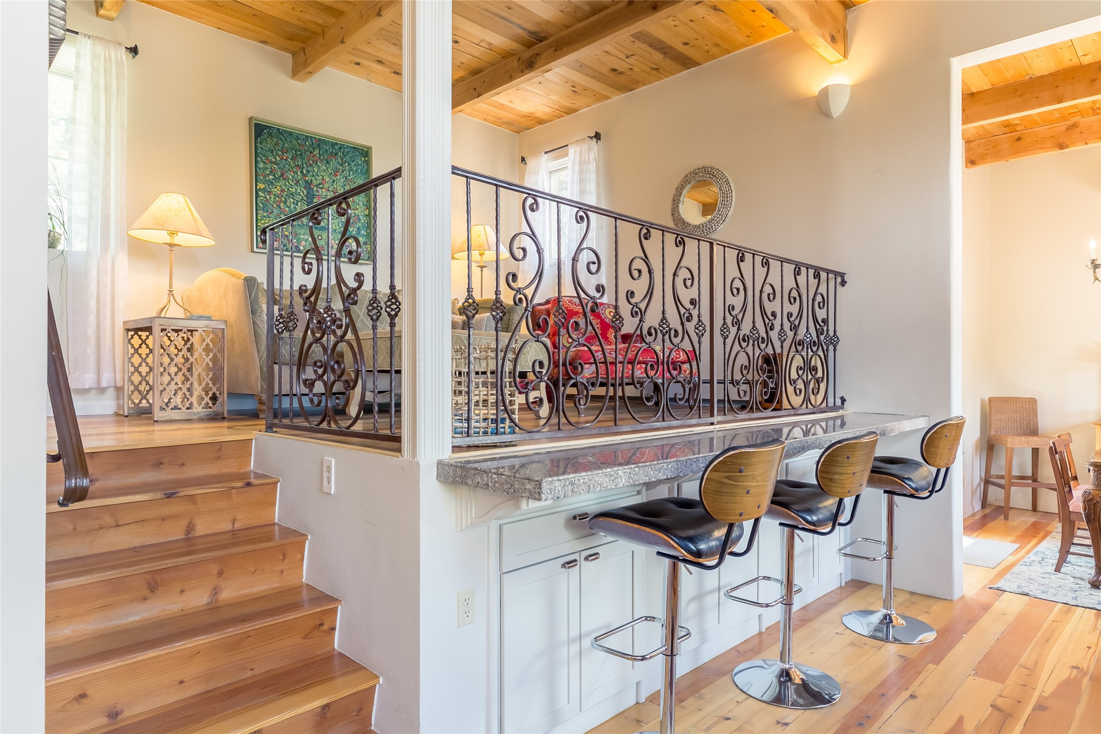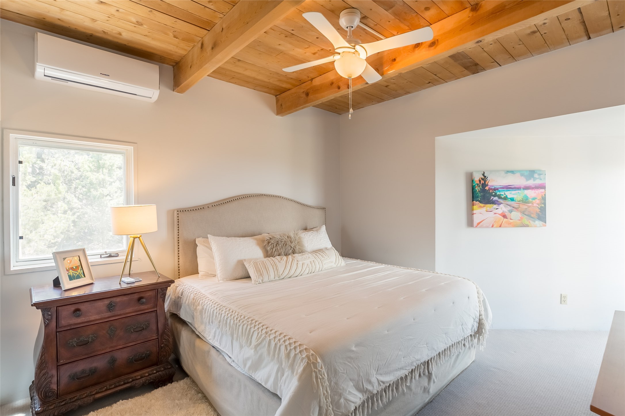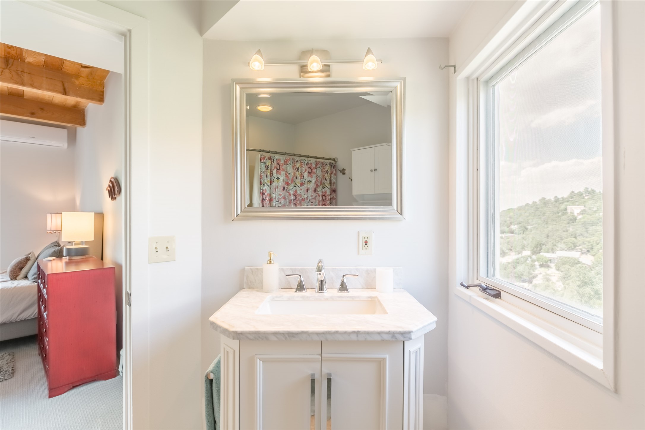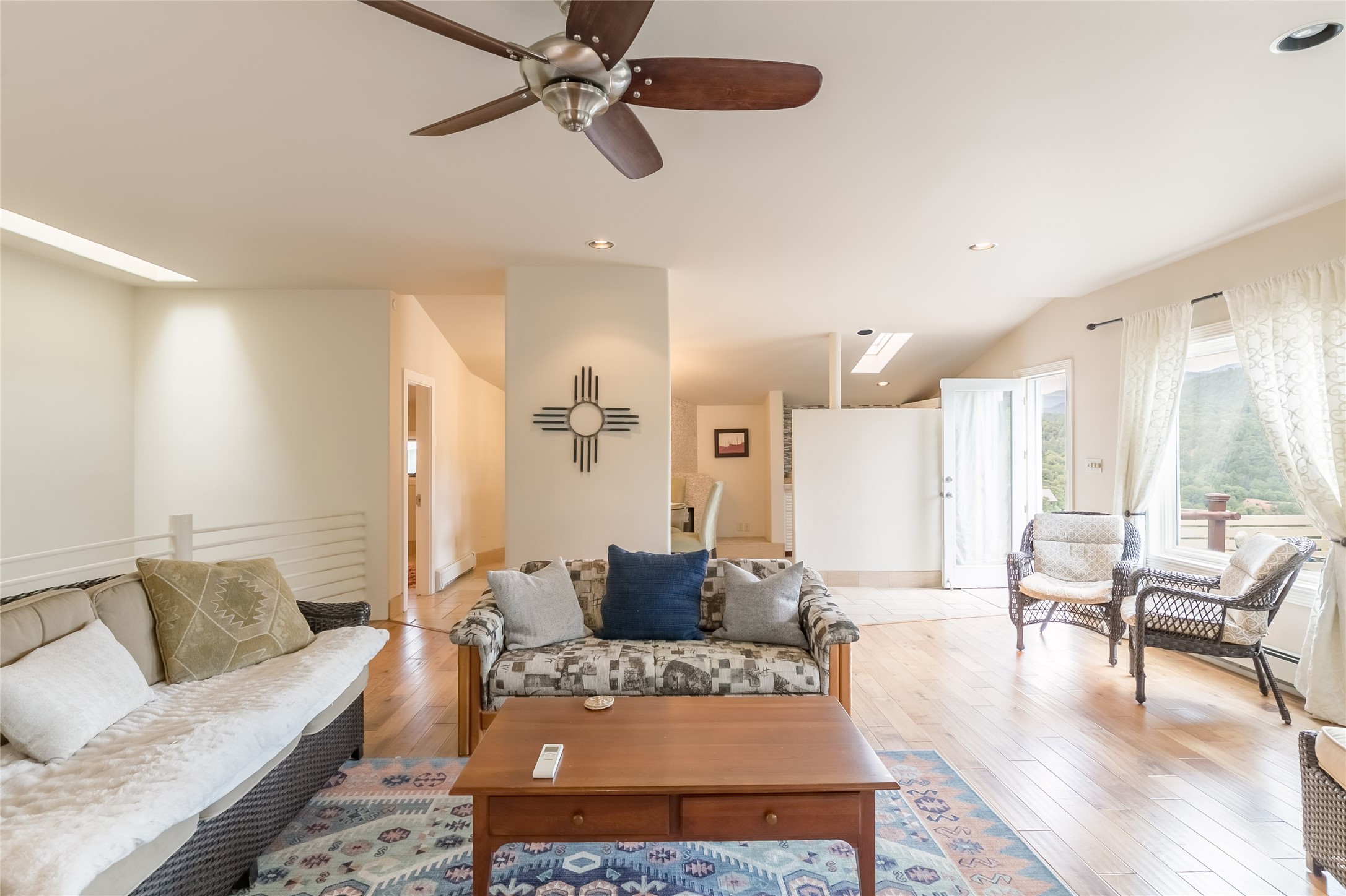 Welcome to 2092 Paseo Primero in the breathtaking Hyde Park area just outside Santa Fe. This luxurious mountain getaway offers a serene retreat while being conveniently located only 3.5 miles from the bustling SF Plaza and within walking distance to the renowned Ten Thousand Waves spa. Step inside the main house and instantly feel the embrace of a high-end mountain retreat. The property exudes an incredible sense of remoteness, allowing you to escape from the hustle and bustle of city life while indulging in a touch of luxury. Prepare to be captivated by the awe-inspiring views of the Jemez and Los Alamos mountains, as well as the majestic Ski Santa Fe, from not one, but four expansive decks. Whether you're sipping a glass of wine, admiring the sunrise, or stargazing under a blanket of stars, these decks offer a perfect setting to elevate your mountain getaway experience. Inside, this property showcases multiple living areas, providing ample space for relaxation, entertainment, and privacy. The main house can be divided into two separate units, offering the flexibility to accommodate extended family, guests, or even generate rental income. Each unit features its own distinct character and style, creating an inviting and versatile living arrangement. You'll appreciate the wood beam ceilings that add a touch of rustic elegance to the space. Cozy up by the fireplace, as the flames dance and create a warm ambiance that perfectly complements the natural beauty surrounding the property. For those seeking outdoor adventure, the hiking trails accessible right from the side and back yard beckon you to explore the picturesque landscape. As you pass through the electric front gate and meander down the driveway, you'll feel a sense of exclusivity and tranquility that only a private mountain retreat can provide.