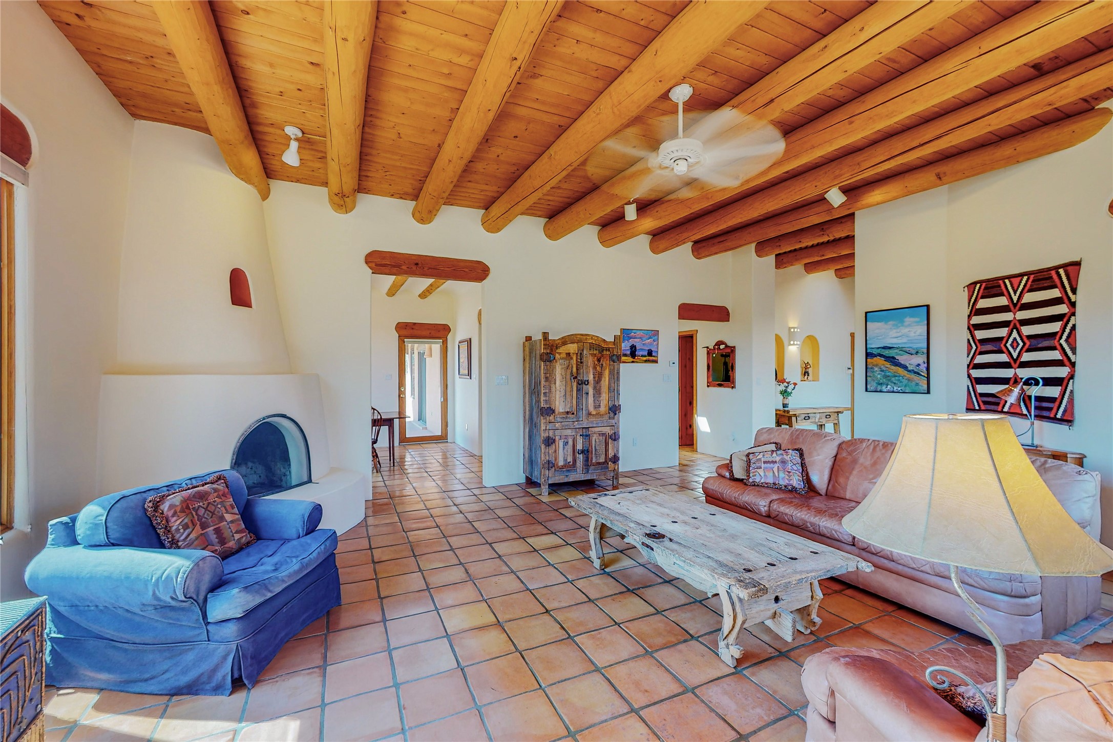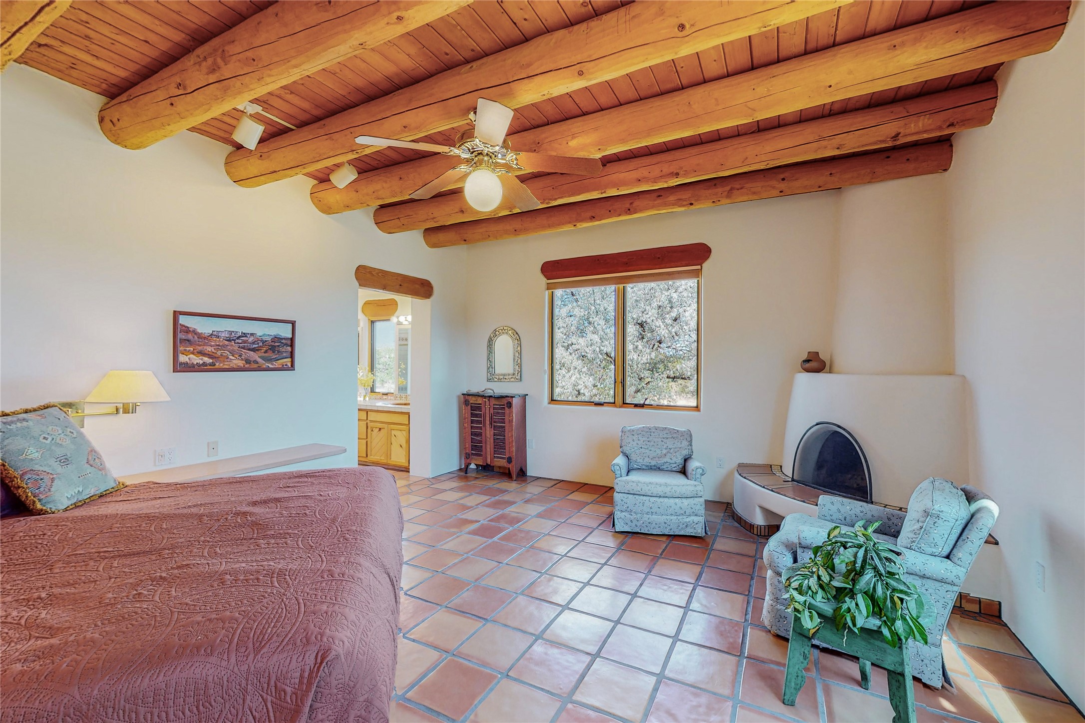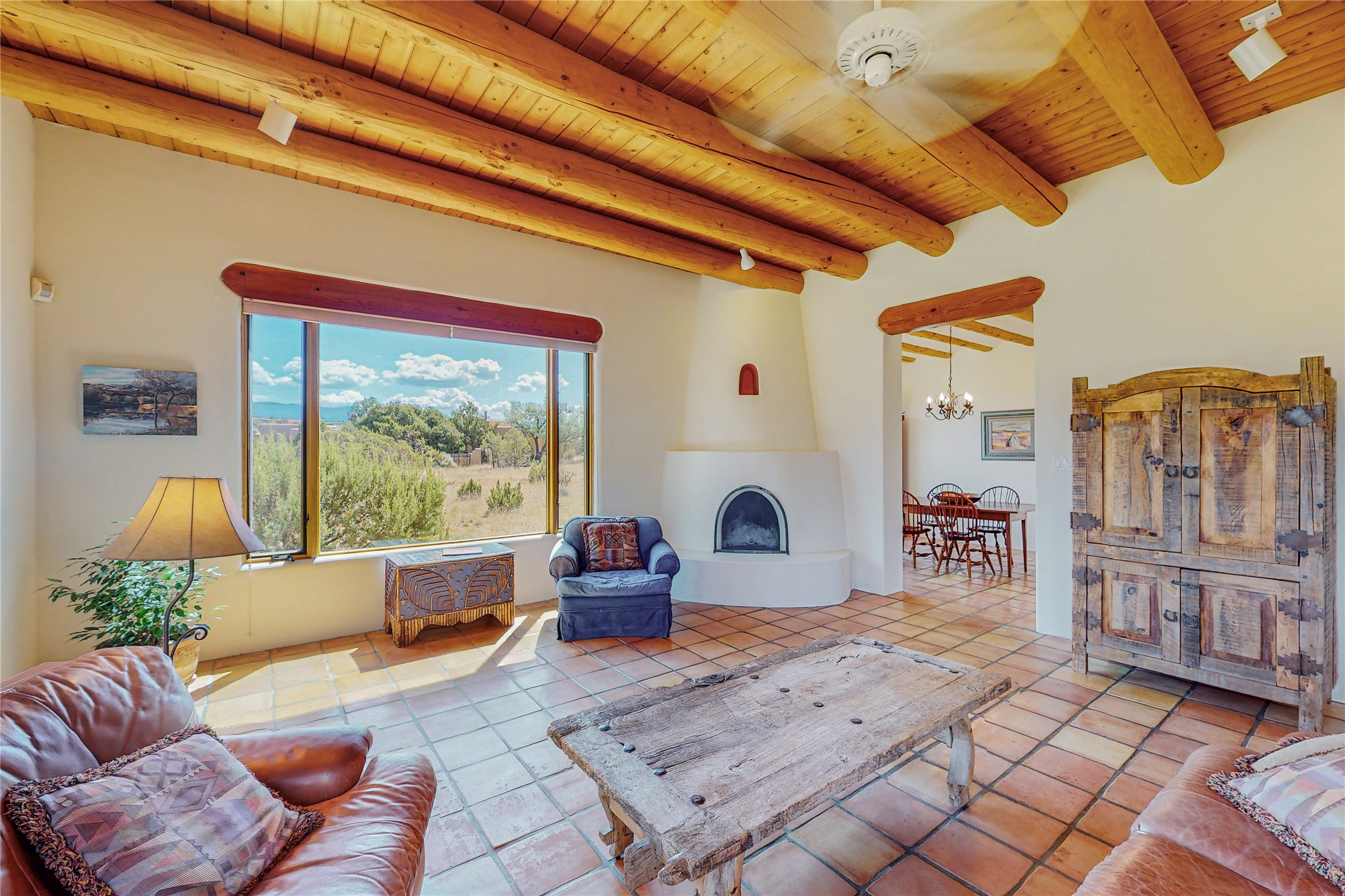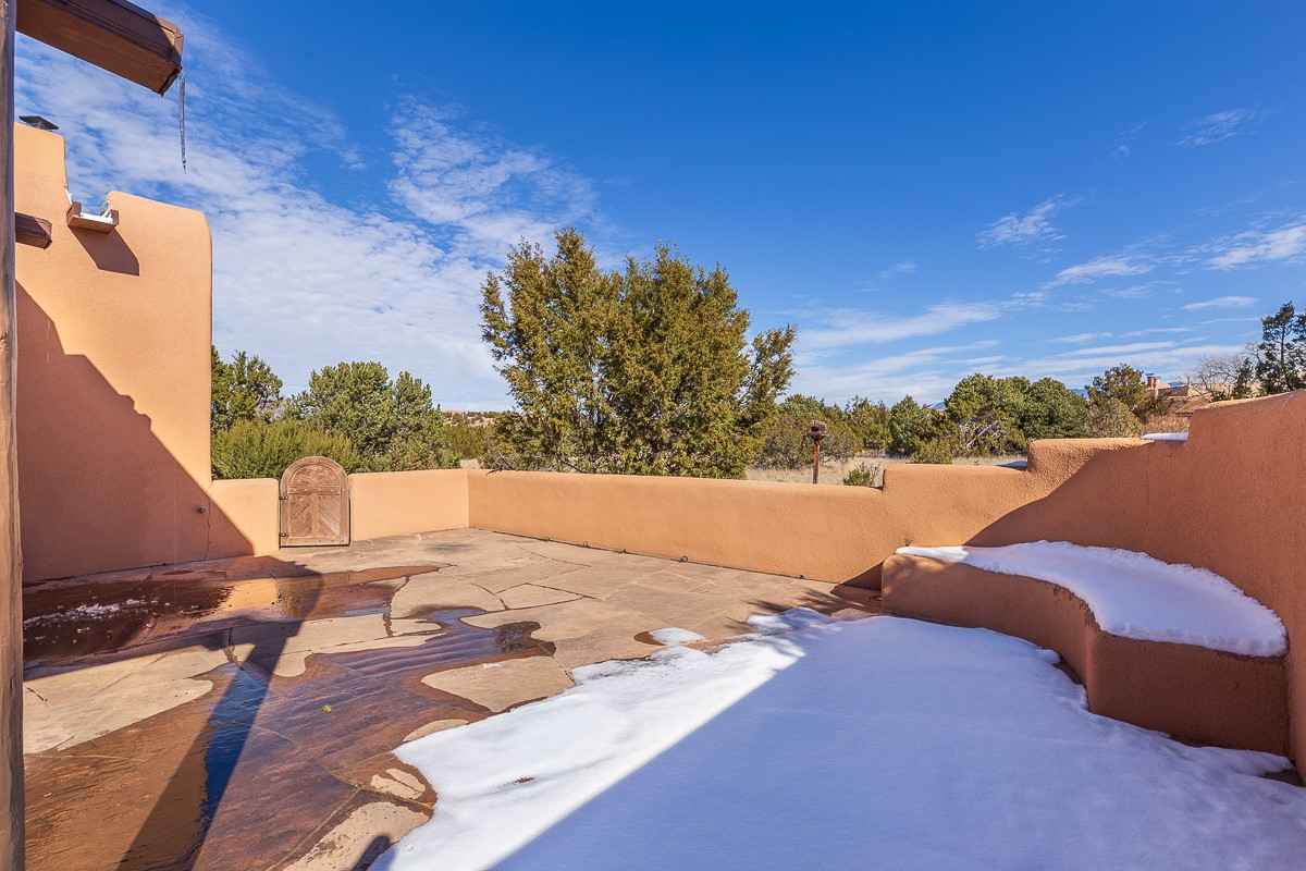 Take a closer look at this property----Newly priced!!! Newly staged!! This home is located in the private and gated Salva Tierra subdivision, just a short distance from the plaza. It has impressive views of the Sangres.This traditional Santa Fe style home is in original condition and waiting for your new-fashioned touch! Flexible floor plan. Large master suite with kiva fireplace and massive walk-in closet. Lots of closets and storage space in this home. Full-view doors off the kitchen and dining room open to the spacious patio for a great entertaining flow. Sweet breakfast room with kiva fireplace. Meadow-like surroundings and private outdoor spaces. Plenty of walking and hiking trails just outside your door. Great HOAs include trash, recycle, gate maintenance, roads and common areas. 2742 square feet. 3 bedrooms, 2 1/2 baths. Two car garage, all on 1.5 acres. Pre-inspected and ready to go.