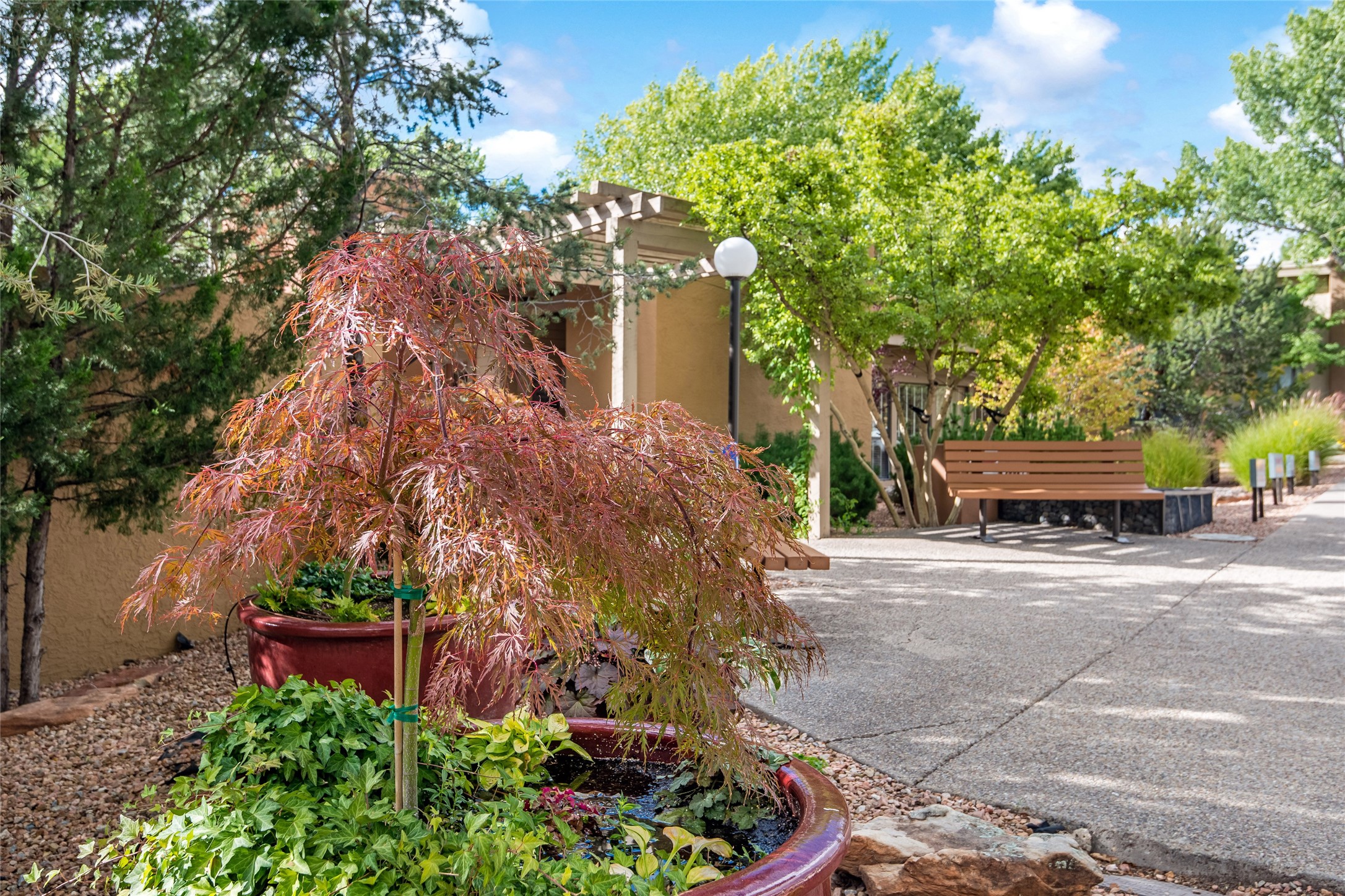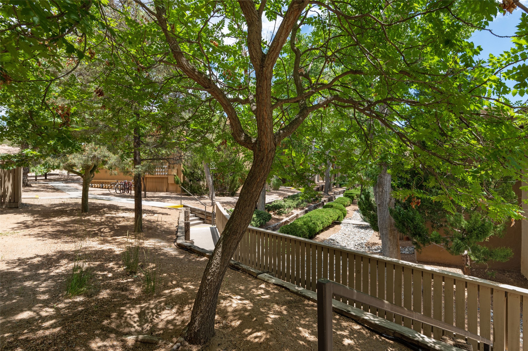Light, bright, quiet, private, ground floor, end unit with uninterrupted, sky filled views, energizing morning light, and shelter from the afternoon sun in The Reserve, a gated, non-smoking condo community on 16 tree covered acres with adjoining nature trail access, just minutes north of the DeVargas Mall the Santa Fe Plaza and an easy commute to Los Alamos offers a heated outdoor pool and hot tub, a clean gym, large laundry facility, night time security, and a beautiful clubhouse. This awesome condo features ceramic tiled floors throughout, an updated kitchen, spacious closets, and a private patio. This is a prime unit in a prime location. Low maintenance; the roof, stucco, and landscaping are maintained by the HOA. And small pets are welcome! Call today for your private showing.