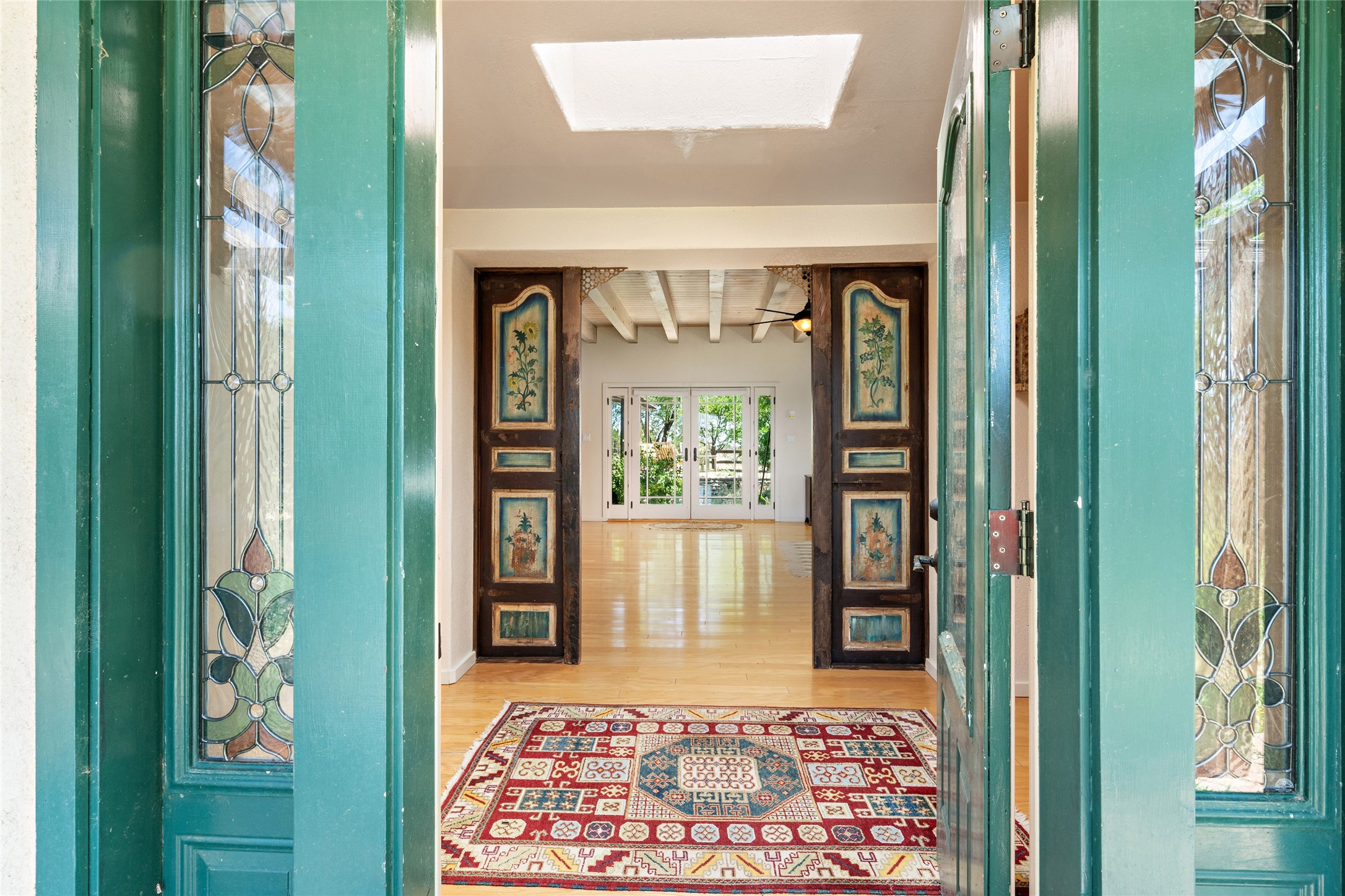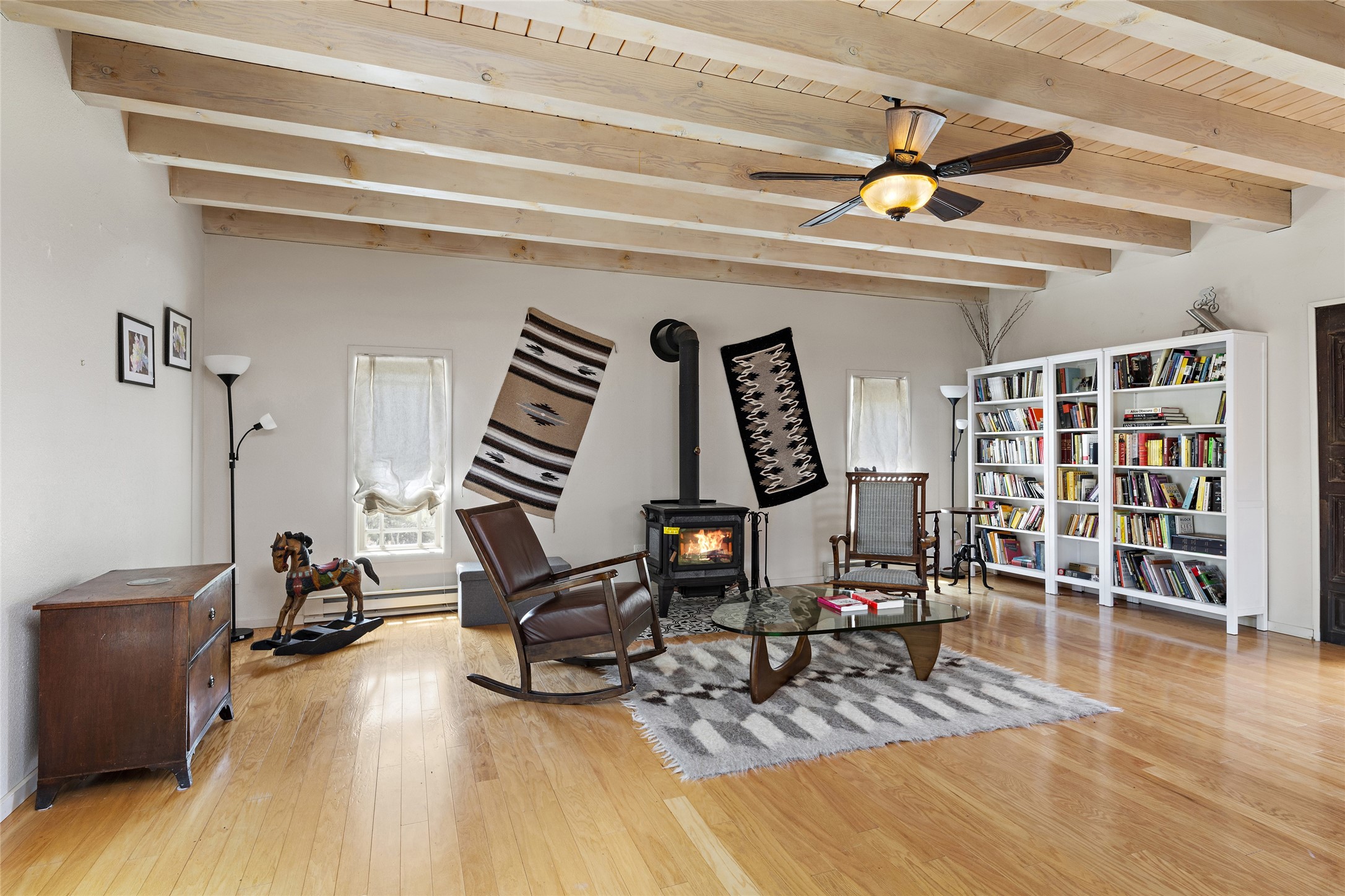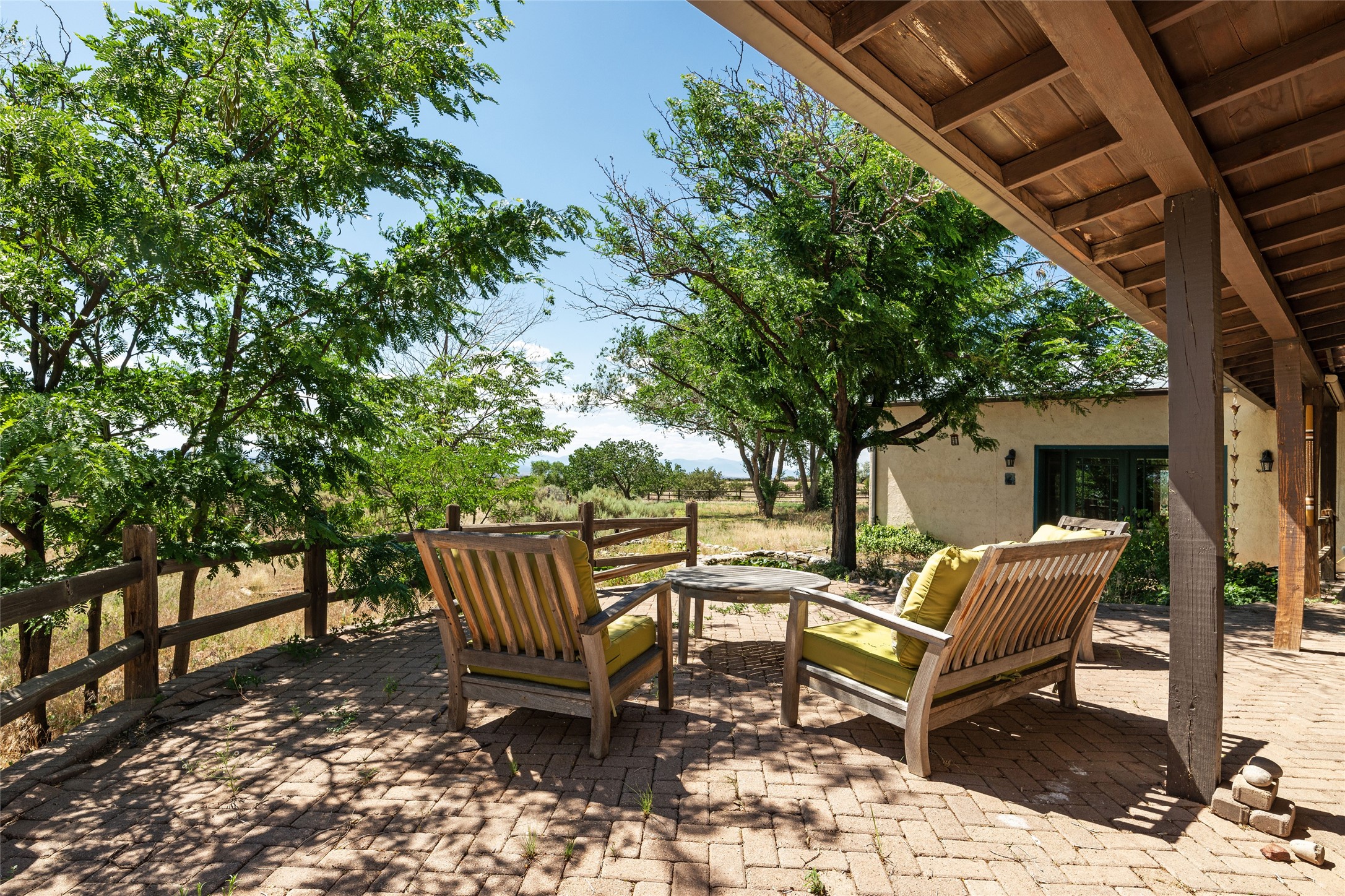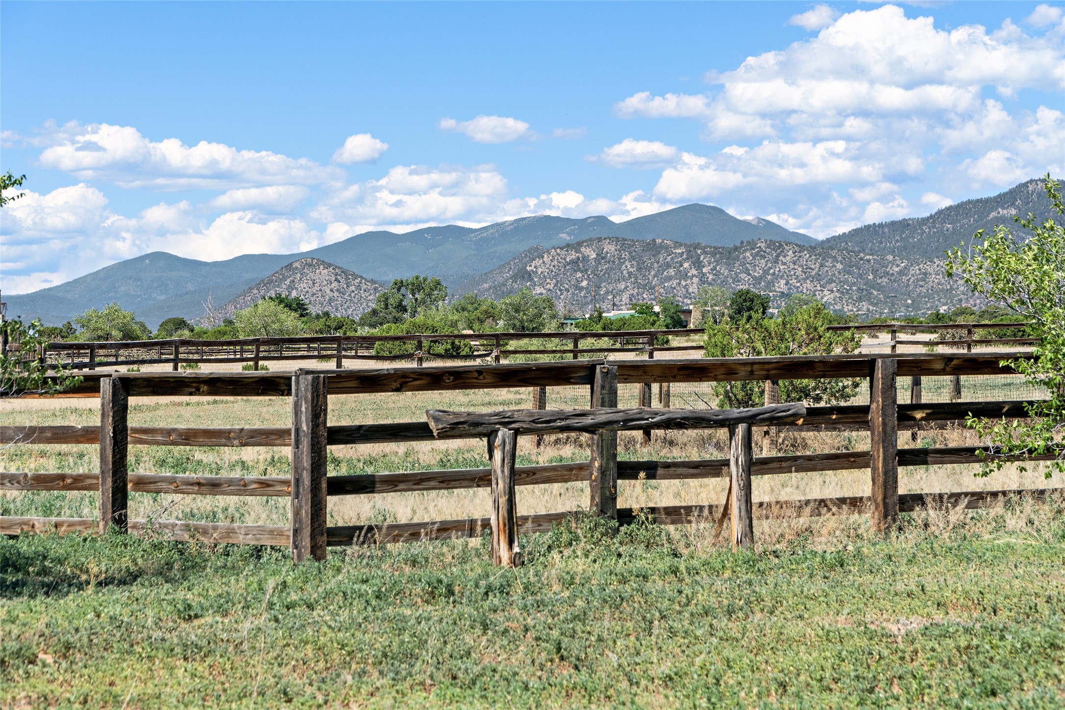 This well-maintained home offering a total of 5 bedrooms and 7 bathrooms is sited on over 12 fenced acres with mountain views in every direction and a pastoral, tranquil setting. This property is well equipped for the discerning equestrian or anyone seeking the peace of rural life - all while being less than 9 miles from the historic Santa Fe Plaza! While the main house is over 100 years old on paper, it was thoroughly updated by the prior owner with double pane windows, state of the art kitchens, new flooring and luxurious bathrooms in addition to newer mechanical systems for heating and hot water. The private well is permitted to provide 3-acre feet of water per year and the well mechanicals have been updated in the last few years, providing reliable and clean water to the property - plenty for your homestead, gardens and livestock! The guest house is situated on the south side of the barn/stable structure and is perfect for a caretaker's quarters or could be used to generate some excellent passive income while the studio space with soft, north light is situated on the north end of the barn/stables and would make for a fantastic workspace for any artist. The expansive Arroyo Hondo trail system is easily accessed from this parcel, providing miles and miles of walking, biking and horse trails. Don't miss your opportunity to own this special property that has so much to offer!