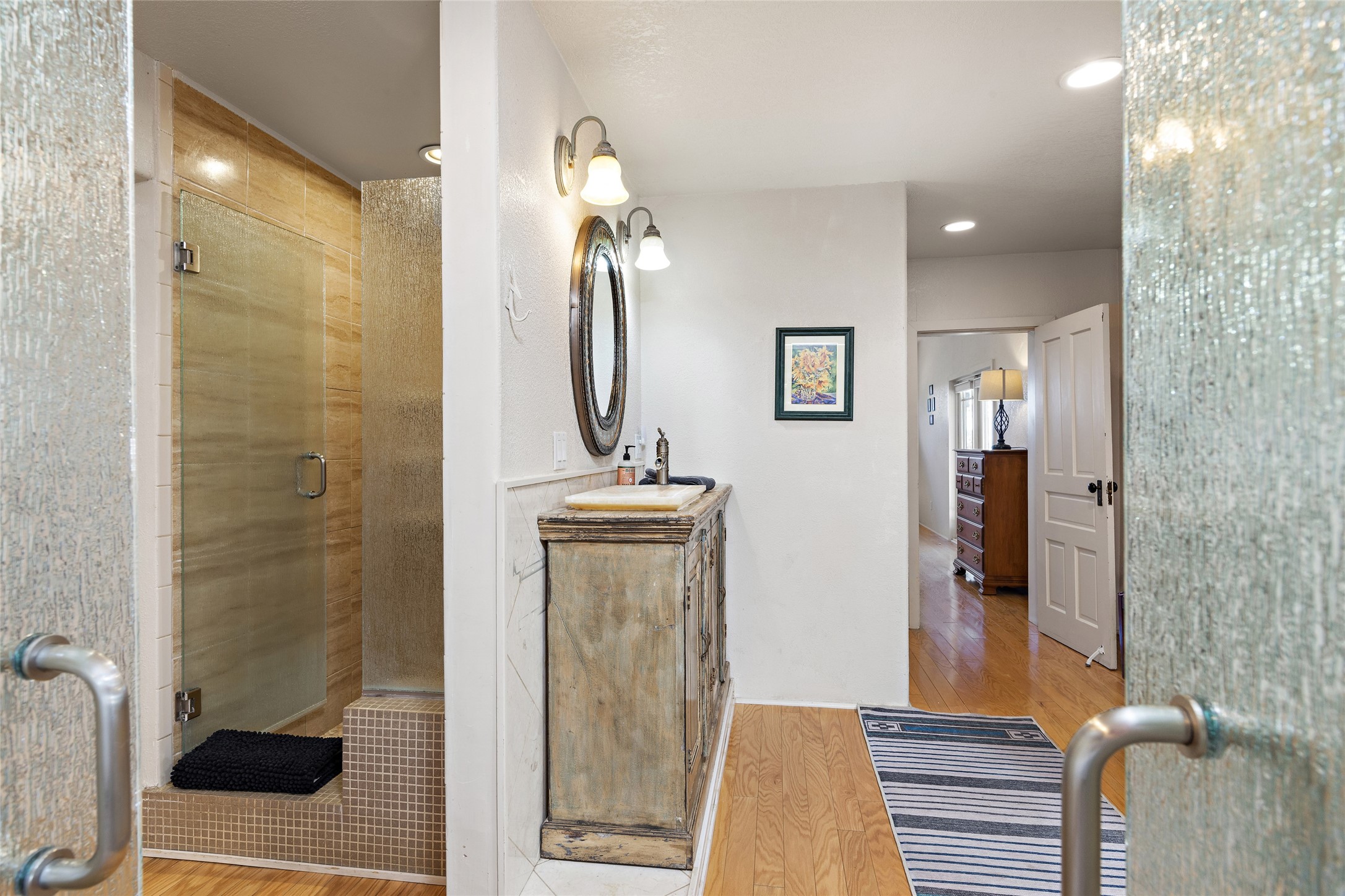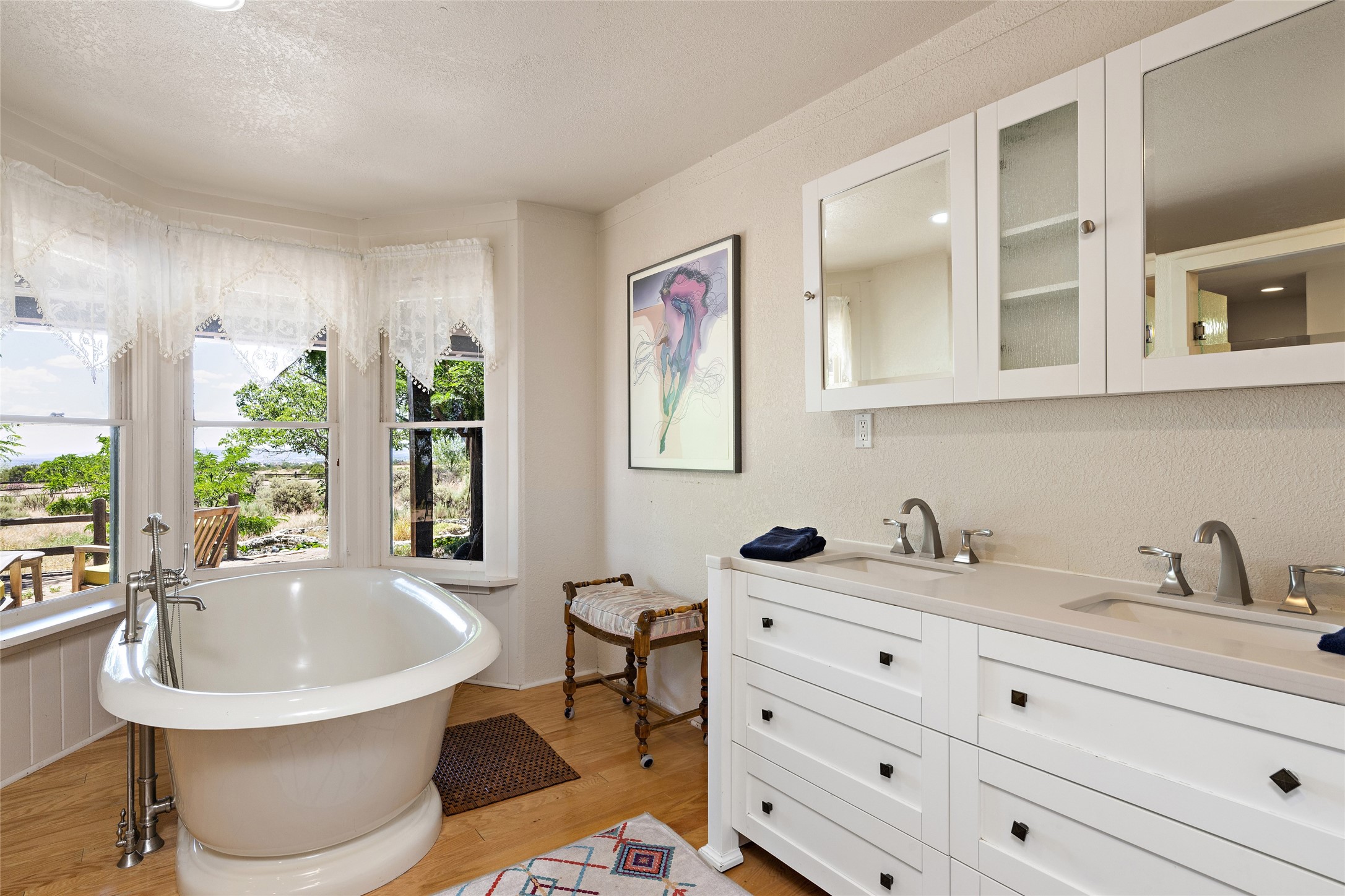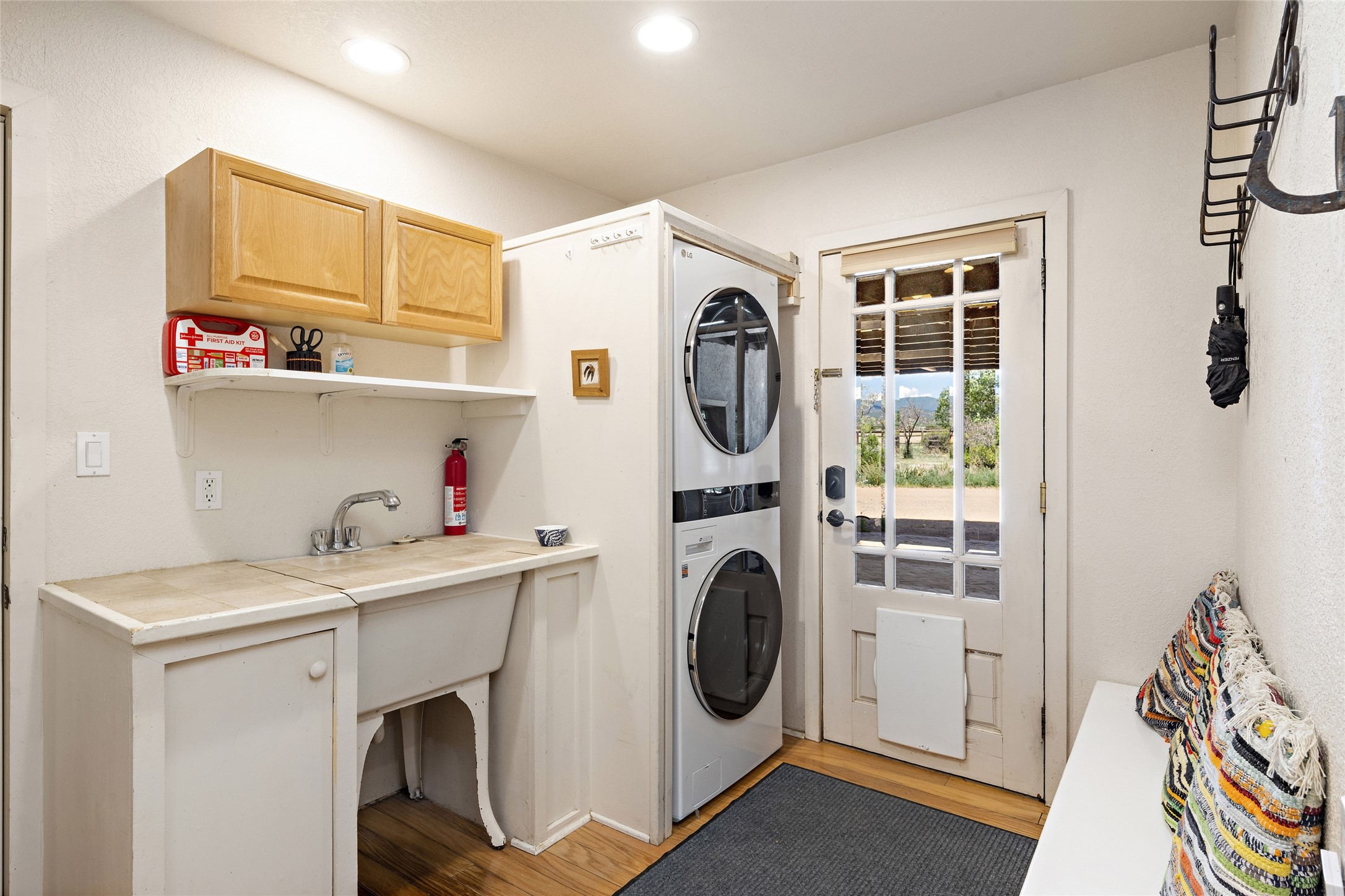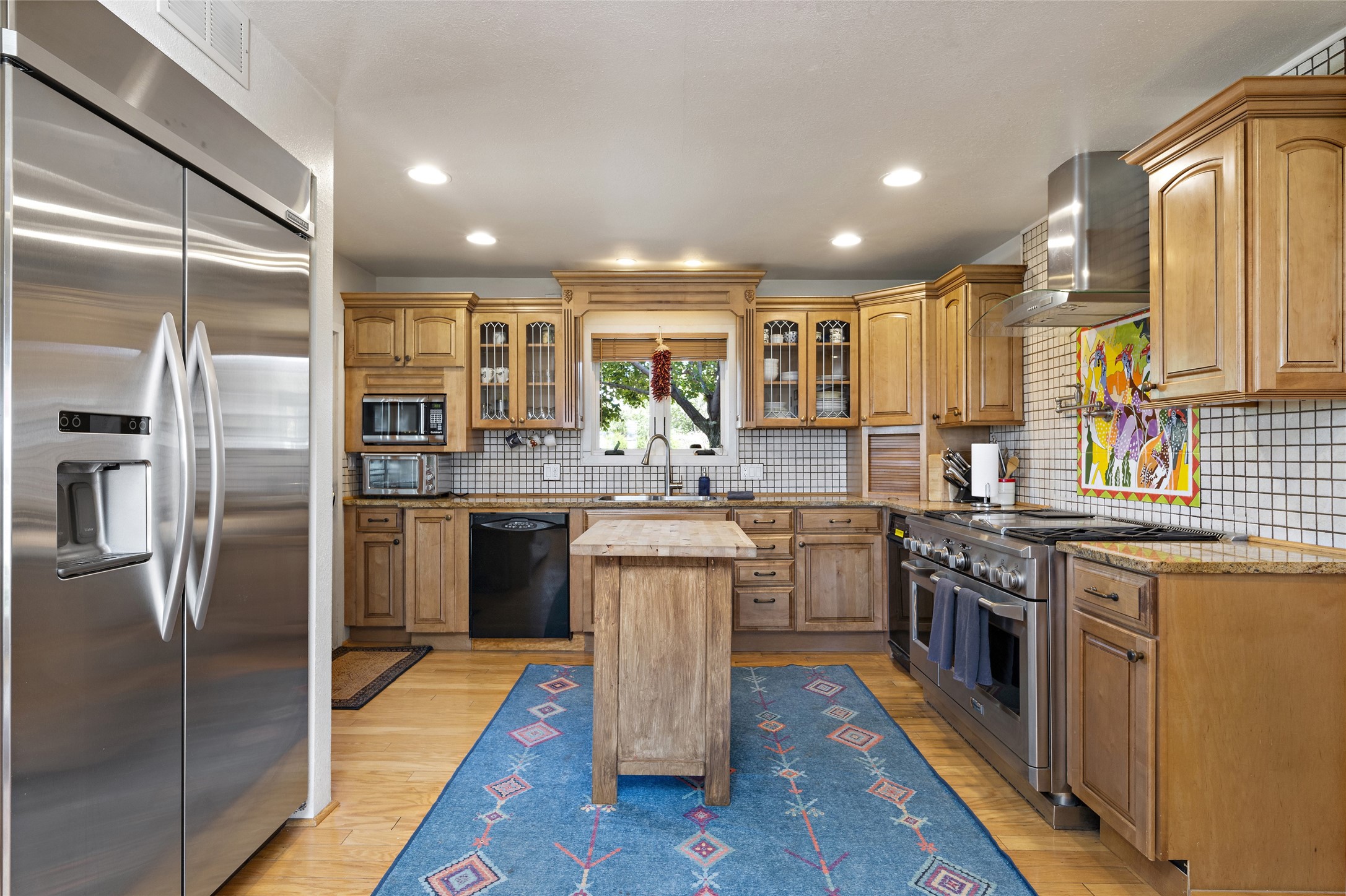 This well-maintained home offering a total of 5 bedrooms and 7 bathrooms is sited on over 12 fenced acres with mountain views in every direction and a pastoral, tranquil setting. This property is well equipped for the discerning equestrian or anyone seeking the peace of rural life - all while being less than 9 miles from the historic Santa Fe Plaza! While the main house is over 100 years old on paper, it was thoroughly updated by the prior owner with double pane windows, state of the art kitchens, new flooring and luxurious bathrooms in addition to newer mechanical systems for heating and hot water. The private well is permitted to provide 3-acre feet of water per year and the well mechanicals have been updated in the last few years, providing reliable and clean water to the property - plenty for your homestead, gardens and livestock! The guest house is situated on the south side of the barn/stable structure and is perfect for a caretaker's quarters or could be used to generate some excellent passive income while the studio space with soft, north light is situated on the north end of the barn/stables and would make for a fantastic workspace for any artist. The expansive Arroyo Hondo trail system is easily accessed from this parcel, providing miles and miles of walking, biking and horse trails. Don't miss your opportunity to own this special property that has so much to offer!