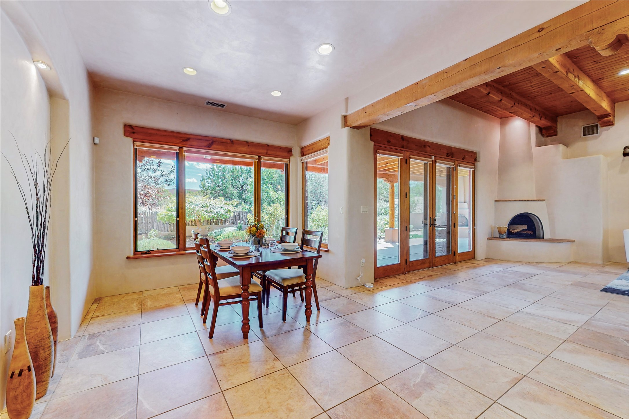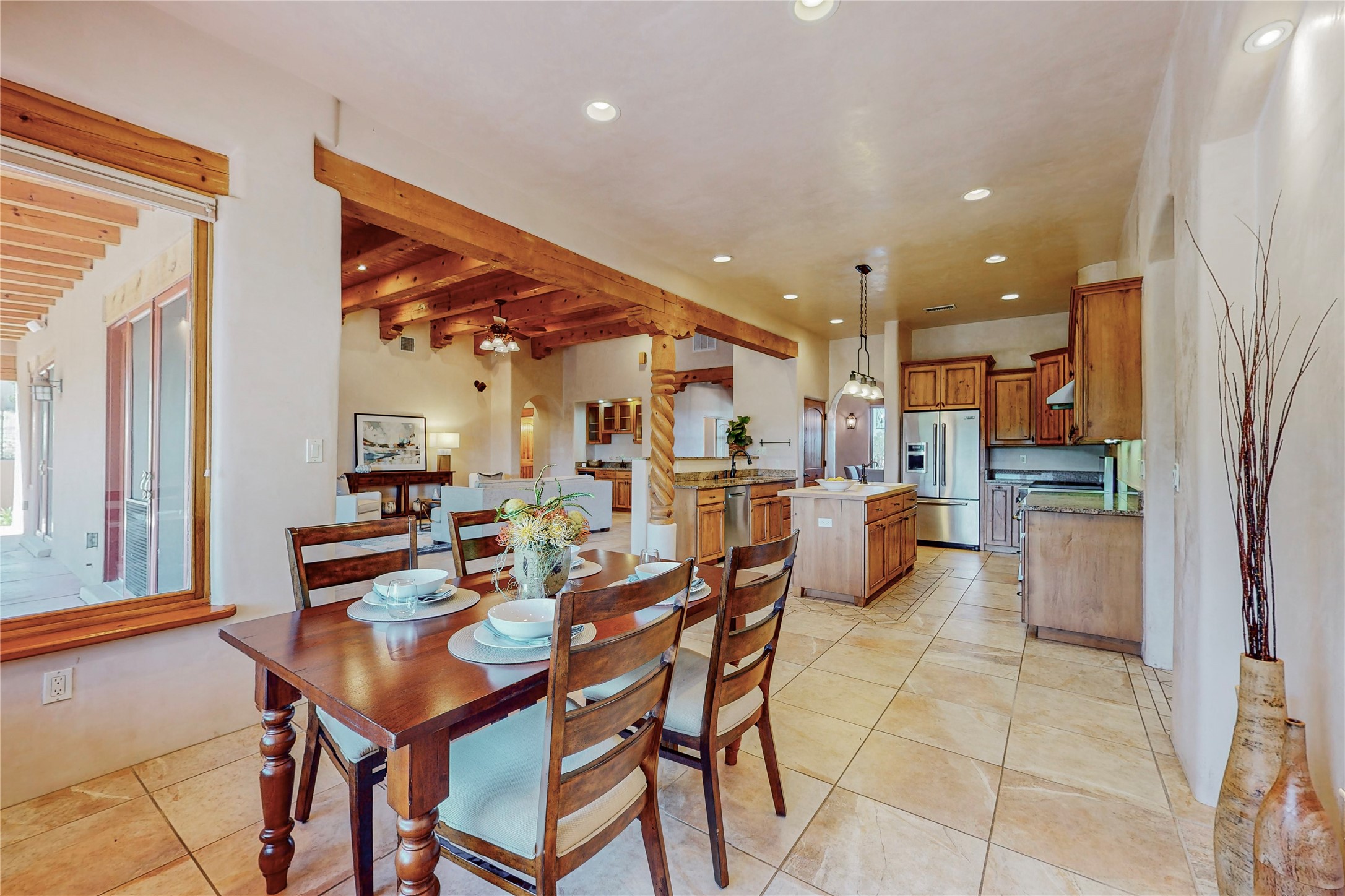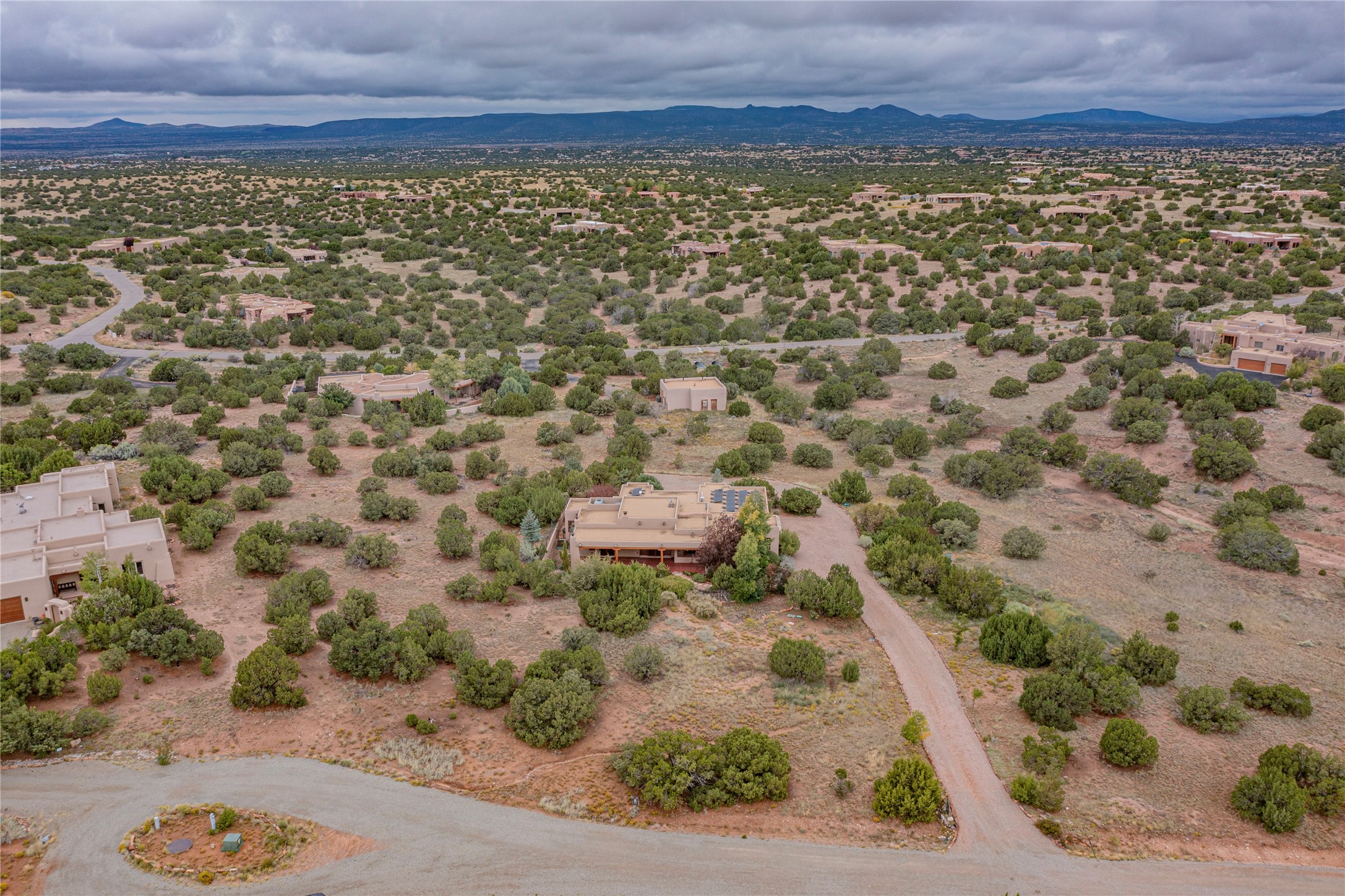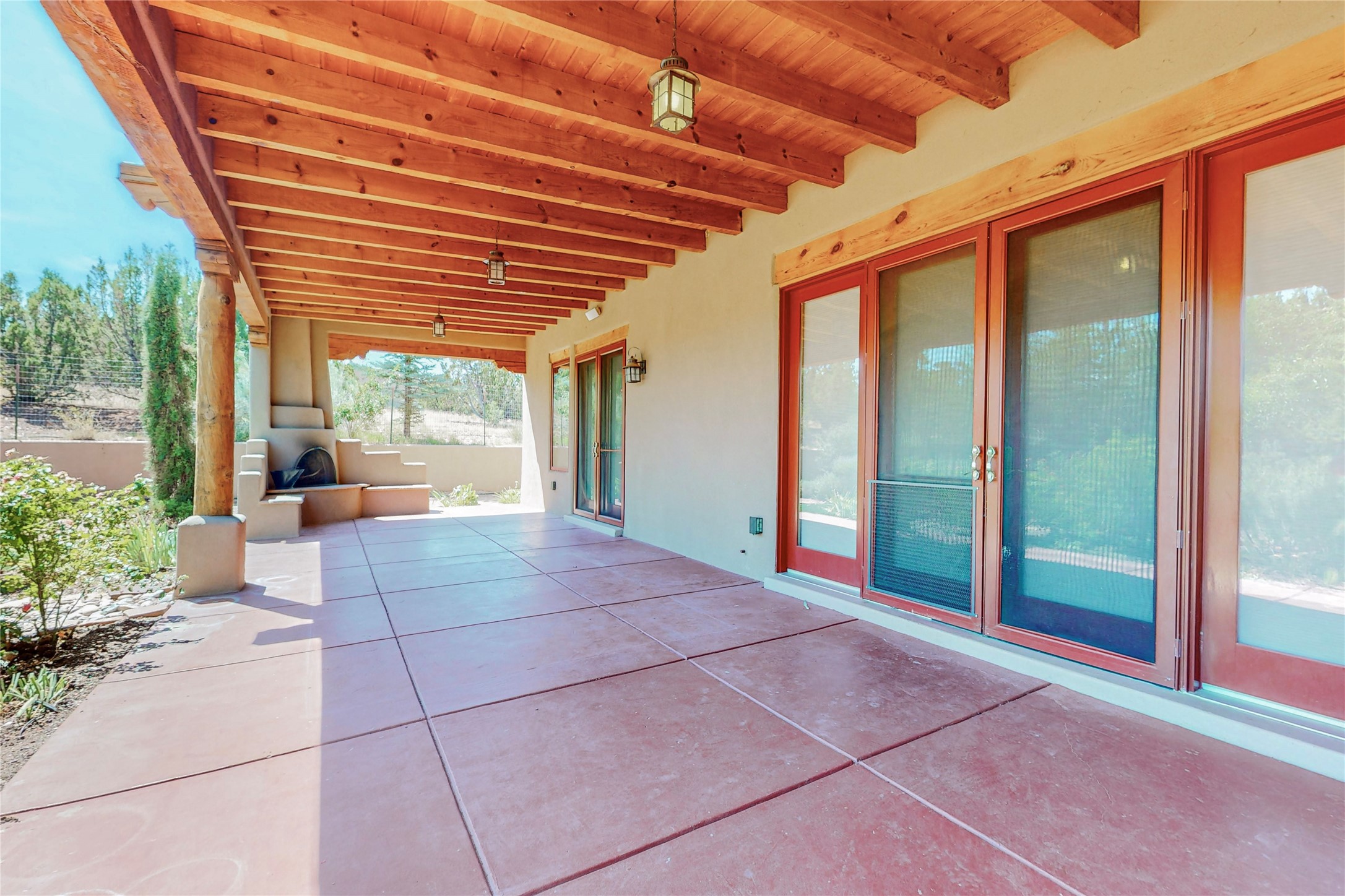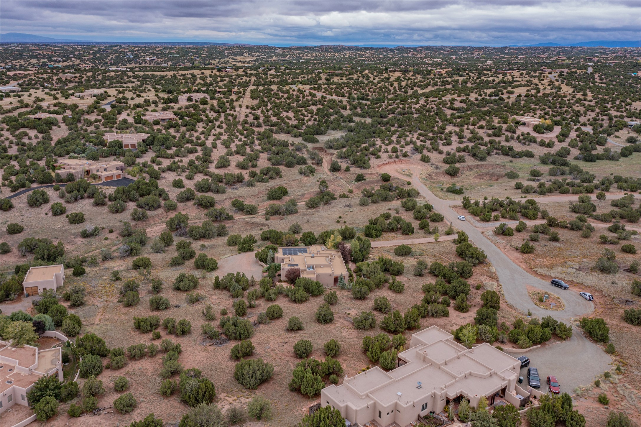 Welcome to this solar property with a desirable floor plan on 2.5 acres, just 16 minutes to The Plaza. This one-owner home offers 3/4 bedrooms. The 4th bedroom is ideal for a den or home office. An ideal home for entertaining. The kitchen opens easily to the living and dining areas. The primary suite has a kiva fireplace and ensuite bath with circular shower and soaking tub. Beautiful pine flooring in all the bedrooms. In-floor radiant heat throughout, including the 3-car garage. Enjoy the mature landscaping on the large portal, complete with a kiva fireplace. This home is pre-inspected and ready for new owners!