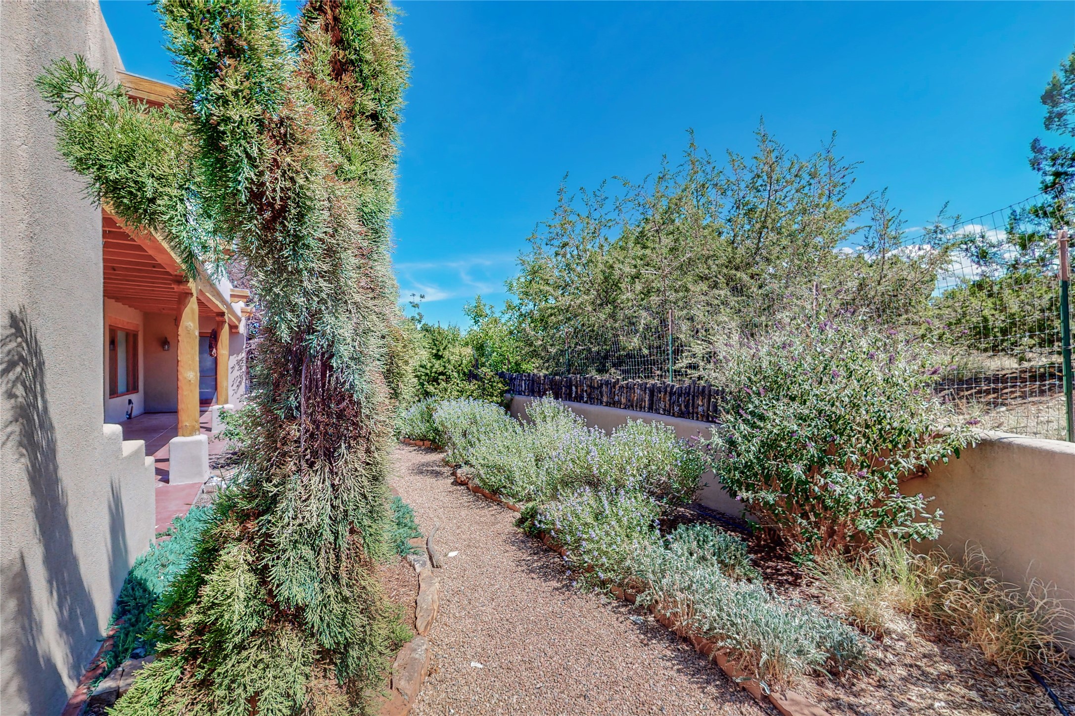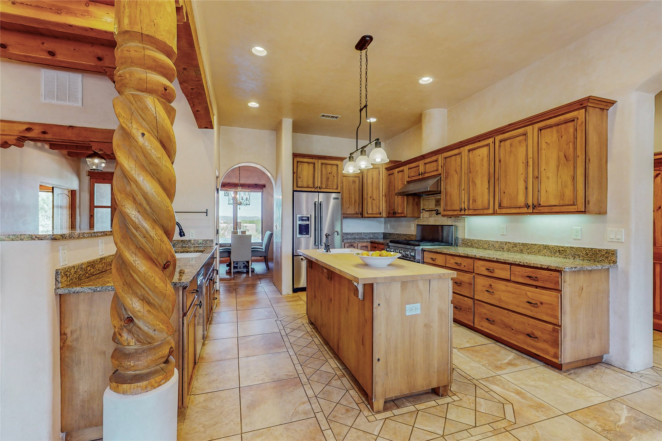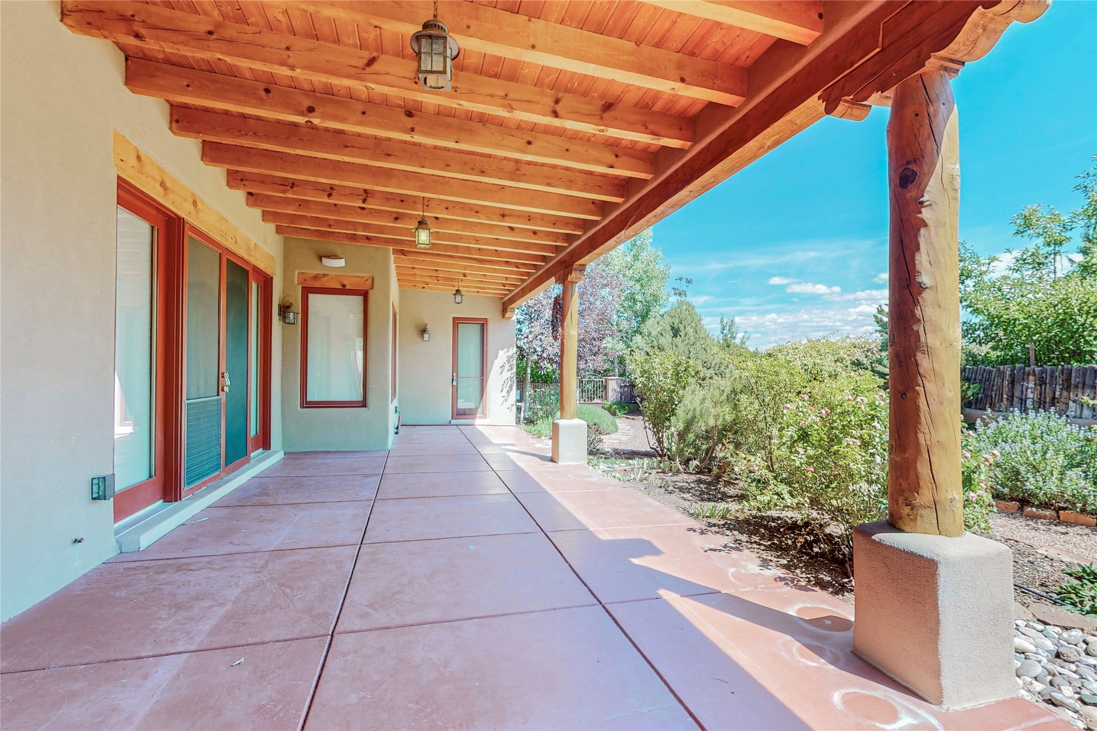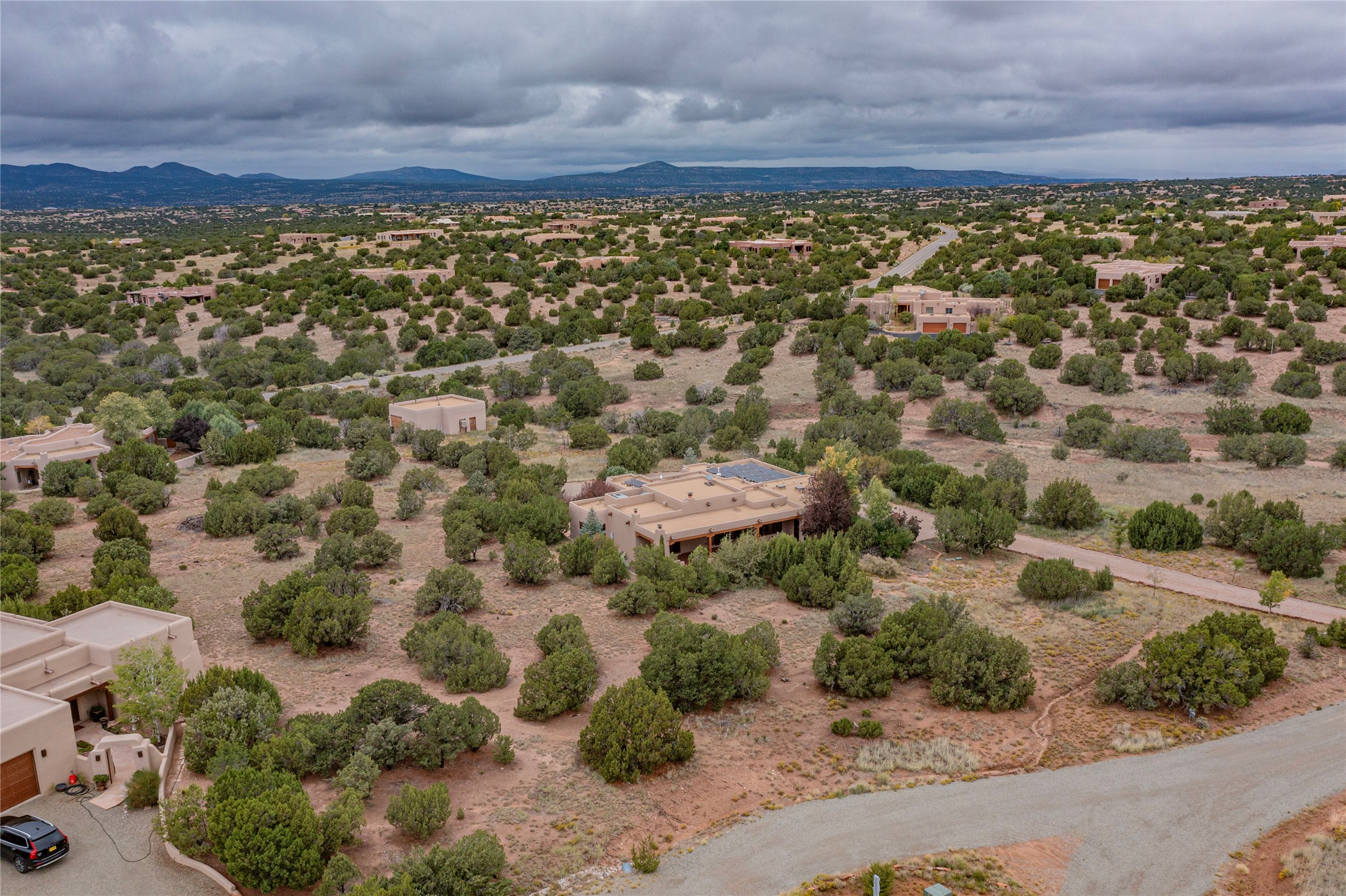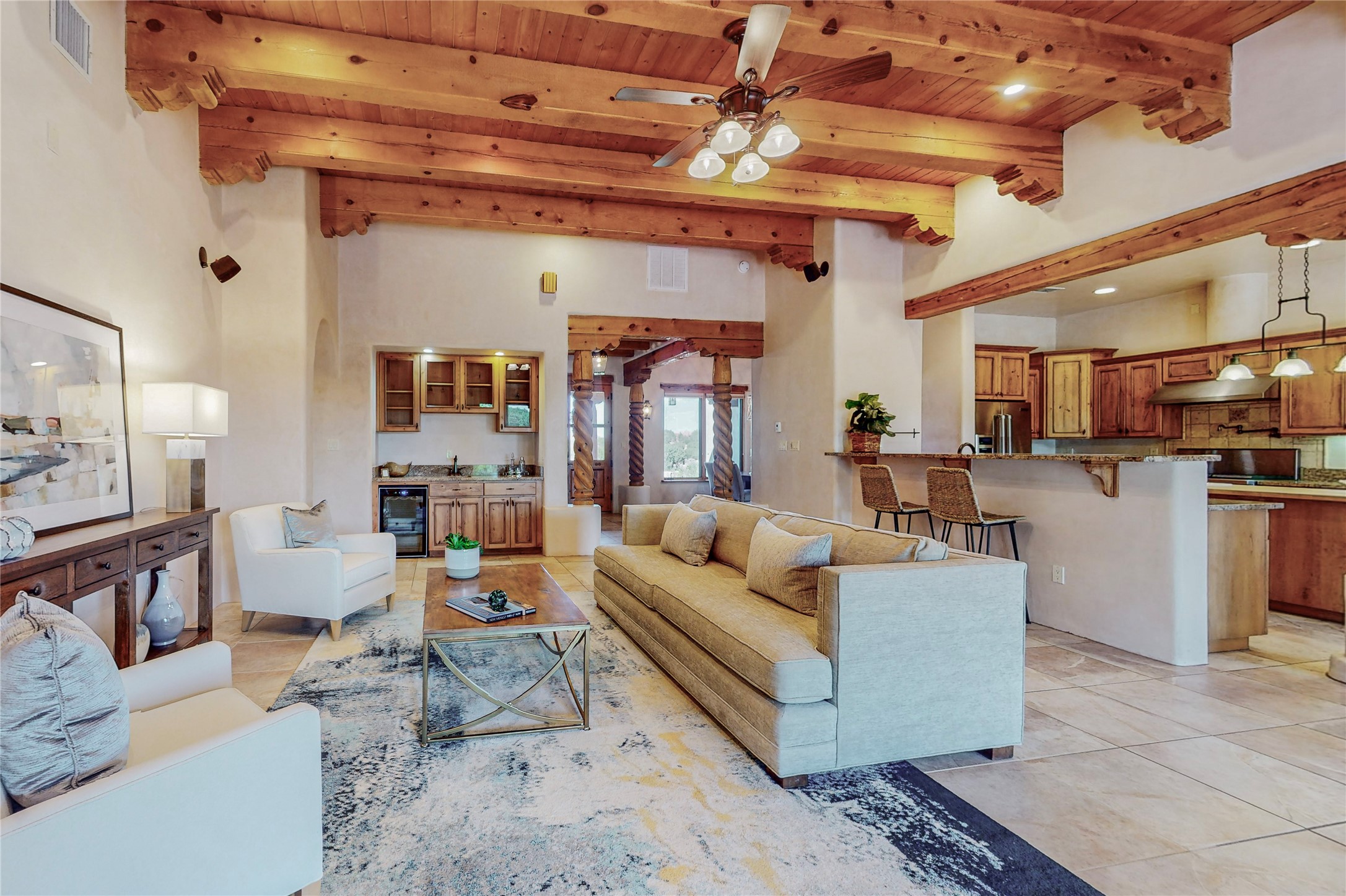 Welcome to this solar property with a desirable floor plan on 2.5 acres, just 16 minutes to The Plaza. This one-owner home offers 3/4 bedrooms. The 4th bedroom is ideal for a den or home office. An ideal home for entertaining. The kitchen opens easily to the living and dining areas. The primary suite has a kiva fireplace and ensuite bath with circular shower and soaking tub. Beautiful pine flooring in all the bedrooms. In-floor radiant heat throughout, including the 3-car garage. Enjoy the mature landscaping on the large portal, complete with a kiva fireplace. This home is pre-inspected and ready for new owners!