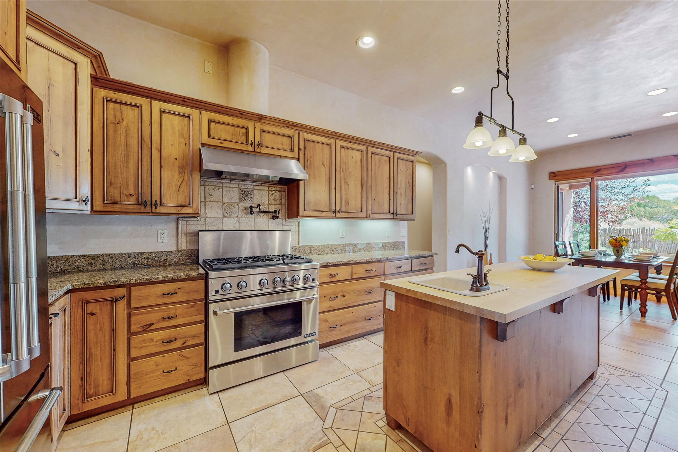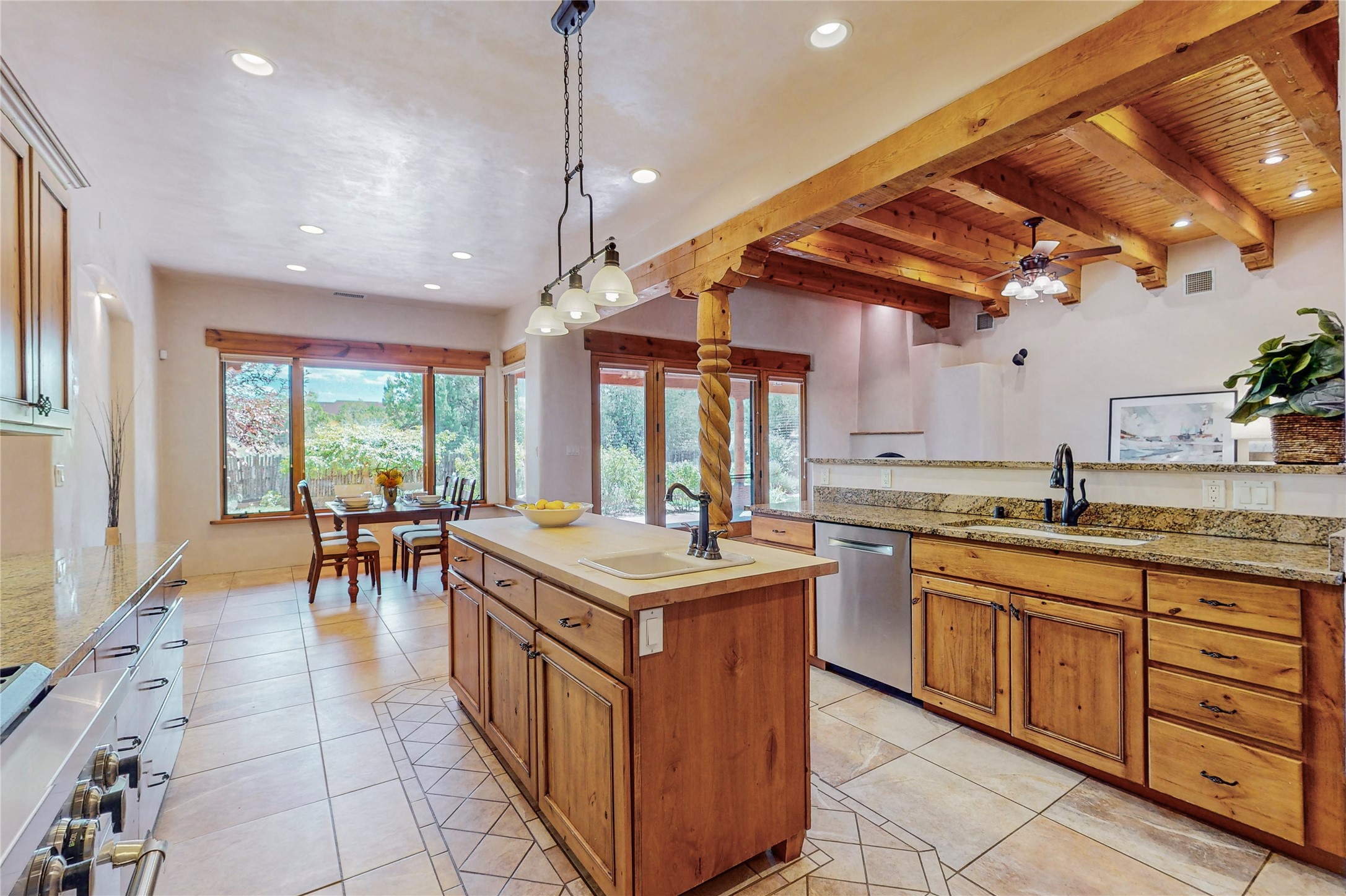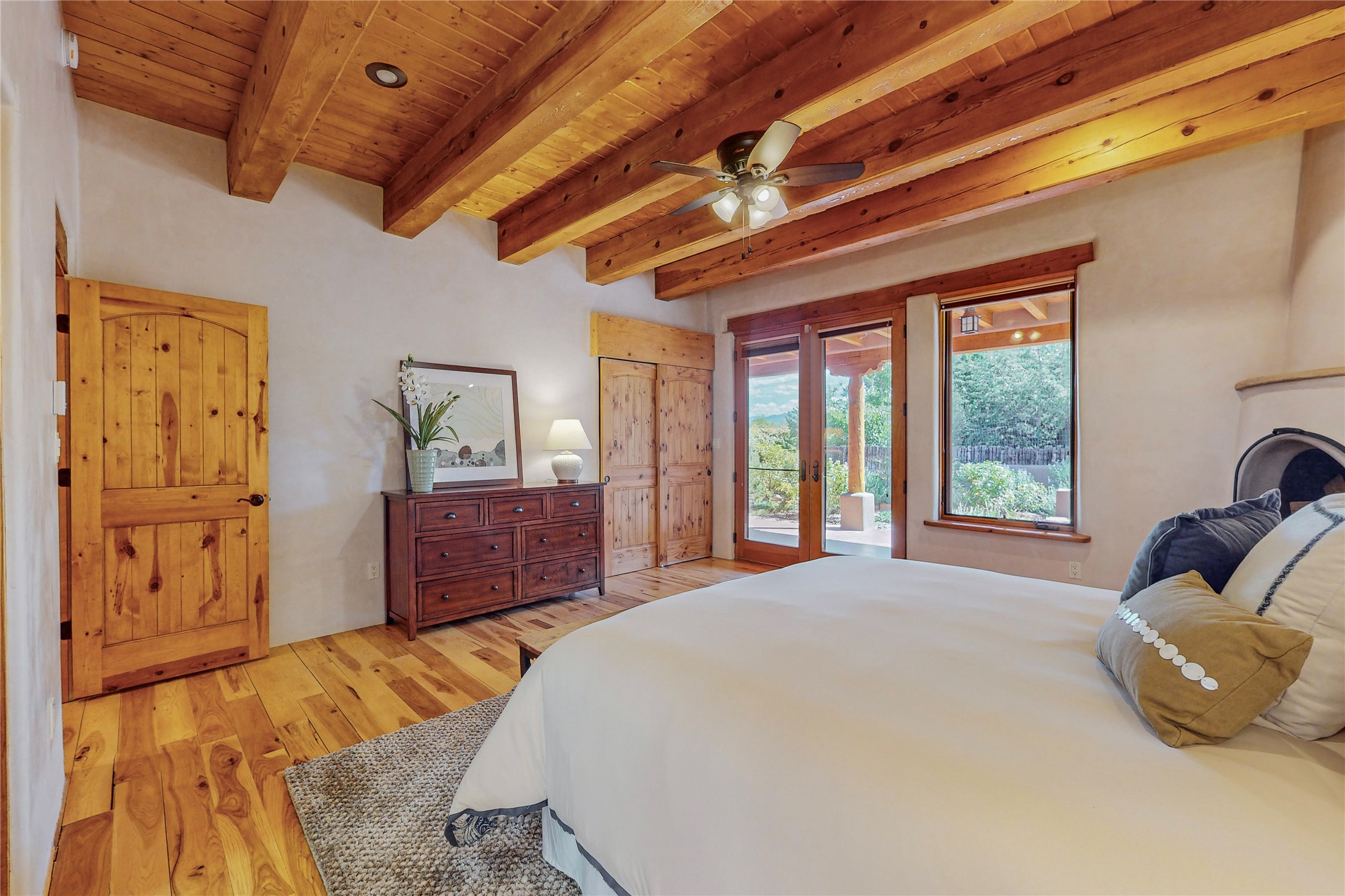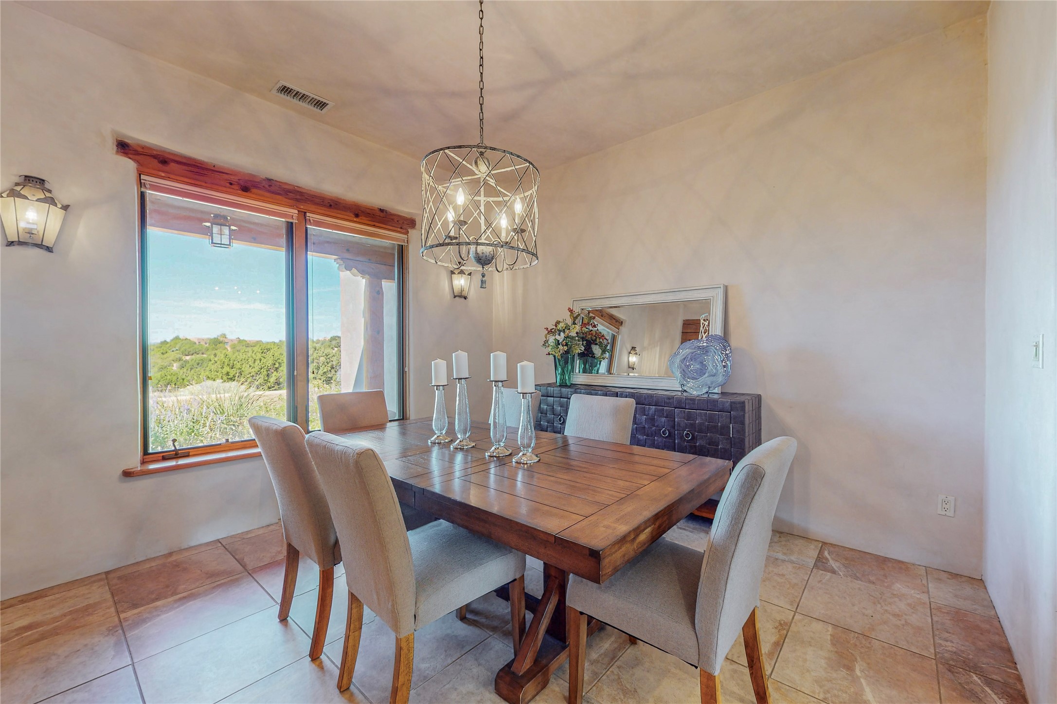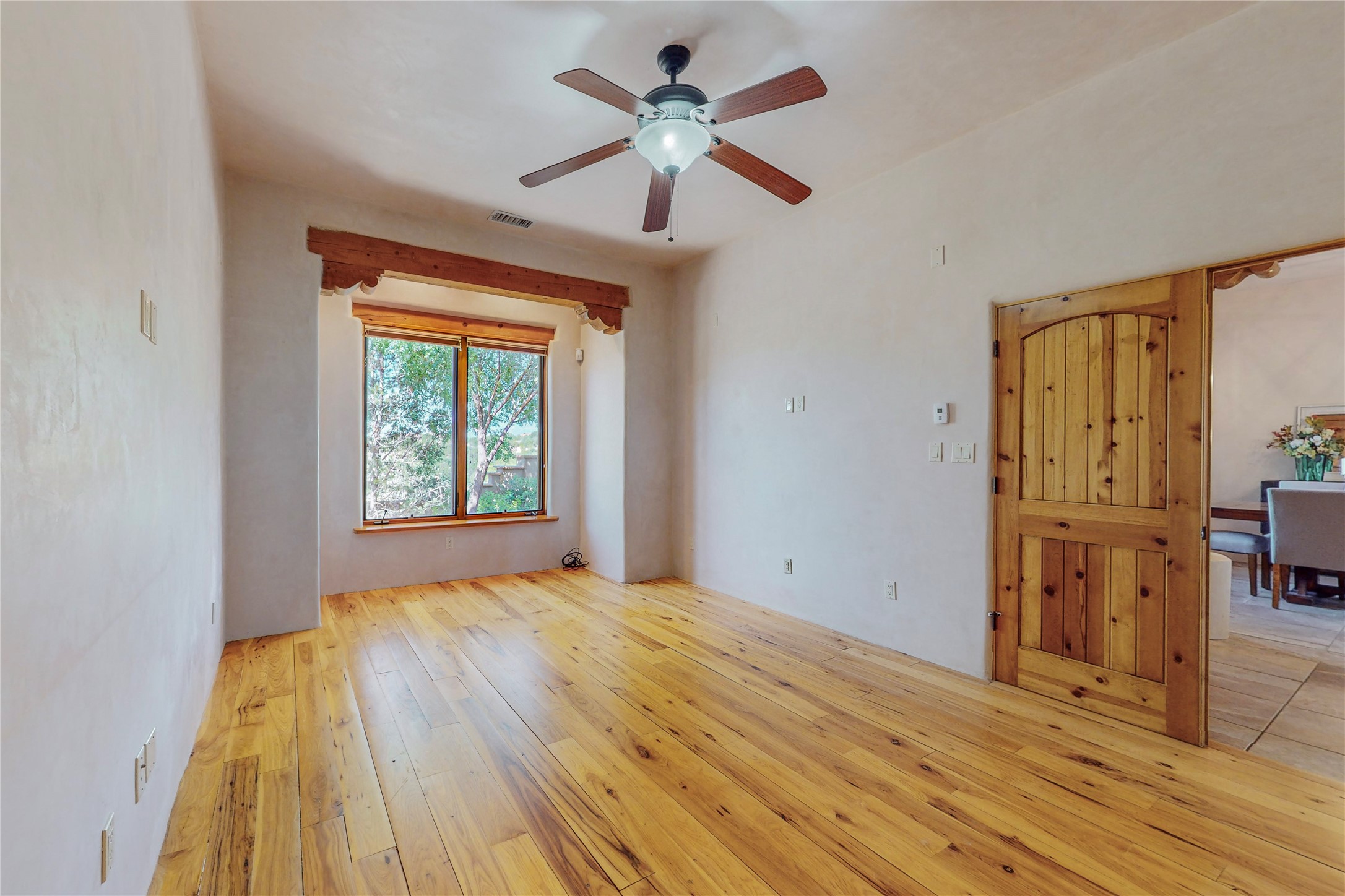 Welcome to this solar property with a desirable floor plan on 2.5 acres, just 16 minutes to The Plaza. This one-owner home offers 3/4 bedrooms. The 4th bedroom is ideal for a den or home office. An ideal home for entertaining. The kitchen opens easily to the living and dining areas. The primary suite has a kiva fireplace and ensuite bath with circular shower and soaking tub. Beautiful pine flooring in all the bedrooms. In-floor radiant heat throughout, including the 3-car garage. Enjoy the mature landscaping on the large portal, complete with a kiva fireplace. This home is pre-inspected and ready for new owners!