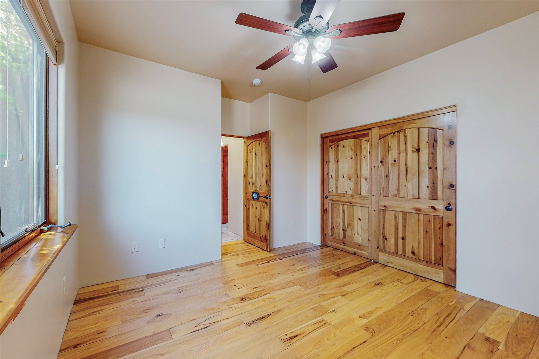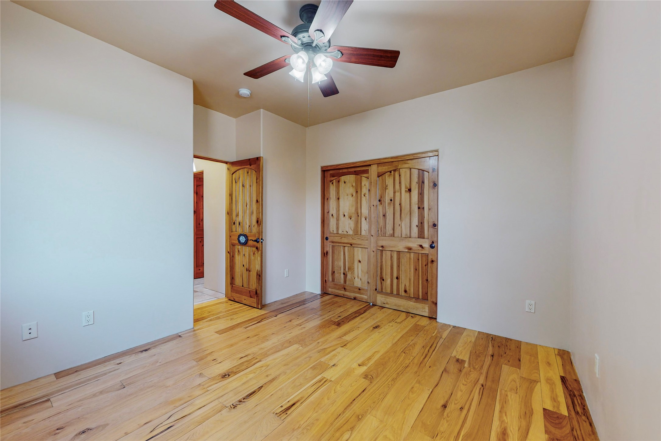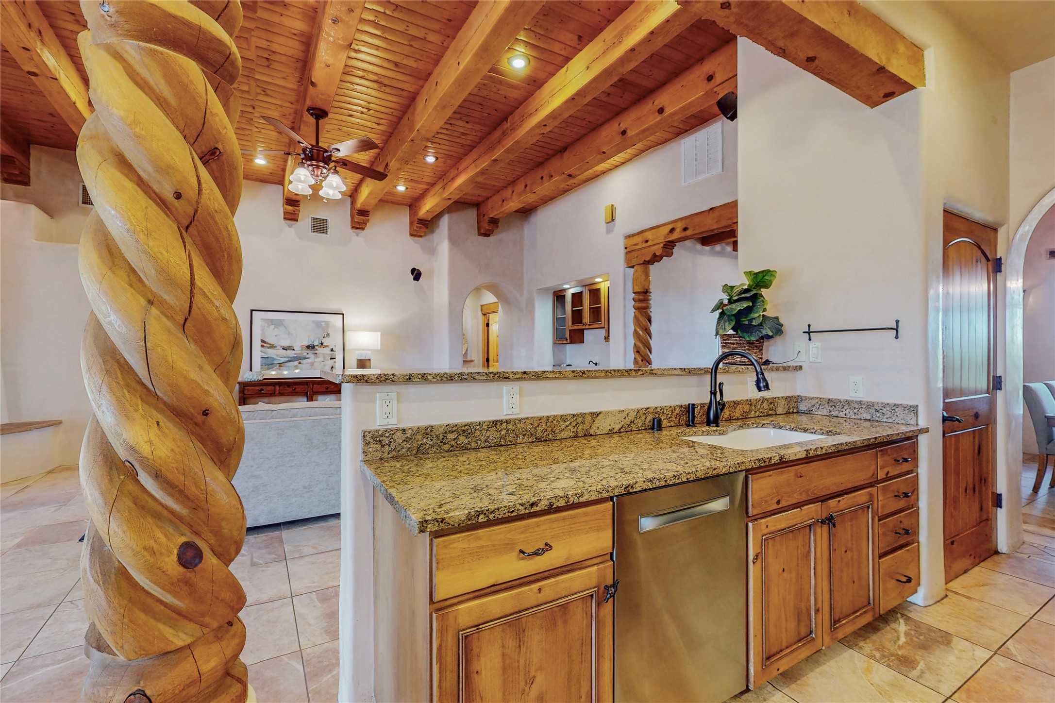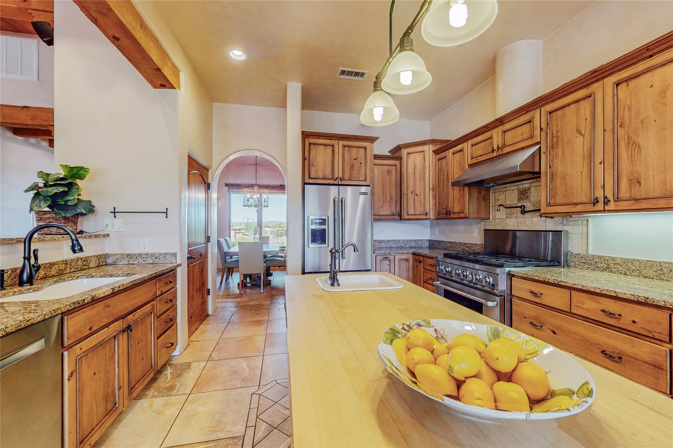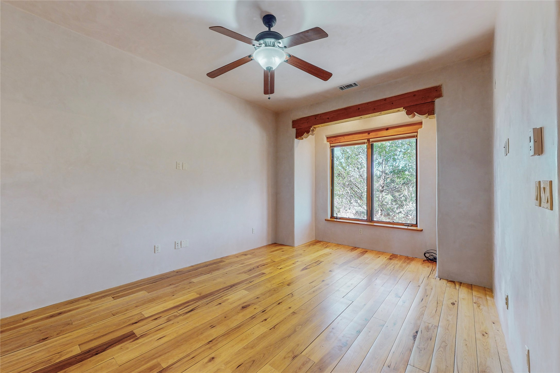 Welcome to this solar property with a desirable floor plan on 2.5 acres, just 16 minutes to The Plaza. This one-owner home offers 3/4 bedrooms. The 4th bedroom is ideal for a den or home office. An ideal home for entertaining. The kitchen opens easily to the living and dining areas. The primary suite has a kiva fireplace and ensuite bath with circular shower and soaking tub. Beautiful pine flooring in all the bedrooms. In-floor radiant heat throughout, including the 3-car garage. Enjoy the mature landscaping on the large portal, complete with a kiva fireplace. This home is pre-inspected and ready for new owners!