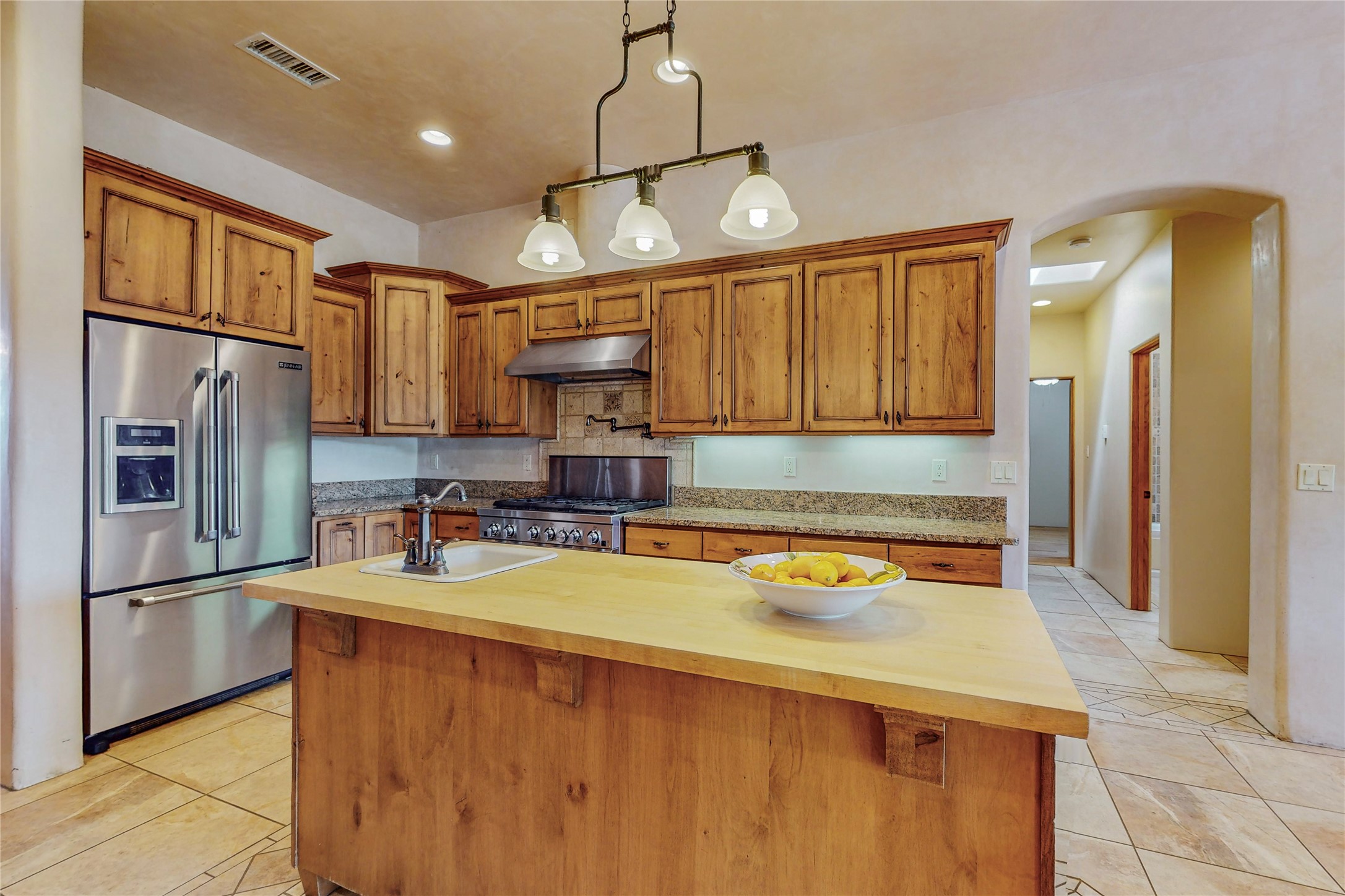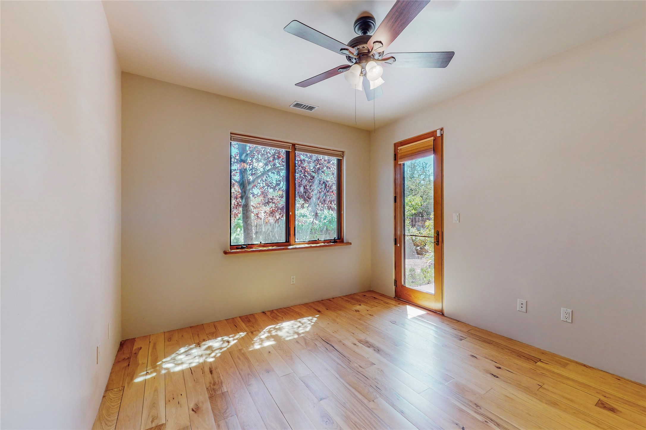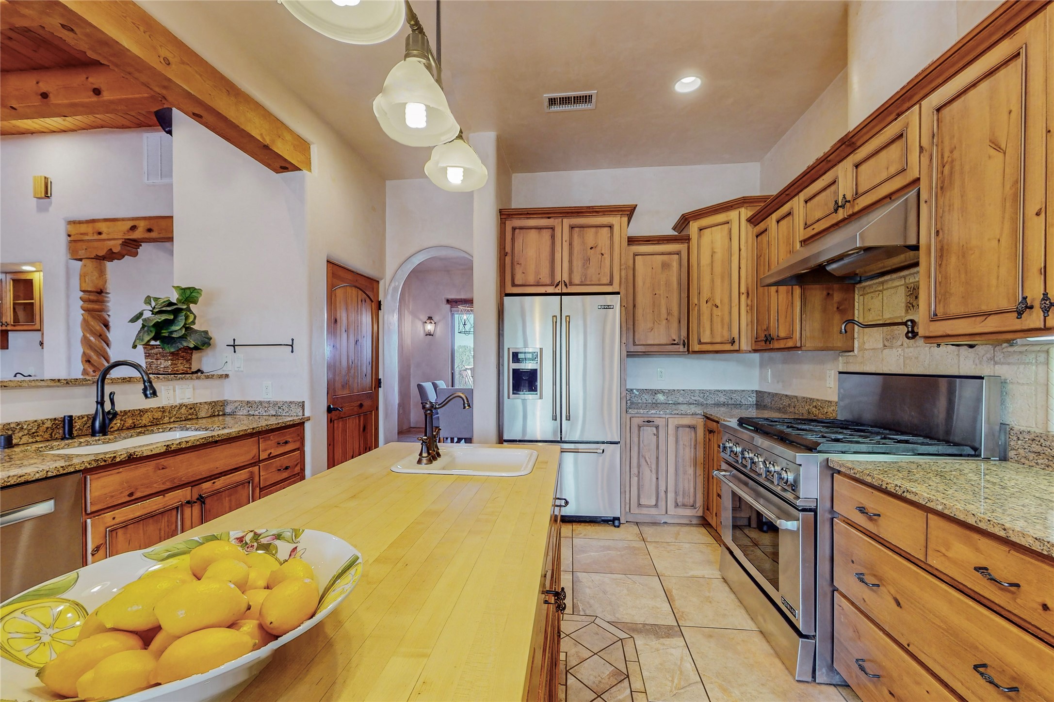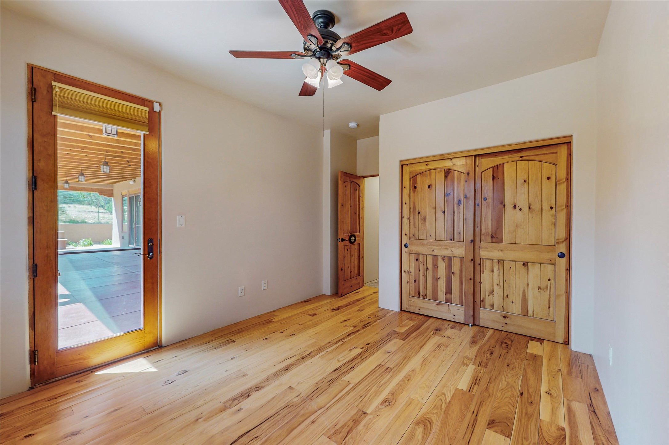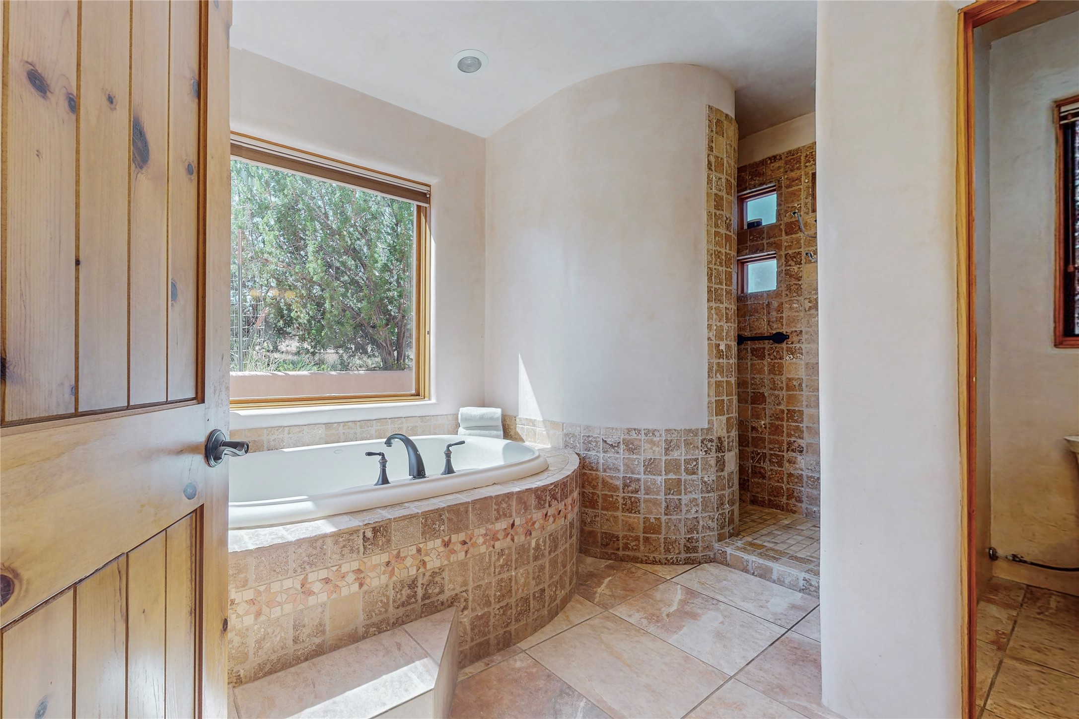 Welcome to this solar property with a desirable floor plan on 2.5 acres, just 16 minutes to The Plaza. This one-owner home offers 3/4 bedrooms. The 4th bedroom is ideal for a den or home office. An ideal home for entertaining. The kitchen opens easily to the living and dining areas. The primary suite has a kiva fireplace and ensuite bath with circular shower and soaking tub. Beautiful pine flooring in all the bedrooms. In-floor radiant heat throughout, including the 3-car garage. Enjoy the mature landscaping on the large portal, complete with a kiva fireplace. This home is pre-inspected and ready for new owners!
