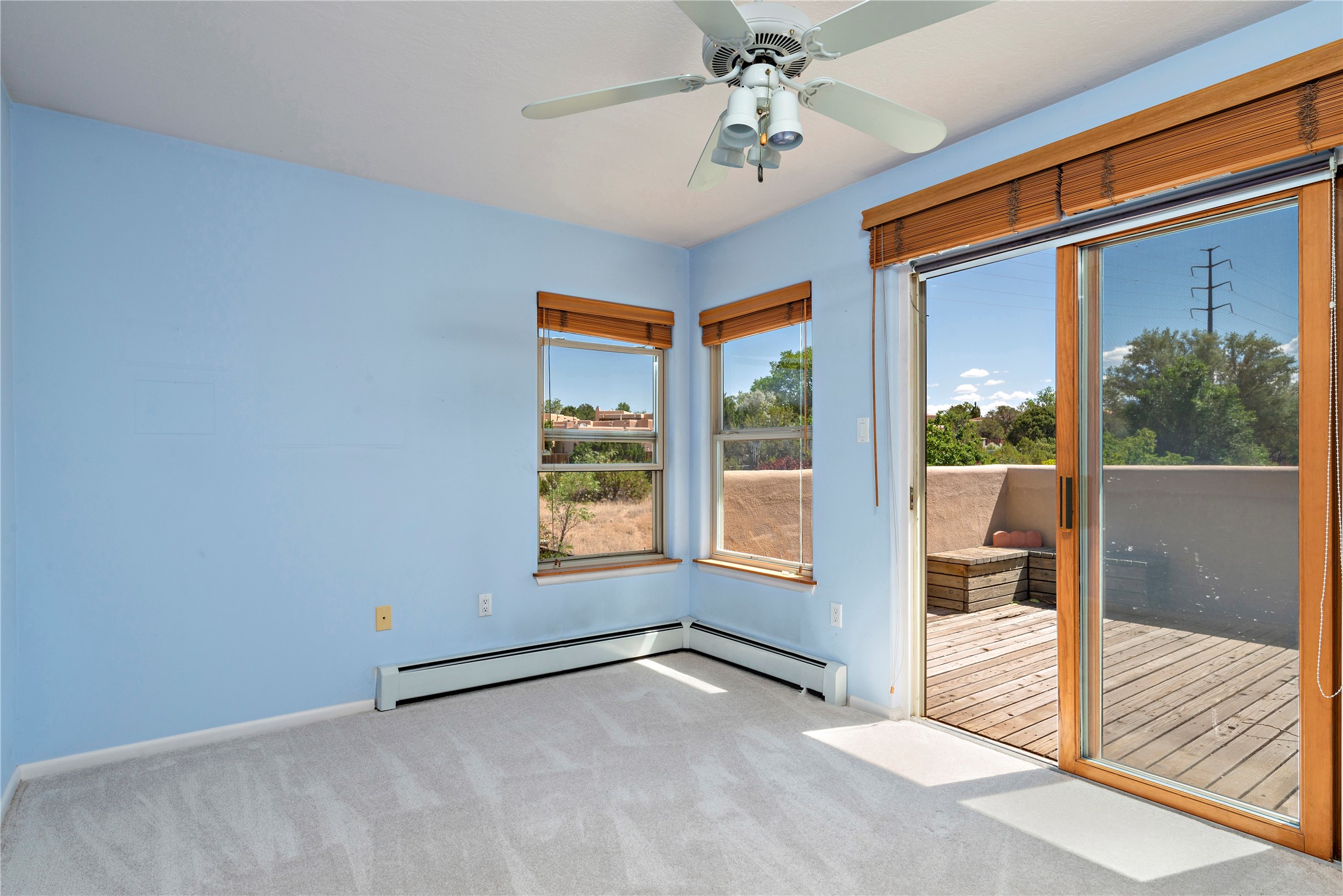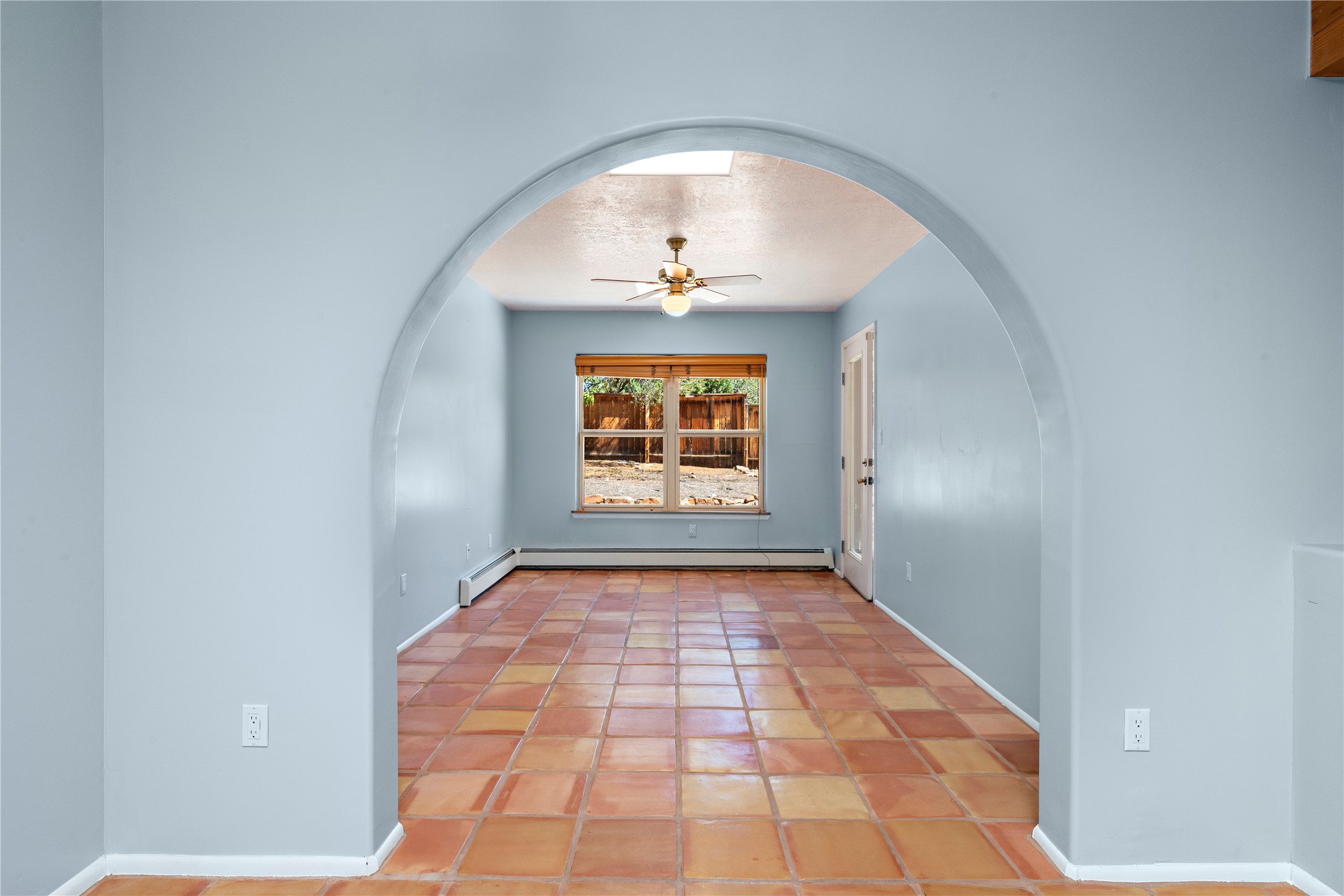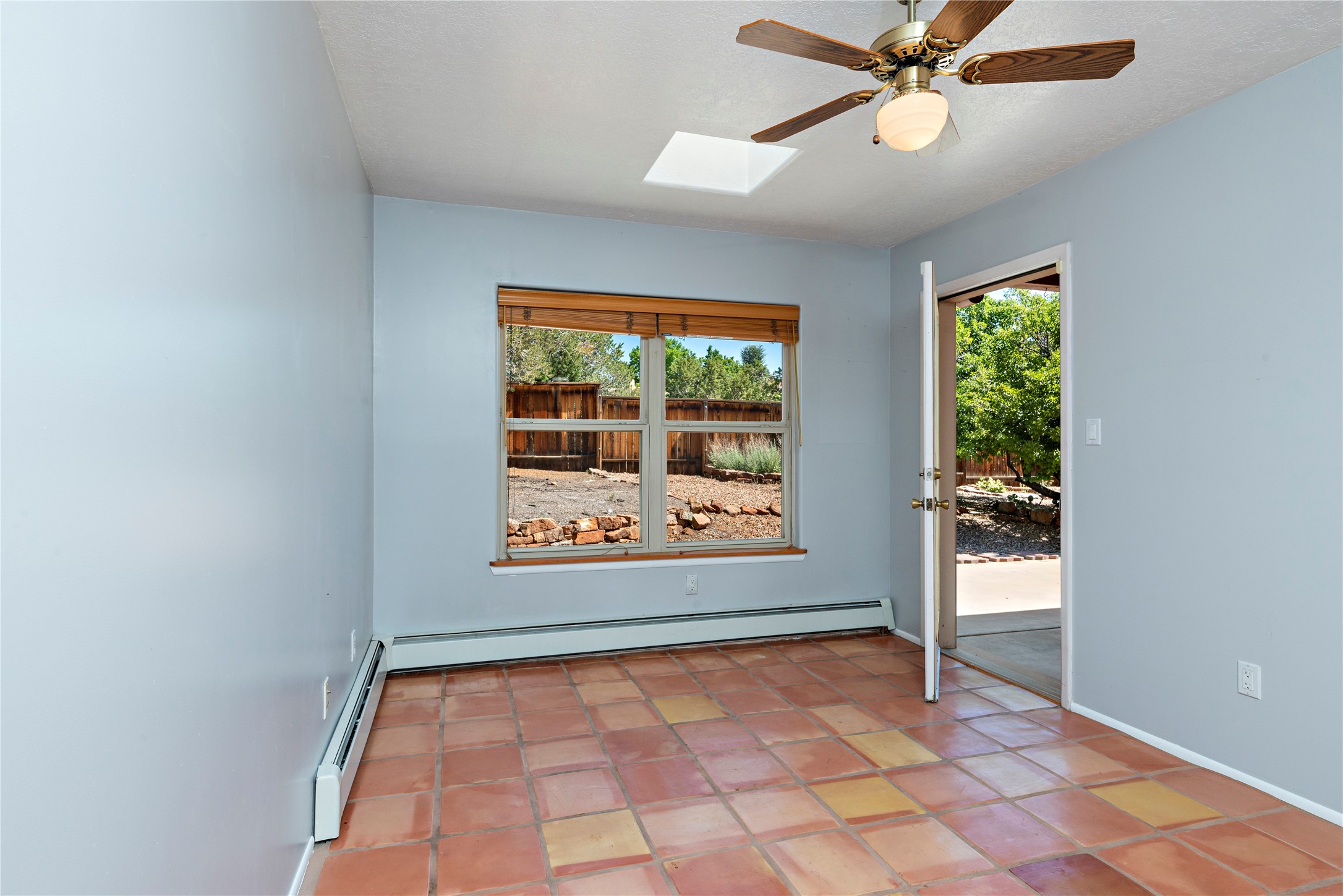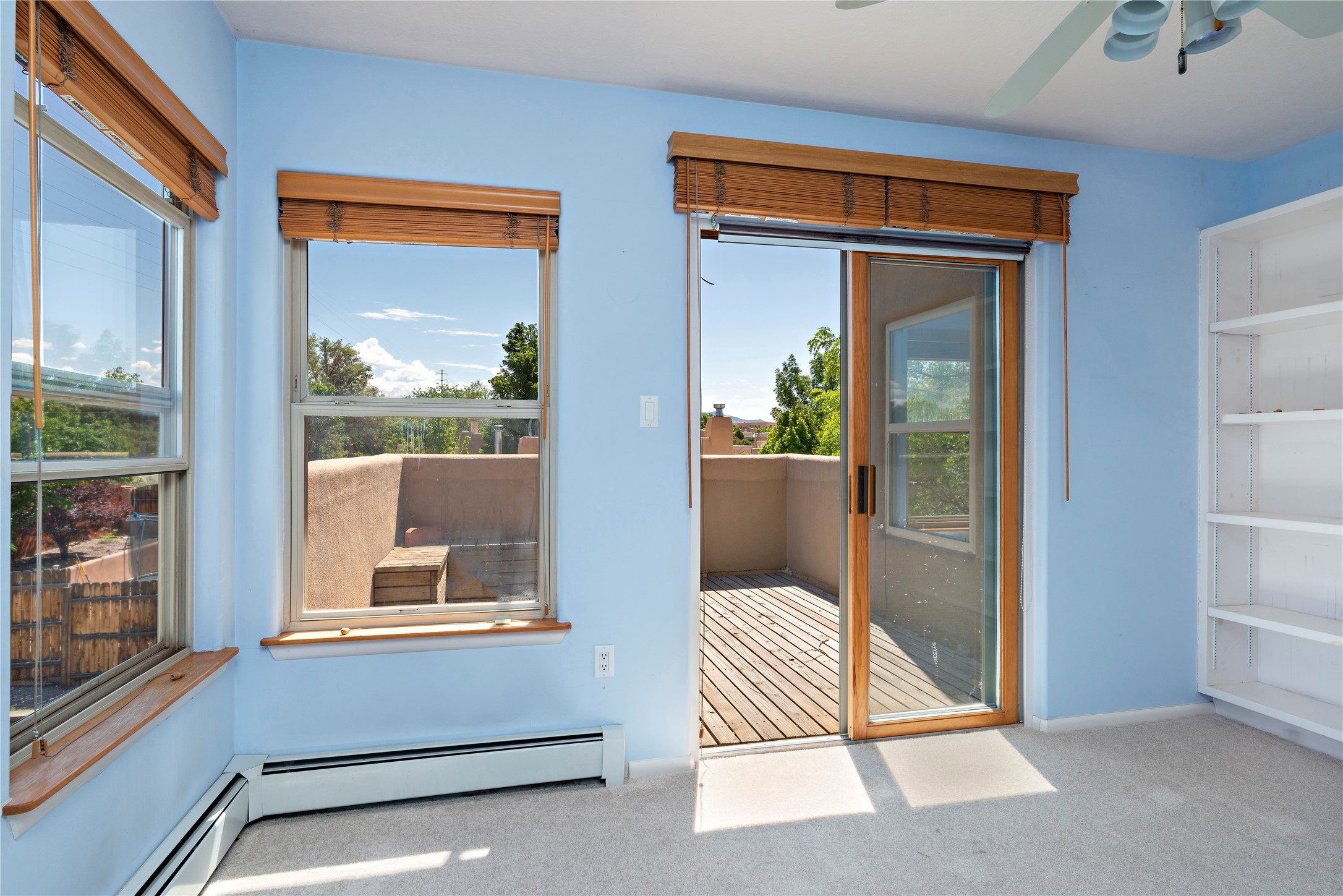 Good cheer abounds in this light-filled, Chapman-built home in Pueblos del Sol. Traditional touches such as Saltillo tile, nichos, a corner kiva and handsome vigas ground the home in Southwestern style, while the tall ceilings and many windows keep the overall feeling light and airy. The tidy kitchen is outfitted with granite countertops, stainless steel appliances, a brand-new gas stove, and plenty of storage. The Primary Suite has a walk-in closet, window seat, and ensuite bath with separate tub and shower. The adjacent office accesses a deck making the upper story a true, private retreat. Low-maintenance landscaping in front and rear includes mature trees and a fully-fenced backyard that backs up to open space. Enhanced with all new carpet, evaporative cooling and many sweet details, this custom home is not-too-close to the highway and near miles of walking trails.