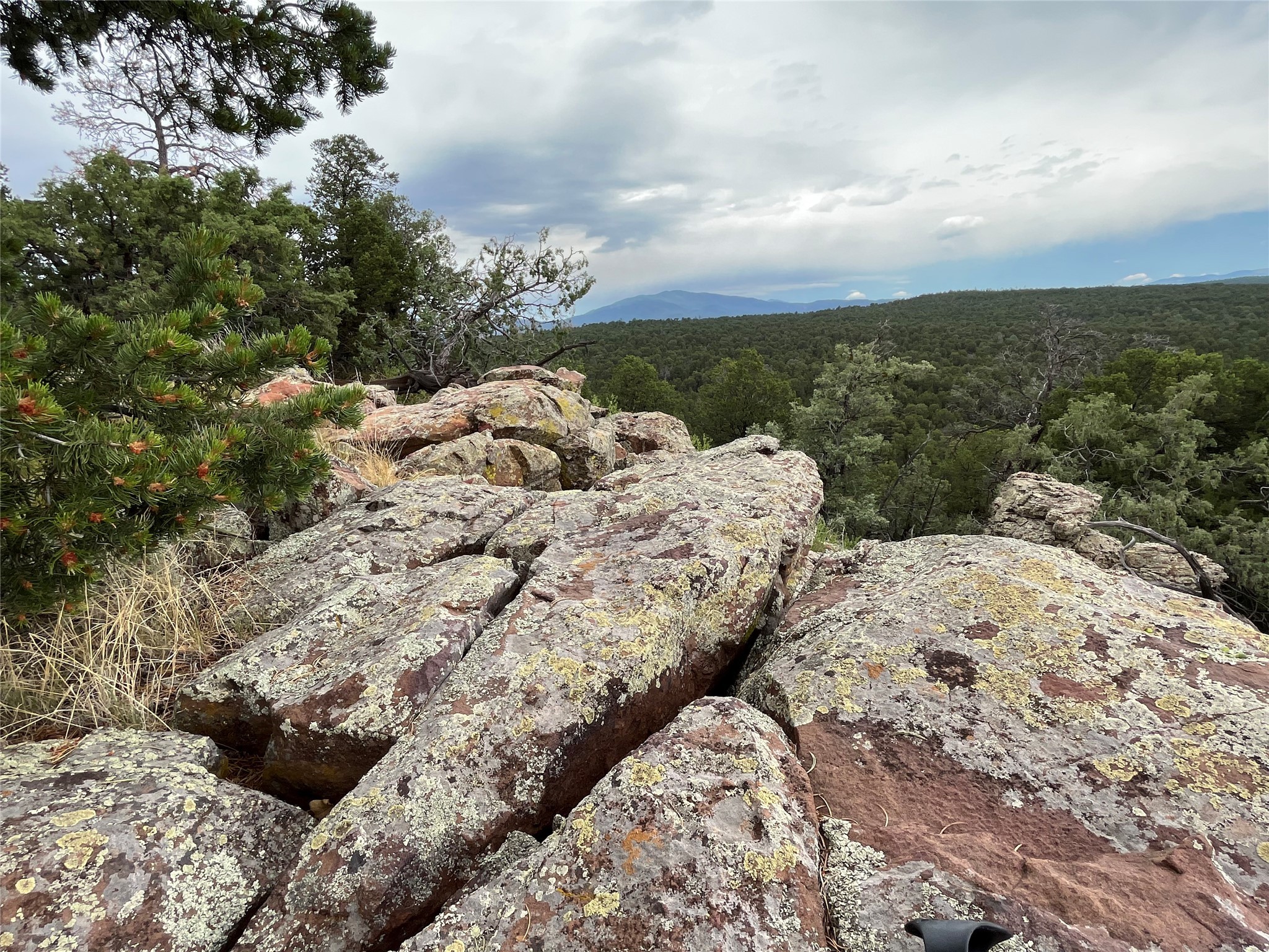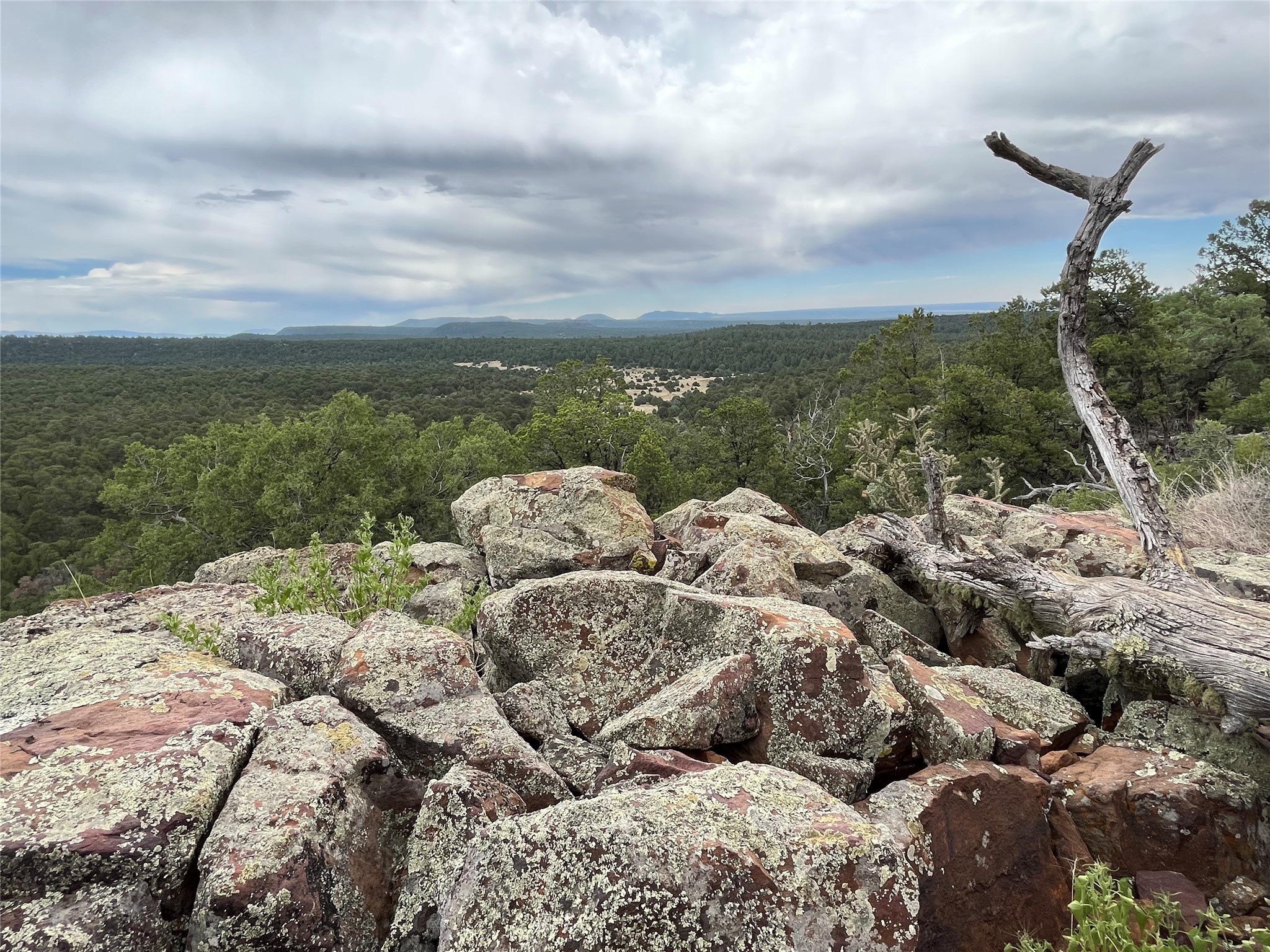 La Tierra Del Alba (Land of the Sunrise). Come and become one with nature where wildlife, nature, and stunning night skies collide creating a private refuge on this stunning 40 acre mountain top property with mature tree cover and wonderful rock-outcroppings. This property has some stunning panoramic views of the mountains and vistas in a park-like setting. Approximately 18 miles to Santa Fe or a 25 minute drive! Borders National Forest! Seller will convey property with a $3,000 water well siting study showing two possible sites for wells in addition to a modest trailer and composting toilet to begin your next adventure.