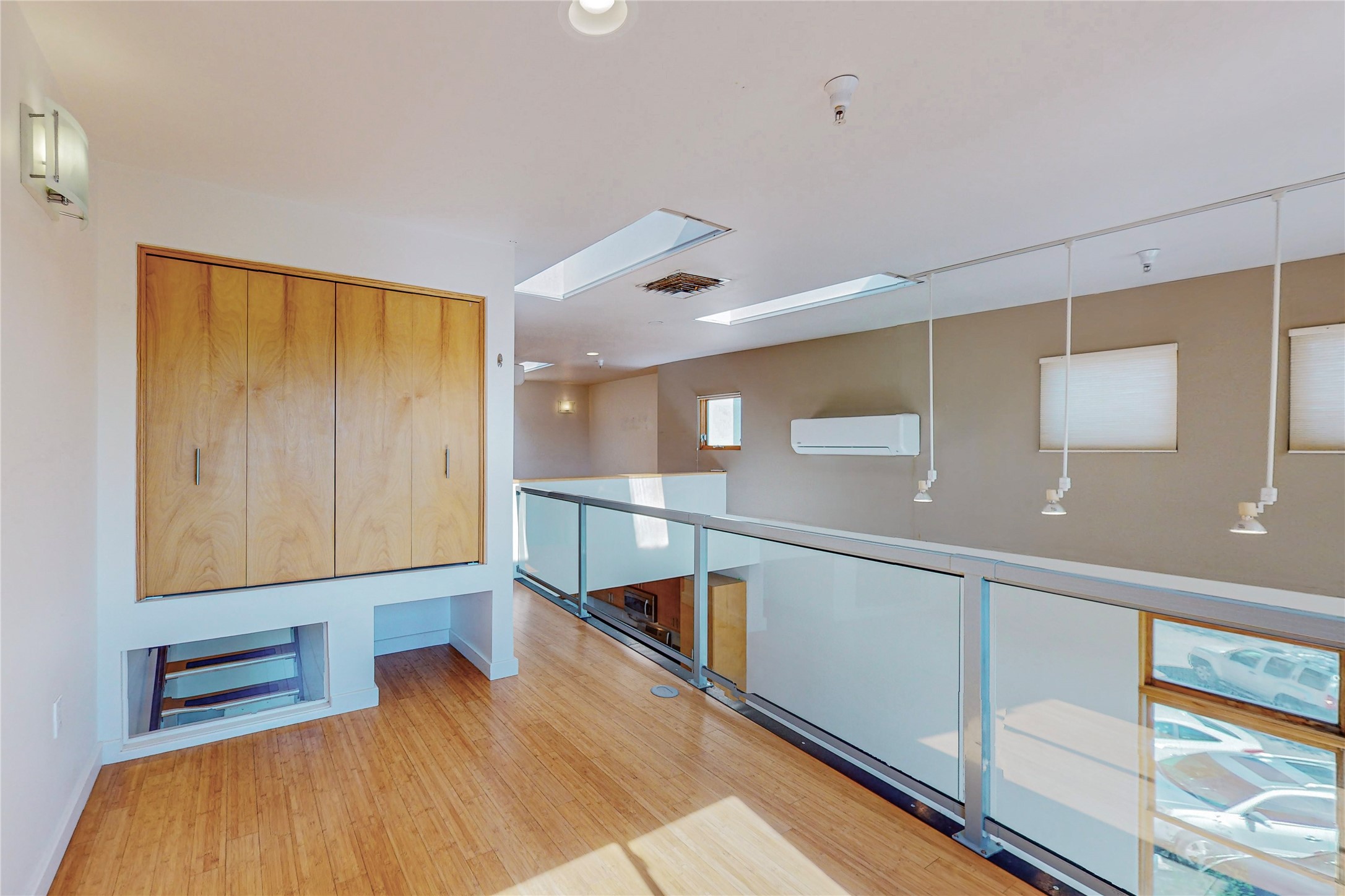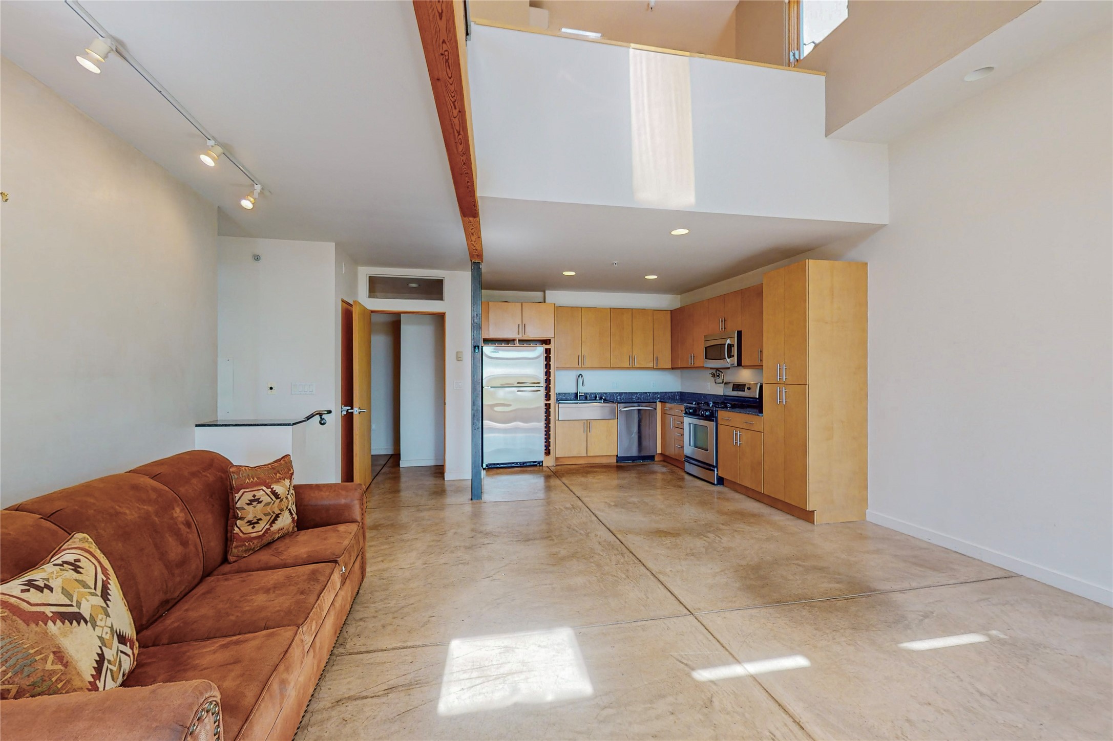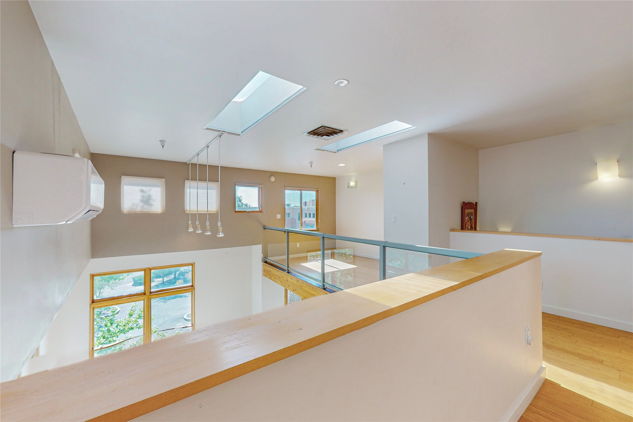 Contemporary, open, light-filled, and igniting imagination loft at Marquez Lofts. High ceilings, big windows, split units, wooden floors in the office/bedroom area, and a spacious balcony with a NEW deck check many boxes on the "must have" list for the property. Interior was fully repainted. Zoned for live/work can be your "big city" feeling in Santa Fe or a fashionable escape, second home, or creative hub. Convenient and desirable location for easy access to grocery shopping, train station, and night out at the local hot spots when you would rather not drive. Close to the Railyard, South Capitol, or Rose Park. Wood Gormley School District. Easy to show!!!