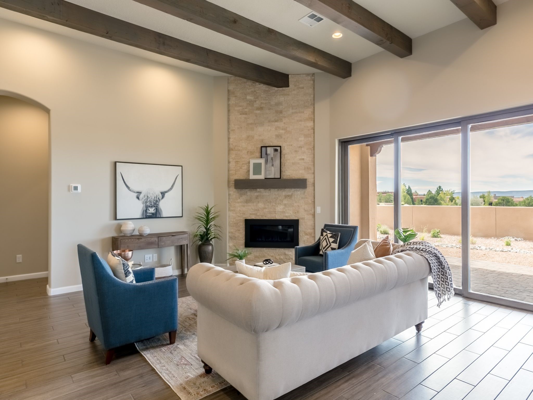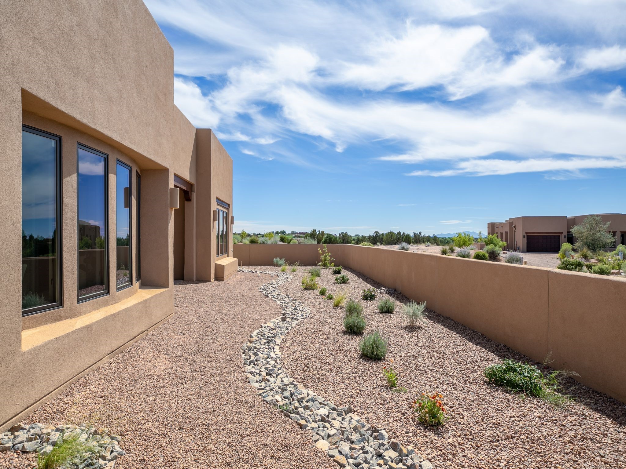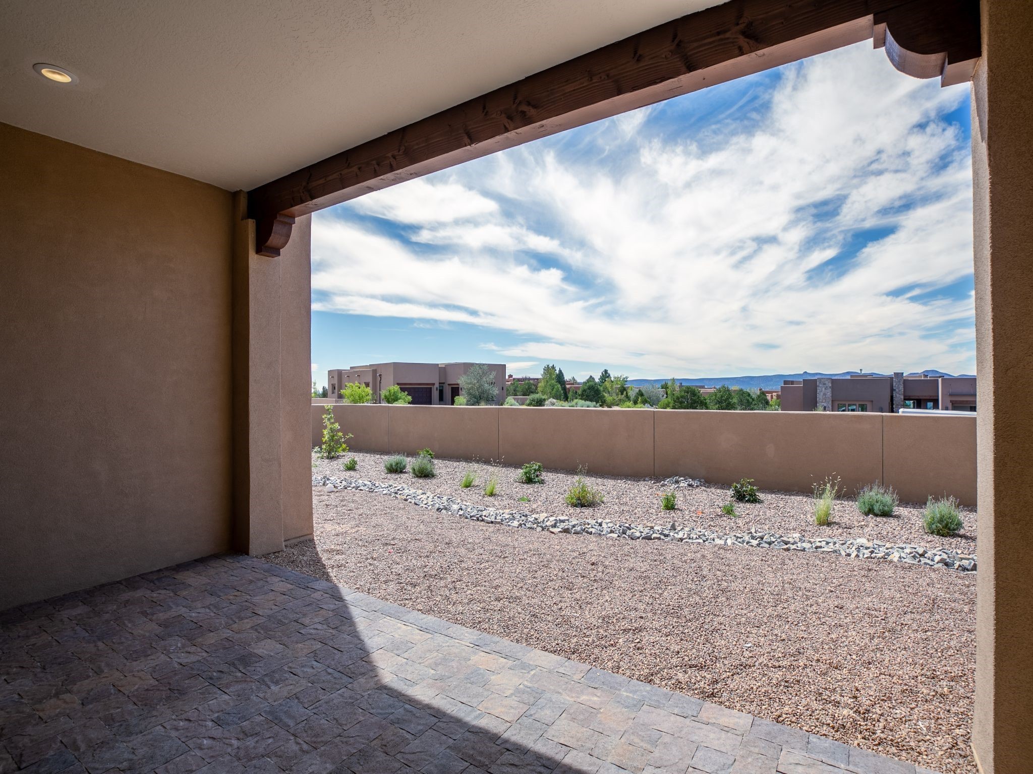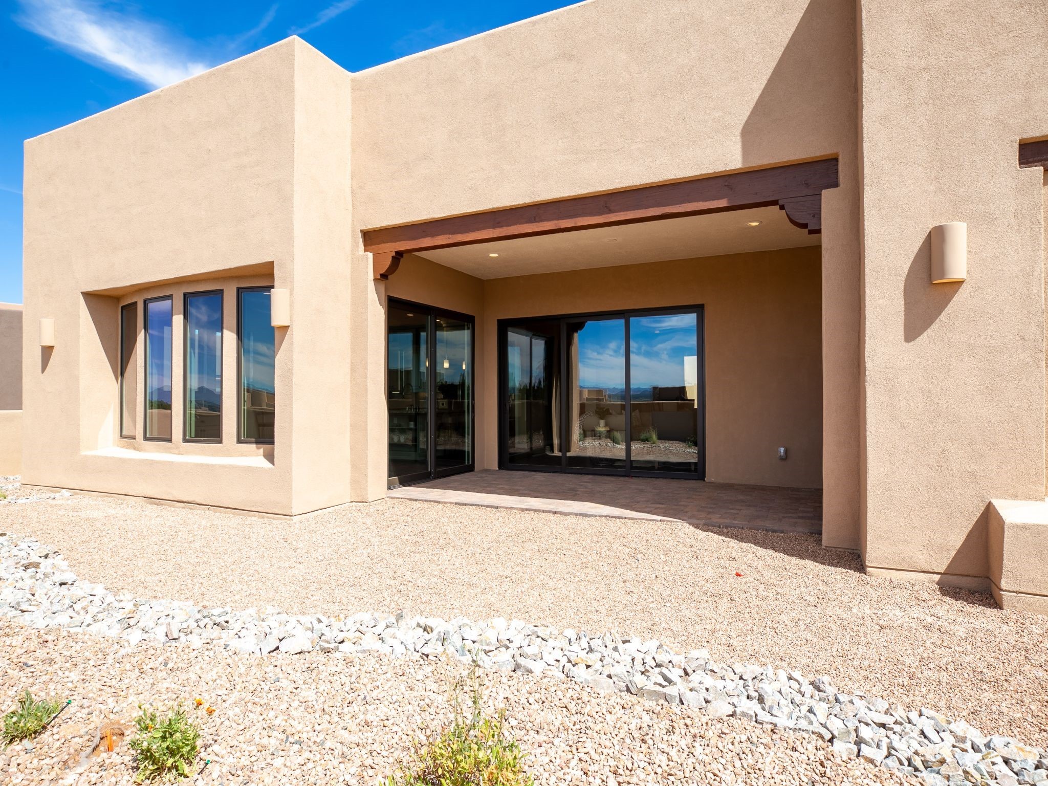 Completed August 2023; Ready for Move-In. the Patagonia pueblo floorplan is 3,265 sq. ft. in the main residence with a 218 sq. ft. guest suite with top-of-the line finishes. The main residence offers an open floor plan ideal for entertaining with light-filled, dining & kitchen areas; three bedrooms; media room; office & a 3-car garage. Retracting sliding glass doors frame the view & connect the living room with the covered portal area with gas fireplace & further to the generous walled-in. A spacious Wolf kitchen is anchored by a large center island with caf seating & is adjacent to the dining area which opens to the covered portal. The luxurious owner's suite features a walk-in shower with retreat area. Near the walking path, the Las Campanas Hacienda is minutes away. HOA fees cover maintenance, gated entries, paved roads, common areas, 24-hr roaming security & 24-hour EMT's. Membership to the Club at Las Campanas is optional.