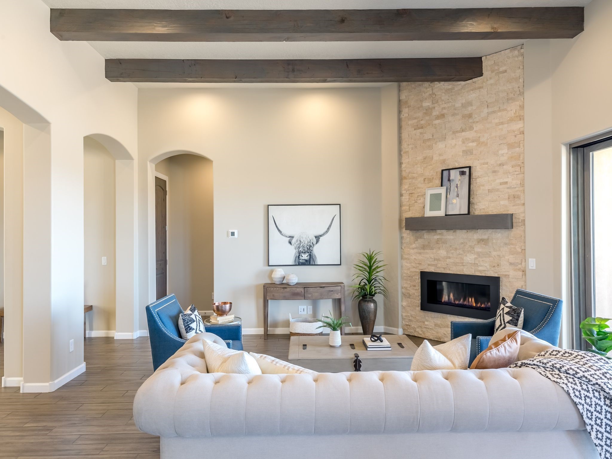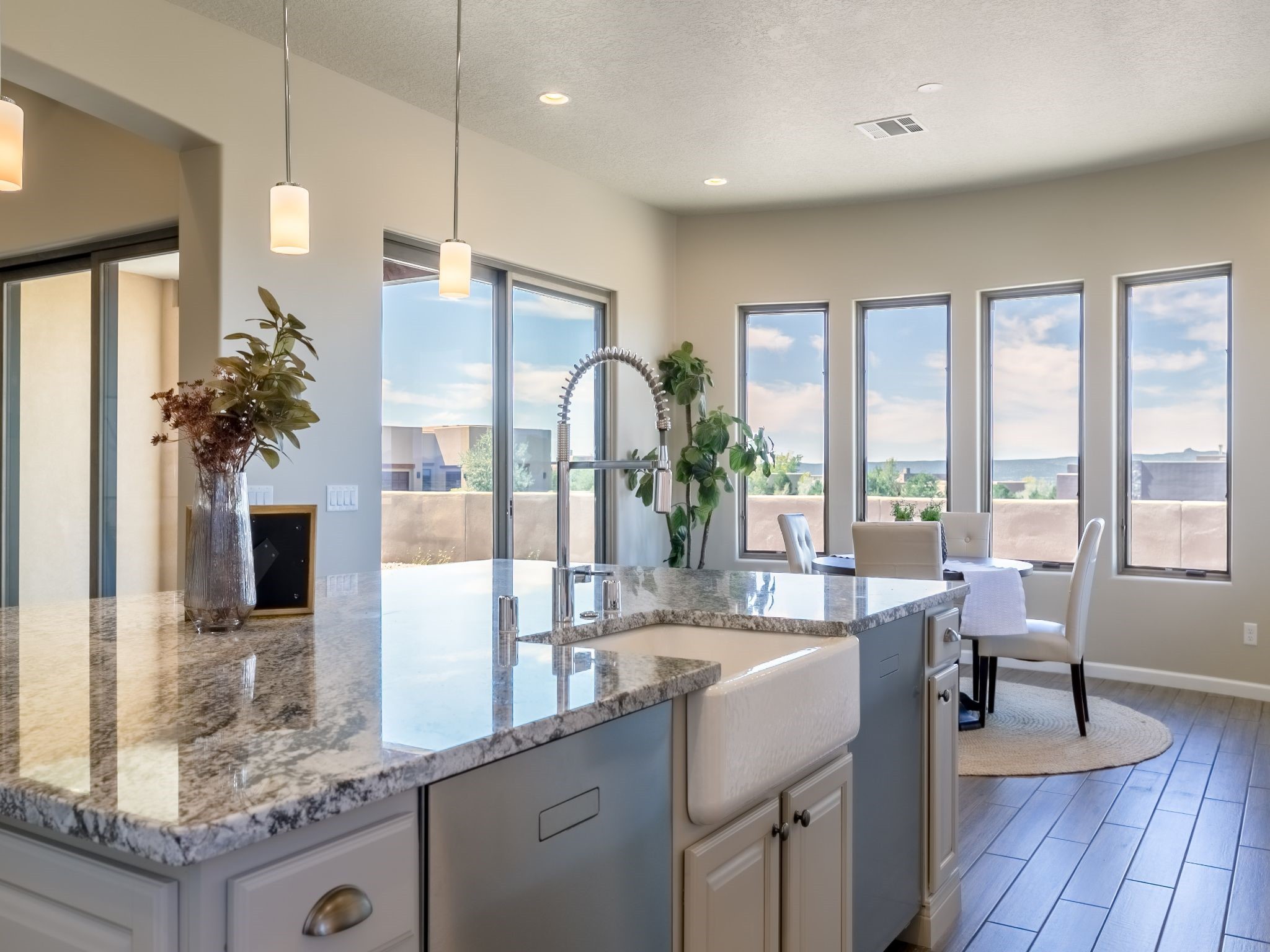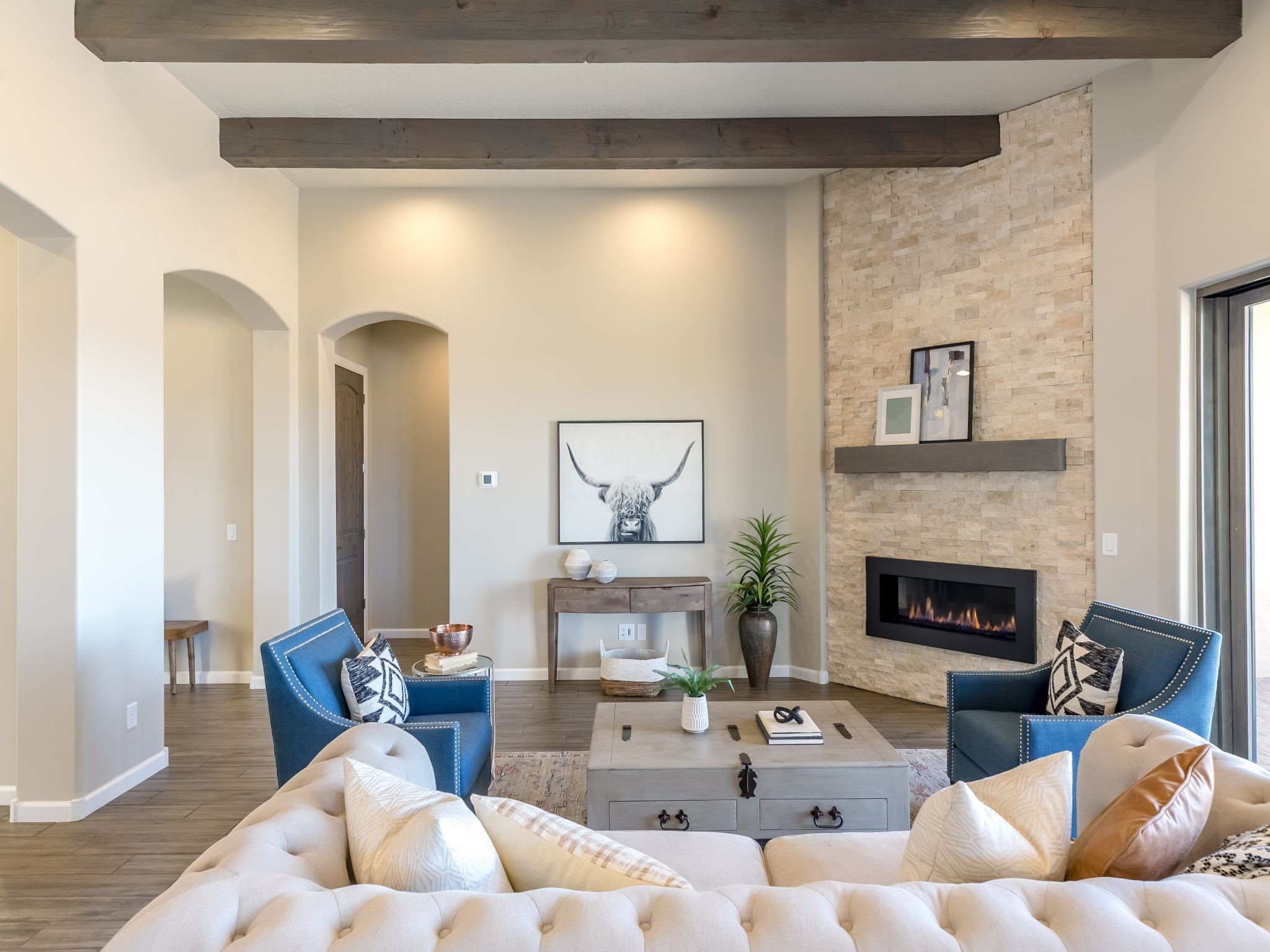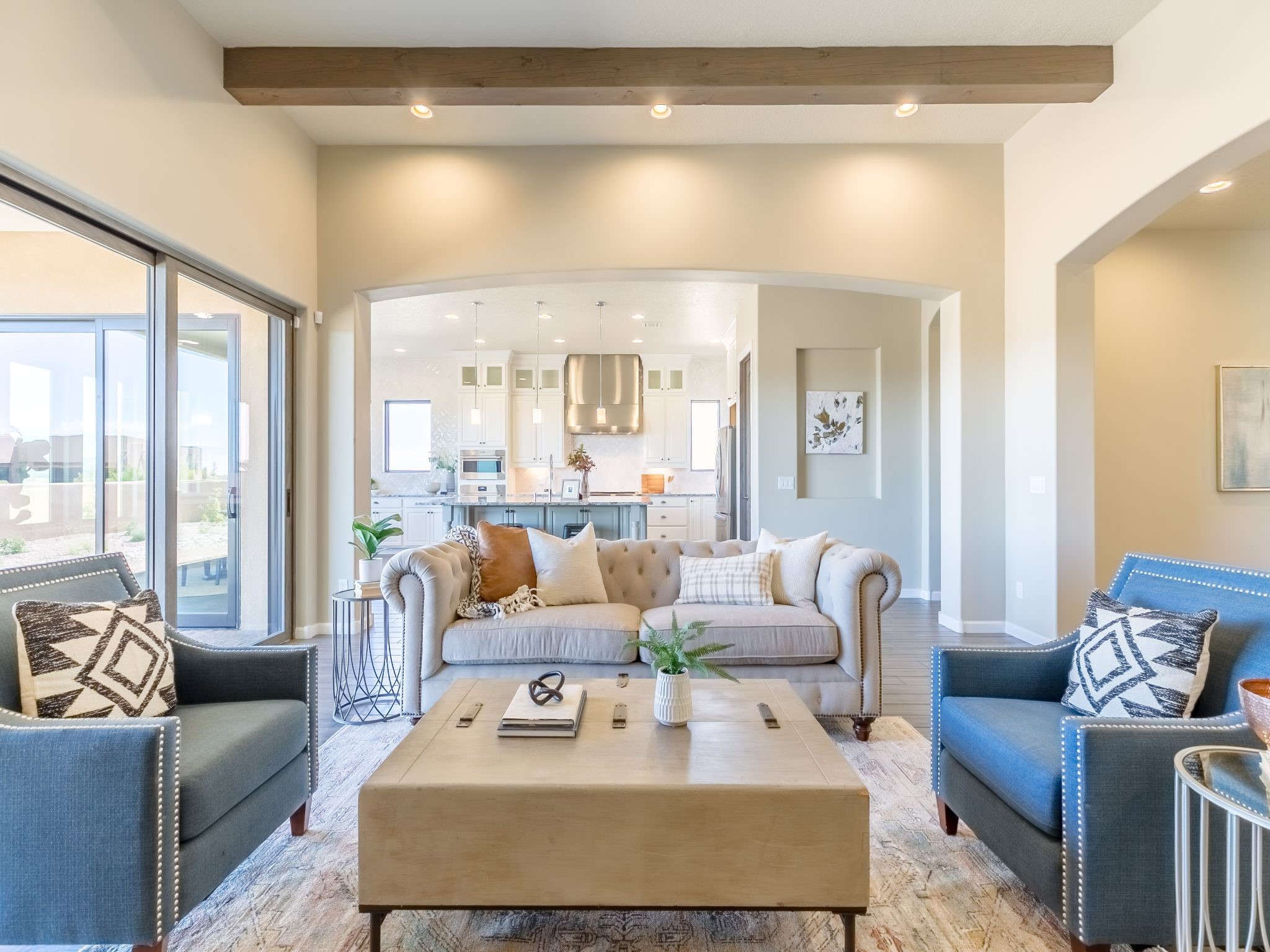 Completed August 2023; Ready for Move-In. the Patagonia pueblo floorplan is 3,265 sq. ft. in the main residence with a 218 sq. ft. guest suite with top-of-the line finishes. The main residence offers an open floor plan ideal for entertaining with light-filled, dining & kitchen areas; three bedrooms; media room; office & a 3-car garage. Retracting sliding glass doors frame the view & connect the living room with the covered portal area with gas fireplace & further to the generous walled-in. A spacious Wolf kitchen is anchored by a large center island with caf seating & is adjacent to the dining area which opens to the covered portal. The luxurious owner's suite features a walk-in shower with retreat area. Near the walking path, the Las Campanas Hacienda is minutes away. HOA fees cover maintenance, gated entries, paved roads, common areas, 24-hr roaming security & 24-hour EMT's. Membership to the Club at Las Campanas is optional.
