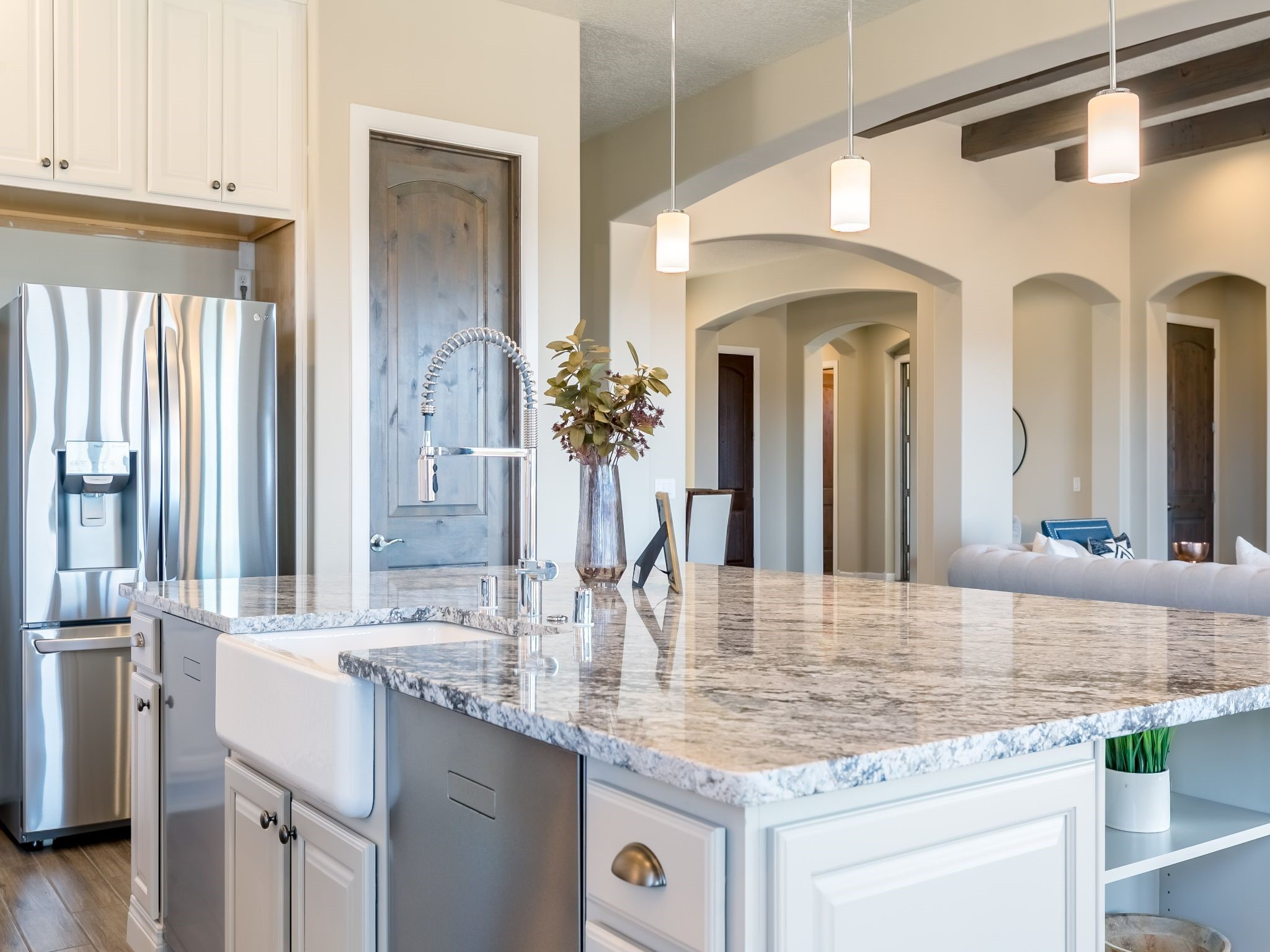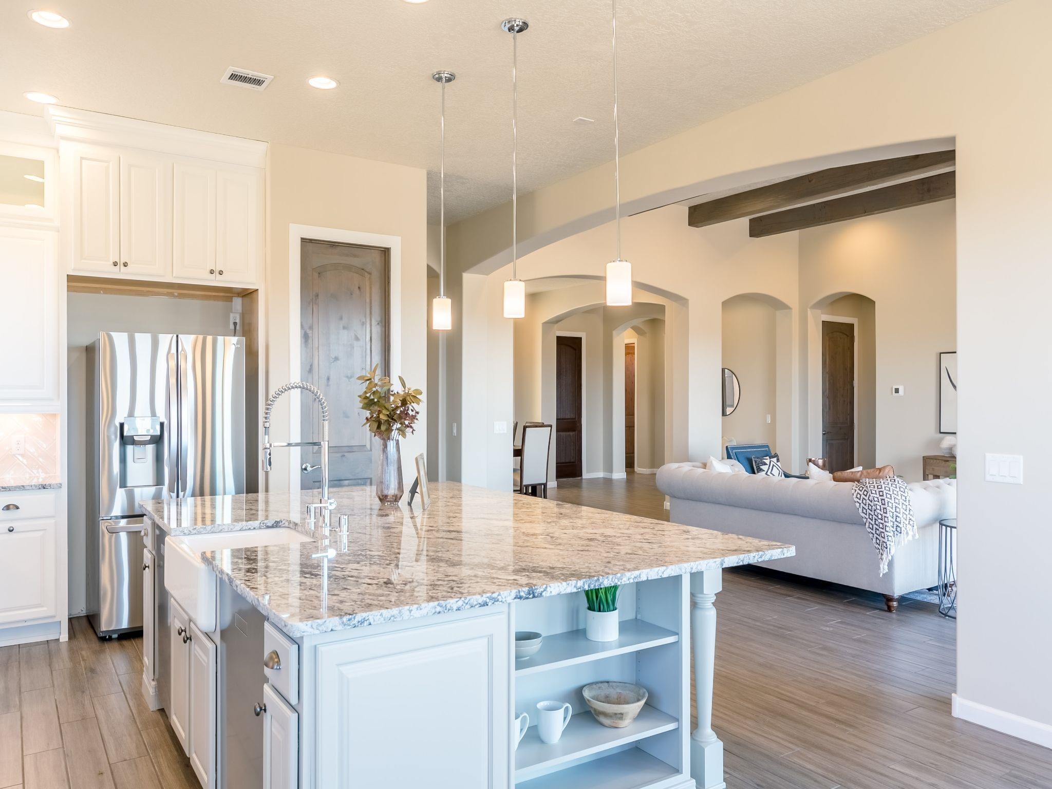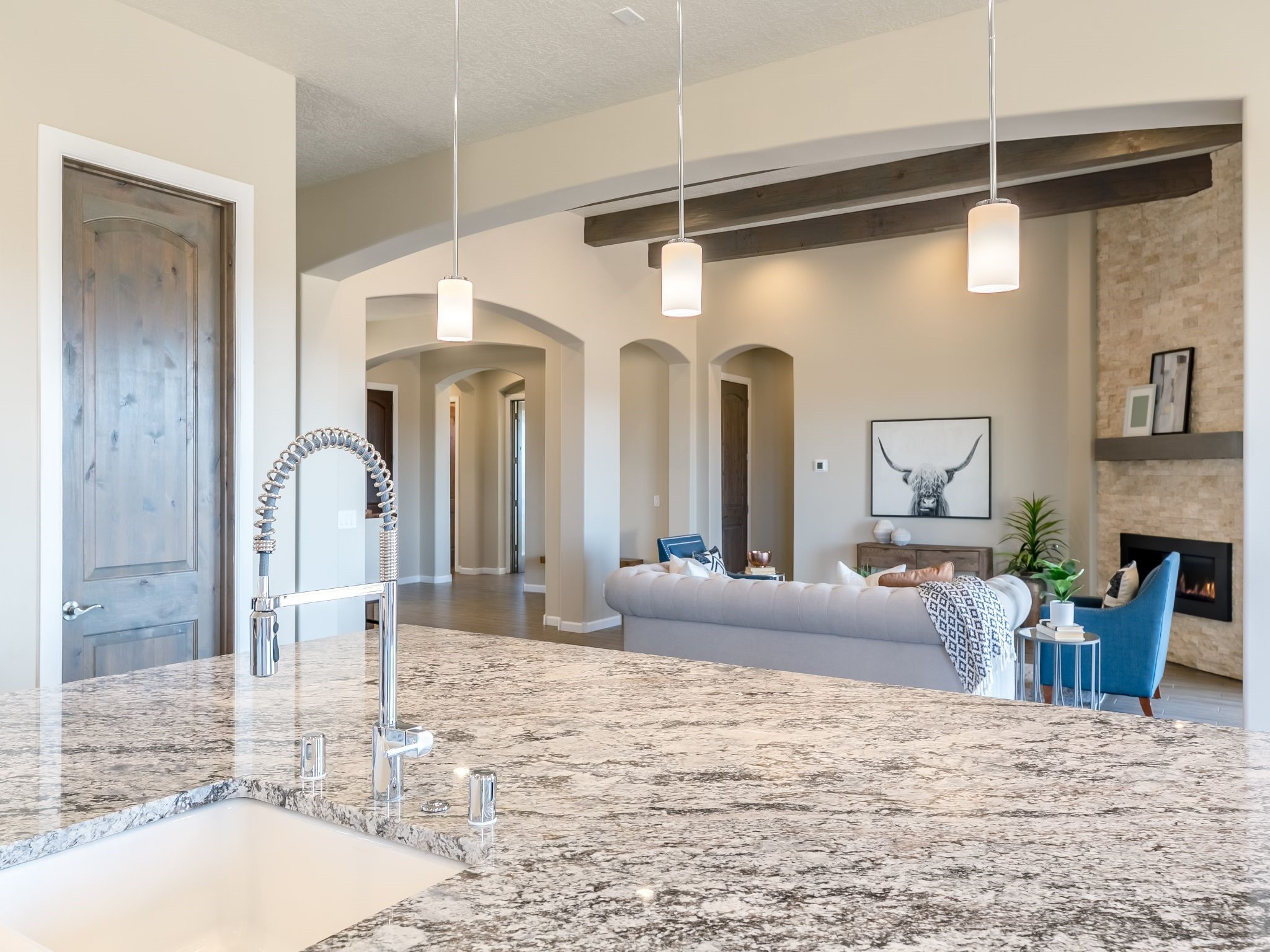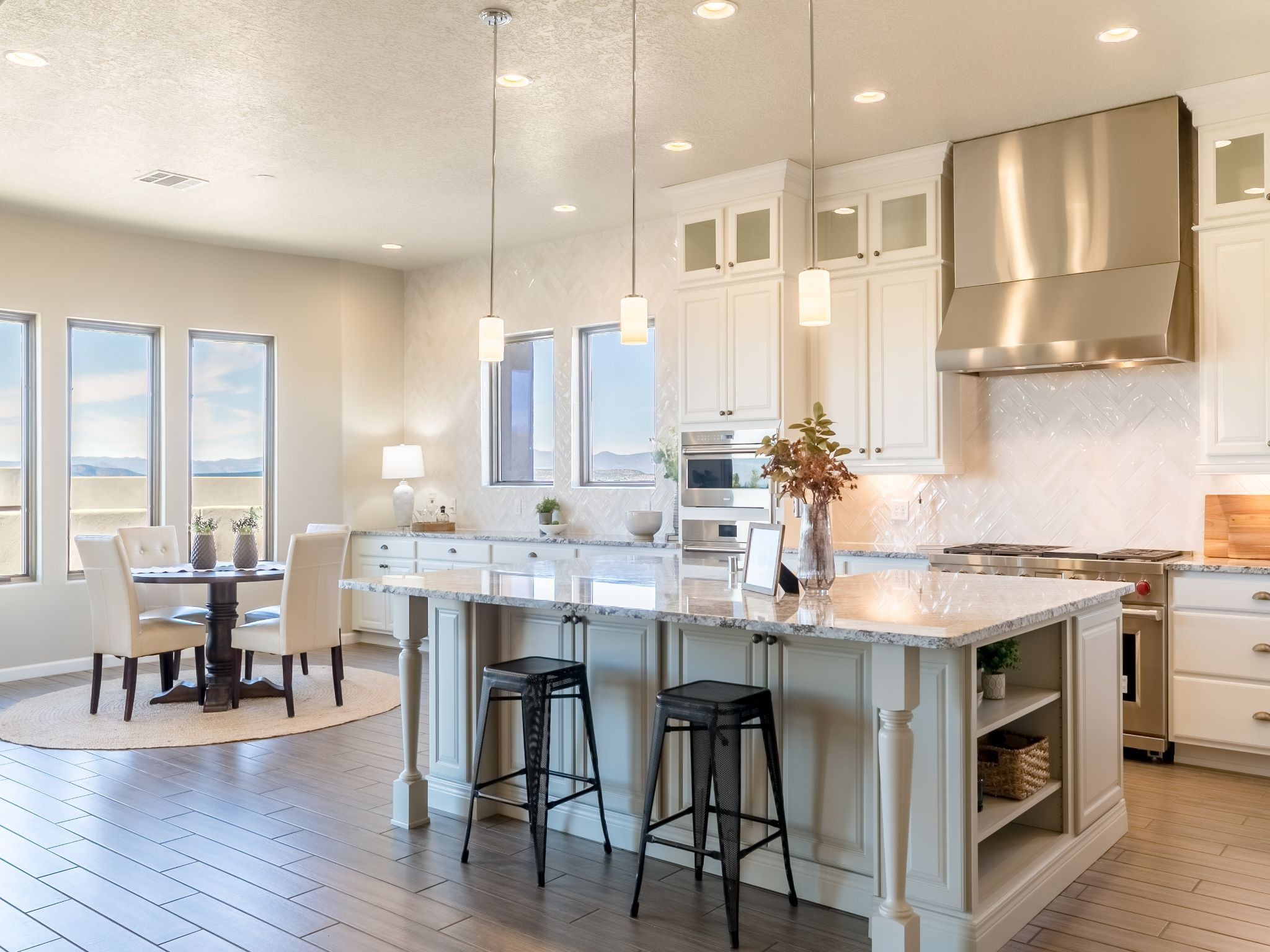 Completed August 2023; Ready for Move-In. the Patagonia pueblo floorplan is 3,265 sq. ft. in the main residence with a 218 sq. ft. guest suite with top-of-the line finishes. The main residence offers an open floor plan ideal for entertaining with light-filled, dining & kitchen areas; three bedrooms; media room; office & a 3-car garage. Retracting sliding glass doors frame the view & connect the living room with the covered portal area with gas fireplace & further to the generous walled-in. A spacious Wolf kitchen is anchored by a large center island with caf seating & is adjacent to the dining area which opens to the covered portal. The luxurious owner's suite features a walk-in shower with retreat area. Near the walking path, the Las Campanas Hacienda is minutes away. HOA fees cover maintenance, gated entries, paved roads, common areas, 24-hr roaming security & 24-hour EMT's. Membership to the Club at Las Campanas is optional.