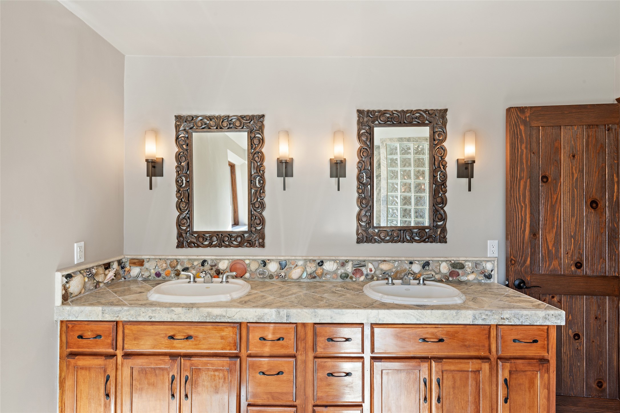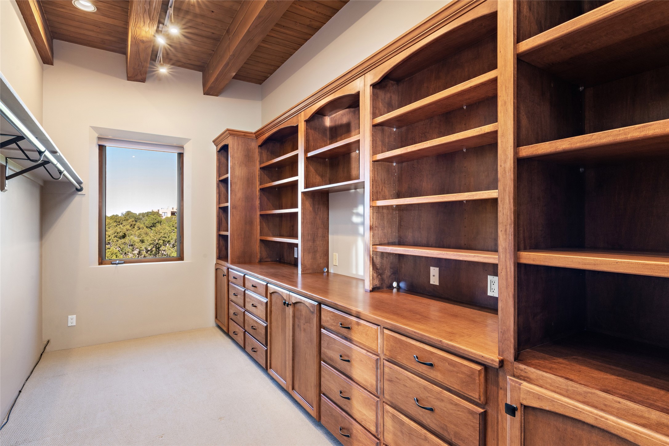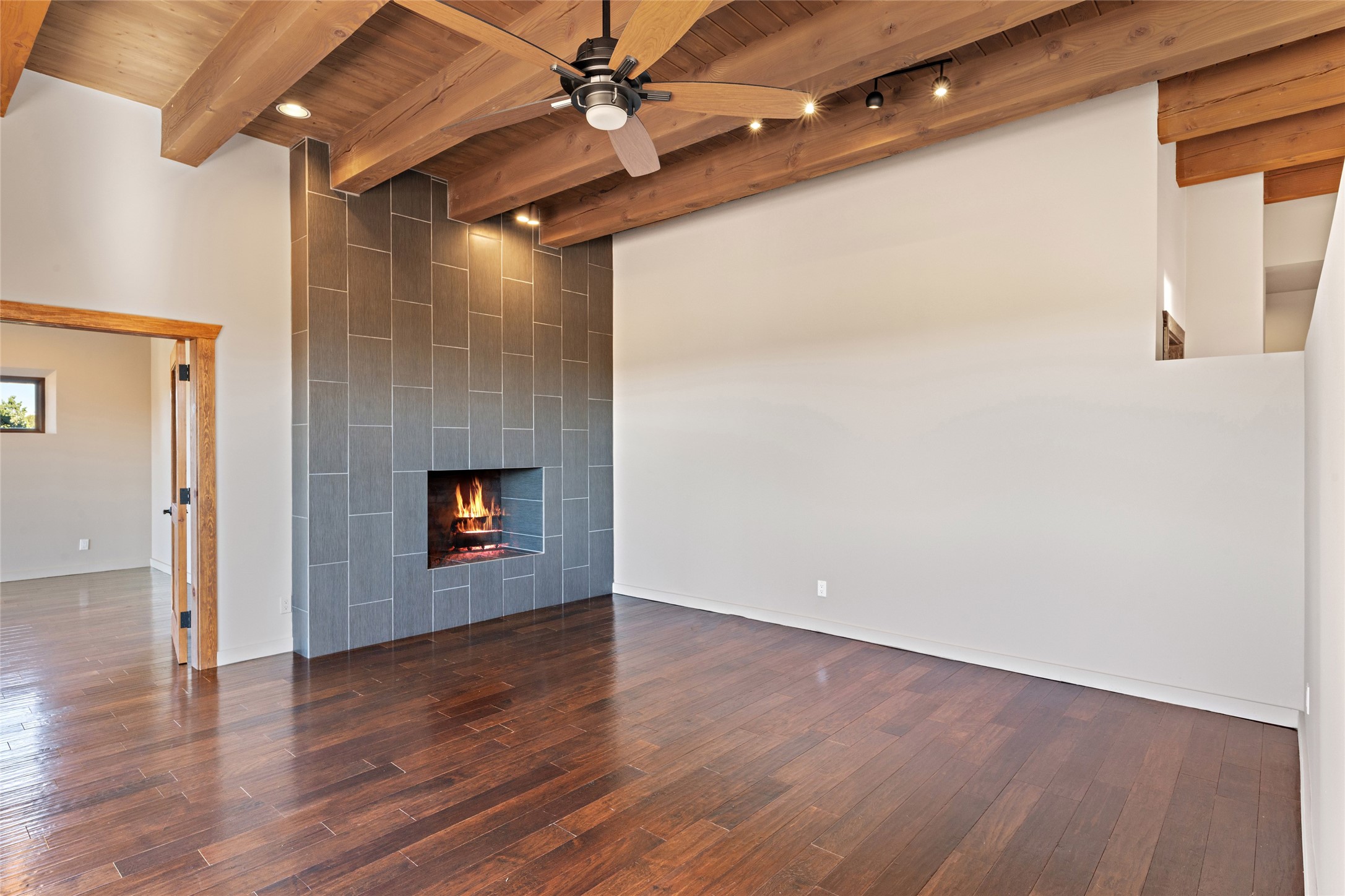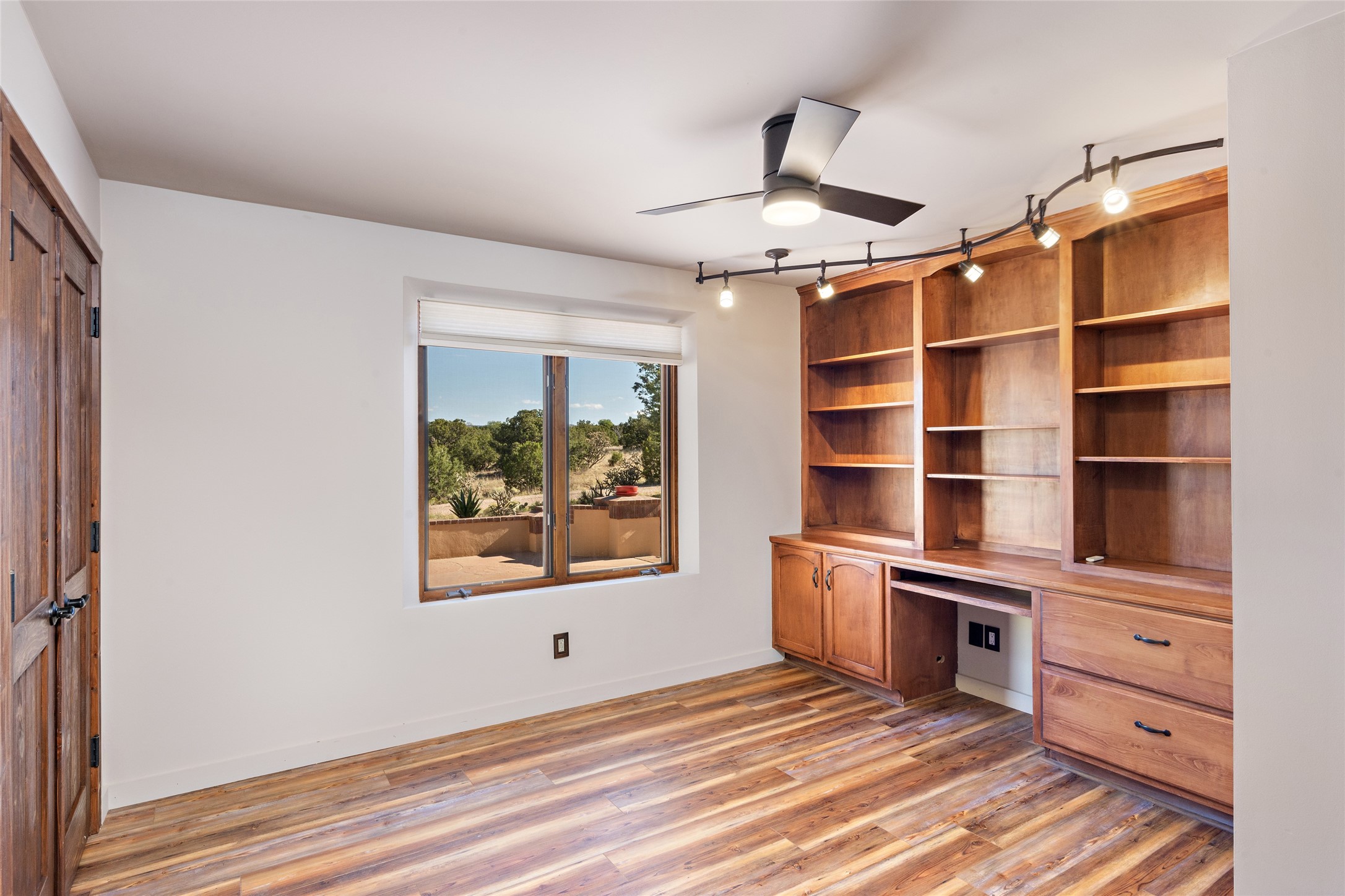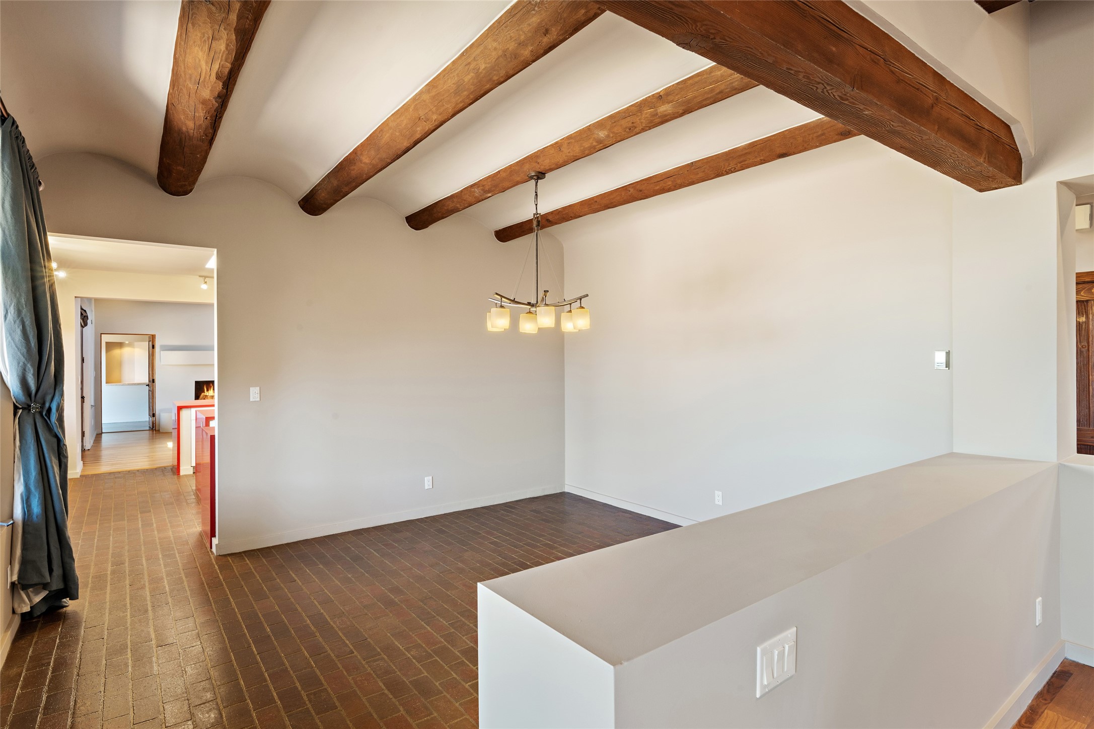 ENTERTAINER'S PARADISE! Not to mention the spectacular postcard-worthy sunset views of the Sandia and Ortiz, mountains from the back patio, and Sangres from the front patio. Sited on a large greenbelt at the end of a cul-de-sac. Four mini-splits provide real air conditioning. New stucco, interior paint and brick floors refinished in September 2023. Kitchen updated in 2022 with new appliances - a 6-burner Wolf gas range, Bosch dishwasher and LG refrigerator and more counter seating and storage. Two primary suites on opposite ends of the house, both with large walk-in closets, provide numerous options, from an in-law suite, to a large artist's studio. The larger of the suites has a sitting room with fantastic mountain views, a smaller room that is plumbed to be a kitchenette, and a separate back entrance. Huge closest with an entire wall of built-in shelves and drawers in first primary bedroom with beautiful spa-like bath with jetted tub, and double sinks. Banco with storage under picture window. Primary bedroom two has a generous 2-person jetted tub, double sinks and beautiful shower. Both primary suites have a fireplace, and there are two more in living areas, for a total of four. Fifth bedroom is set up as a beautiful office with built-ins. The new brick back patio has a sunken seating area with a built-in gas grill, a fire table and a long covered portal which is a great place to entertain or relax. The two added front flagstone patios provide additional space for seating and gorgeous views of snow-covered mountains in the winter - both patios have solar lighting. There is also a secure coyote-fenced backyard space that provides a safe area for dogs to play. Generous laundry room with sink and pantry. Oversized, extra deep 2-car garage with storage. A few steps up from the garage, otherwise single-level. Radiant is PEX. Domestic is copper. Water softener 2019. Each room has a ceiling fan. Custom screen doors, insulated blinds.