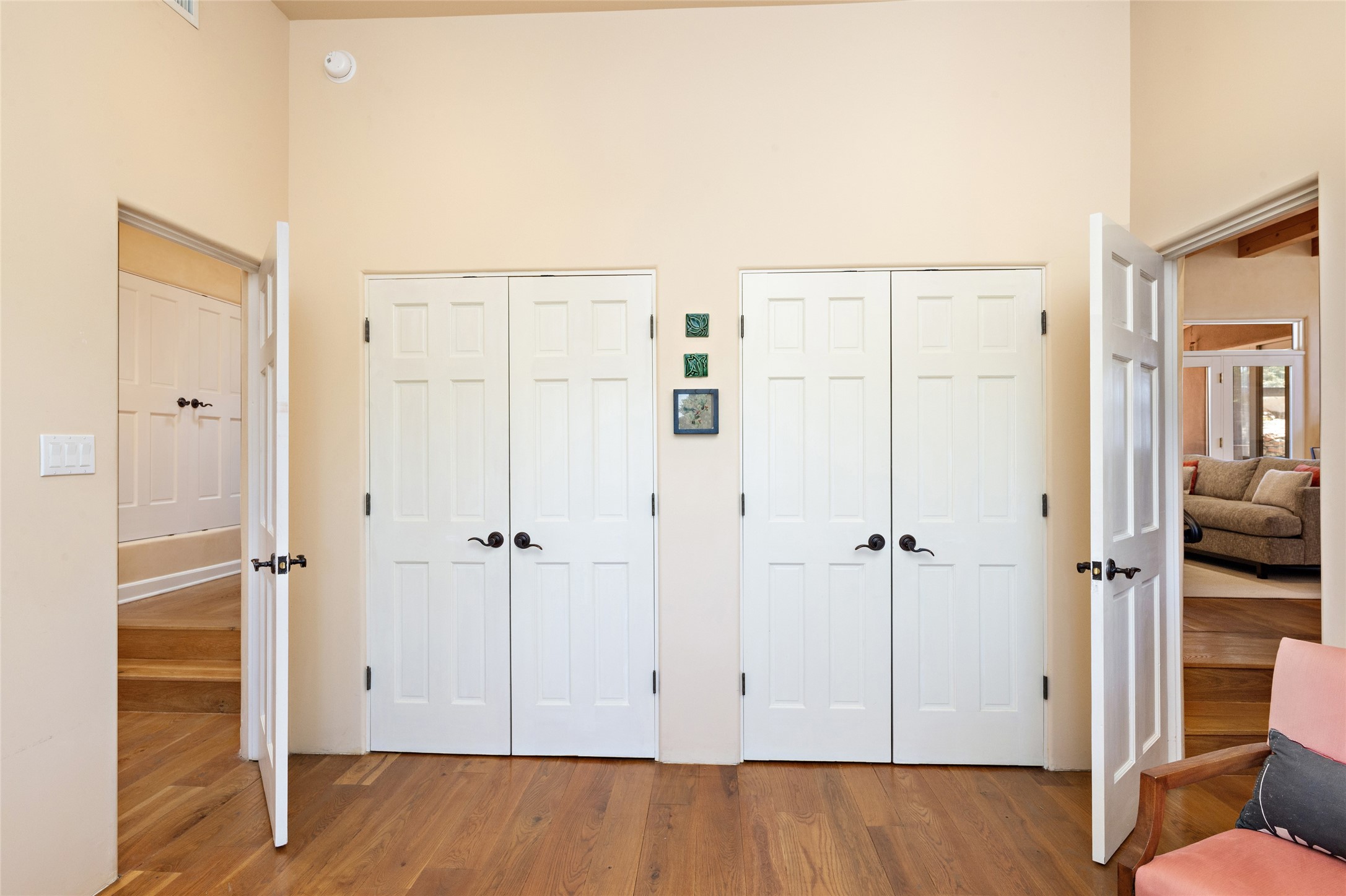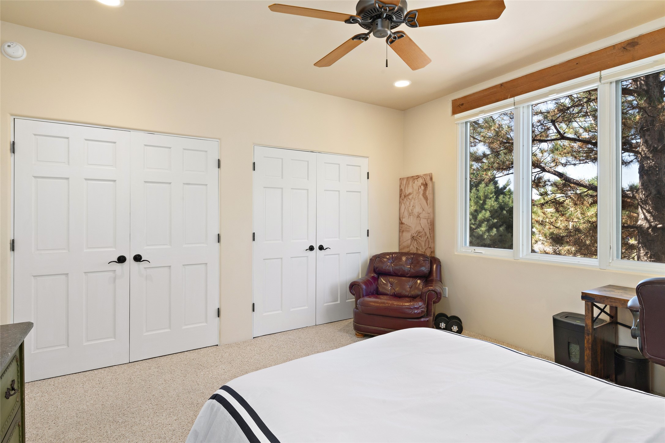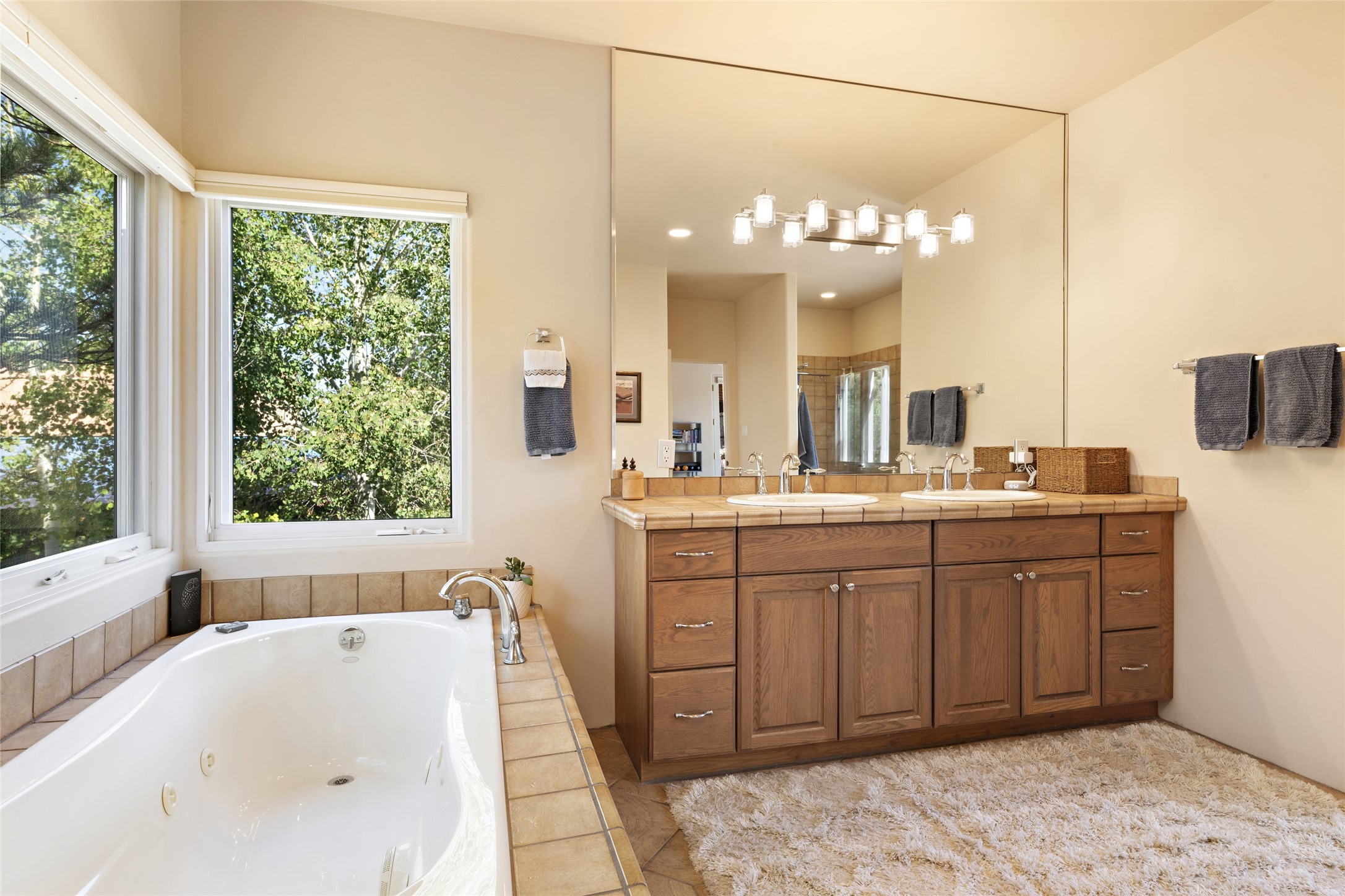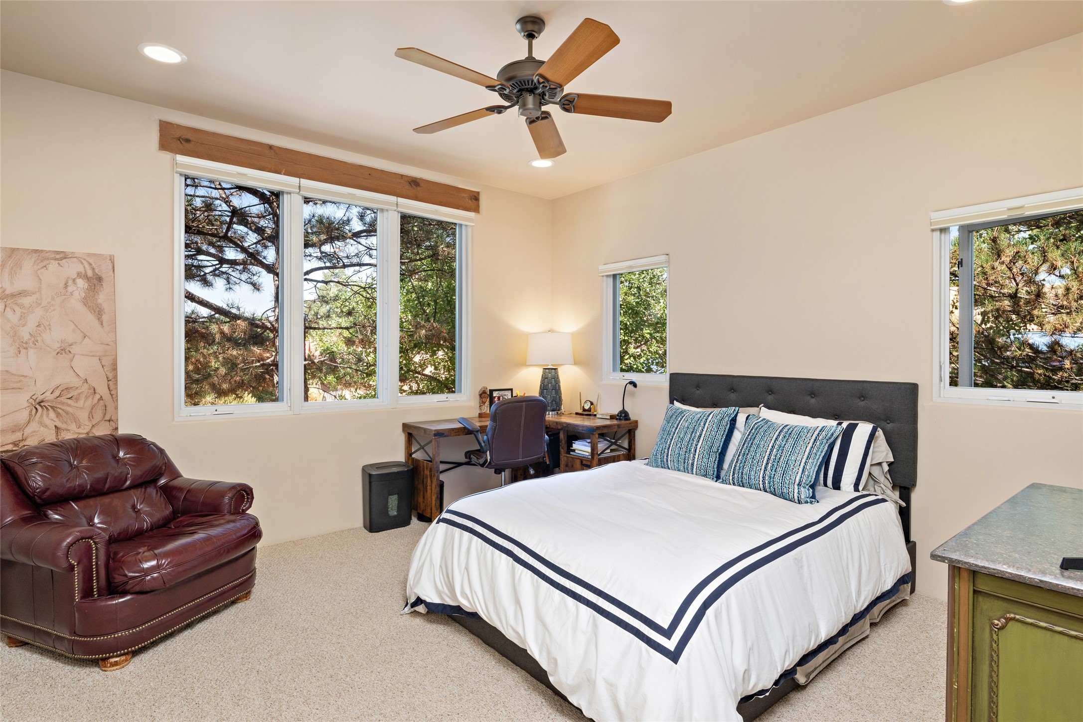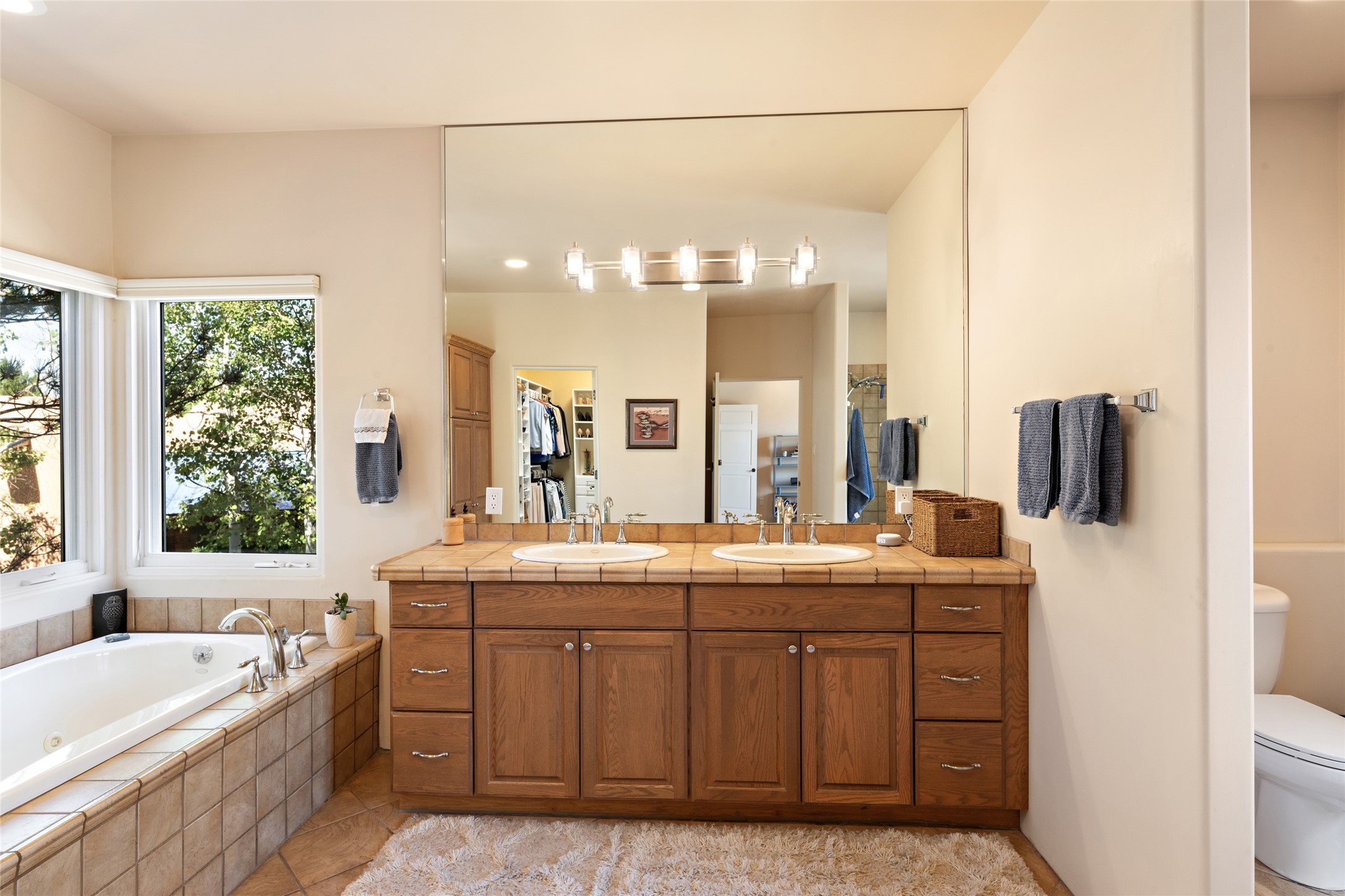Discover the enchantment of Santa Fe in this 3-bed, 2-bath home. Built in 2002 on .22 acres, it exudes Southwestern charm with a Sun Mountain view, wood floors, and open layout. The living room boasts a kiva fireplace, high ceilings, and skylights, creating an inviting ambiance. The kitchen, complete with a large island, new appliances, and walk-in pantry, is perfect for culinary enthusiasts. Unwind in the primary bedroom, a true homeowner's retreat, featuring a kiva fireplace and access to the back portal. The spacious primary bathroom offers a jetted tub for relaxation. Custom closet organizers enhance the primary walk-in closet, and beautiful hardwood floors grace the home. A newer roof adds value and peace of mind. Radiant heat and evaporative cooling ensure year-round comfort indoors. Step outside to a xeriscaped yard with a captivating garden, soothing fountain, and a cozy Rumford fireplace. This outdoor oasis sets the stage for entertaining and tranquil moments. The garage organization and abundant storage throughout the home make staying organized effortless. Meticulously maintained, this property embodies the beauty of Santa Fe living and entertaining. Beyond a house, it's a sanctuary, a retreat, and a statement of living well. Embrace Southwestern elegance and make 2736 Pradera your home today.