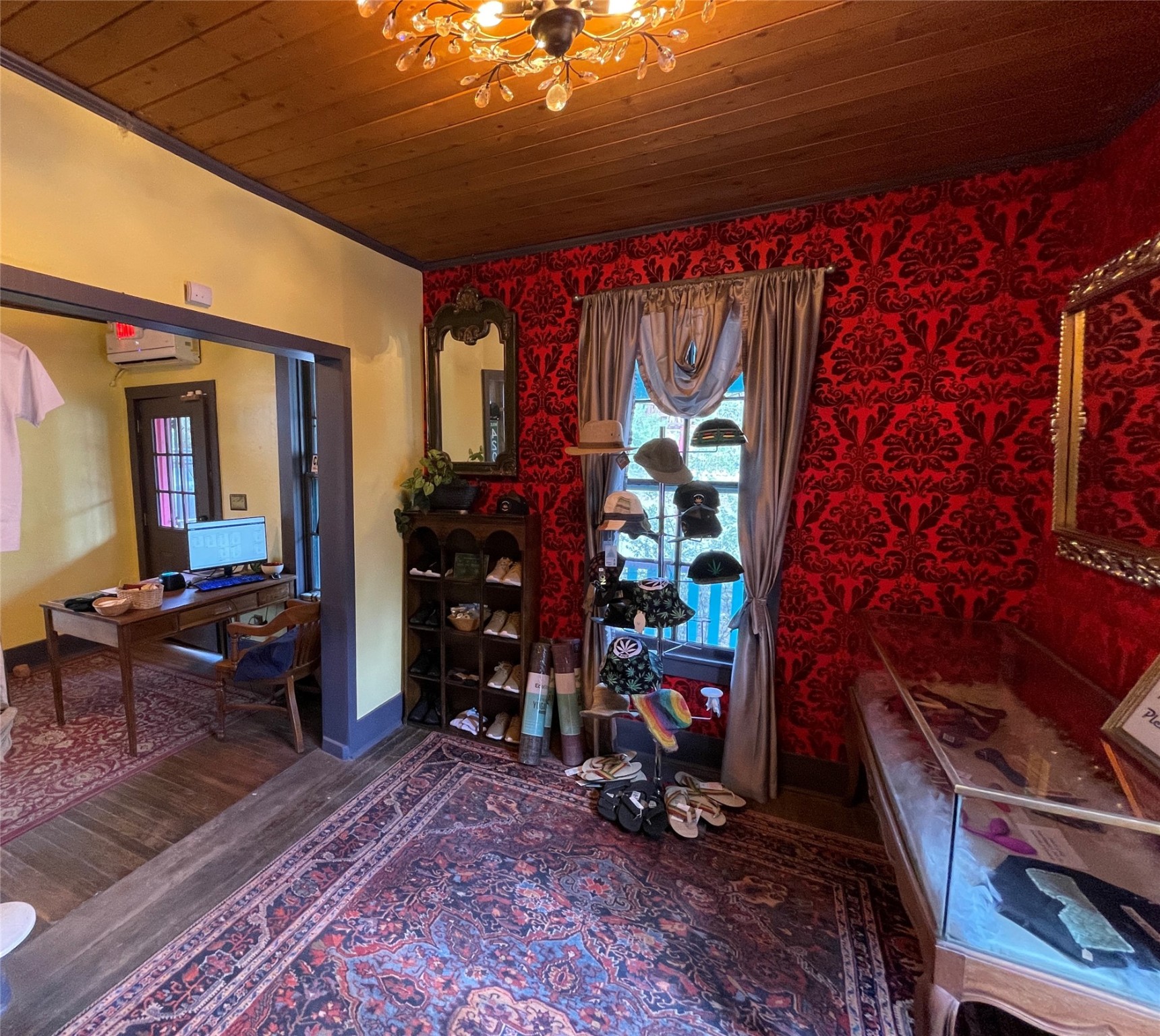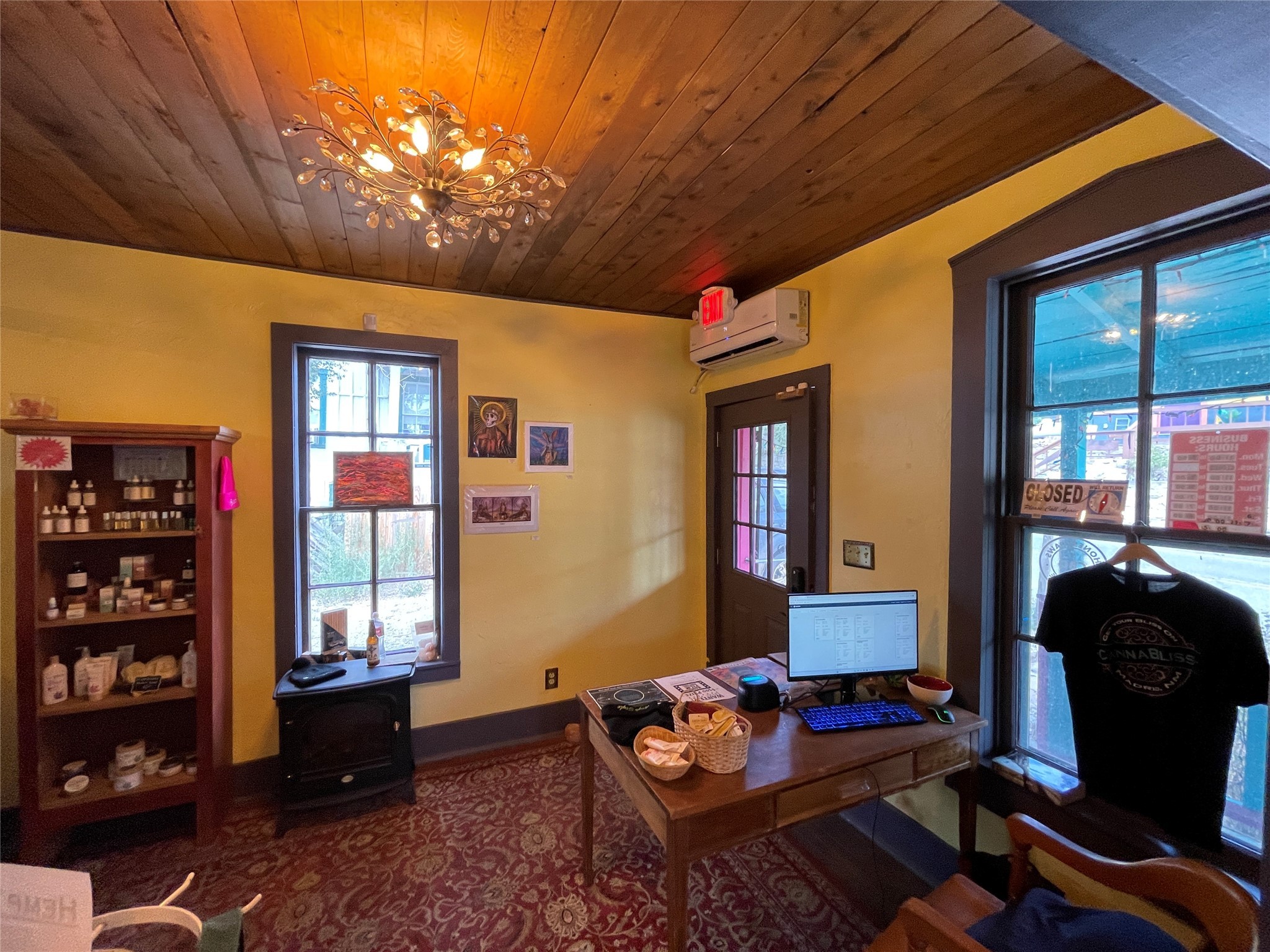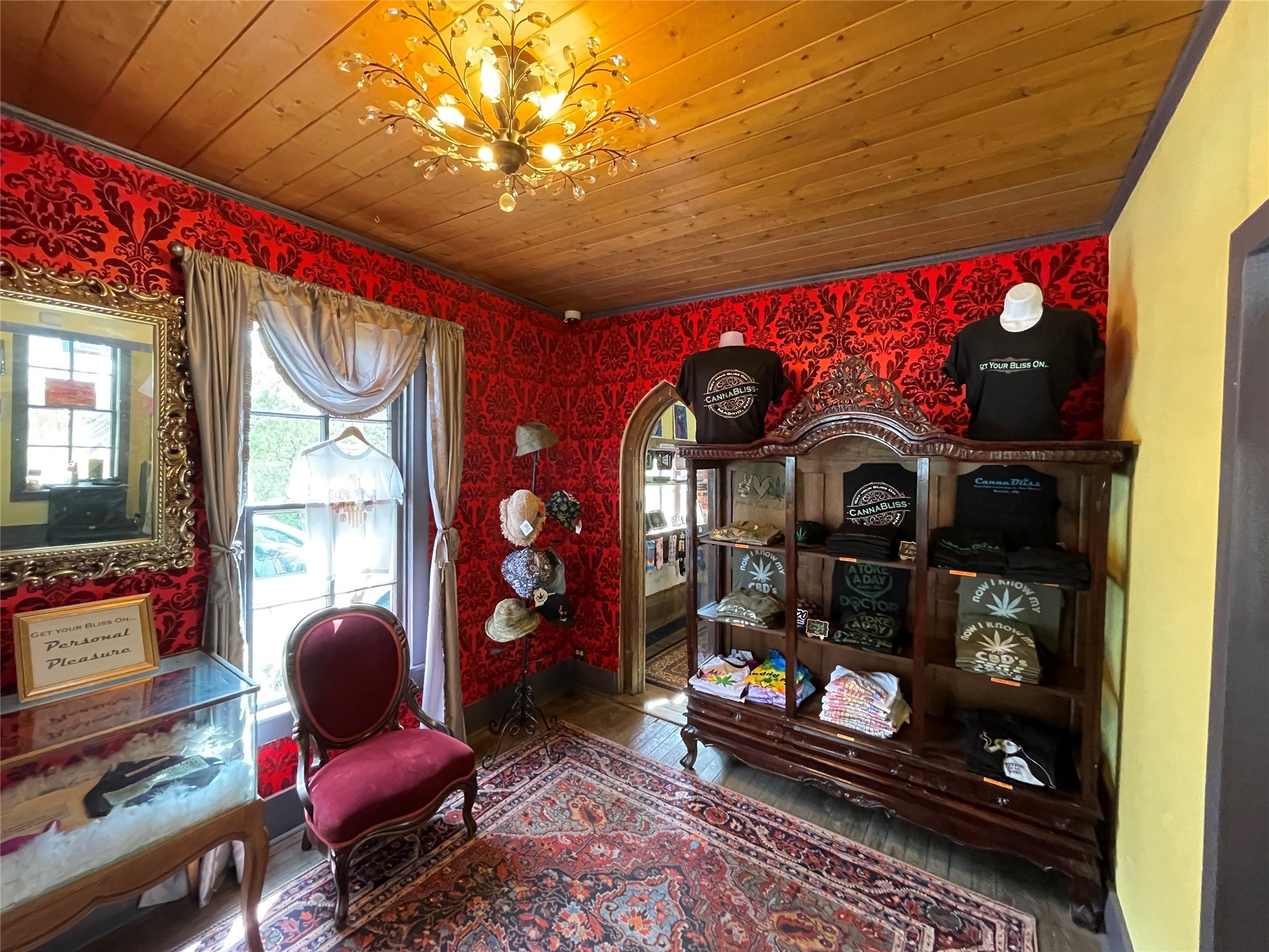 Alluring shop in Madrid with location and charm. It is currently used as a cannabis dispensary. In the past, it was a jewelry shop and a Real Estate office.Great street level visibility, next door to the Old Boarding House Mercantile.