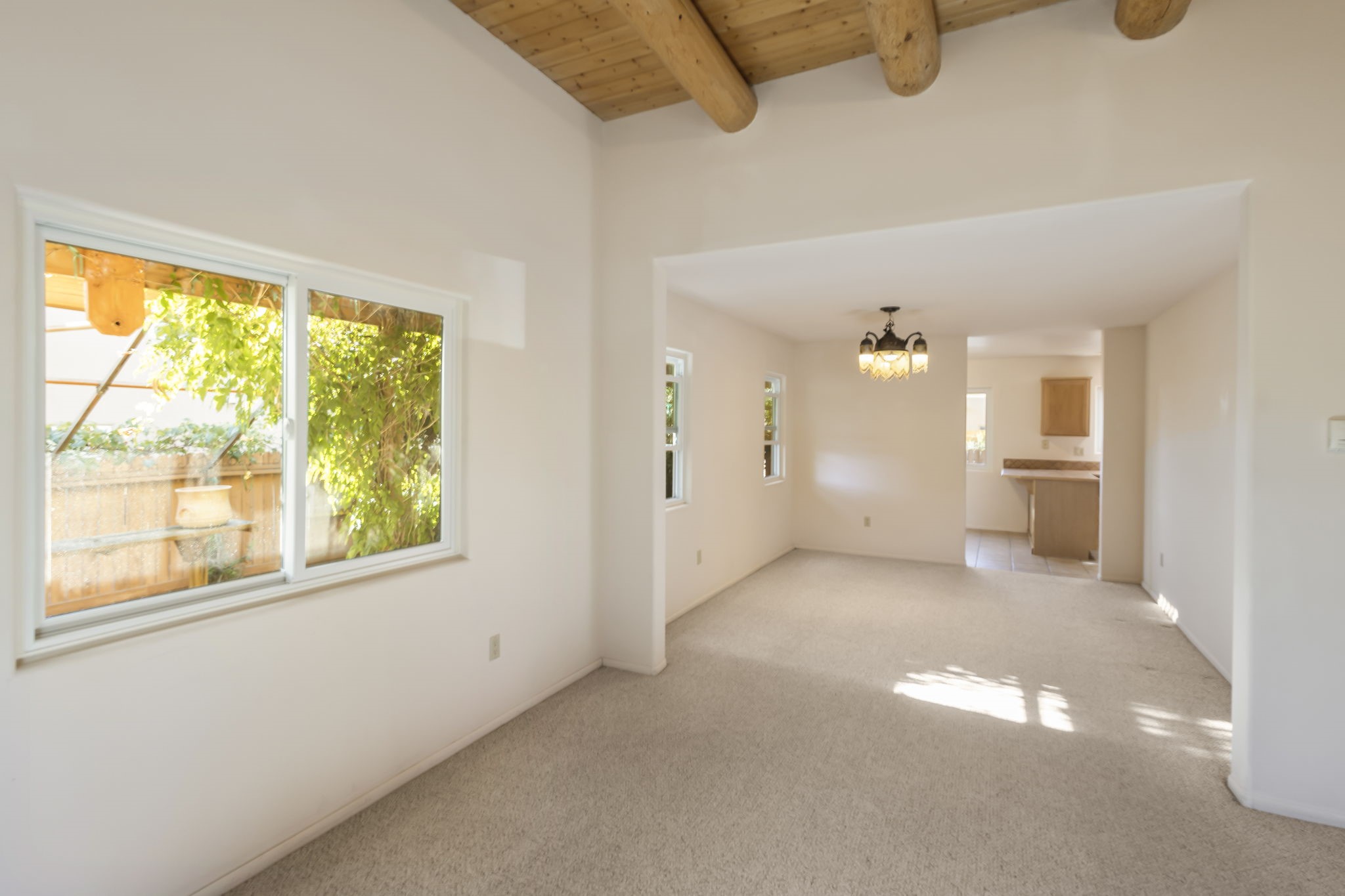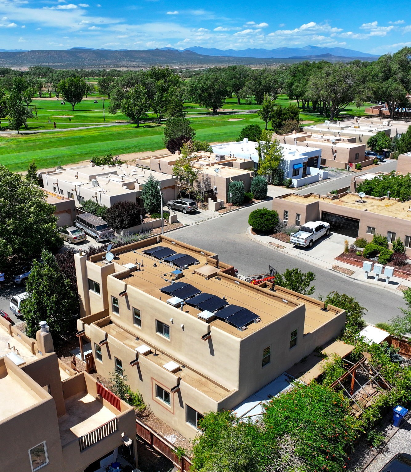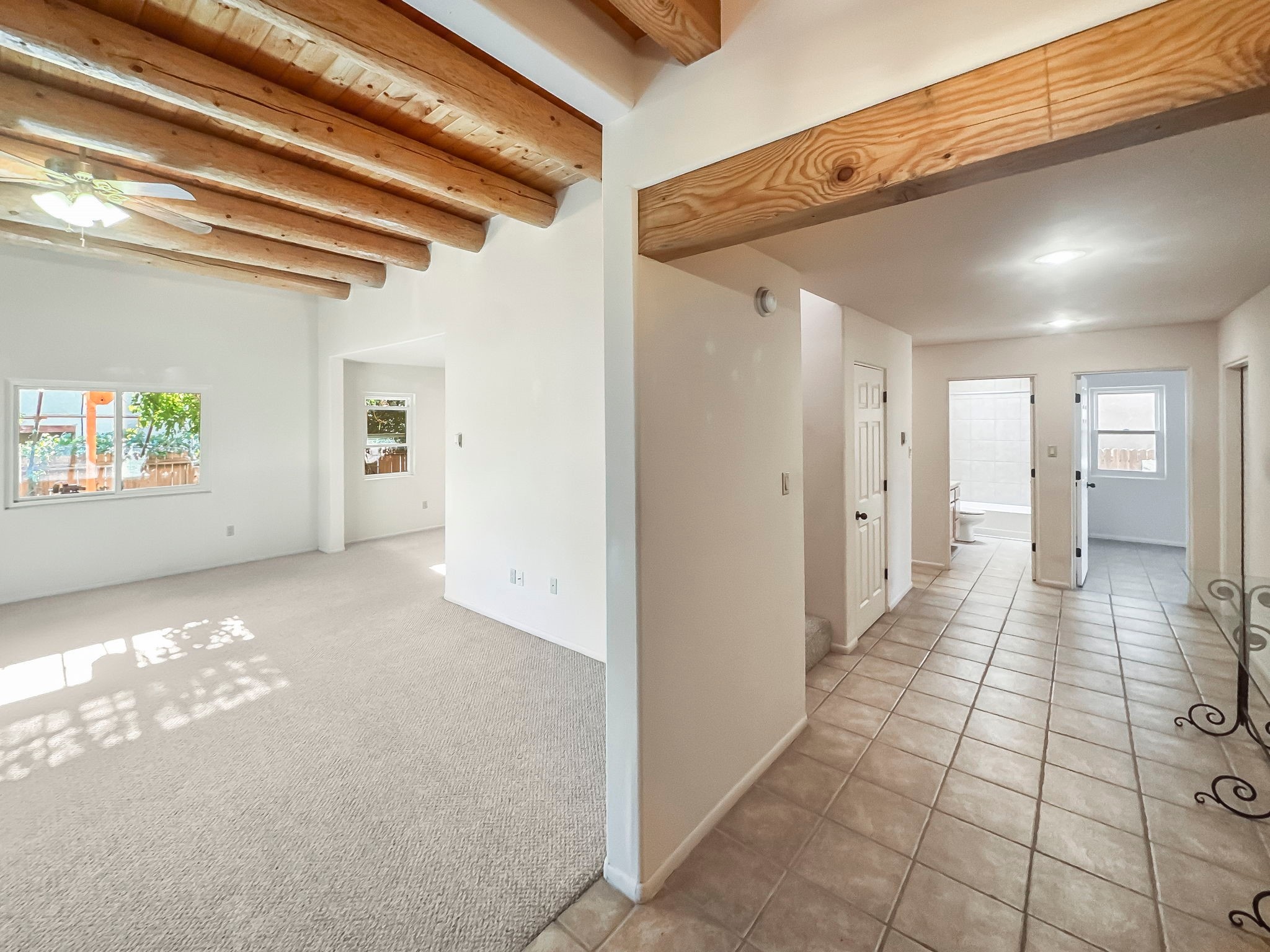 You have been waiting for home prices to fall - HERE IS YOUR OPPORTUNITY! NOW OFFERED AT ONLY $245 PER SQUARE FOOT - This spacious home includes NEW windows throughout from Renewal by Anderson Windows installed in August 2023, a 10 panel roof-top solar system and a 240V high-speed electric car charging outlet in the 2-car garage. Additional features: 3 bedrooms and 3 full baths, 15-foot viga ceiling in the living area, security system, high-speed internet PLUS a home office/den with a private entrance - perfect for a home business! The roof has been recently inspected and comes with a transferable warranty. The outdoor spaces are a gardener's dream with mature apple, peach and decorative plum trees, grape and trumpet vines and a convenient composter. Radiant floor heating at the lower level and hot water baseboard heating at the upper level will bring absolute comfort during the cold season. Only 3 blocks from the Southside Public Library and the new Santa Fe Teen Center, convenient access to public transportation, easy access to Hwy 599 for Los Alamos commuters and a short drive to all Southside amenities.