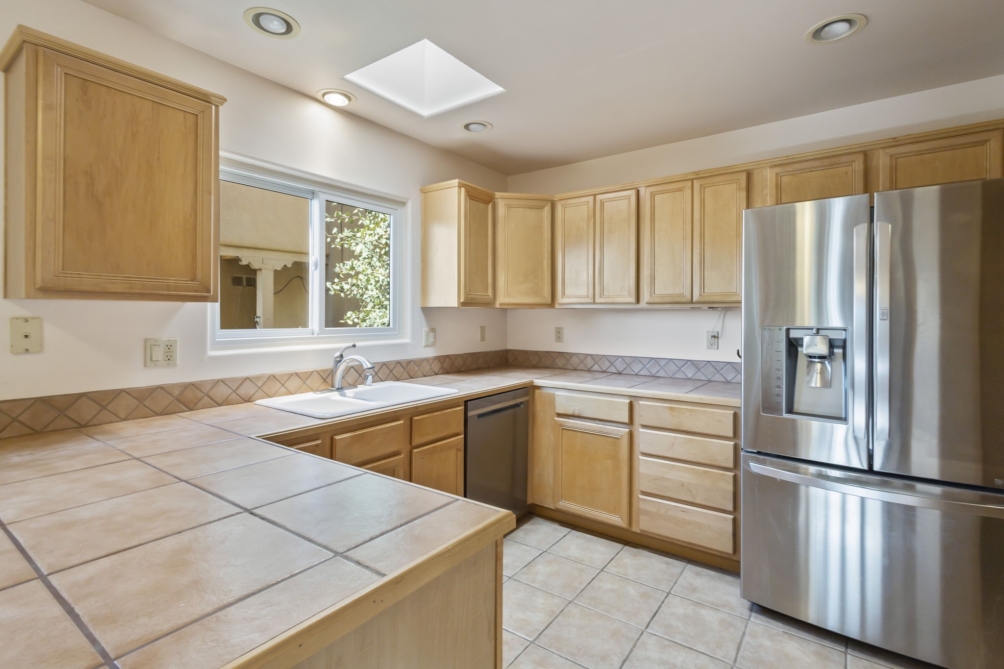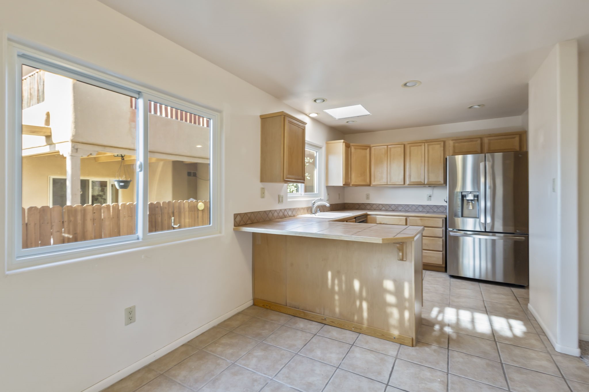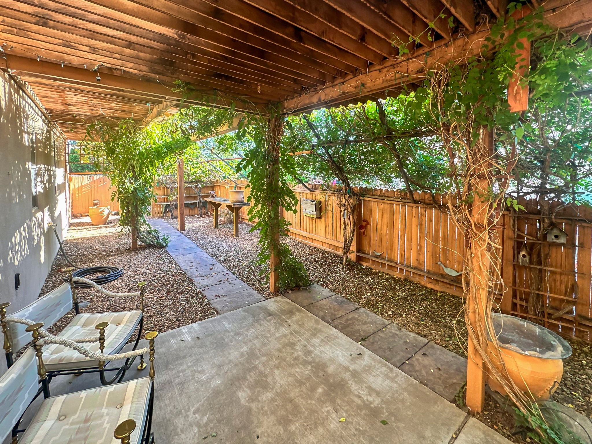 You have been waiting for home prices to fall - HERE IS YOUR OPPORTUNITY! NOW OFFERED AT ONLY $245 PER SQUARE FOOT - This spacious home includes NEW windows throughout from Renewal by Anderson Windows installed in August 2023, a 10 panel roof-top solar system and a 240V high-speed electric car charging outlet in the 2-car garage. Additional features: 3 bedrooms and 3 full baths, 15-foot viga ceiling in the living area, security system, high-speed internet PLUS a home office/den with a private entrance - perfect for a home business! The roof has been recently inspected and comes with a transferable warranty. The outdoor spaces are a gardener's dream with mature apple, peach and decorative plum trees, grape and trumpet vines and a convenient composter. Radiant floor heating at the lower level and hot water baseboard heating at the upper level will bring absolute comfort during the cold season. Only 3 blocks from the Southside Public Library and the new Santa Fe Teen Center, convenient access to public transportation, easy access to Hwy 599 for Los Alamos commuters and a short drive to all Southside amenities.