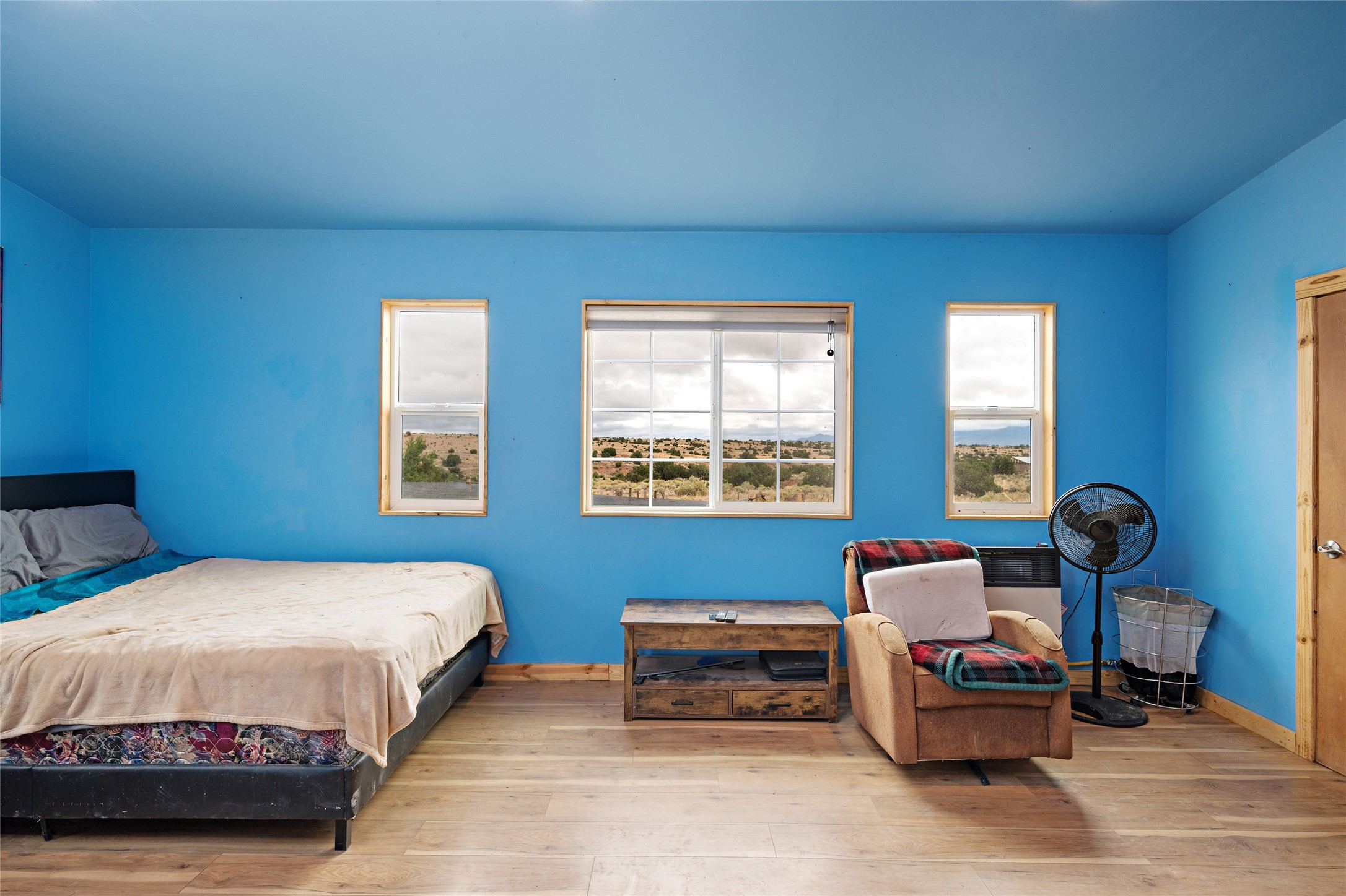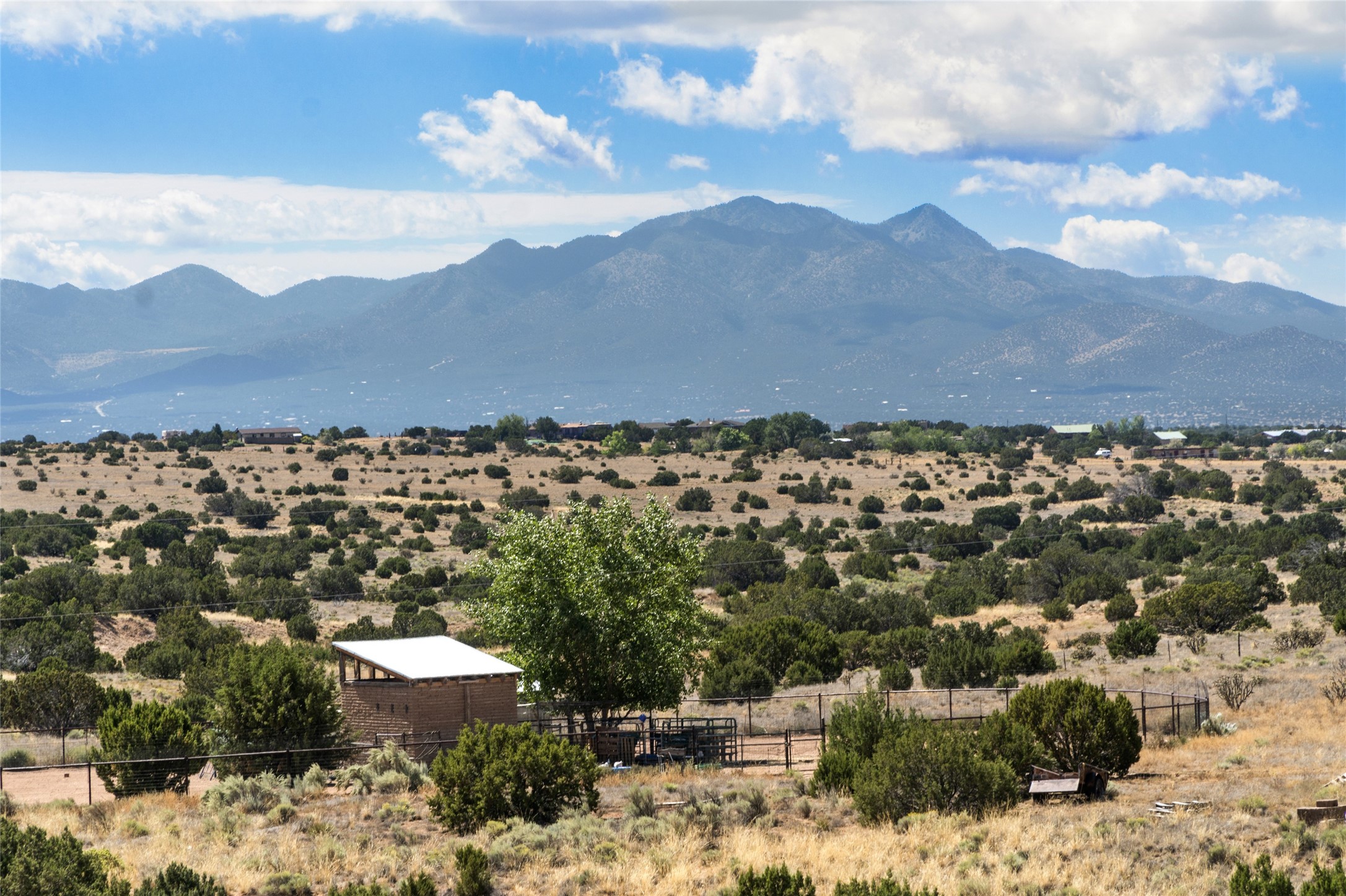 Live the Good Life with views of the Ortiz Mountains plus an instant revenue from the two sweet rentals, the present owners have been growing their own food and also installed a Universal Advanced Water System on the property, using the abundant well on site.The spacious 3 bedroom two bathroom house sits atop the hill, viewing the land around. It is 2,165 sq ft built in 2009. There are two additional guest houses, each with their own bathroom and bedroom. We think the first dwelling was built in 1979, that is 580sq ft. The other guest house/casita is 675sq ft, it is ADA compliant with a ramp, which can easily be removed if desired. The sellers have been using this as a family compound but any of the units could be a wonderful source of revenue for the buyer. This is just a 20 minute drive from town, 25 minutes to downtown.