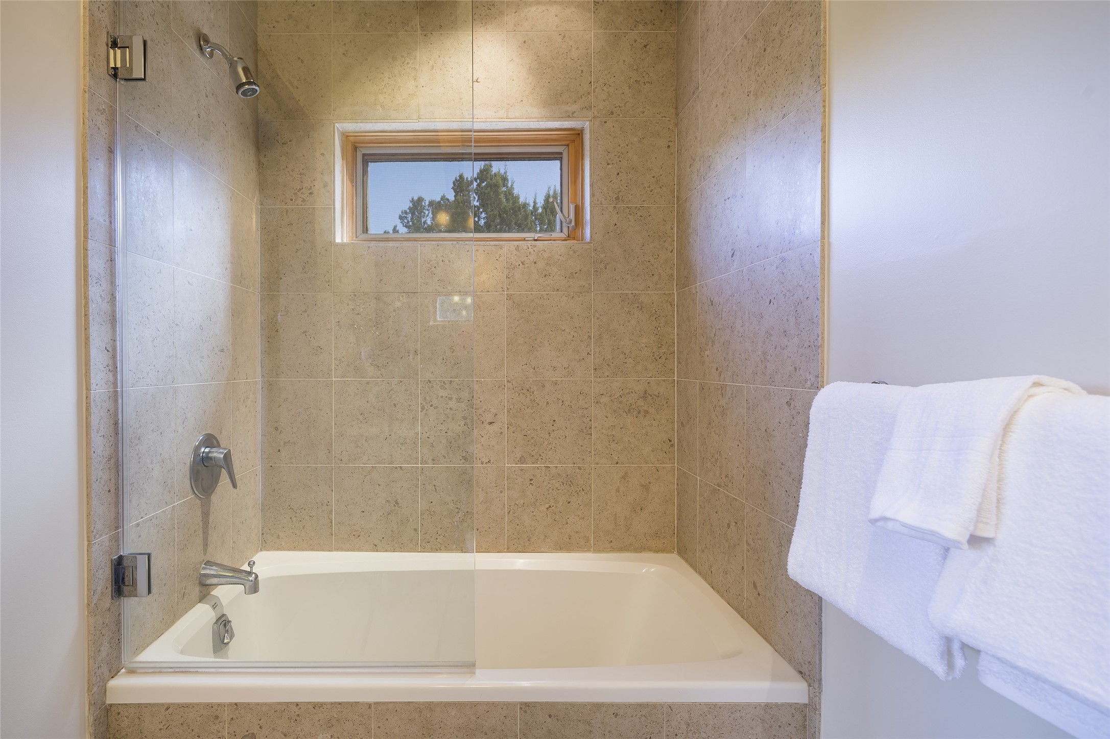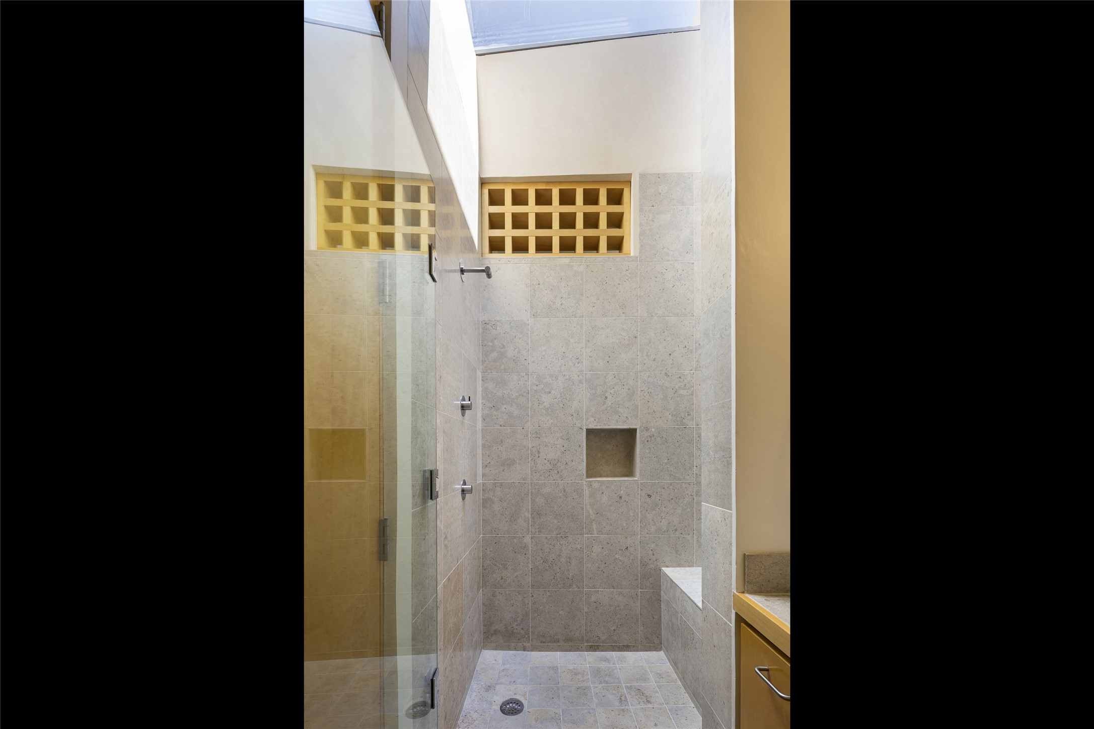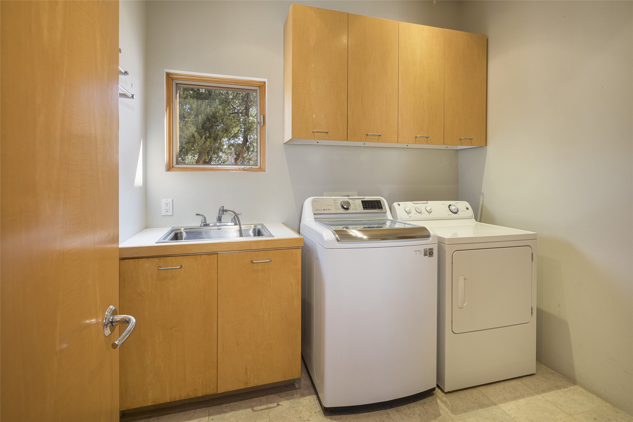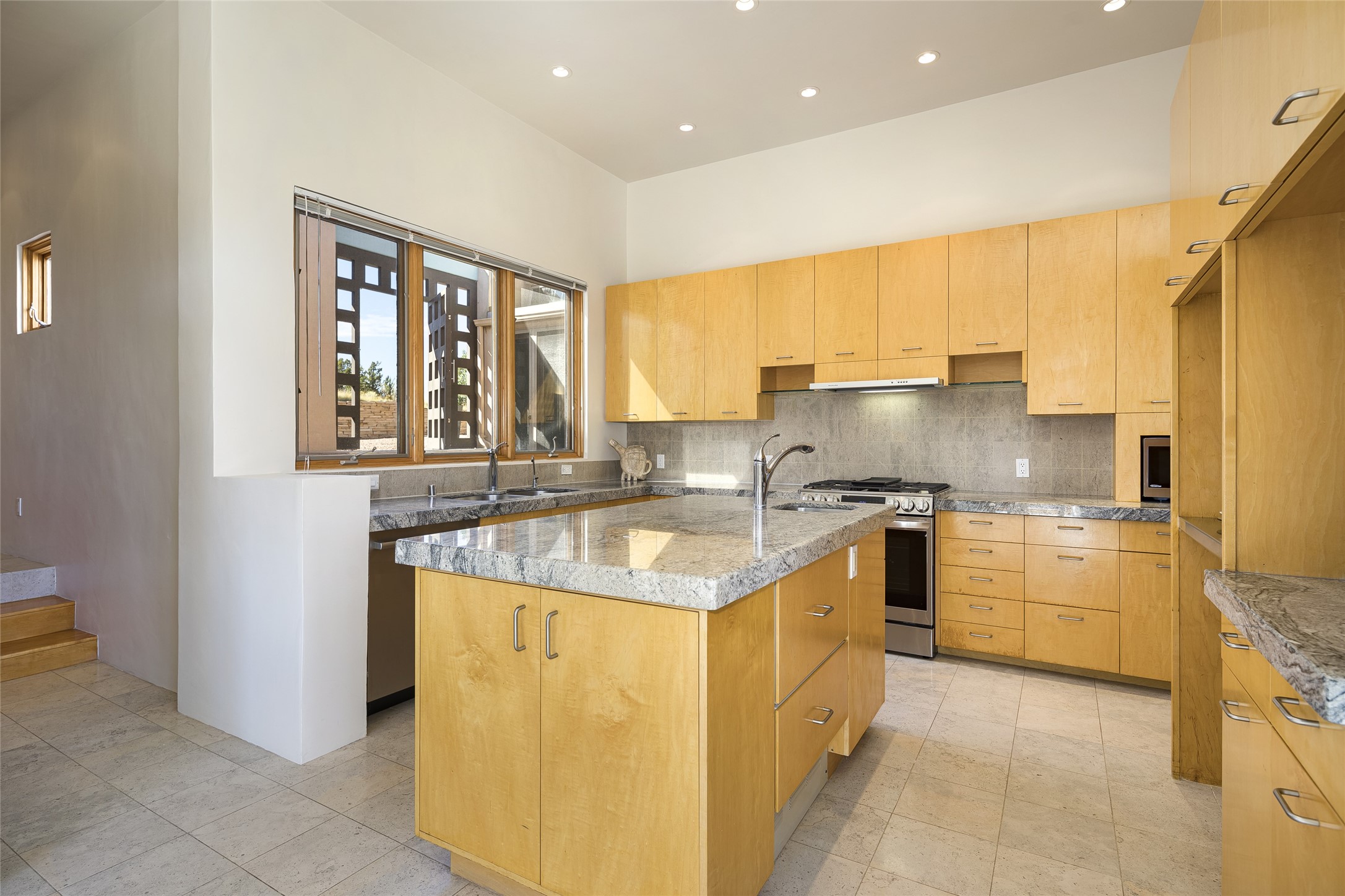Experience the ultimate Santa Fe lifestyle with this Tour de Force contemporary house and guest house with unparalleled Sangre De Cristo Mountain views and a fabulous heated indoor lap pool. Located within close proximity to the Plaza and The Club at Las Campanas, and sited on a private, elevated 2+ acre cul de sac view lot, this sophisticated retreat, designed by renowned architect, Craig Hoopes, masterfully incorporates seamless indoor and outdoor living at its finest and perfectly blends contemporary design with Santa Fe warmth. The 3,127 square foot main house excites with a spacious open-concept great room complete with surround view windows which frame the Sangre De Cristo Mountains, fireplace, and access to dual outdoor portals and zen gardens. The industrial-style island kitchen is ideal for entertaining with stainless appliances, a casual dining area with a fireplace, and a large walk-in pantry, all of which enjoy expansive views and opens directly to the formal dining room and all main living areas. The spacious owner's suite delights with mountain views, fireplace, sitting area, a spa-like bath with its own private outdoor lounging area, dual walk-in closets, and a generous attached bonus room ideal as an office, media room, or art studio. Separate from the main living area is a private ensuite bedroom, a secondary bedroom or office, and access to the 1,183 square foot pool house complete with a resort-like indoor heated lap pool, sauna, shower, and exercise areas. Guests enjoy complete independence with the well-appointed detached 876 square foot one-bedroom guest house with a full kitchen, living room, fireplace, full bath, washer/dryer, and stunning views. Exceptional features include endless art walls, soft natural light, a flexible floor plan, excellent storage throughout, a backup generator, an updated roof, 2 newly replaced boilers, and updated interior plaster. This home represents a rare opportunity and truly, the ultimate Santa Fe lifestyle.
