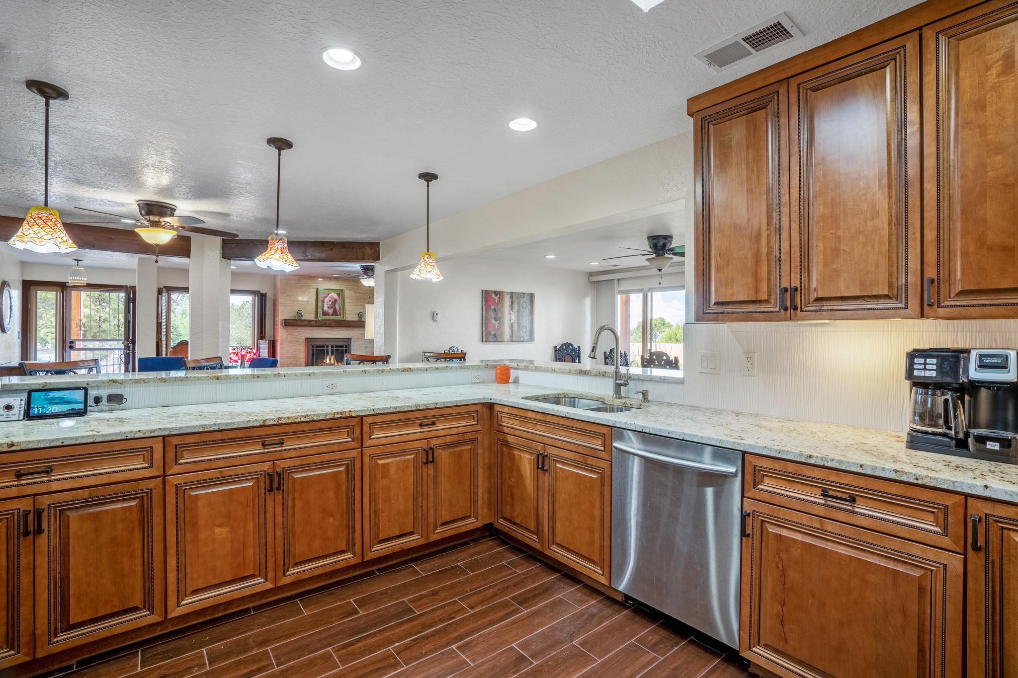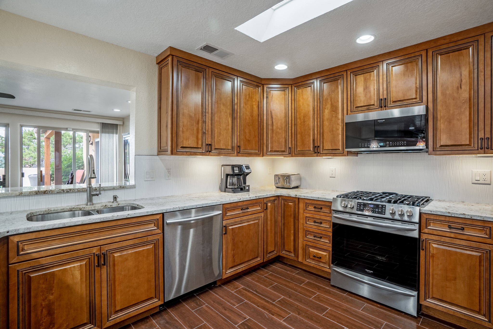 This diverse floor plan is perfect if you like to entertain, have a large family or work at home. Active solar system is approx. 3 years old! The kitchen was remodeled about 5 years ago and features stone counters, a large pantry and newer appliances. The primary bedroom was extended and now has a fireplace, room for a sitting area and you be amazed at the size of the primary closet. The primary bathroom was also totally remodeled, and you will feel like you are at a luxury spa! Two living/ public areas including the living room at the front of the home and the den to the side of the kitchen. The den space would also make a wonderful formal dining area. A lot of thought was put into the remodel of the kitchen, primary bedroom, utility room which has marvelous storage. No lack of storage here. Do you cherish your privacy while working at home? You will absolutely love the "hidden" office feature. Fabulous circular driveway with an island of mature trees in the middle. No need to worry about the maintenance of your driveway! Three car garage with a separate storage area! Intimate garden and yard space off the kitchen. The current den has a portal and fenced yard space with views of the foothills to the east. Whole house water softener and 2 separate whole house air conditioning units.