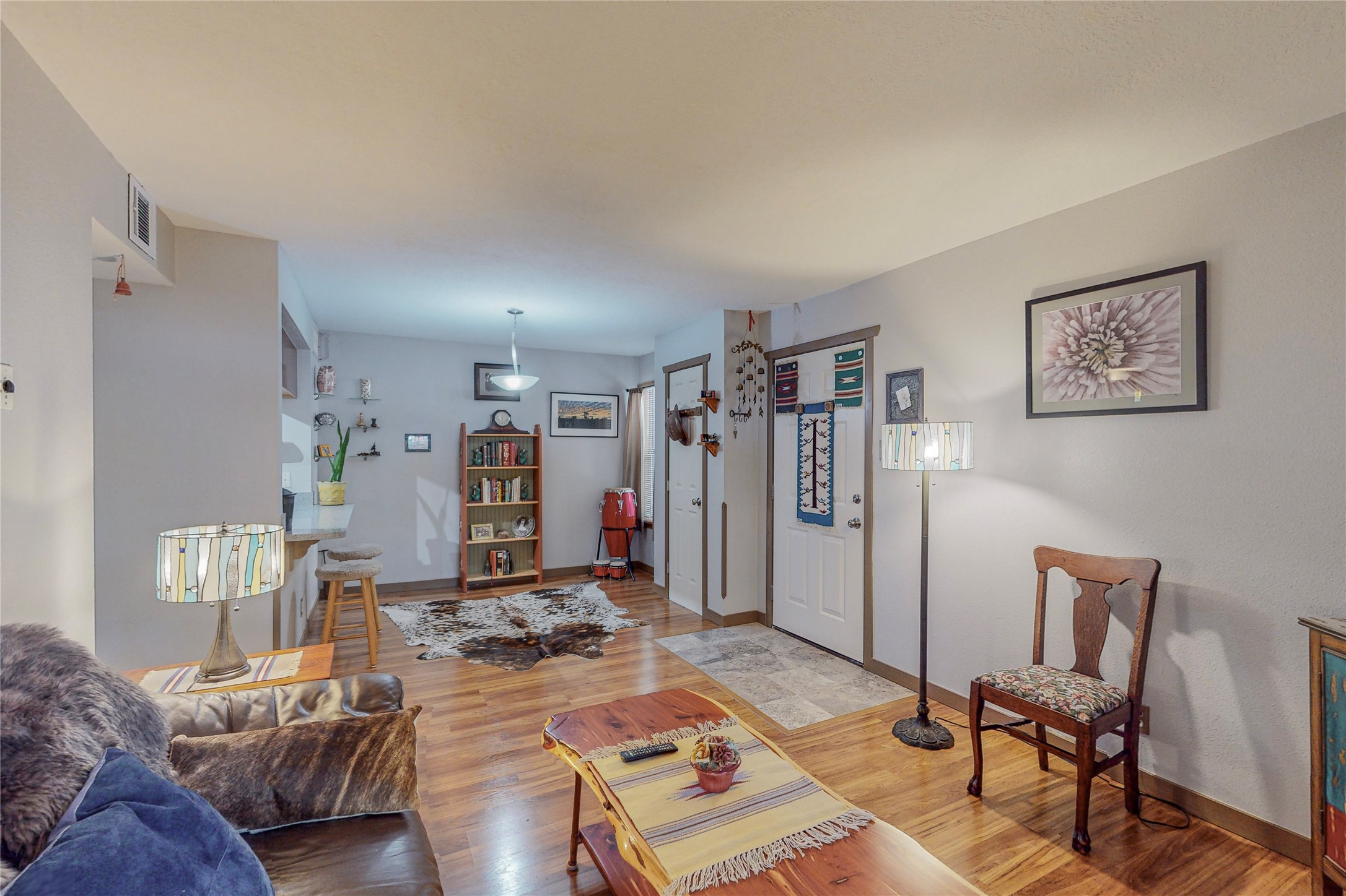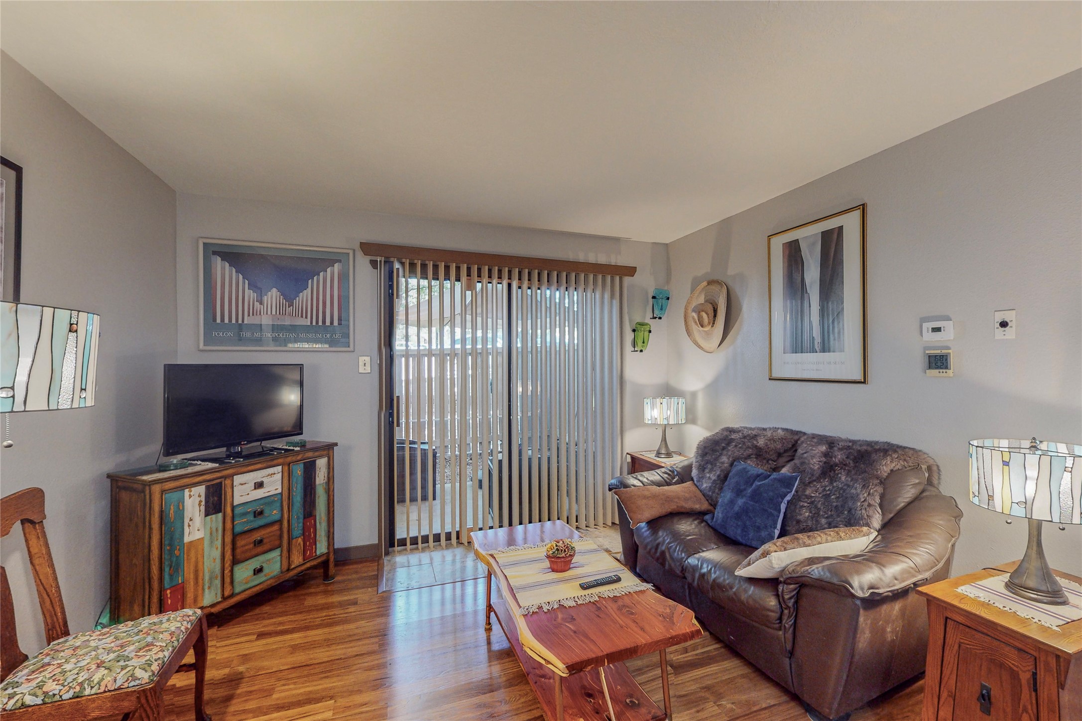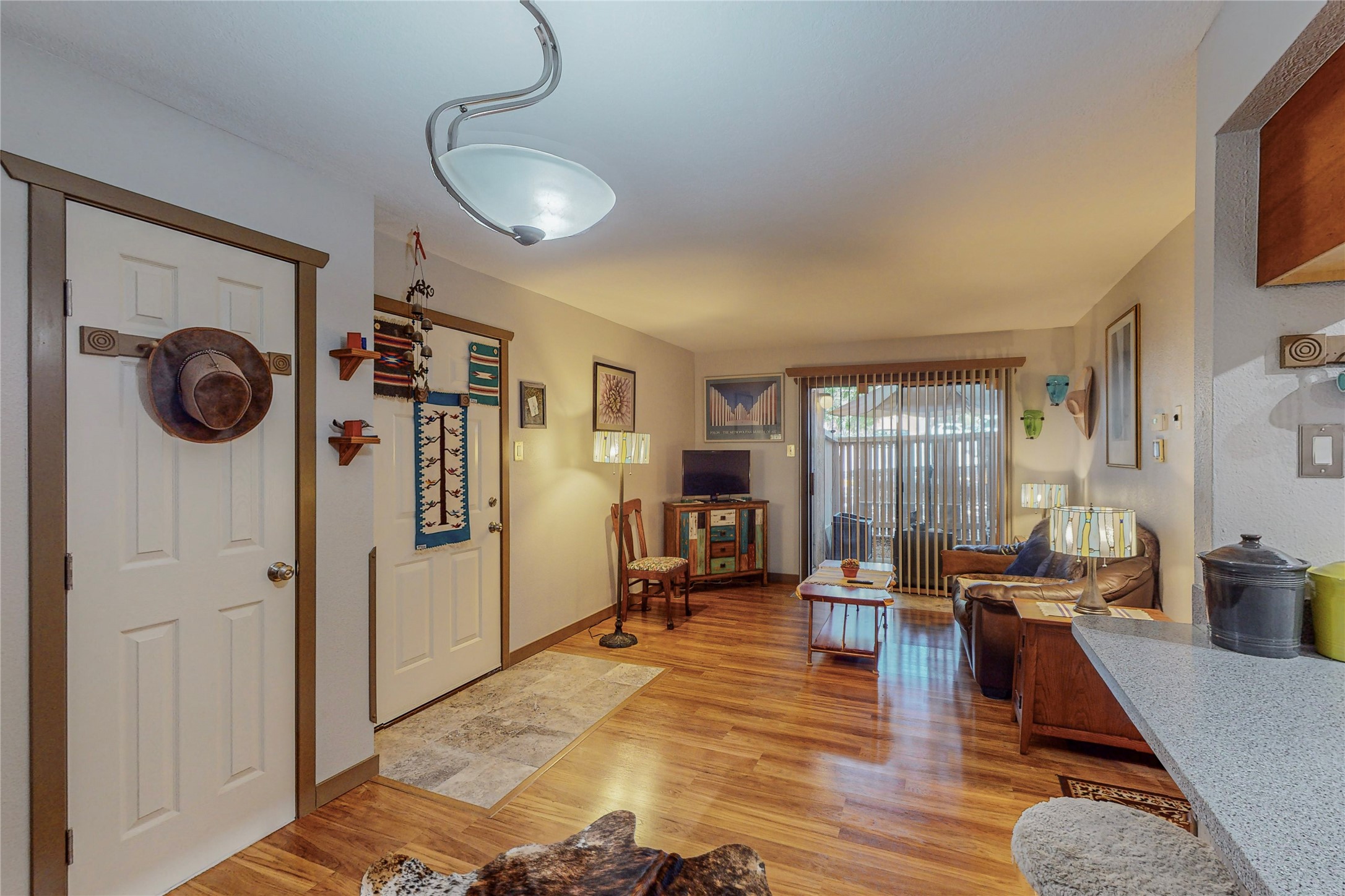 Skillfully maintained ground floor 2 bedroom, 2 bath unit with private patio. The gated community@ The Reserve at Santa Fe offers a year-round heated Pool, hot tub, fitness center, community room, laundry room, mail center, BBQ areas & all-night onsite security. Enjoy the sweet life living in the Heart of 'Santa Fe Style' which is minutes away from the Historic Santa Fe Plaza, the De Vargas Mall and multitudes of renowned restaurants, shopping, museums and famous landmarks. Easy highway access to Los Alamos, Tesuque, Taos & the 599 bypass to Albuquerque. The roof, stucco, and landscaping are maintained by the HOA. Be a Santa Fe Condo owner today!!