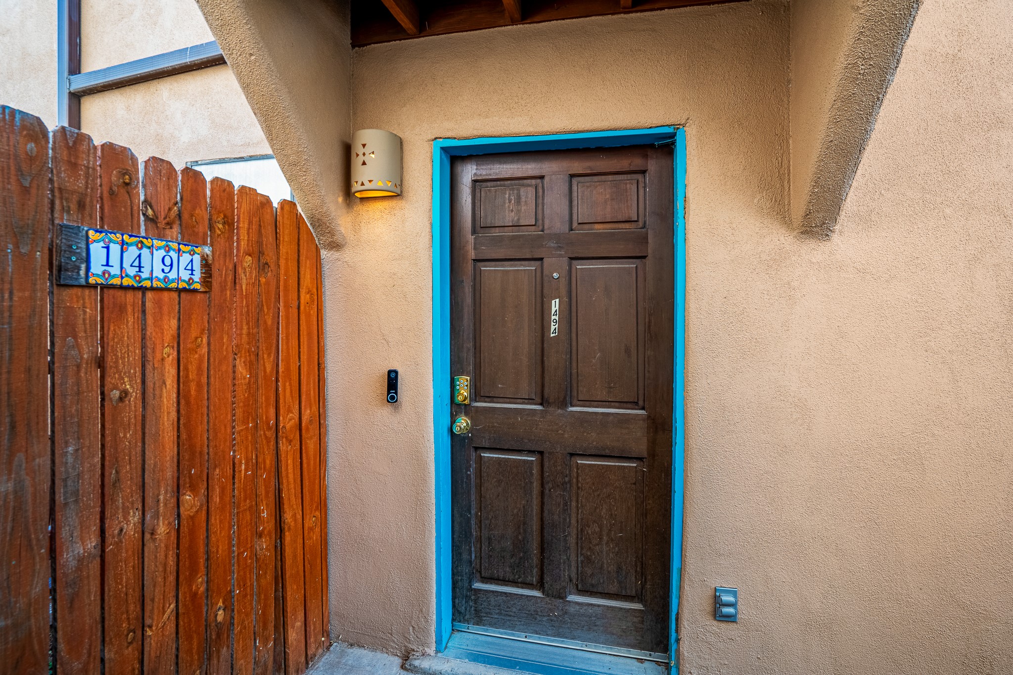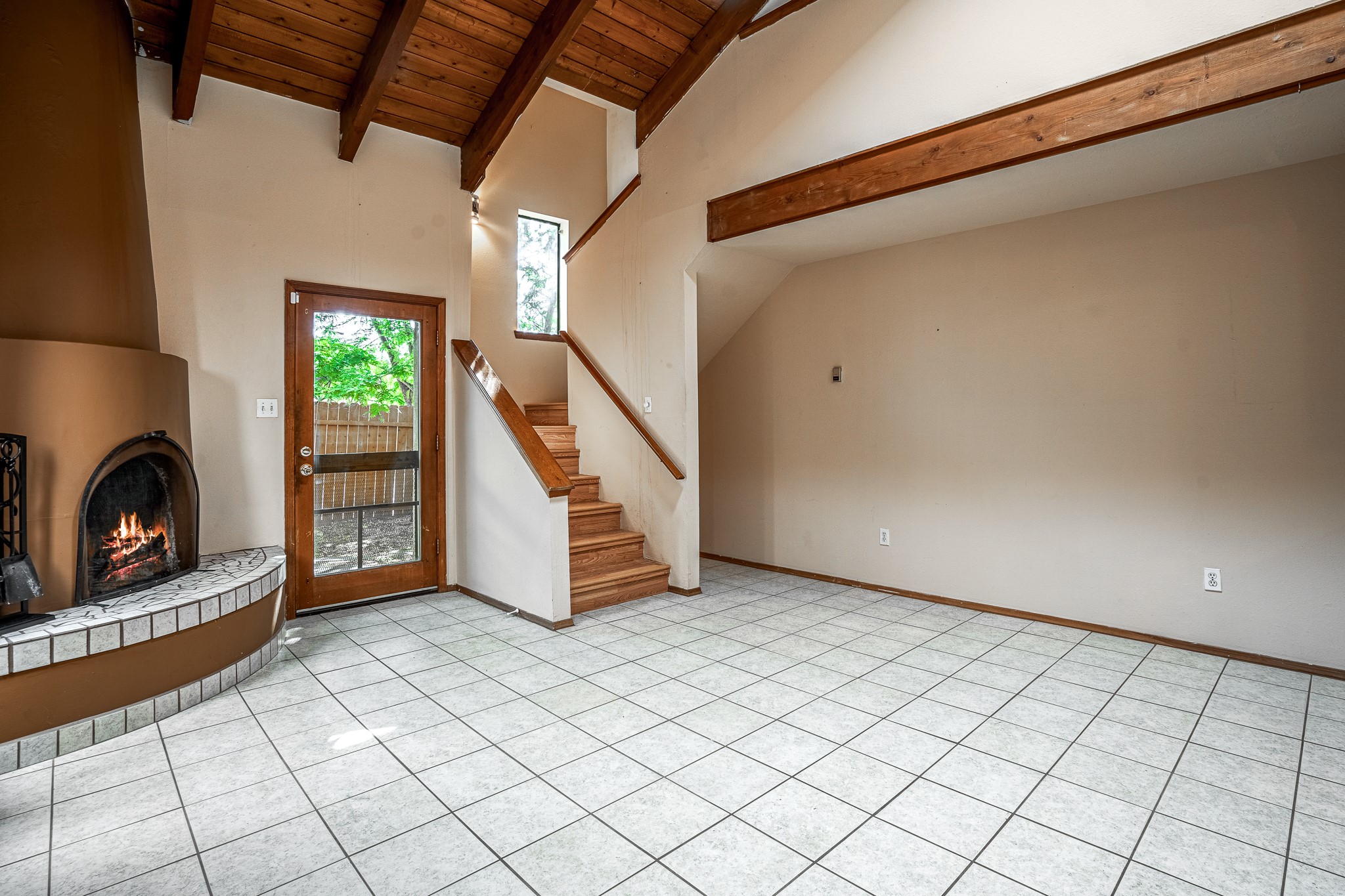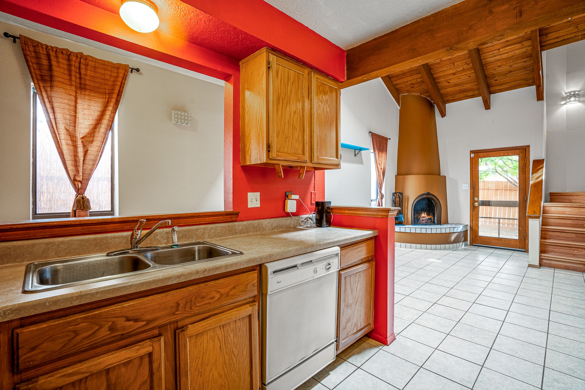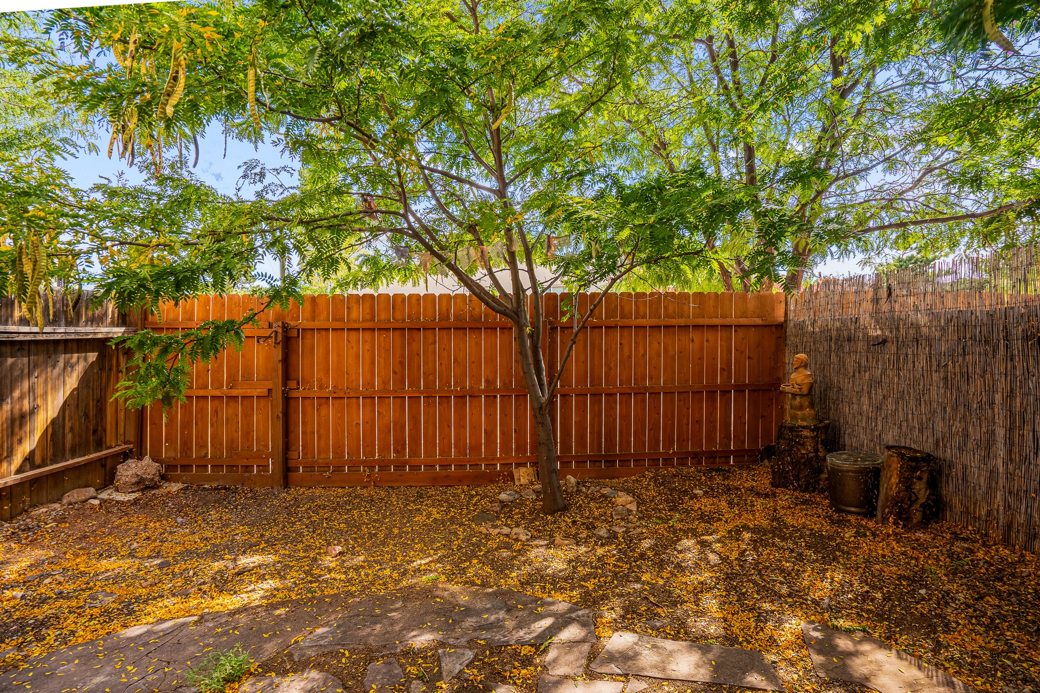 This home is centrally located with convenient access to everything that Santa Fe has to offer. With an abundance of natural light in the open-concept living space boasting high beamed ceilings and a beautiful wood-burning kiva fireplace. The shady backyard is fenced and private. The full bathroom and primary bedroom with lots of closet space are located on the first floor. On the second floor, there is a loft-style bedroom open to the living space below with a generously sized sunroom/bonus room. The home comes with two designated parking spaces off Avenida de Las Americas.
